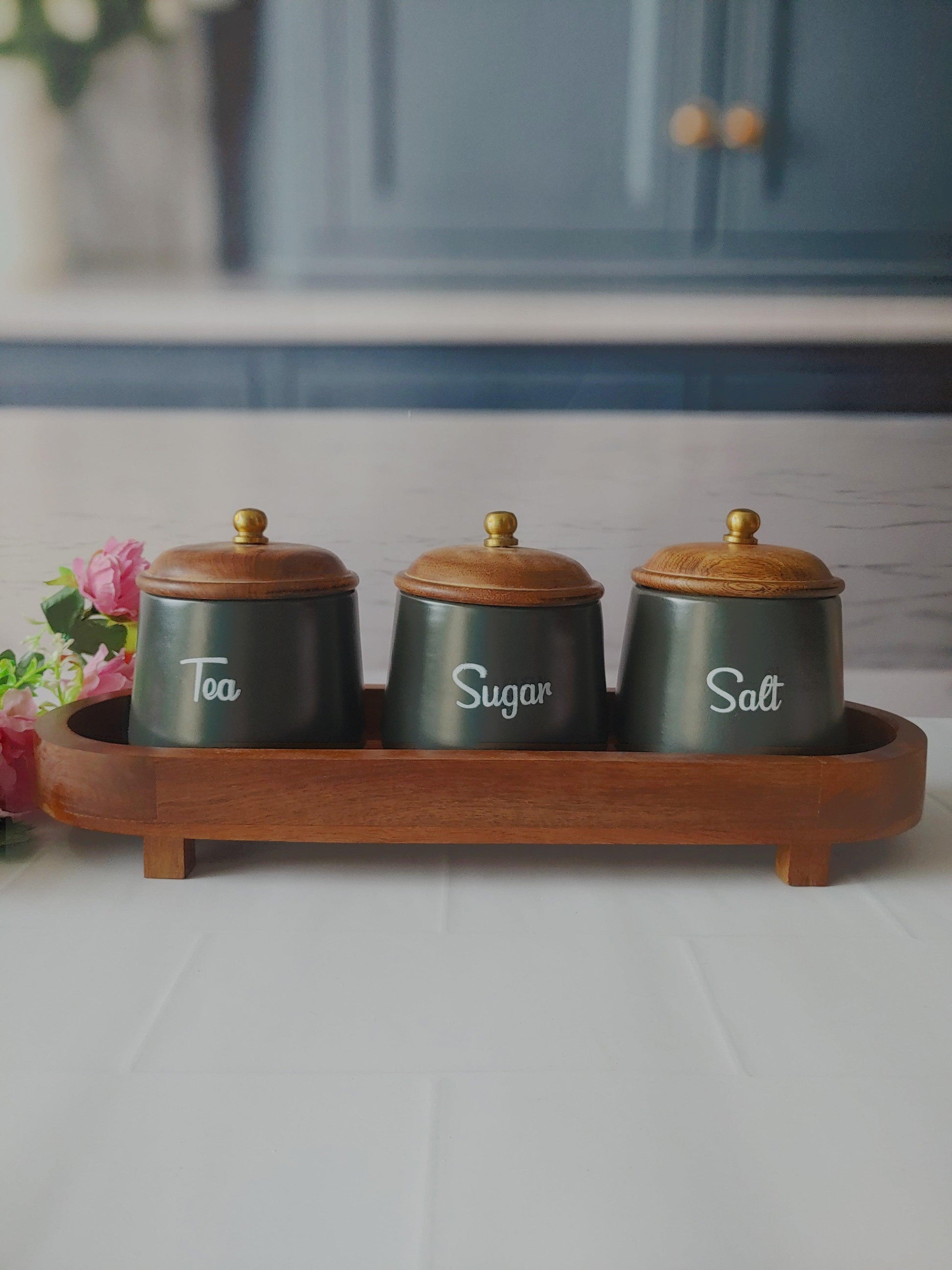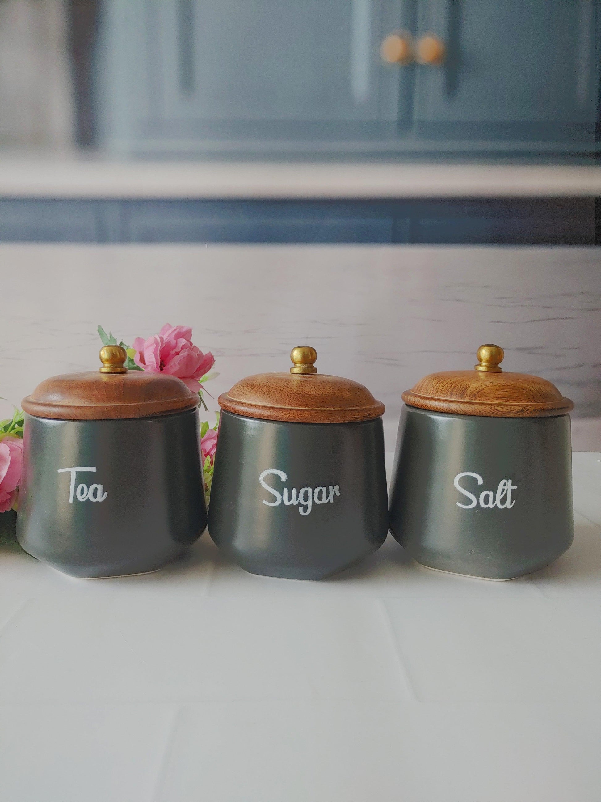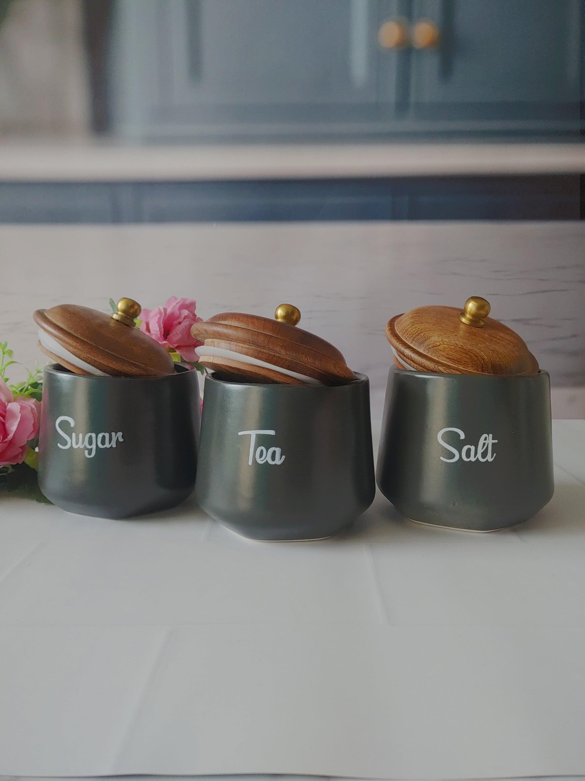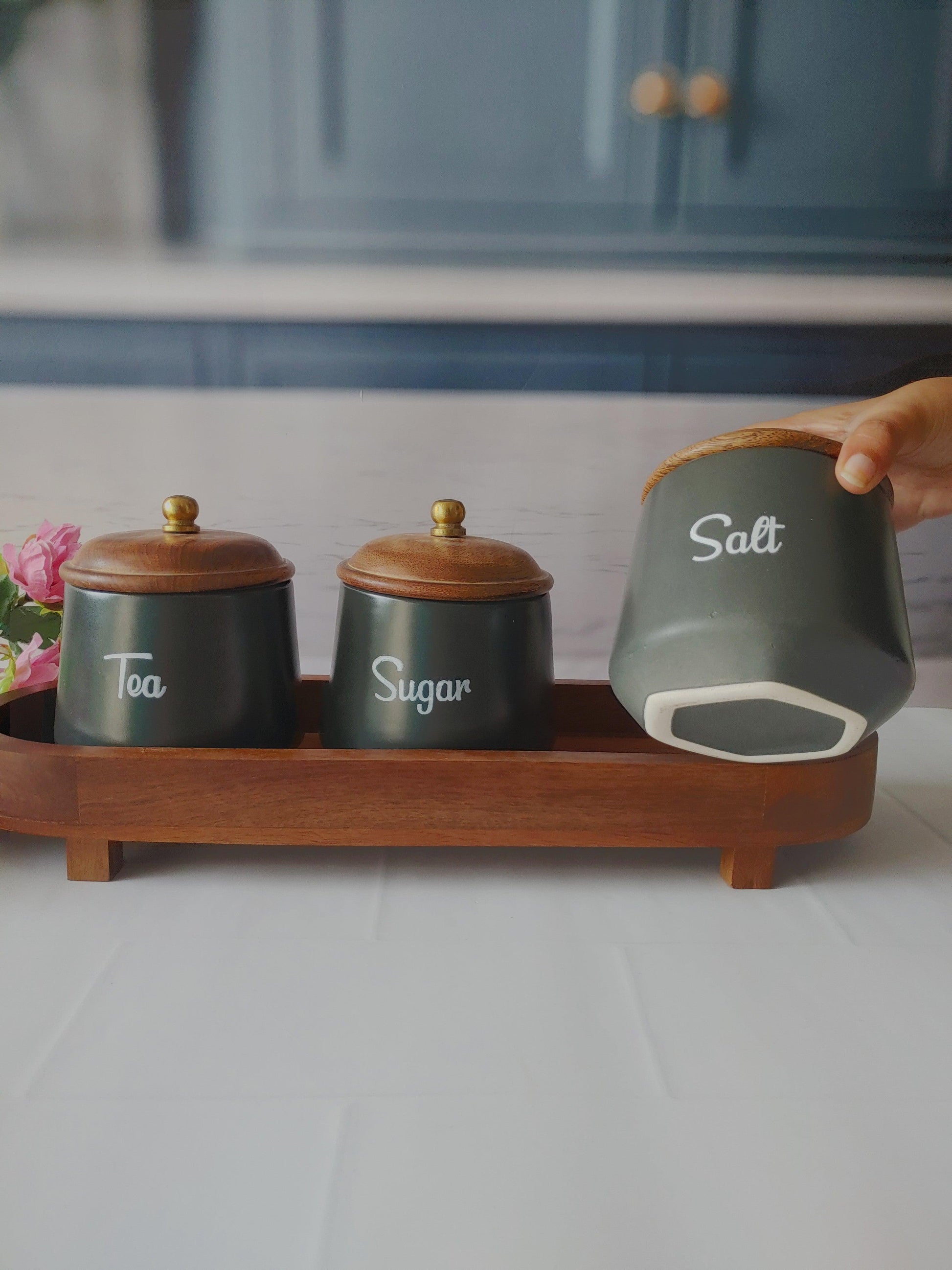 Black Beauty Kitchen Airtight container Tea,Sugar,Salt,with Royal Lid