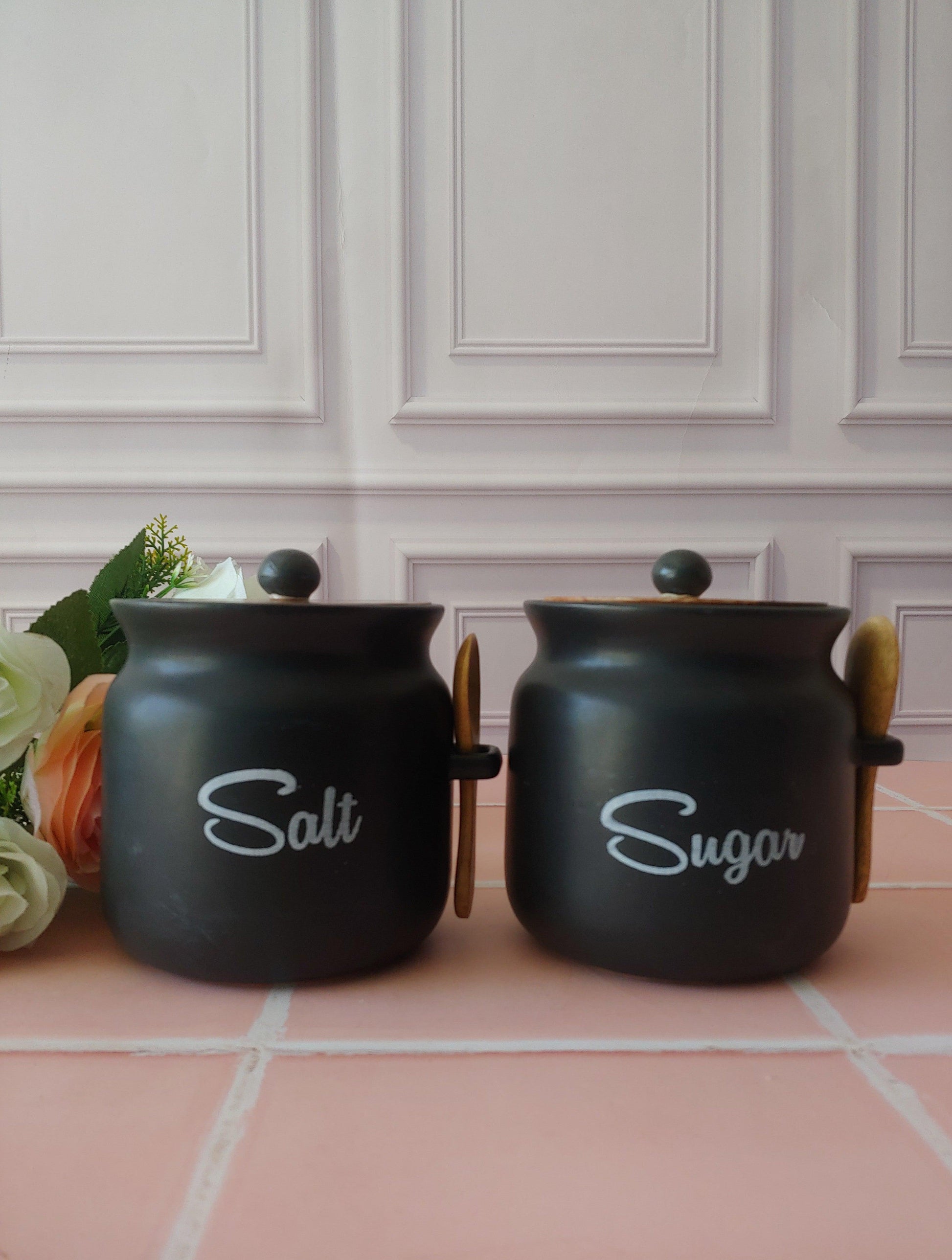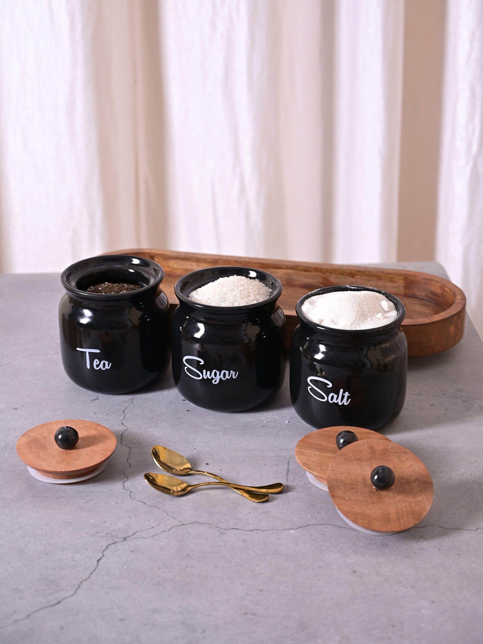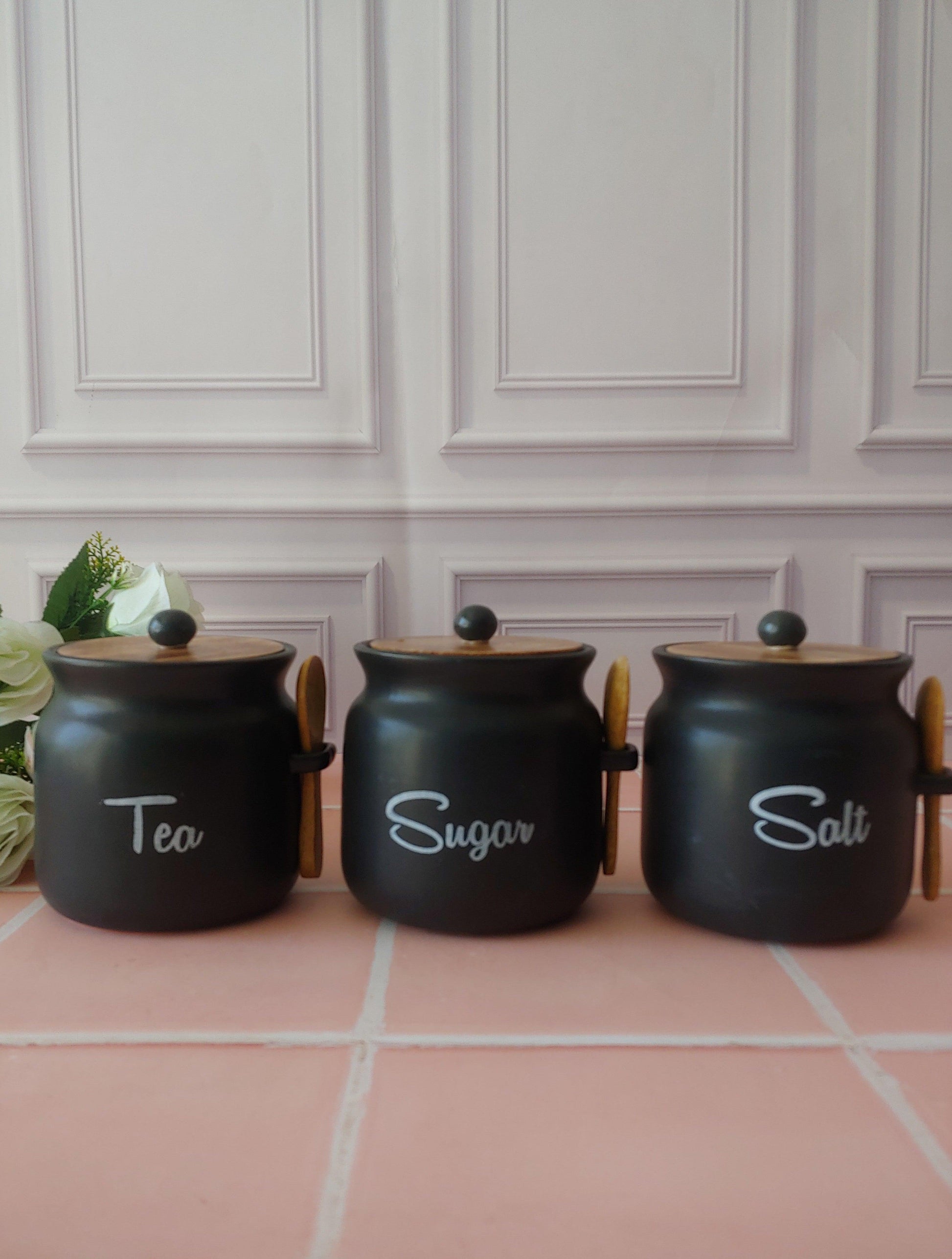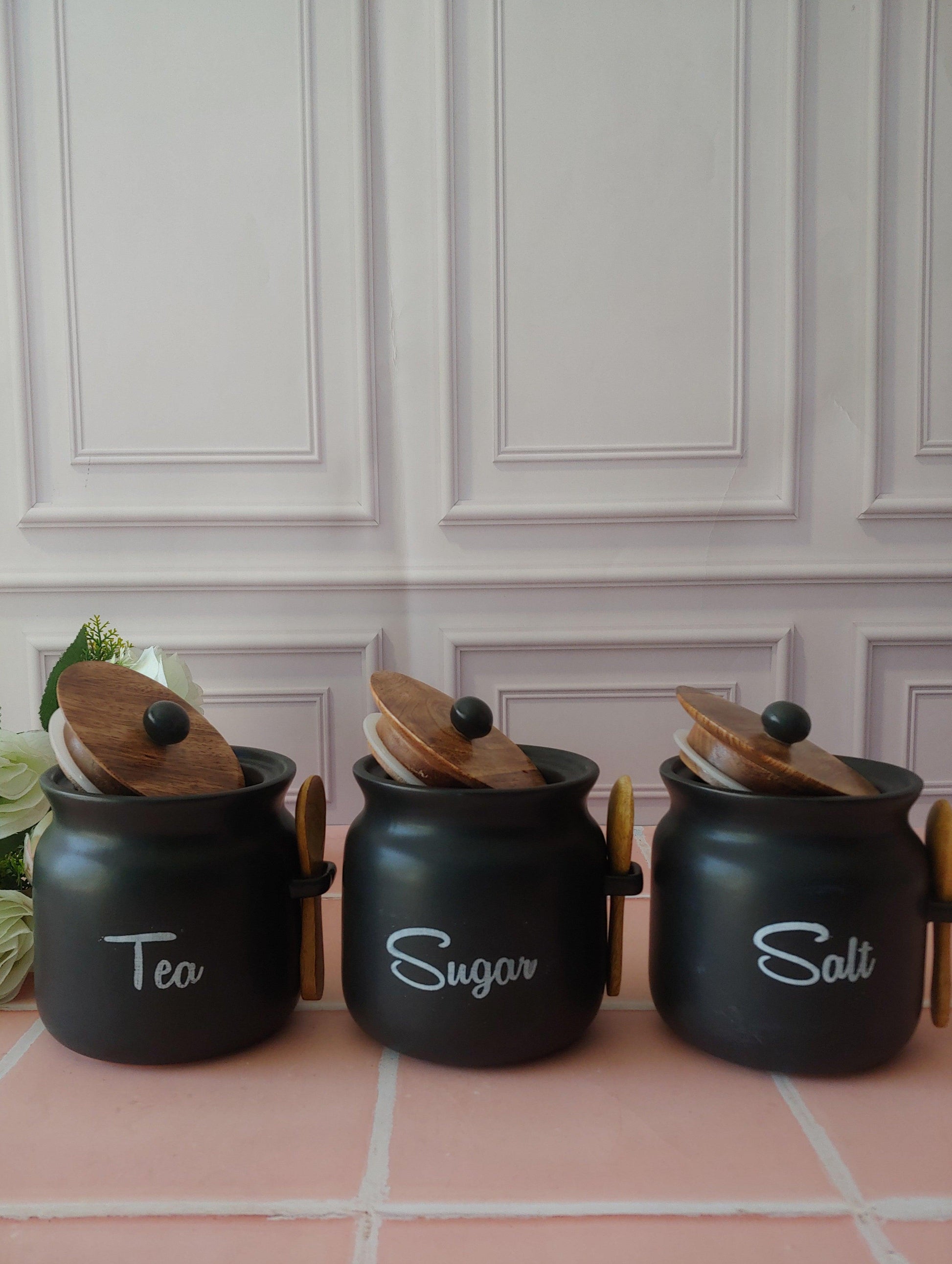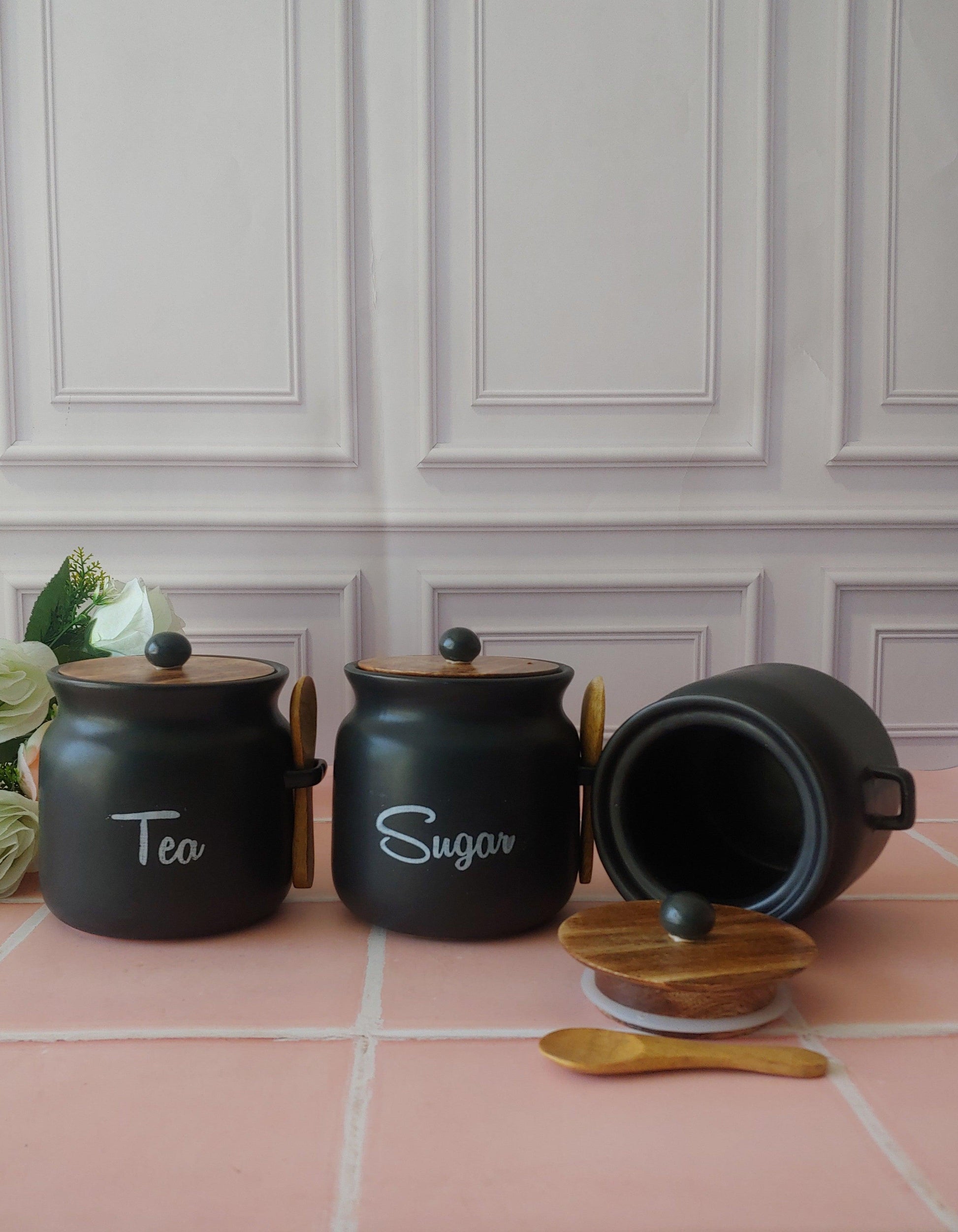 Black Matka airtight Solid Ceramic Tea Sugar Salt containers 500ml