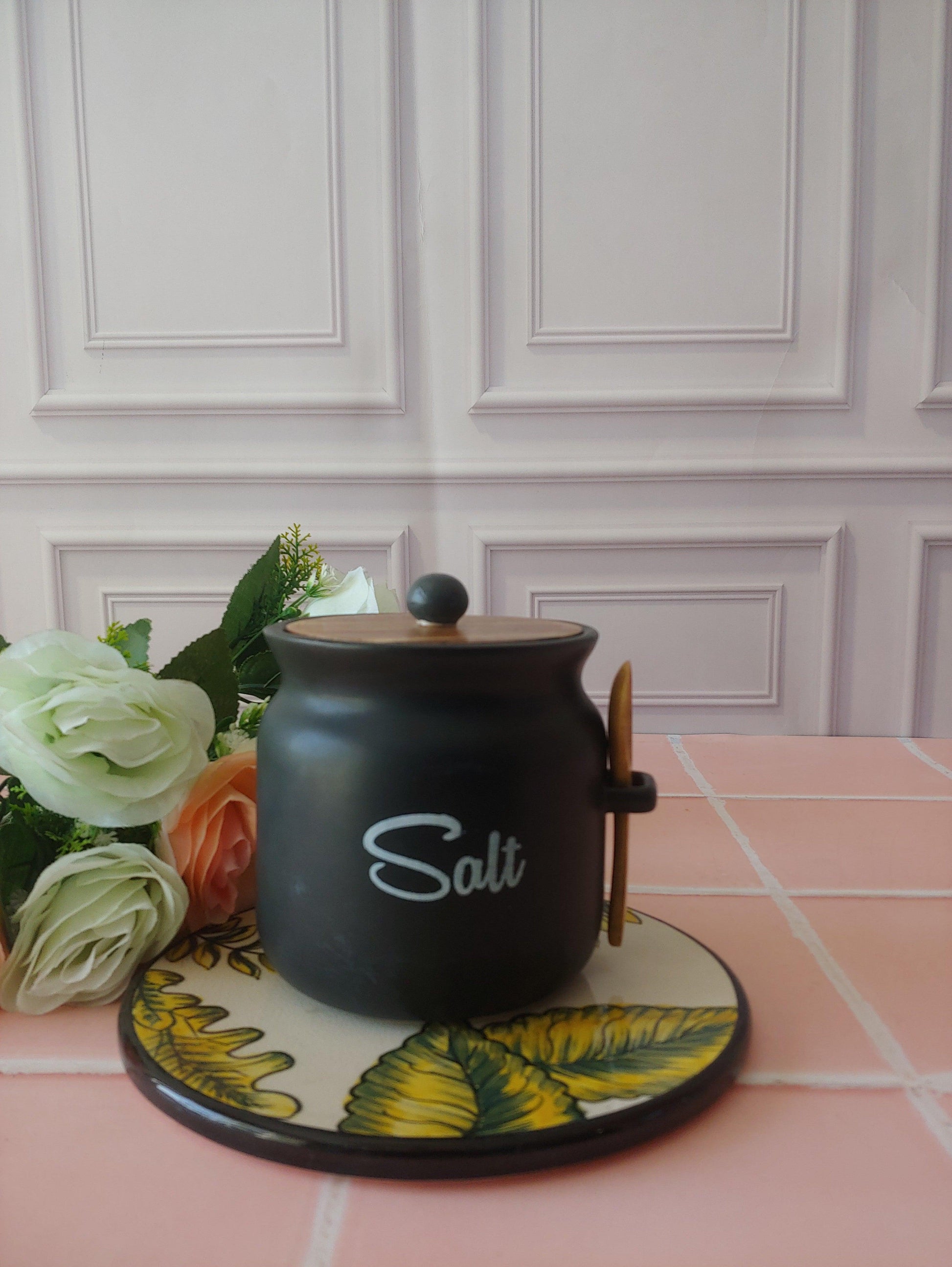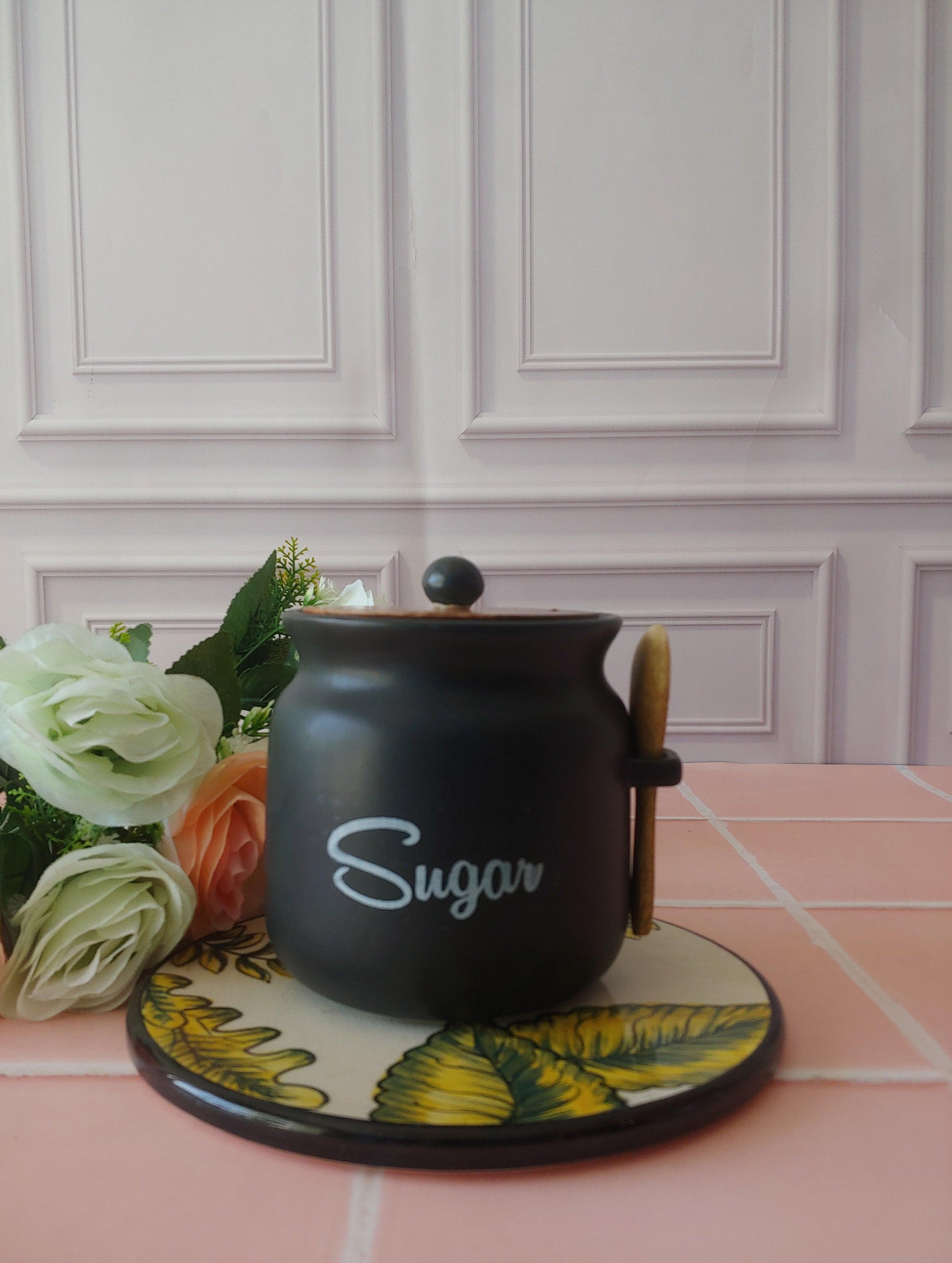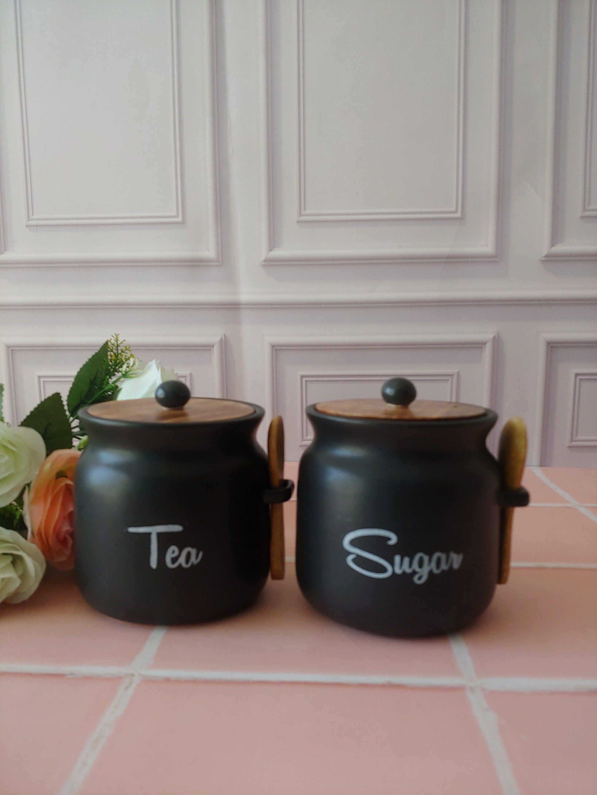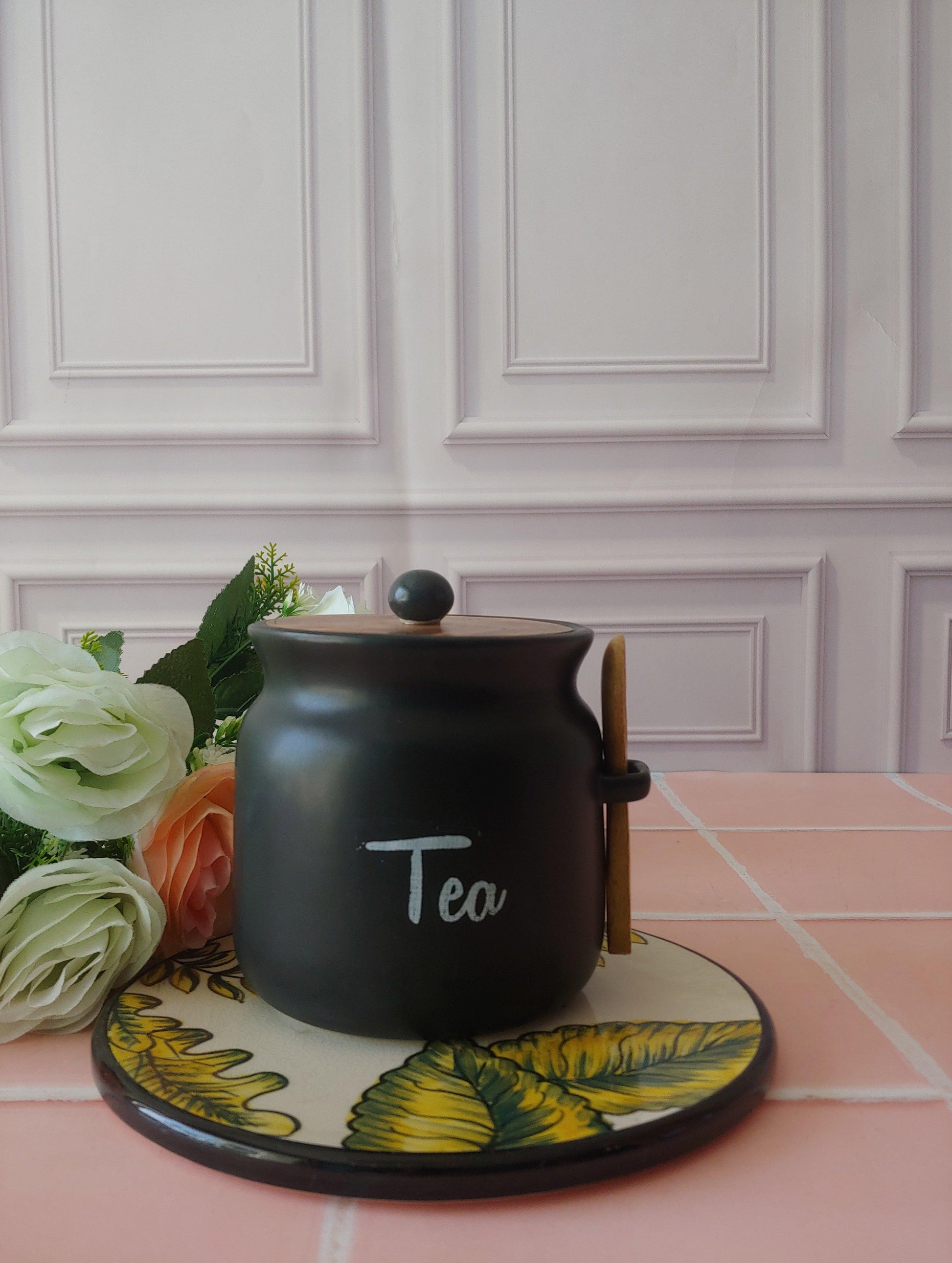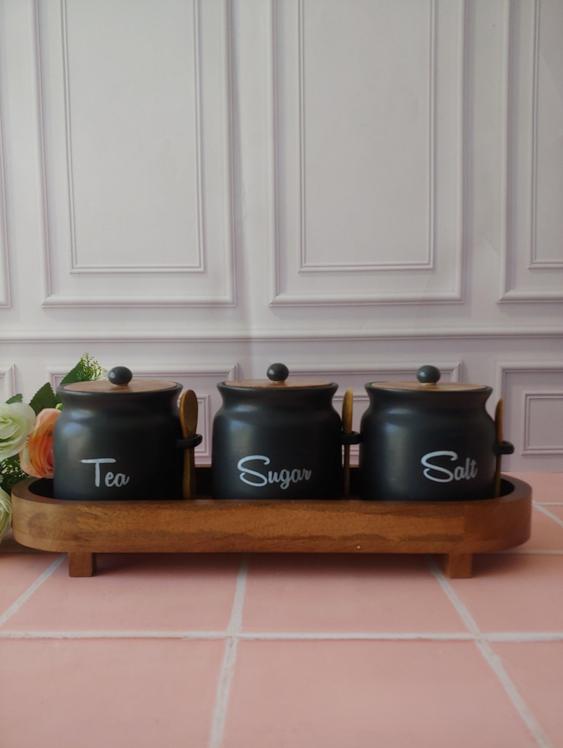 Black Matka airtight Solid Ceramic Tea Sugar Salt containers 500ml