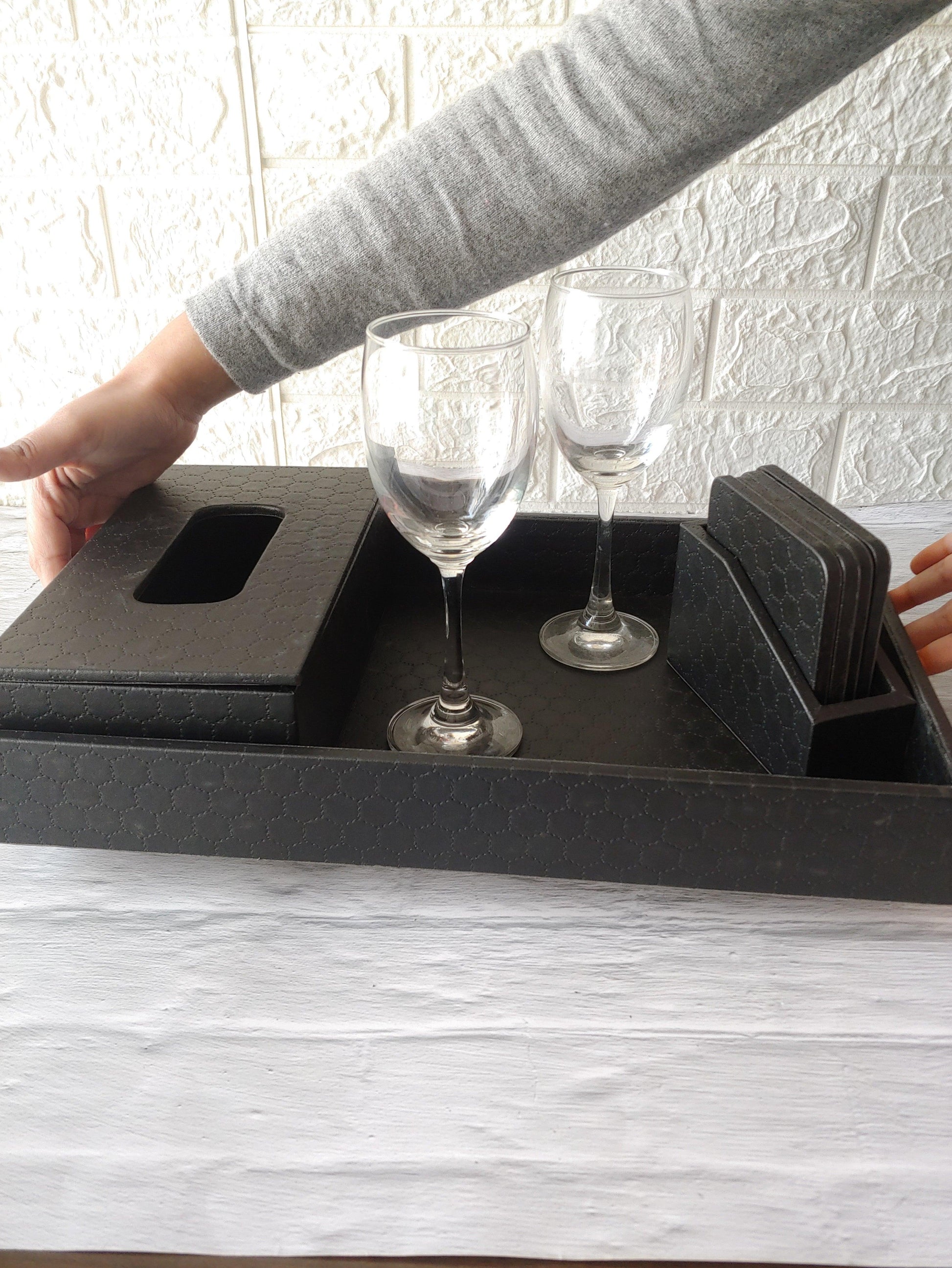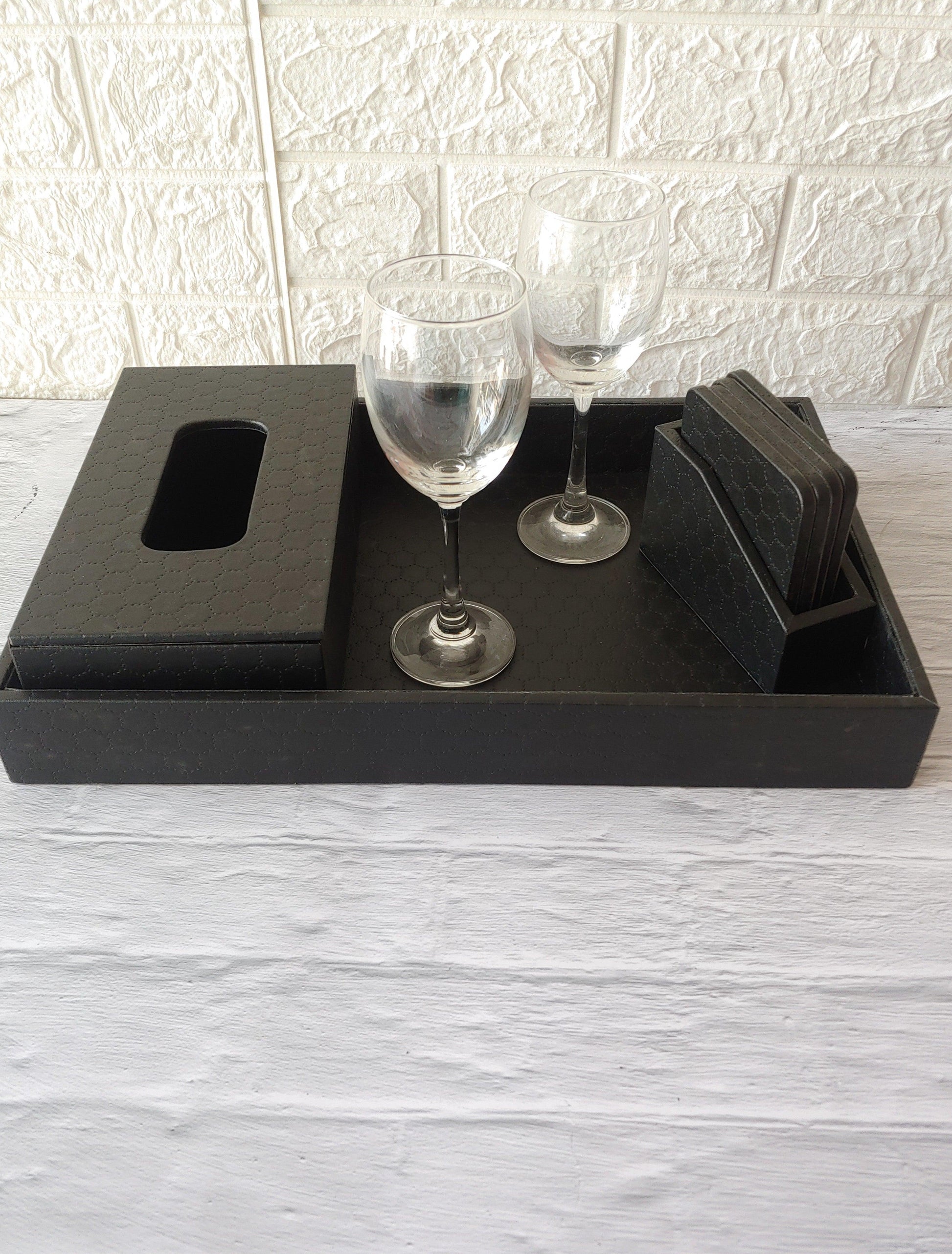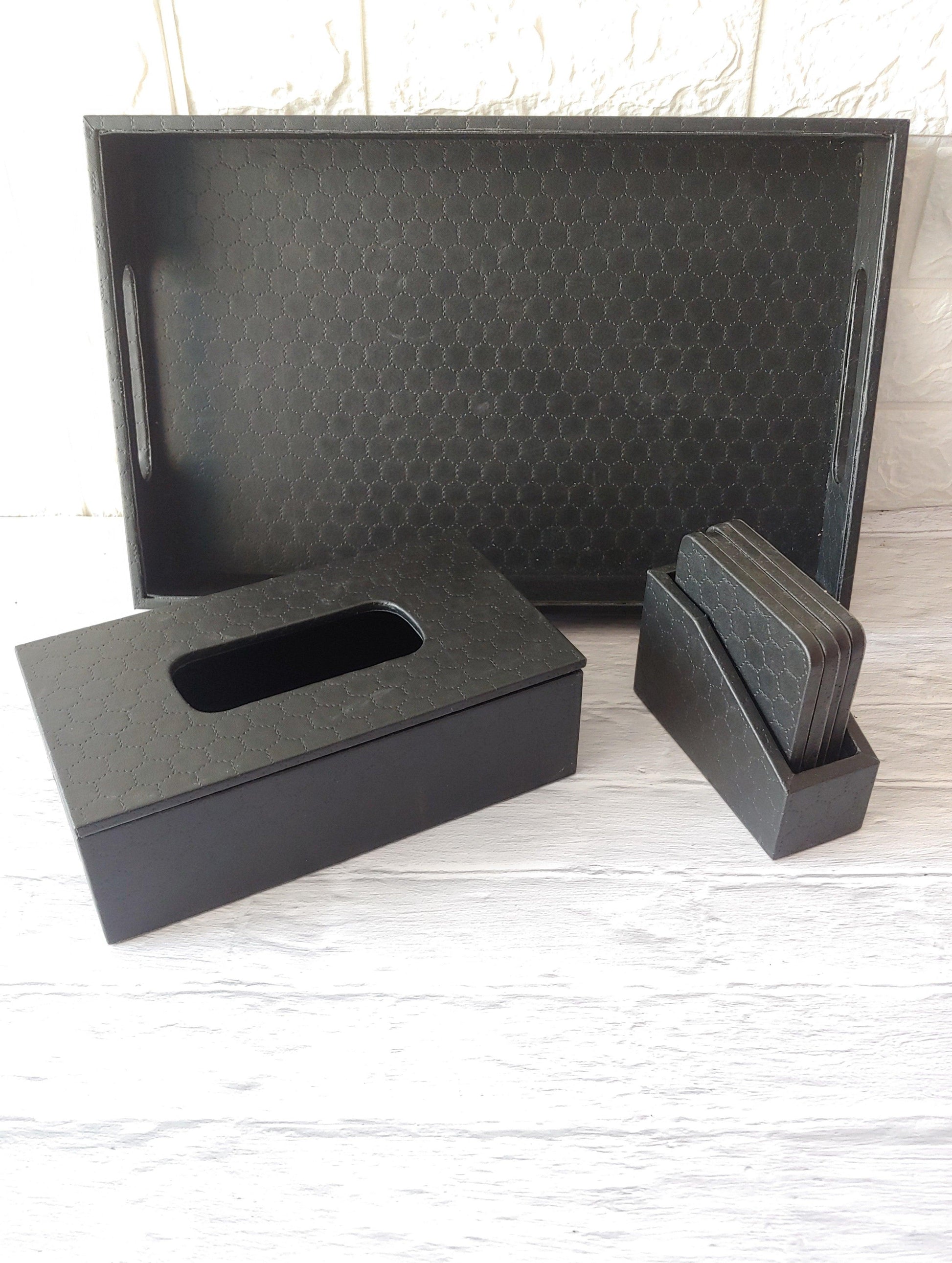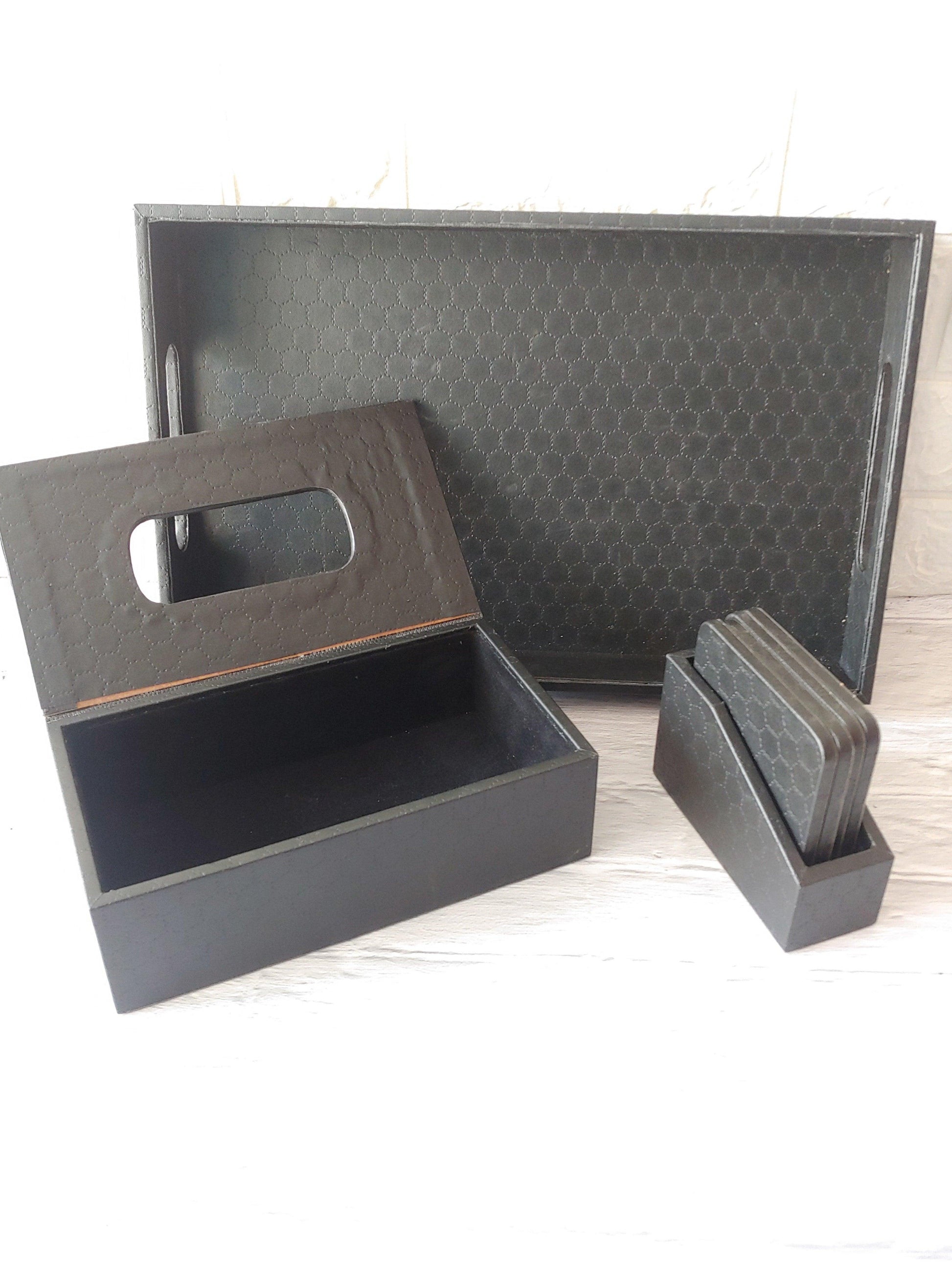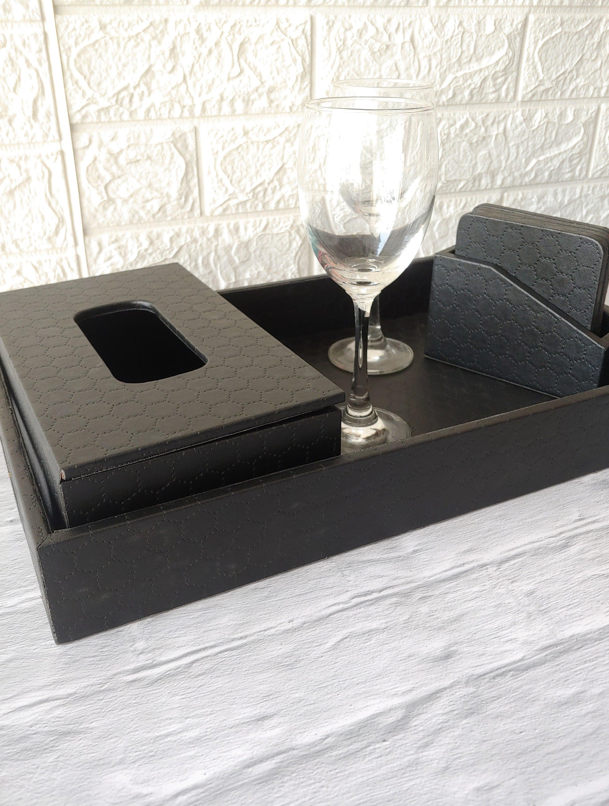 Black Stitched Premium Leather costers