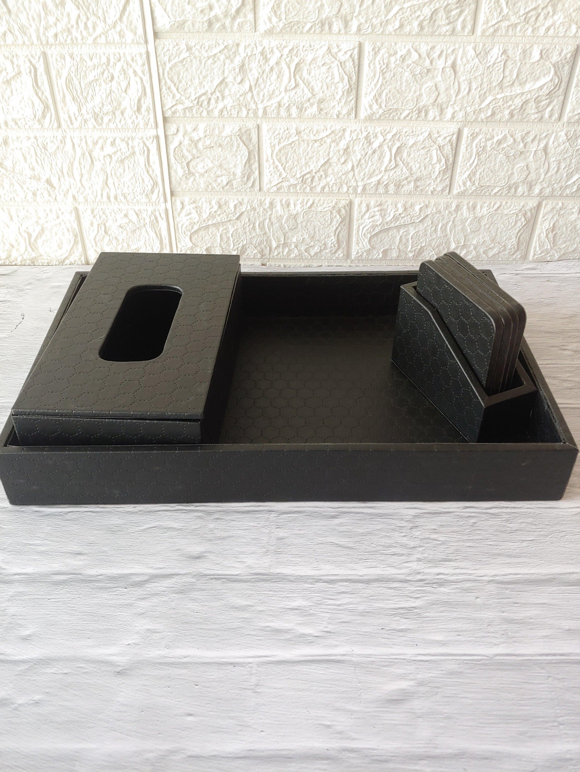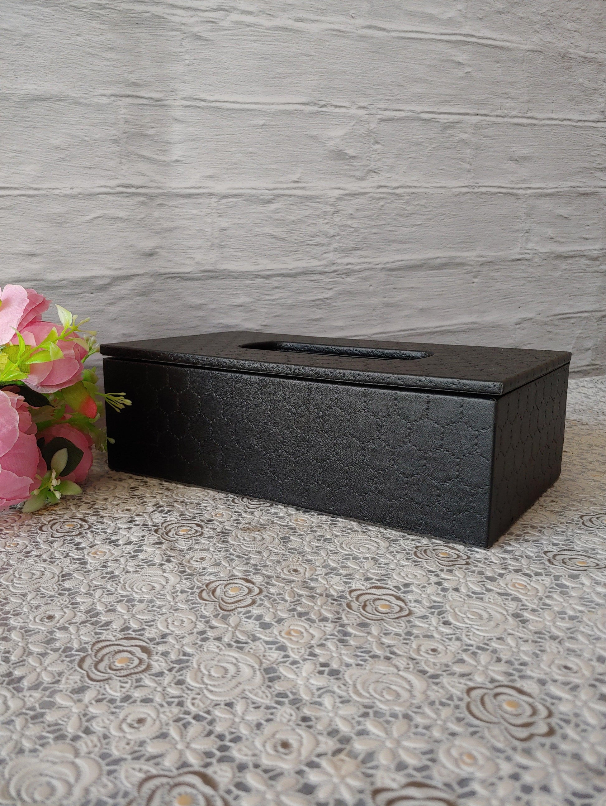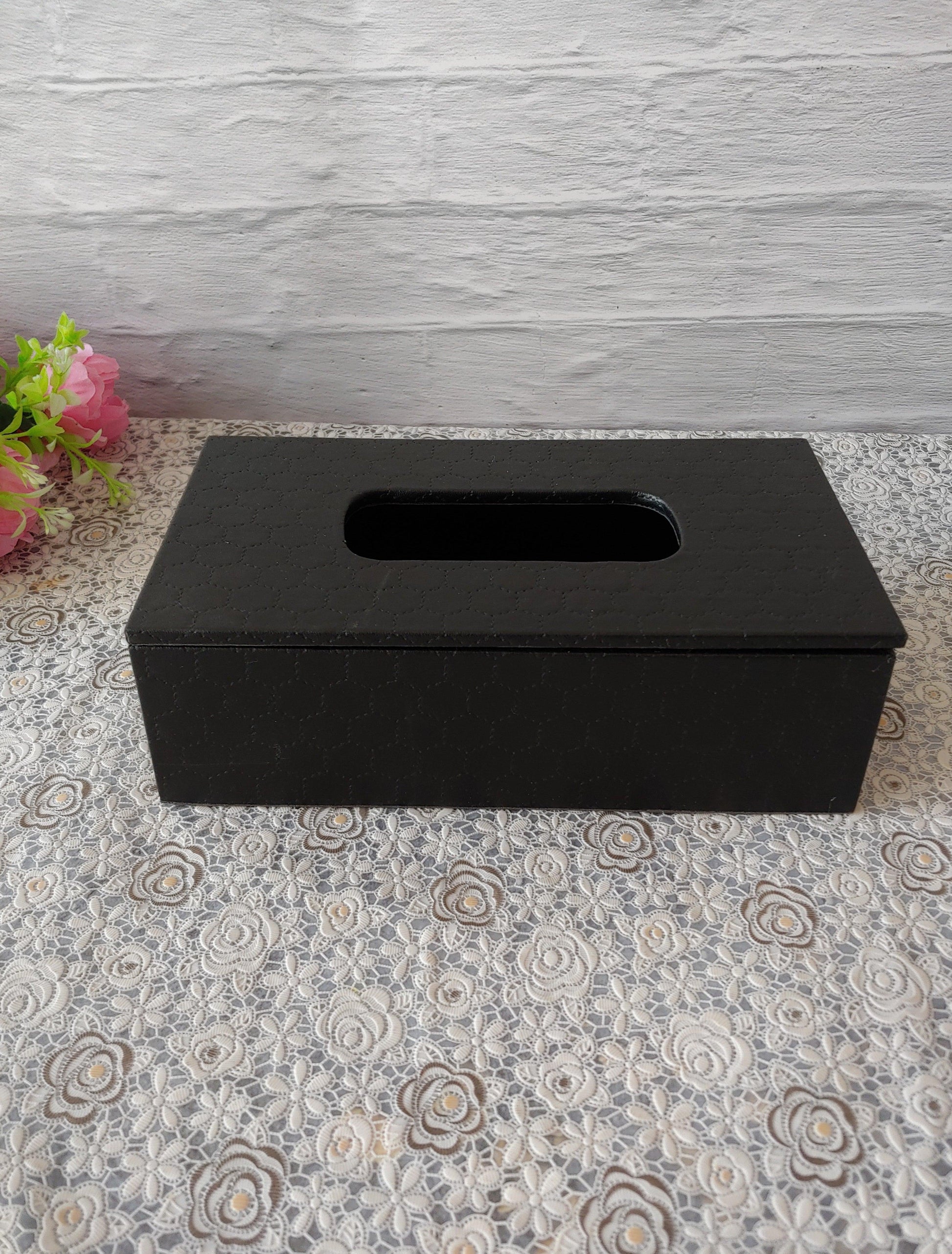Black Stitched Premium Leather tissue box