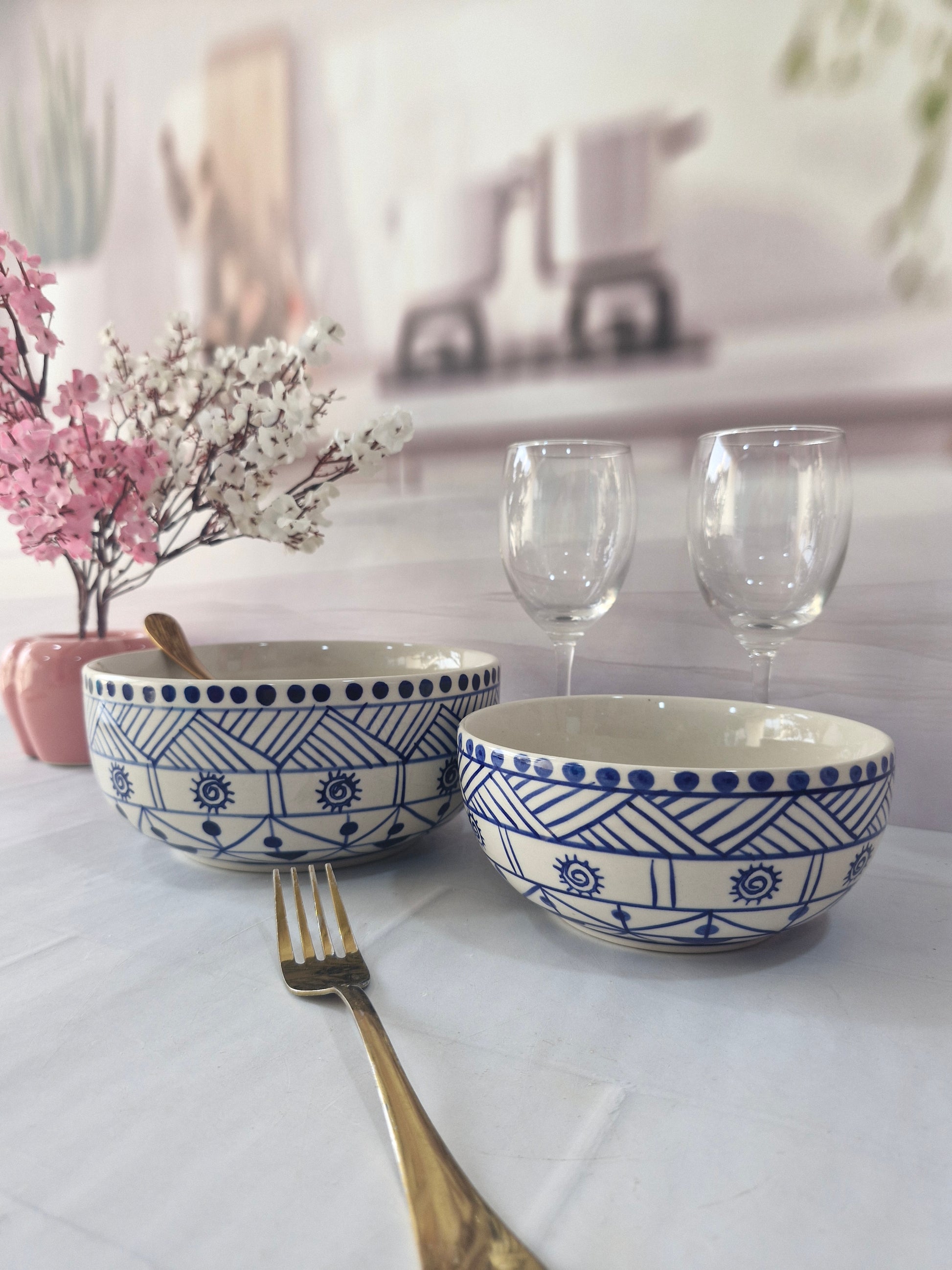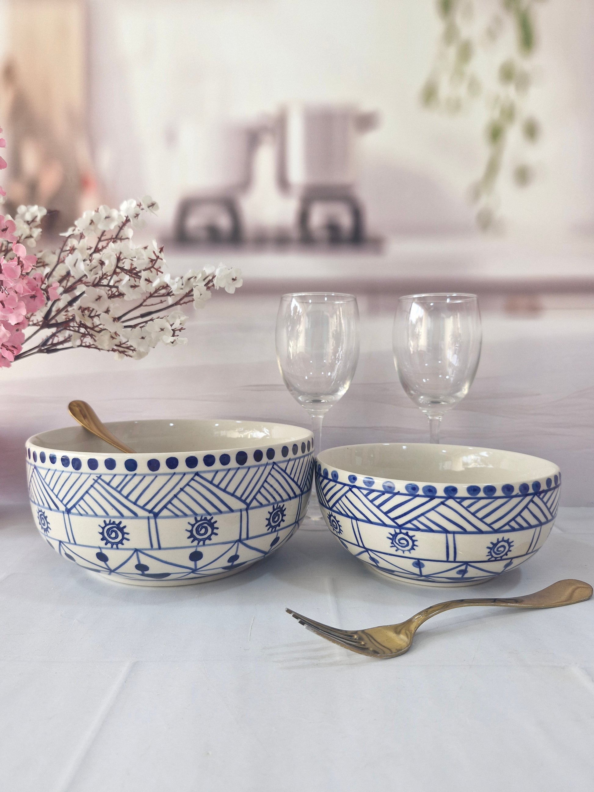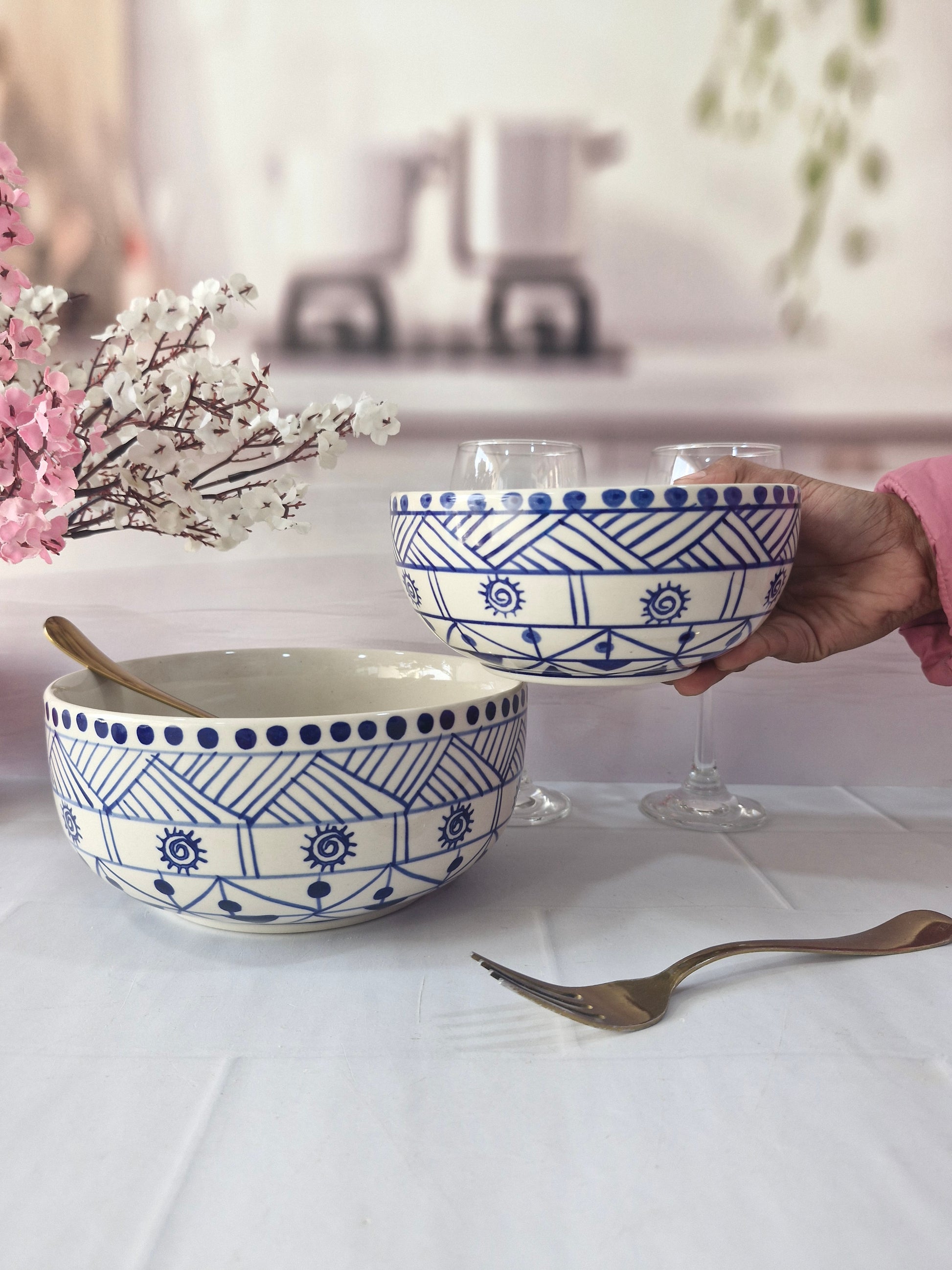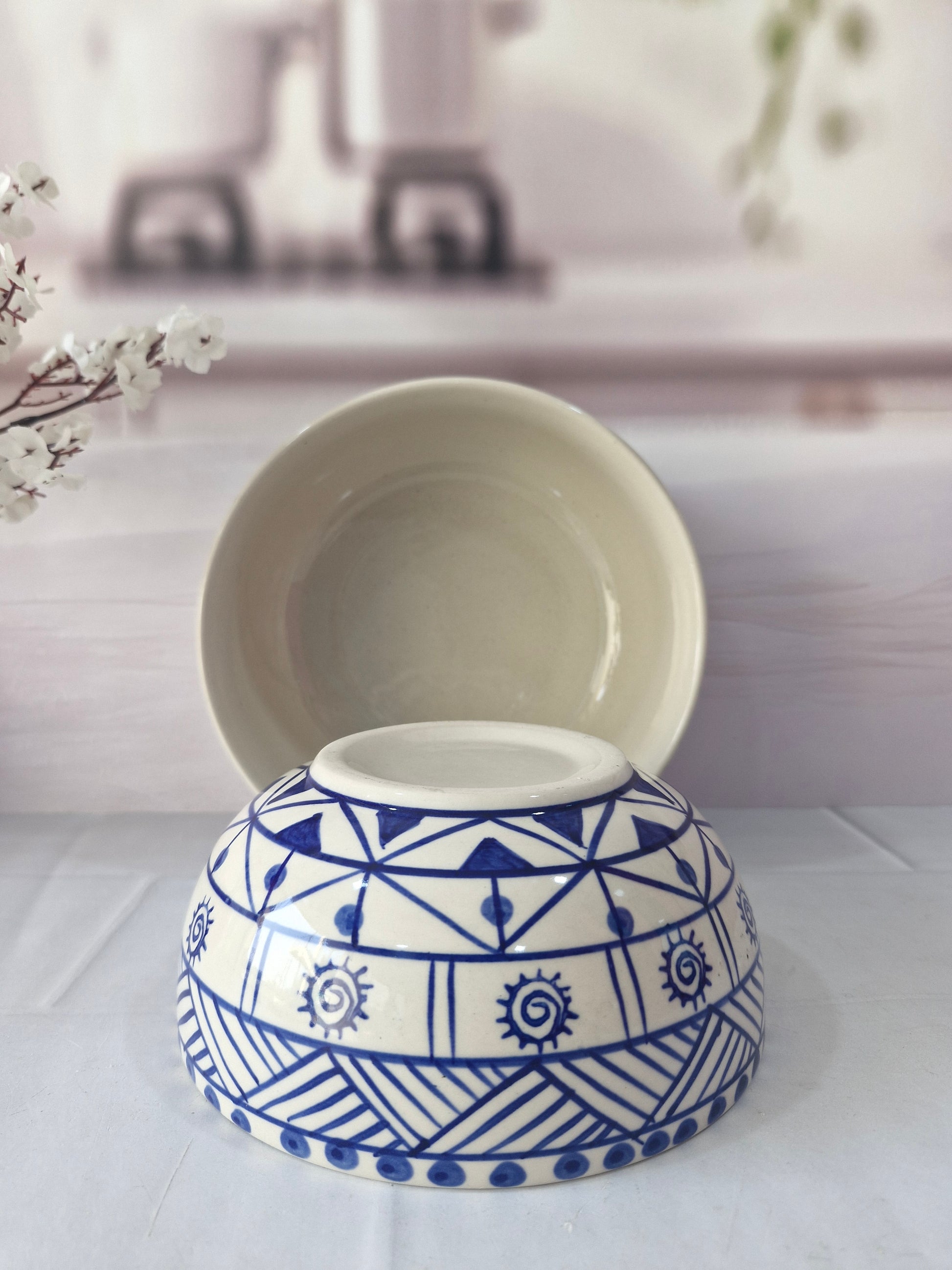 Blue Wonder Handpainted Ceramic Serving Round Dining Bowls