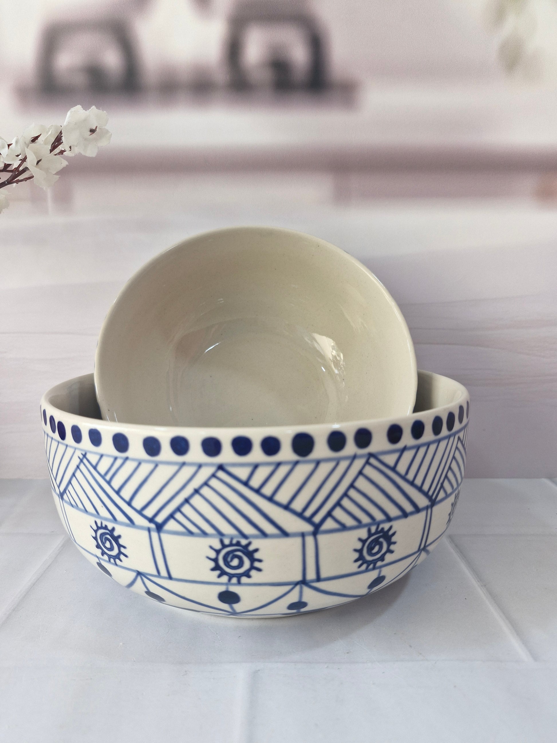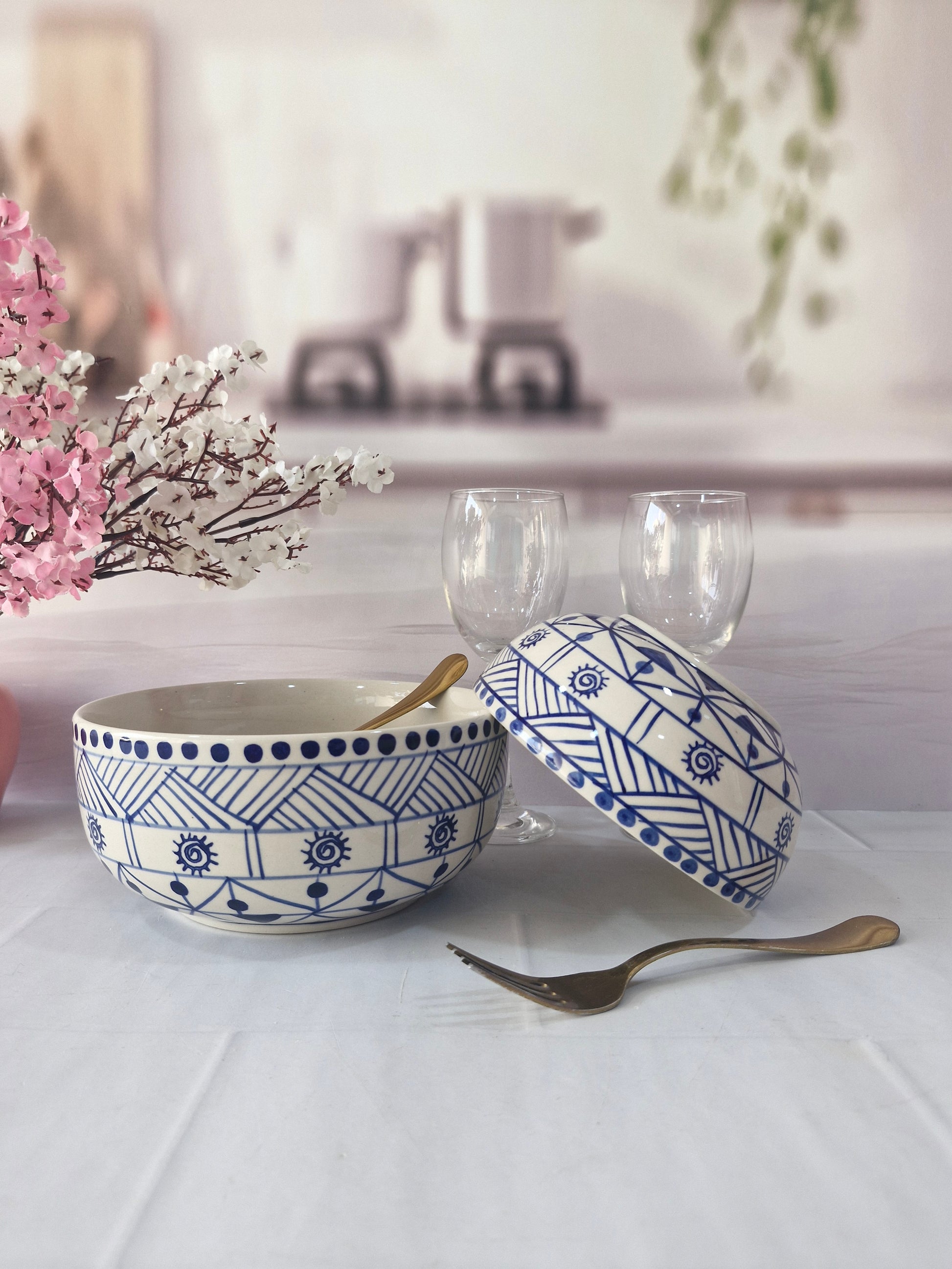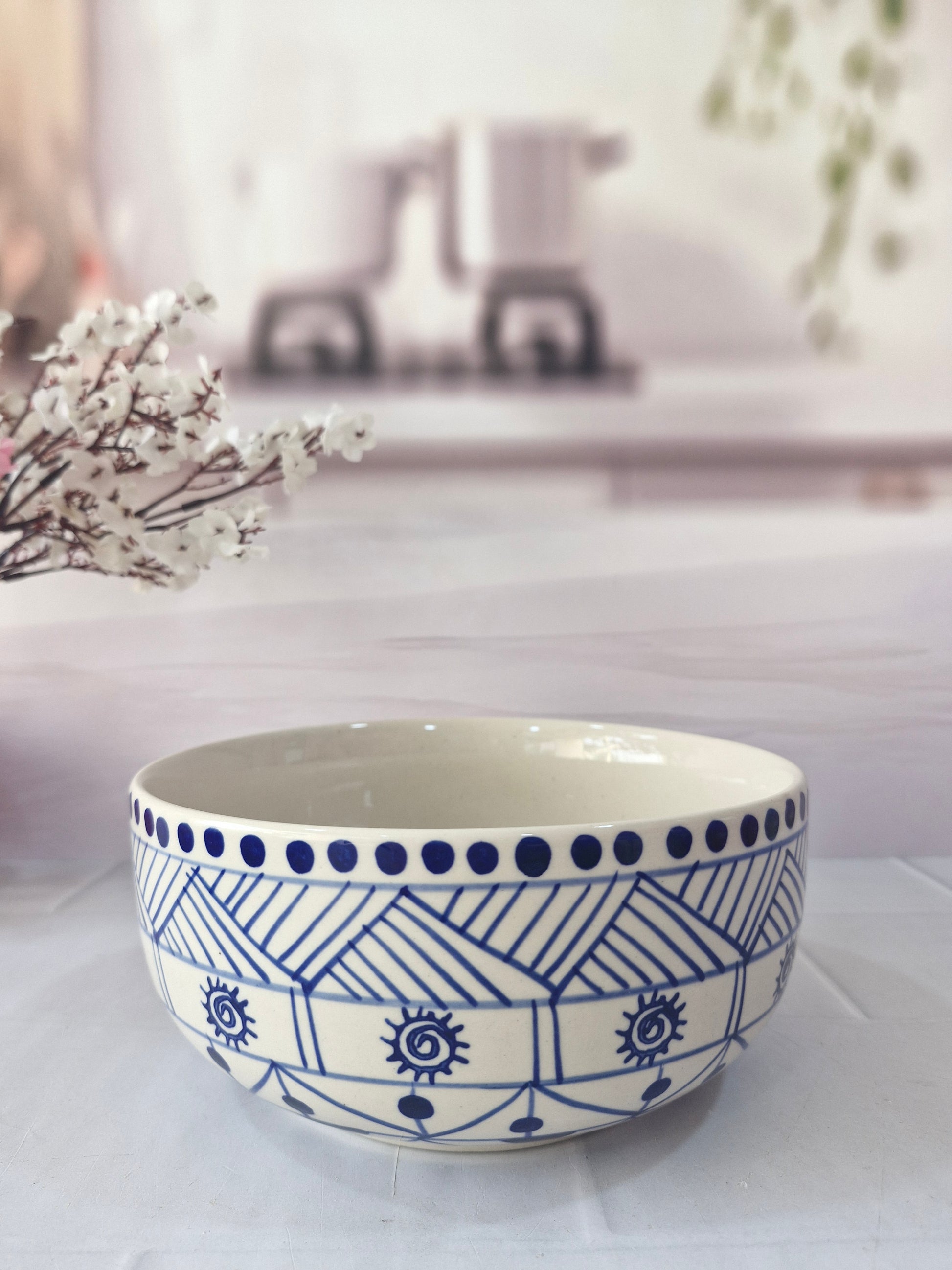 Blue Wonder Handpainted Ceramic Serving Round Dining Bowls