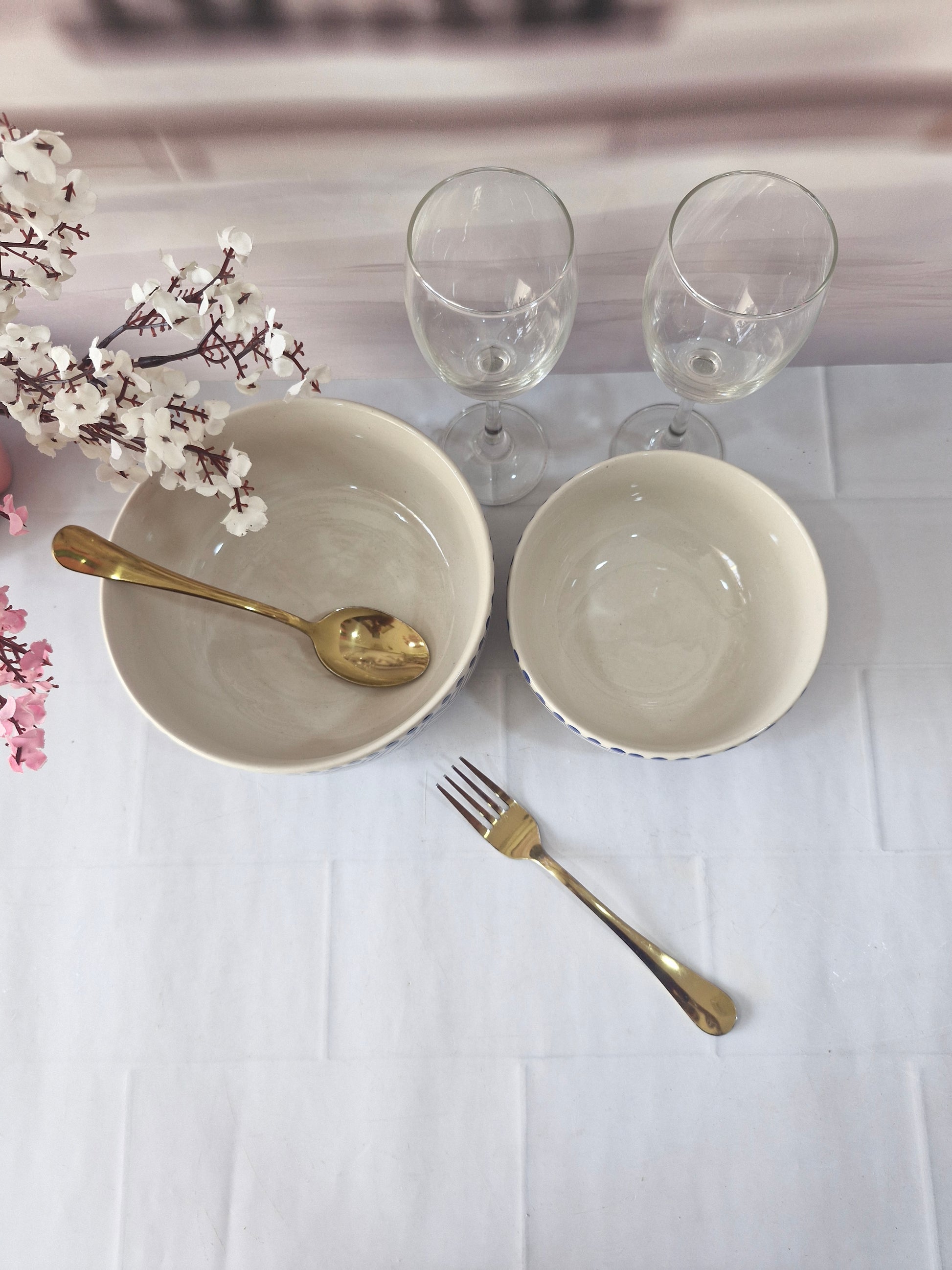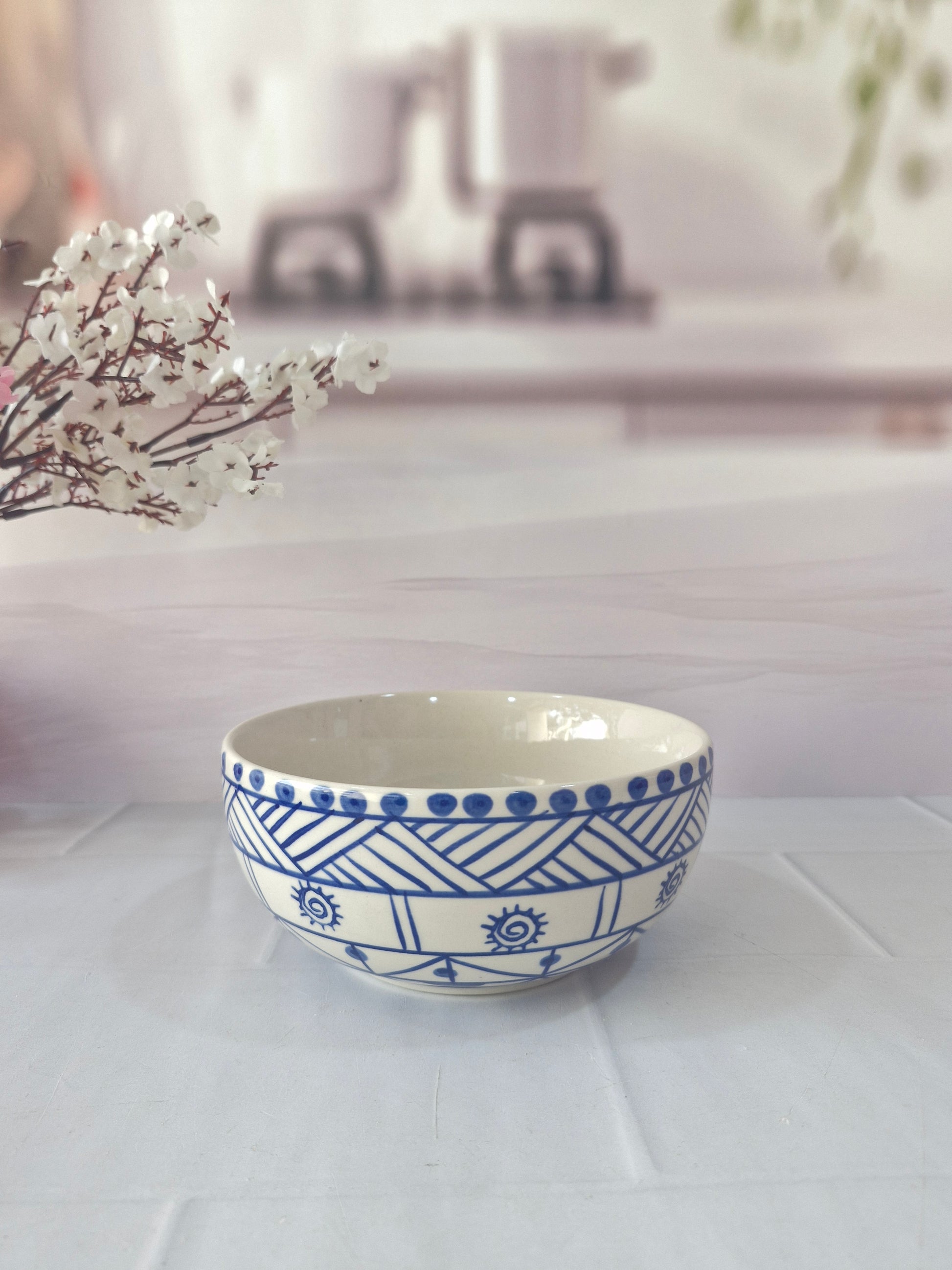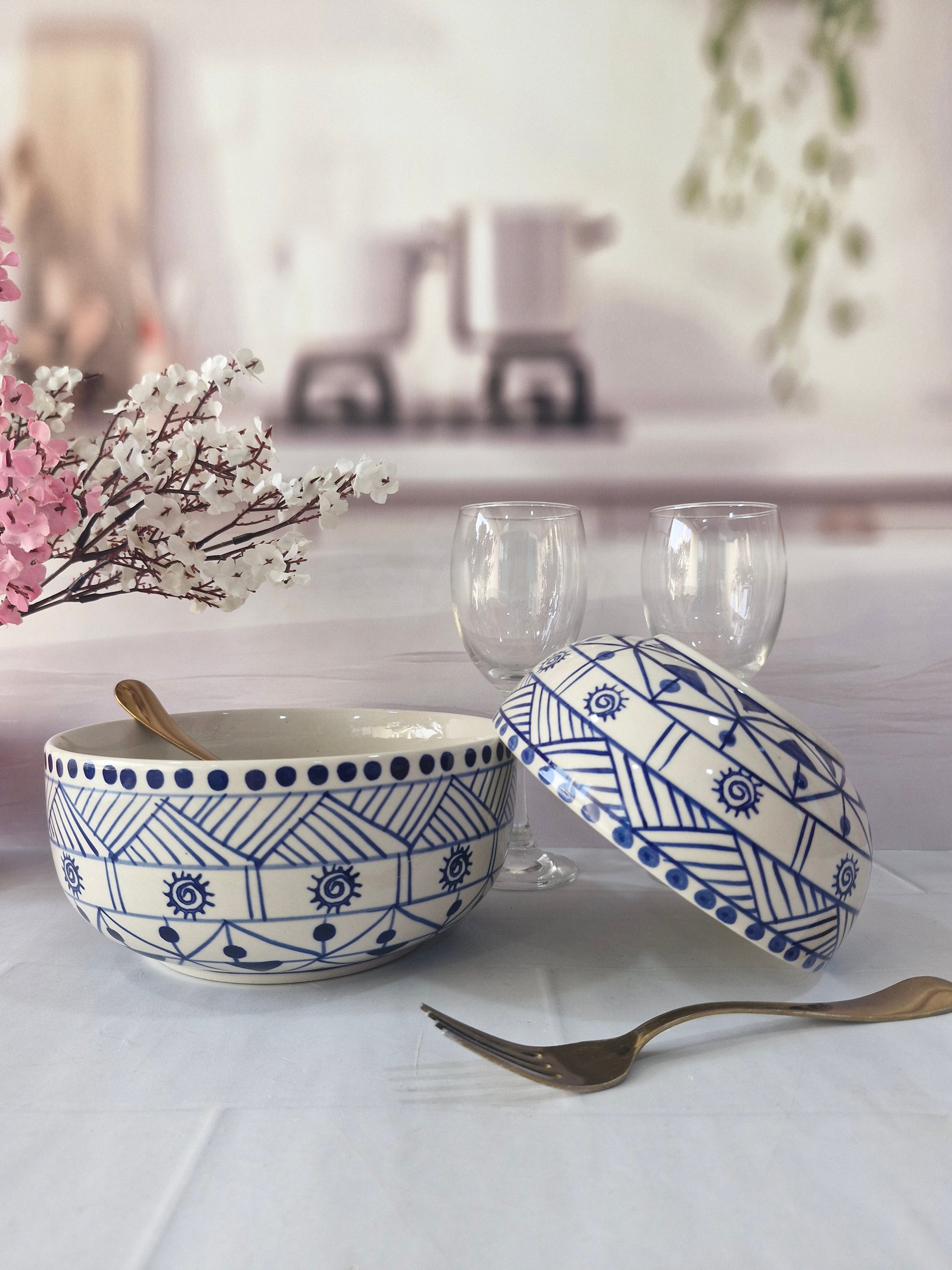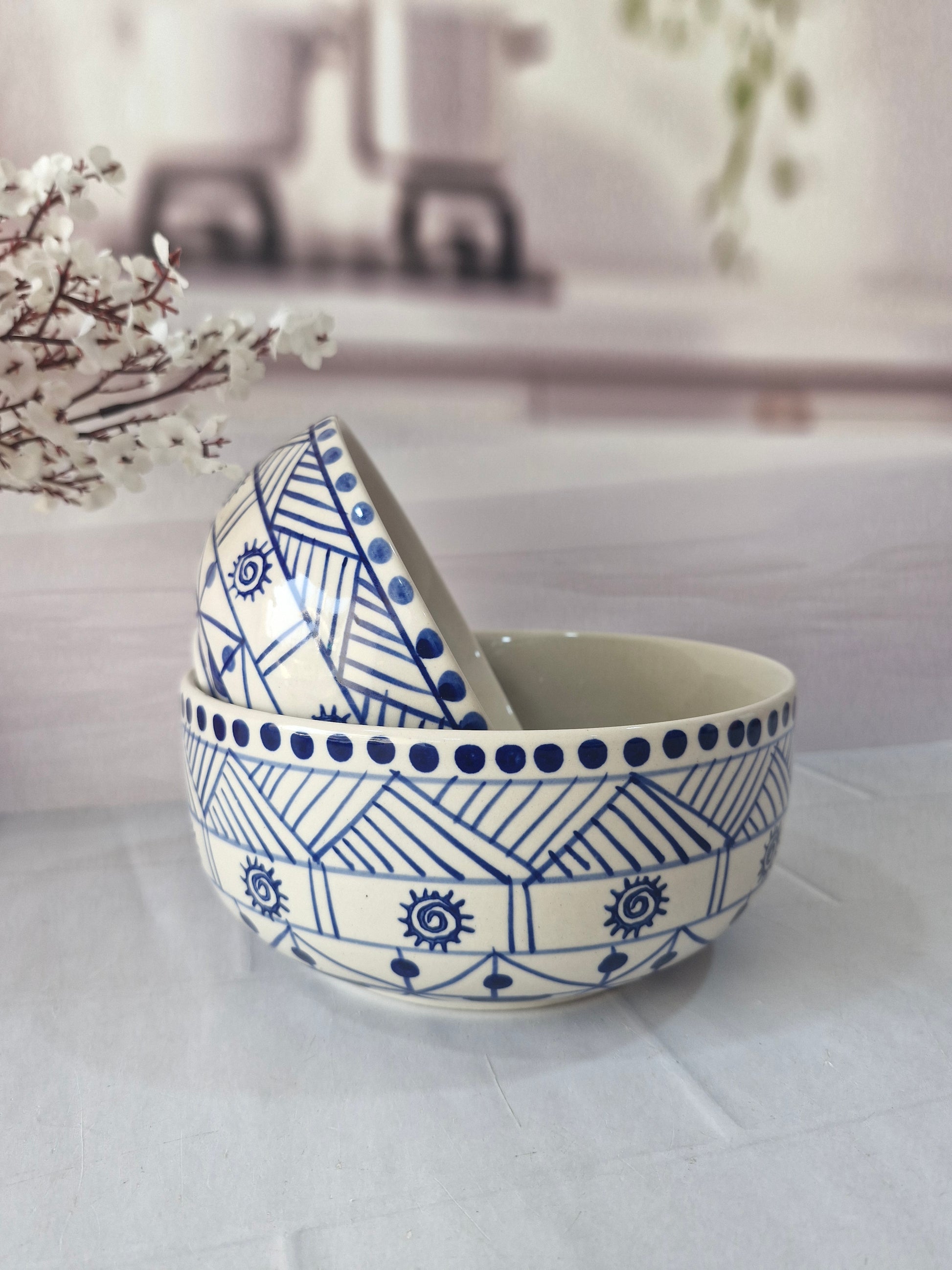 Blue Wonder Handpainted Ceramic Serving Round Dining Bowls