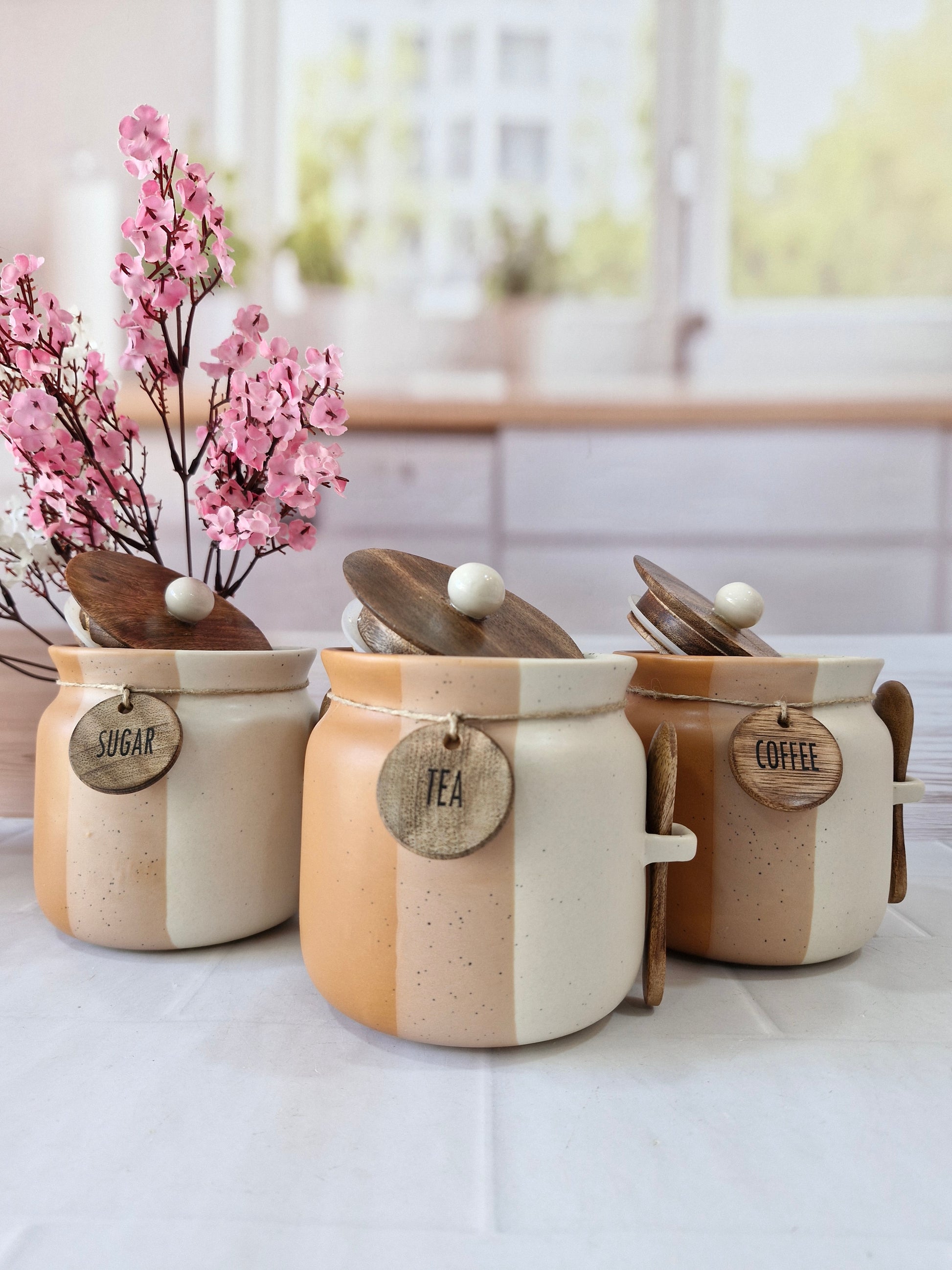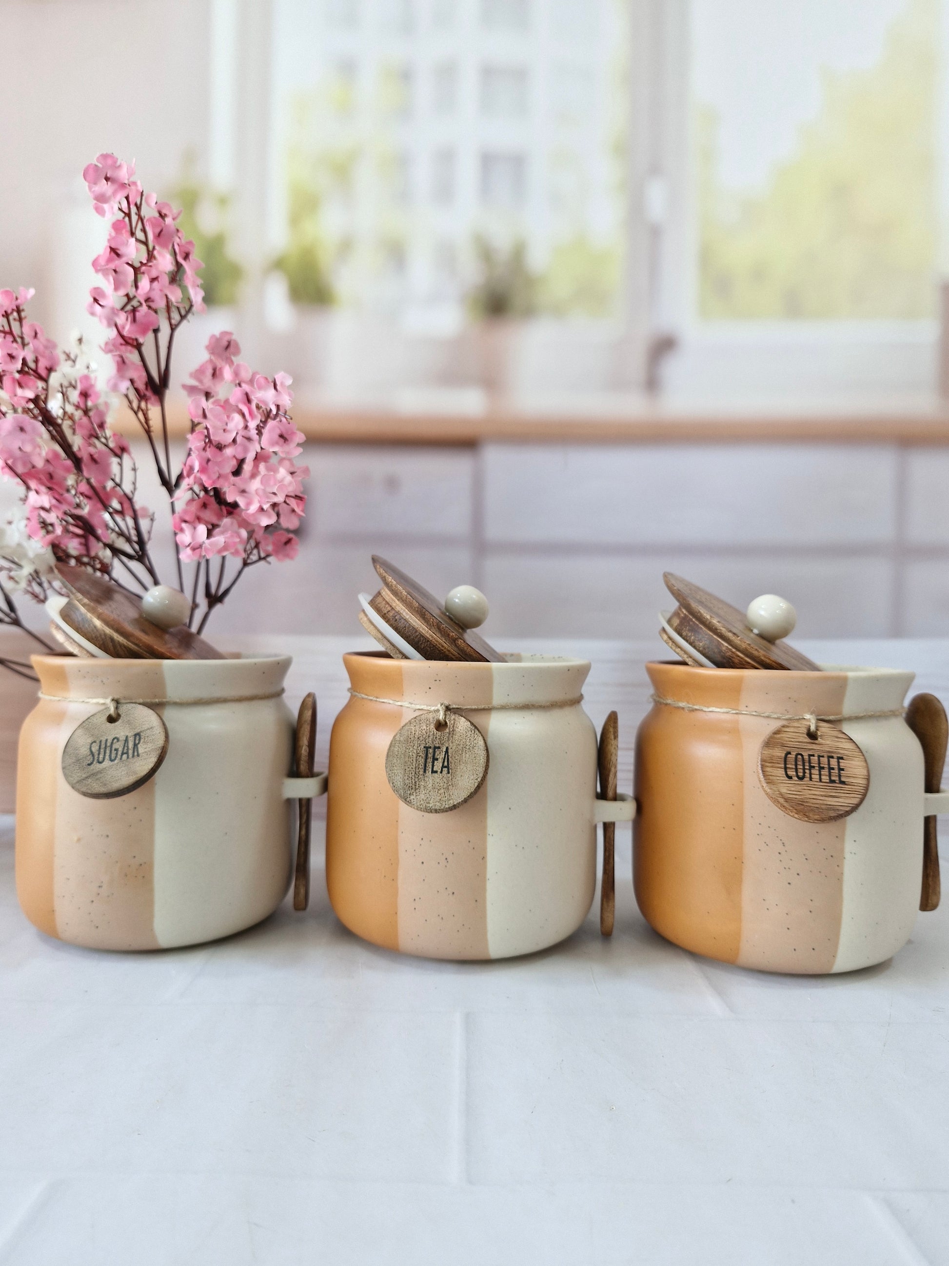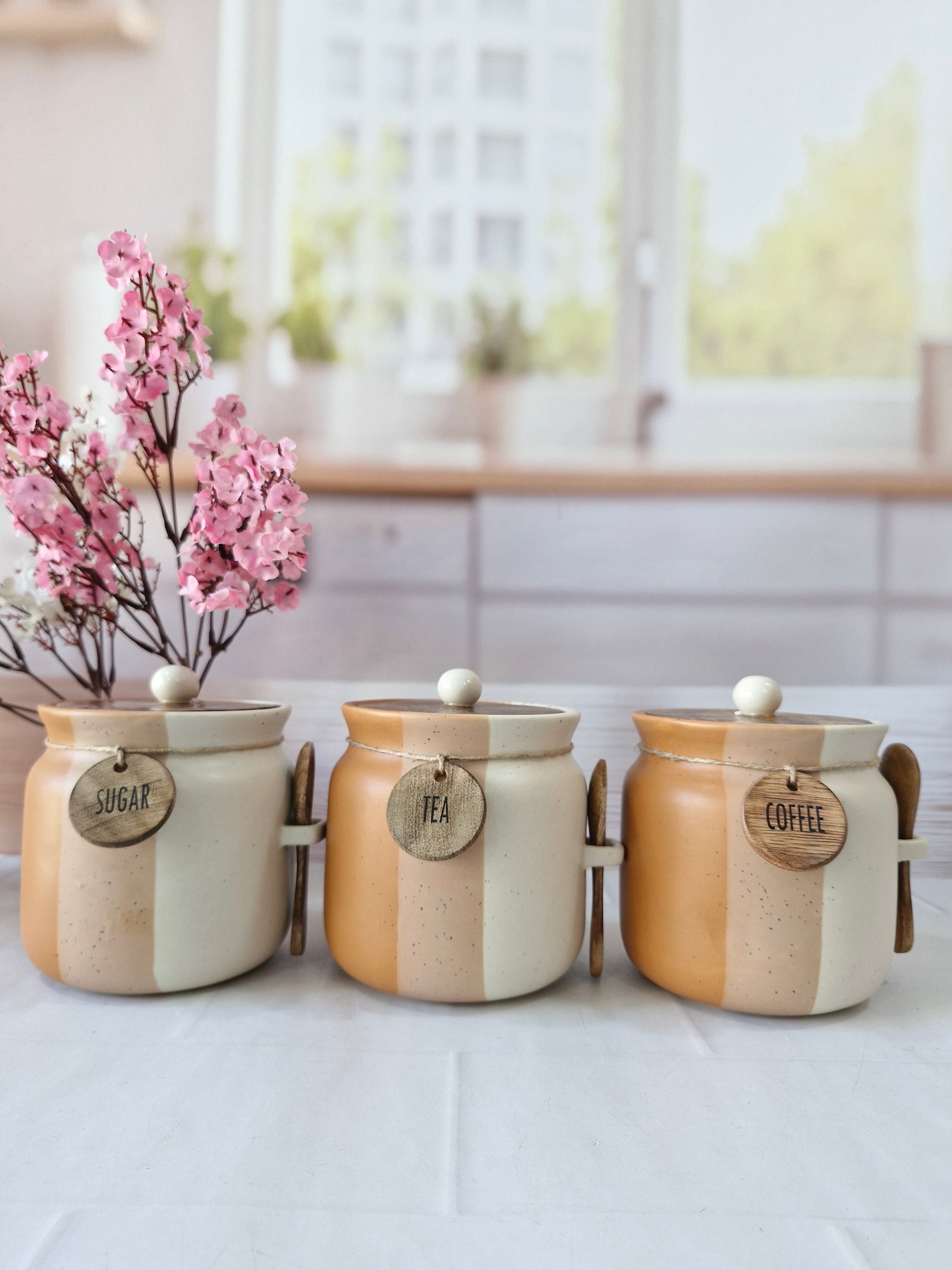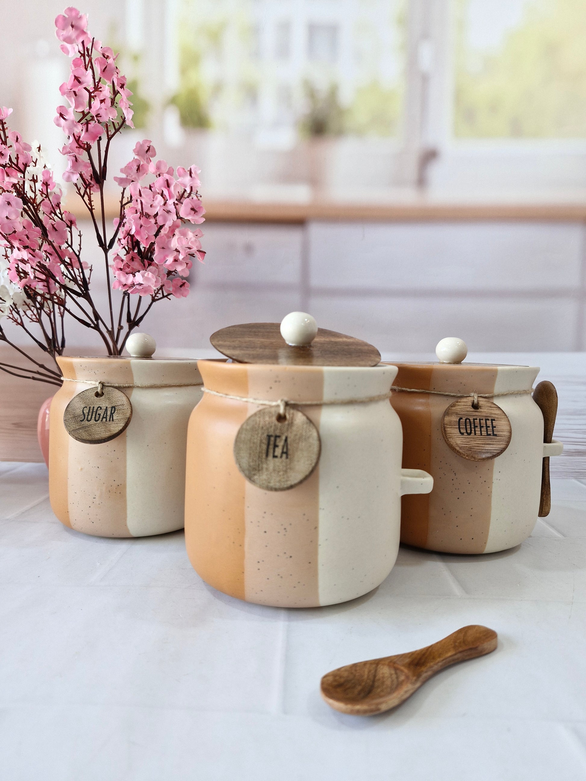 Desert Glow Two-Tone line Airtight Matka Solid Ceremic Tea,coffee, Sugar,Canisters 500ml