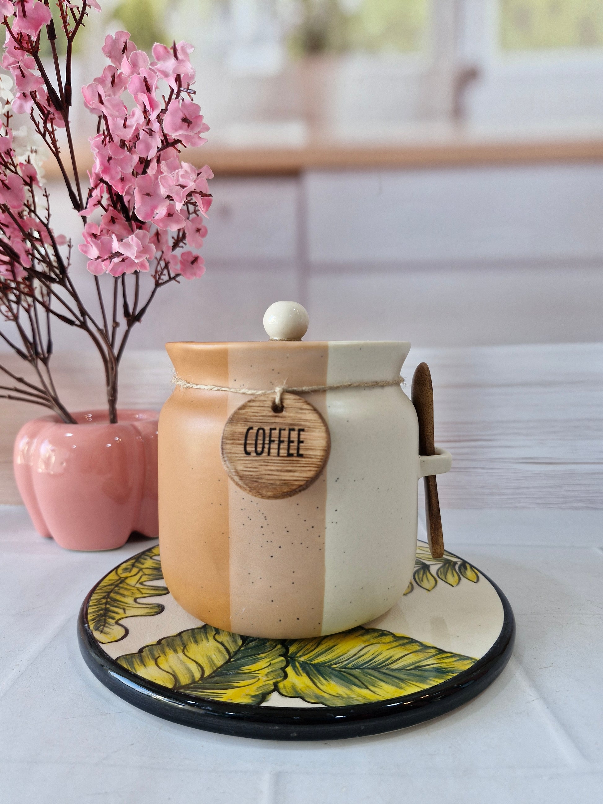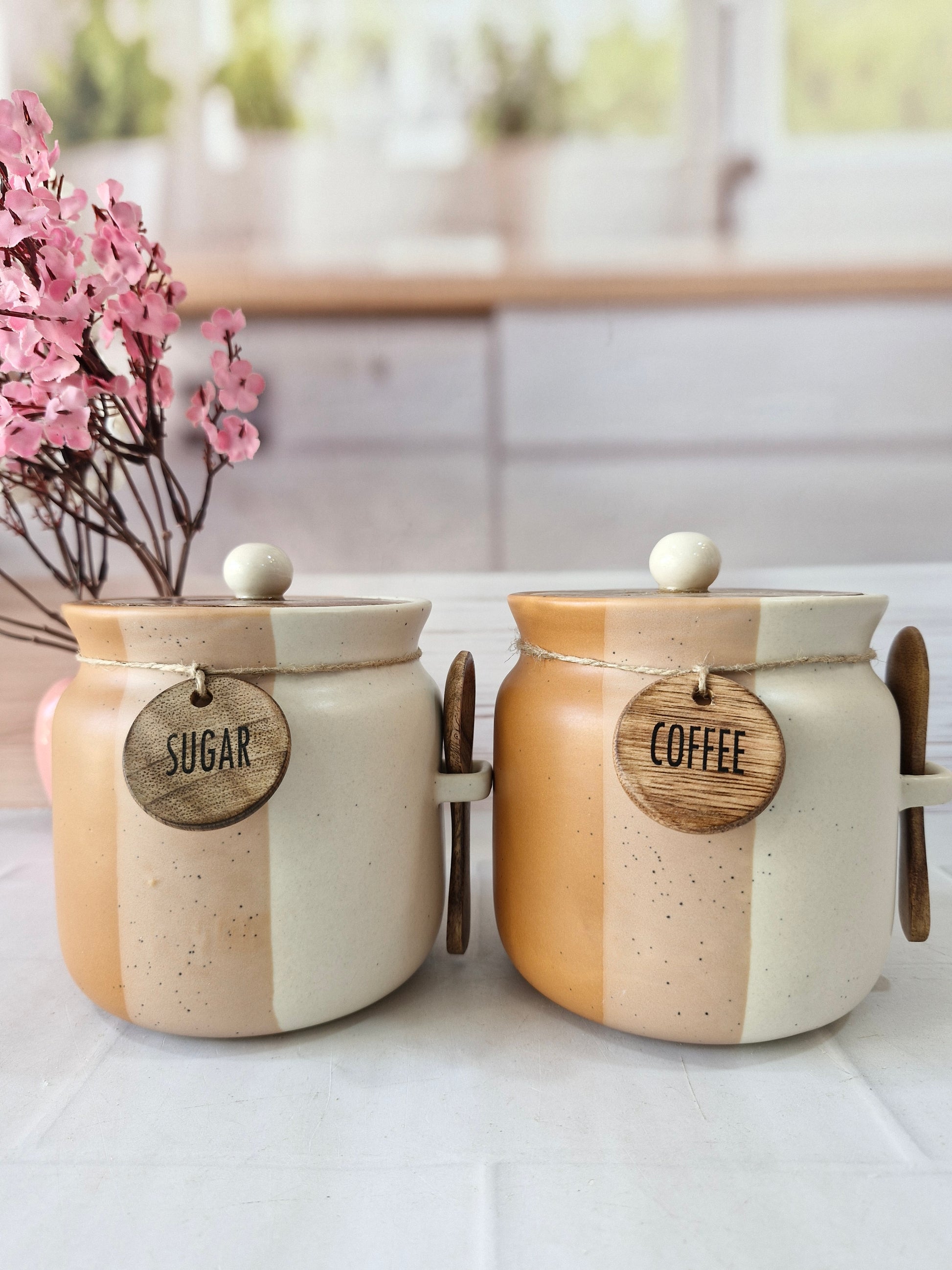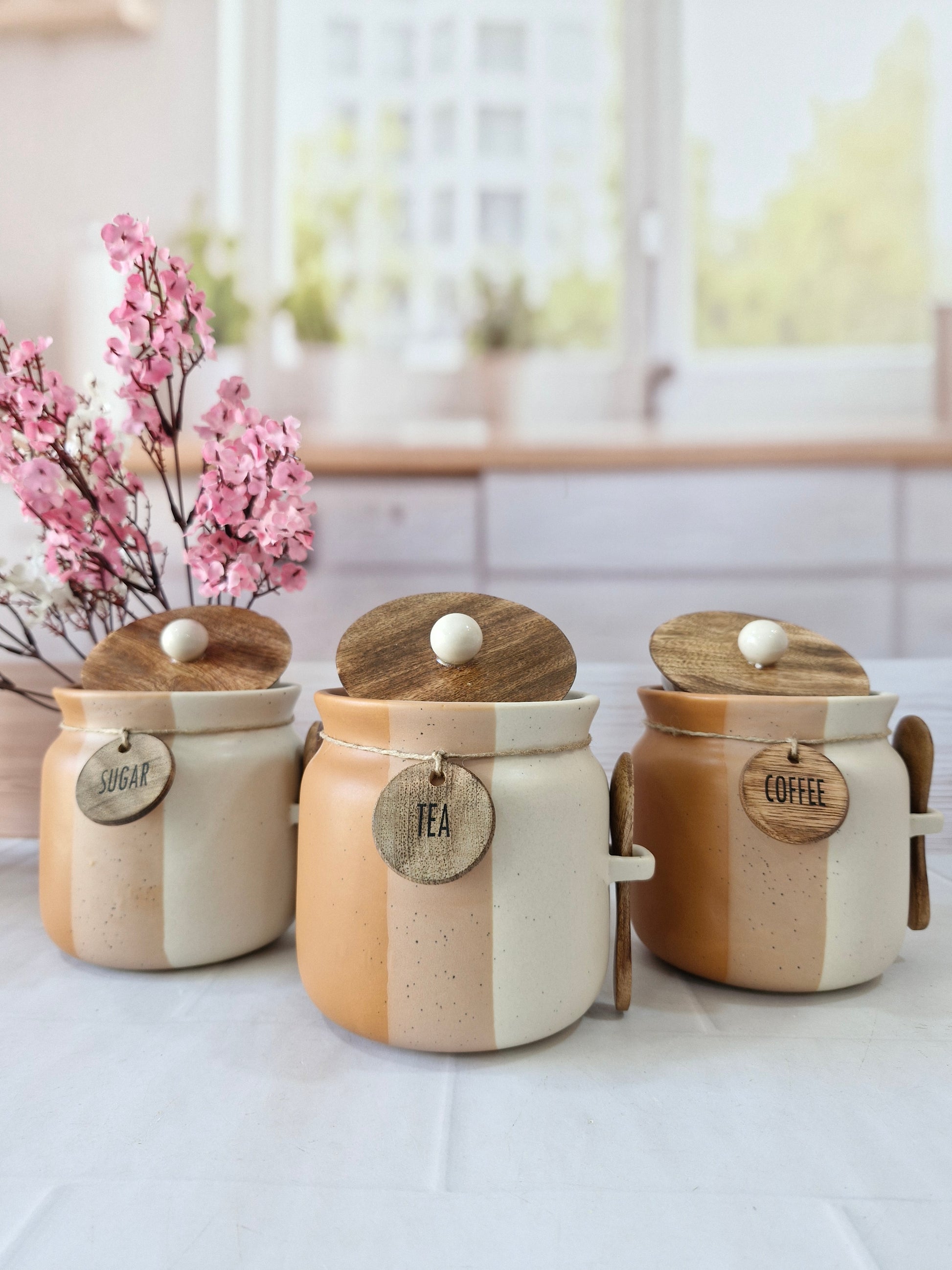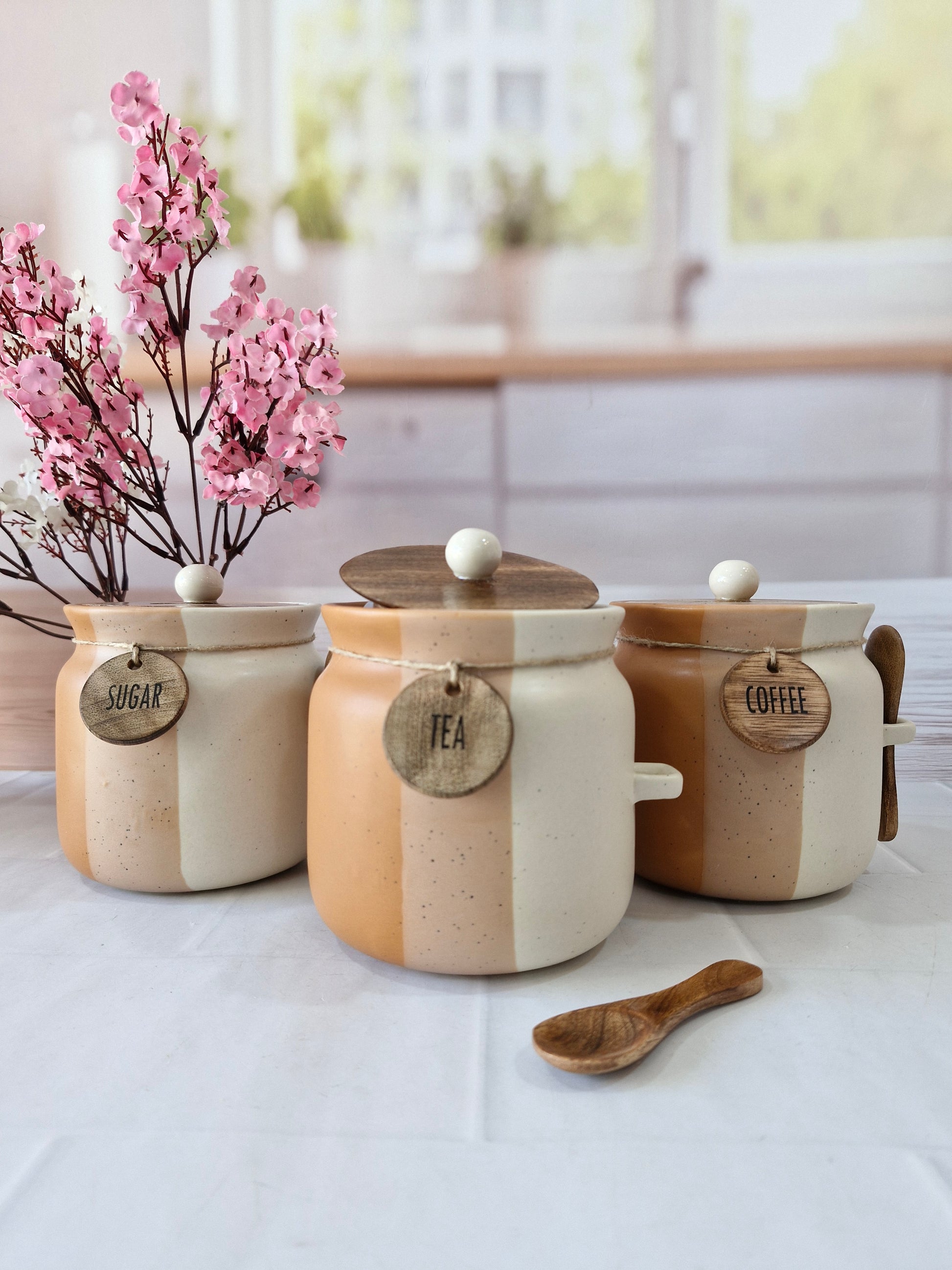 Desert Glow Two-Tone line Airtight Matka Solid Ceremic Tea,coffee, Sugar,Canisters 500ml