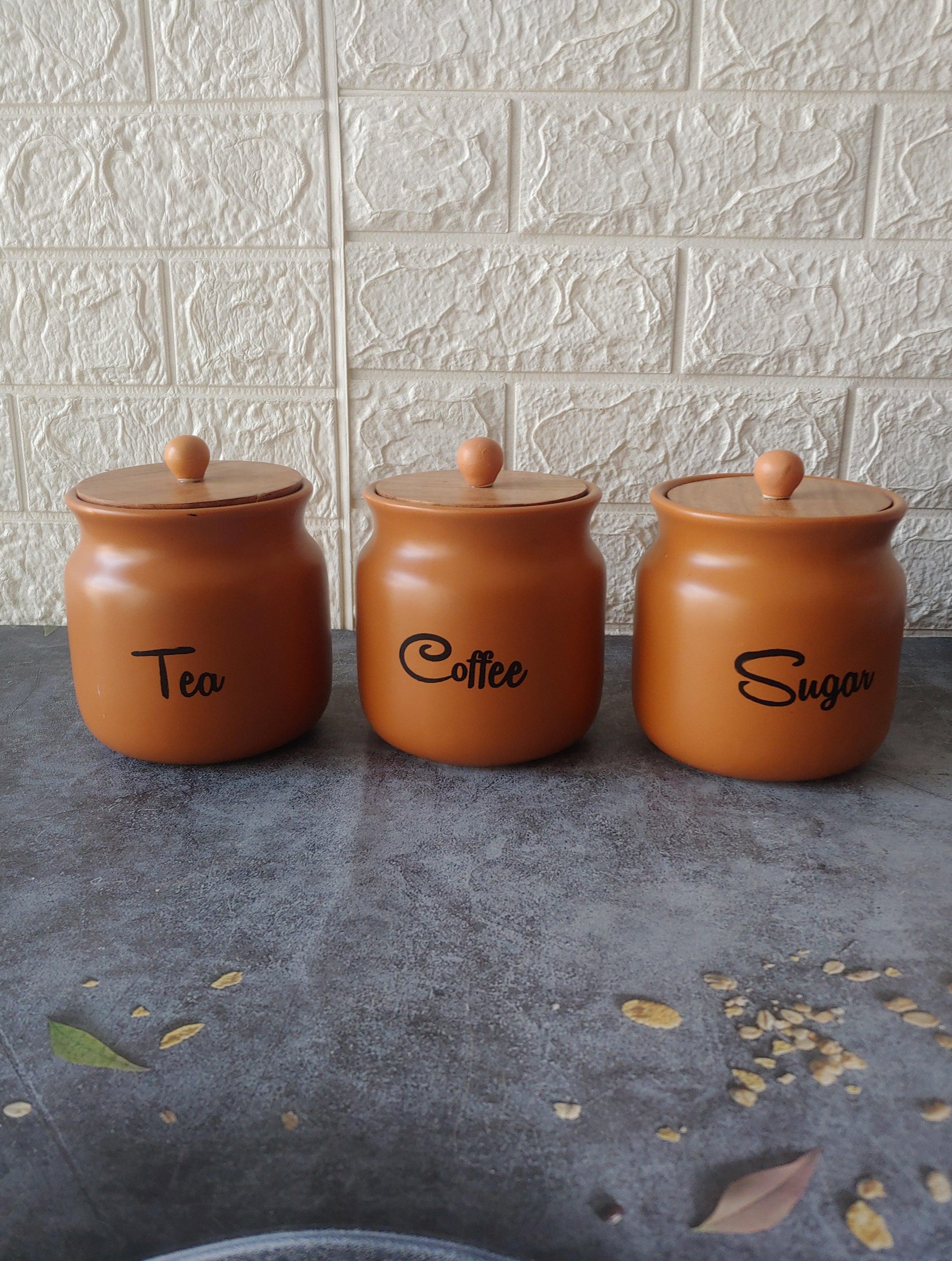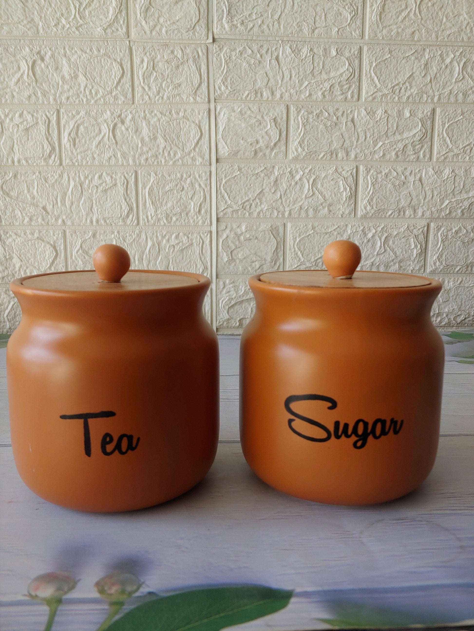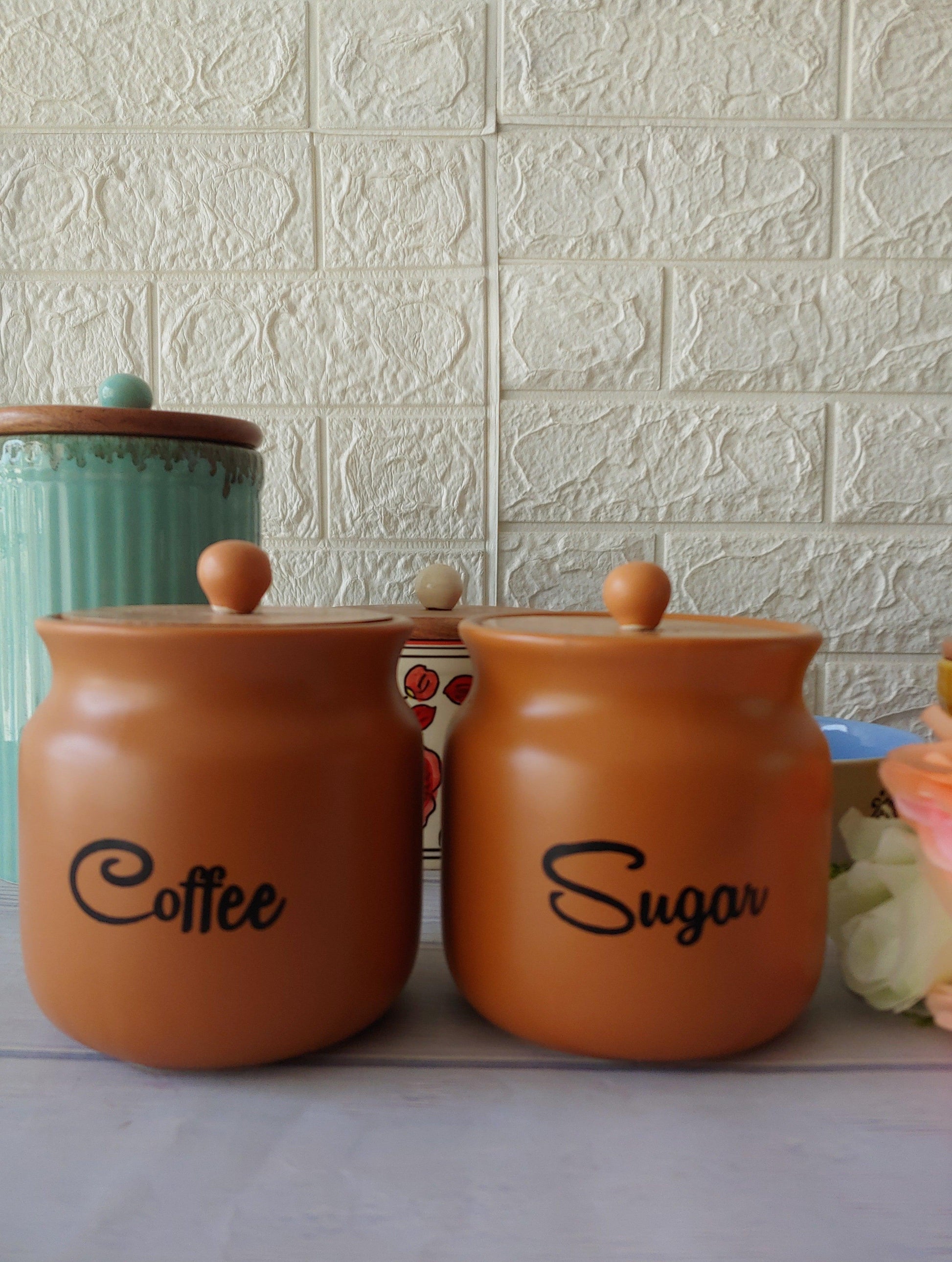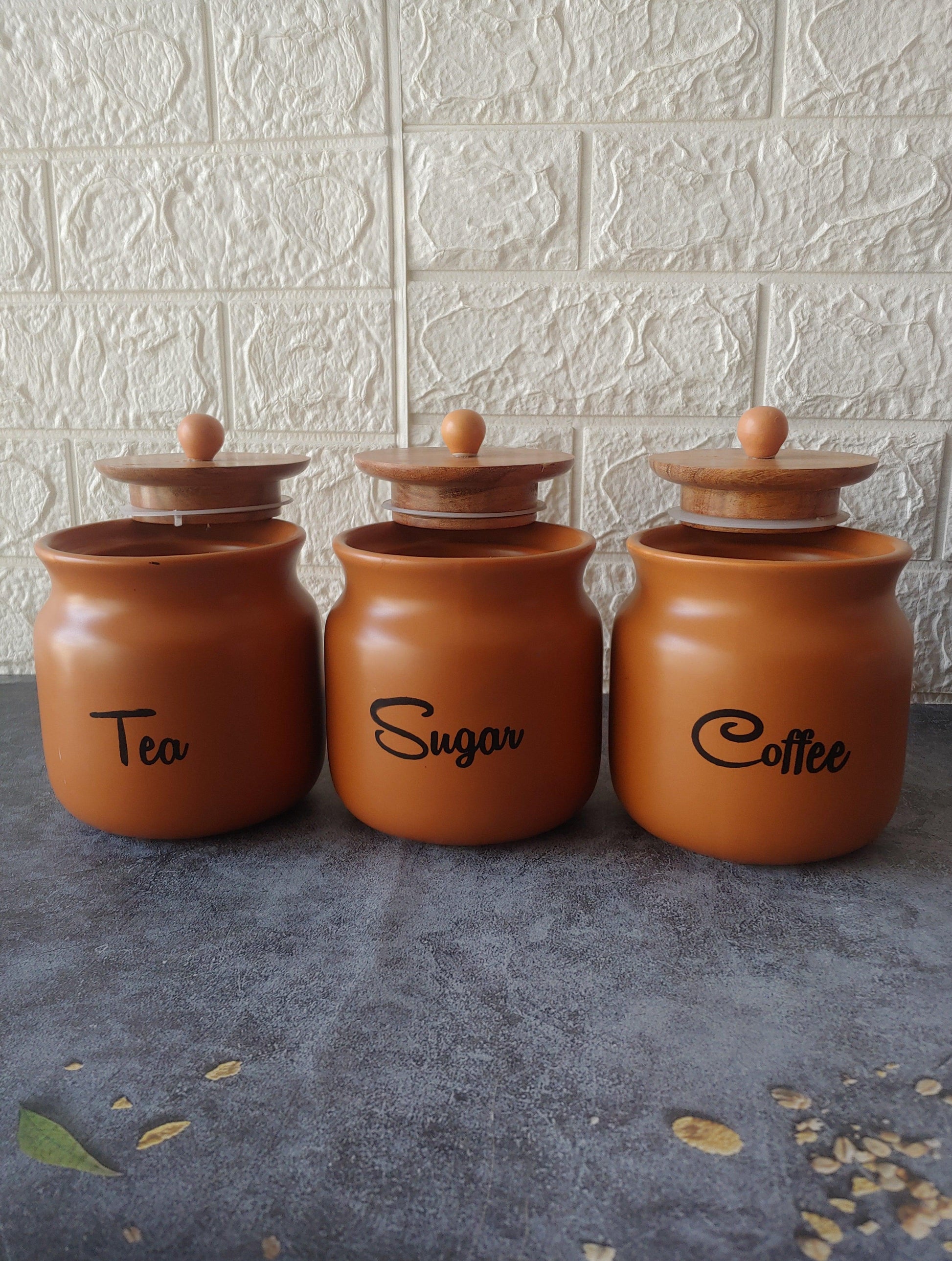 Brown Matka airtight Solid Ceremic Tea Coffee Sugar containers 500ml