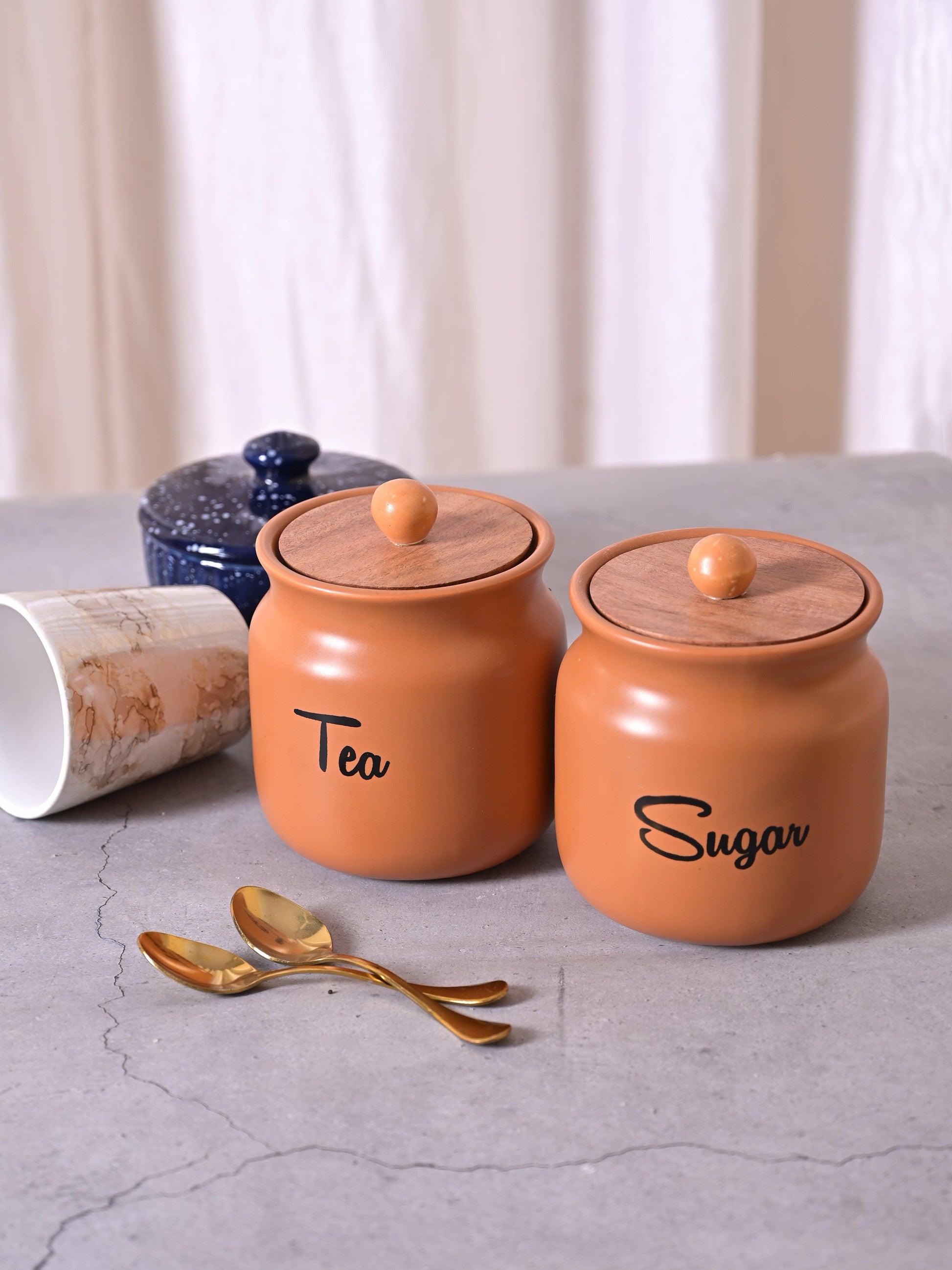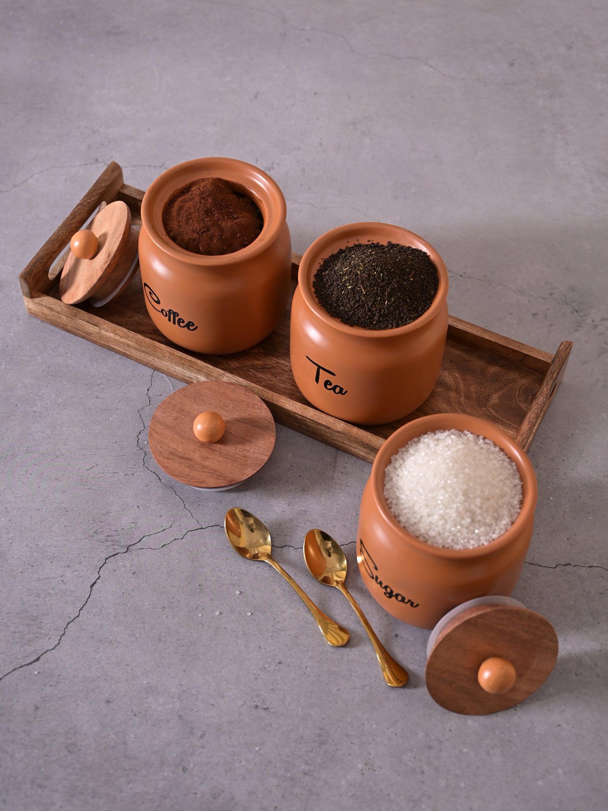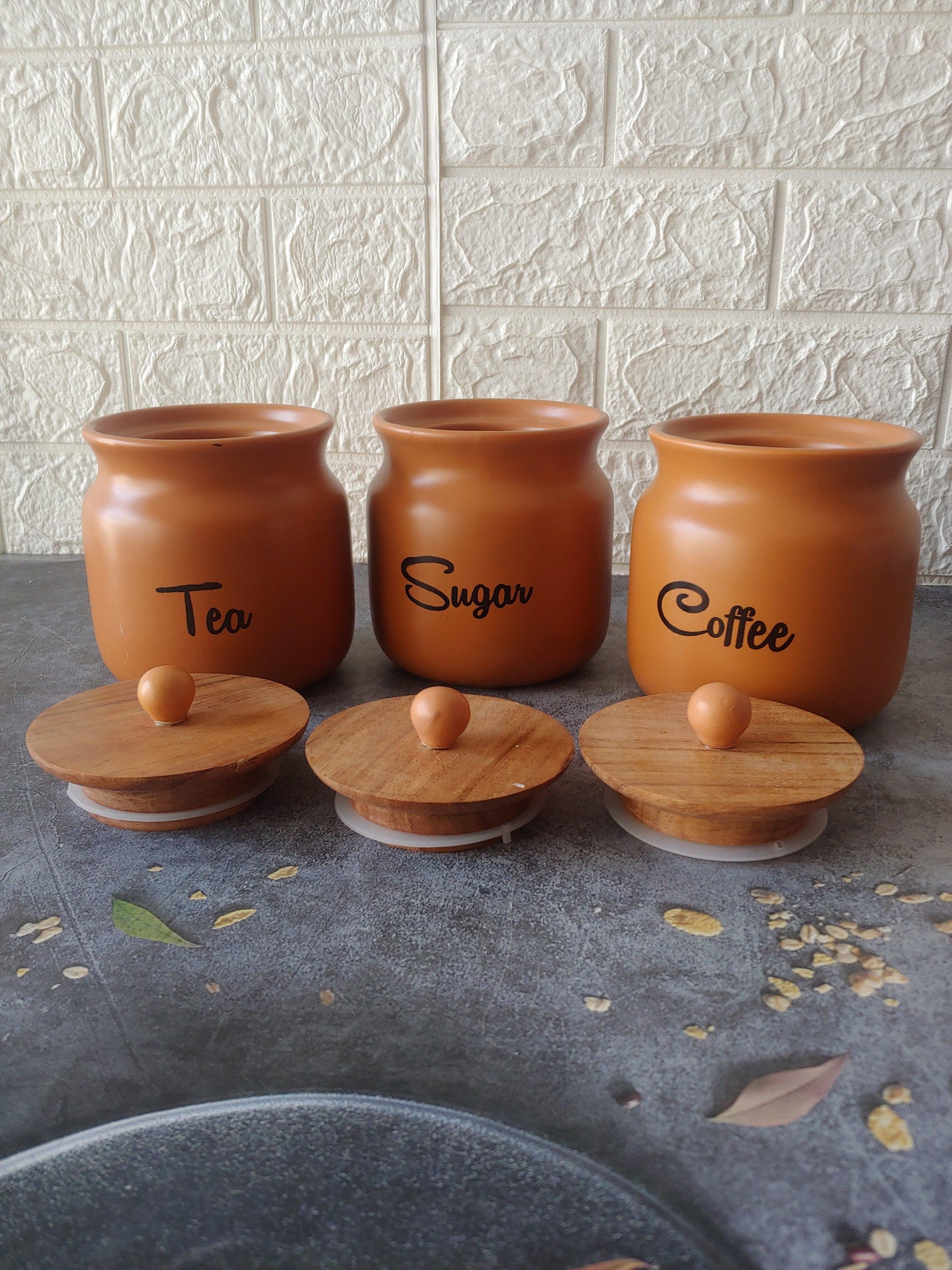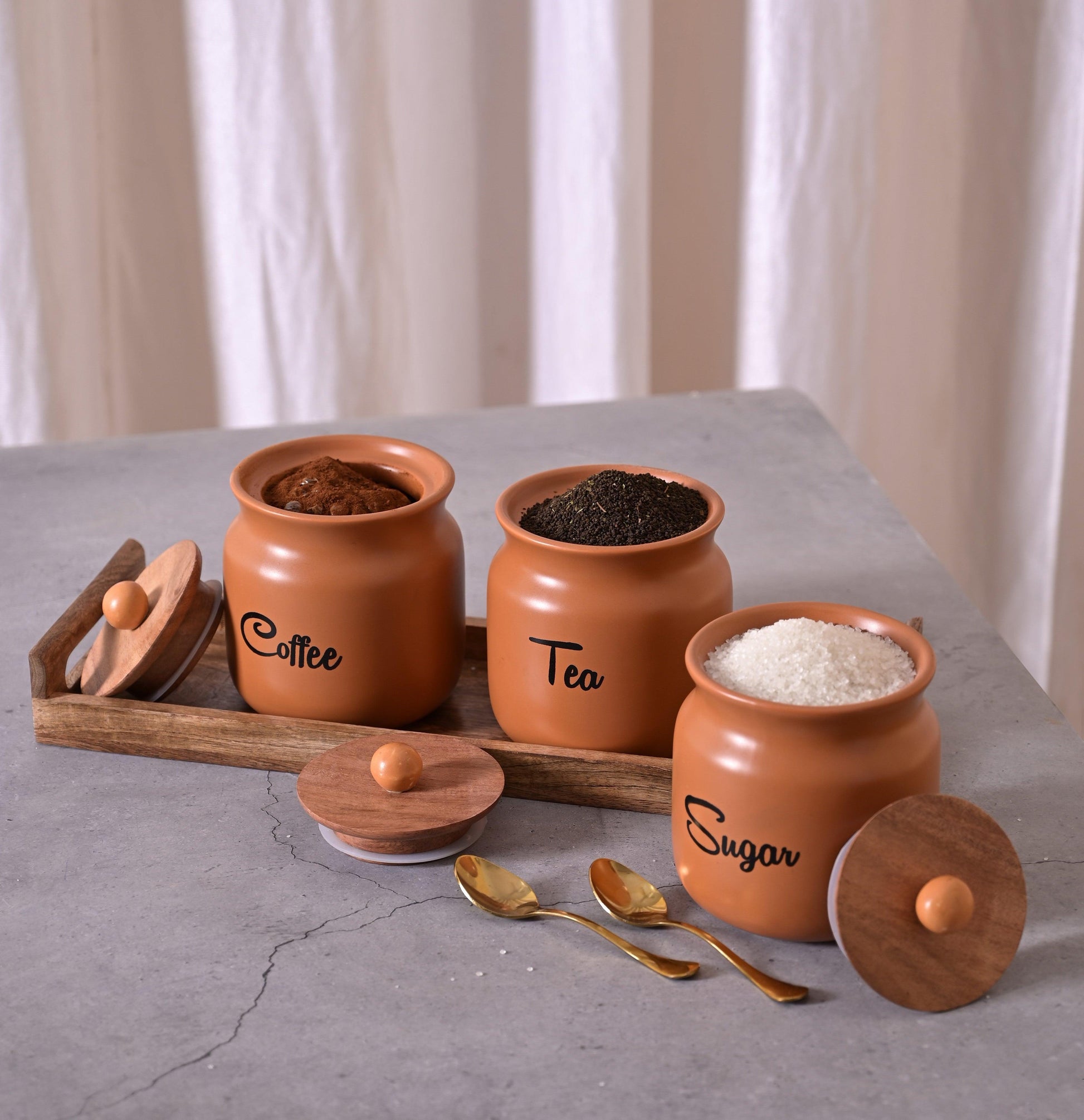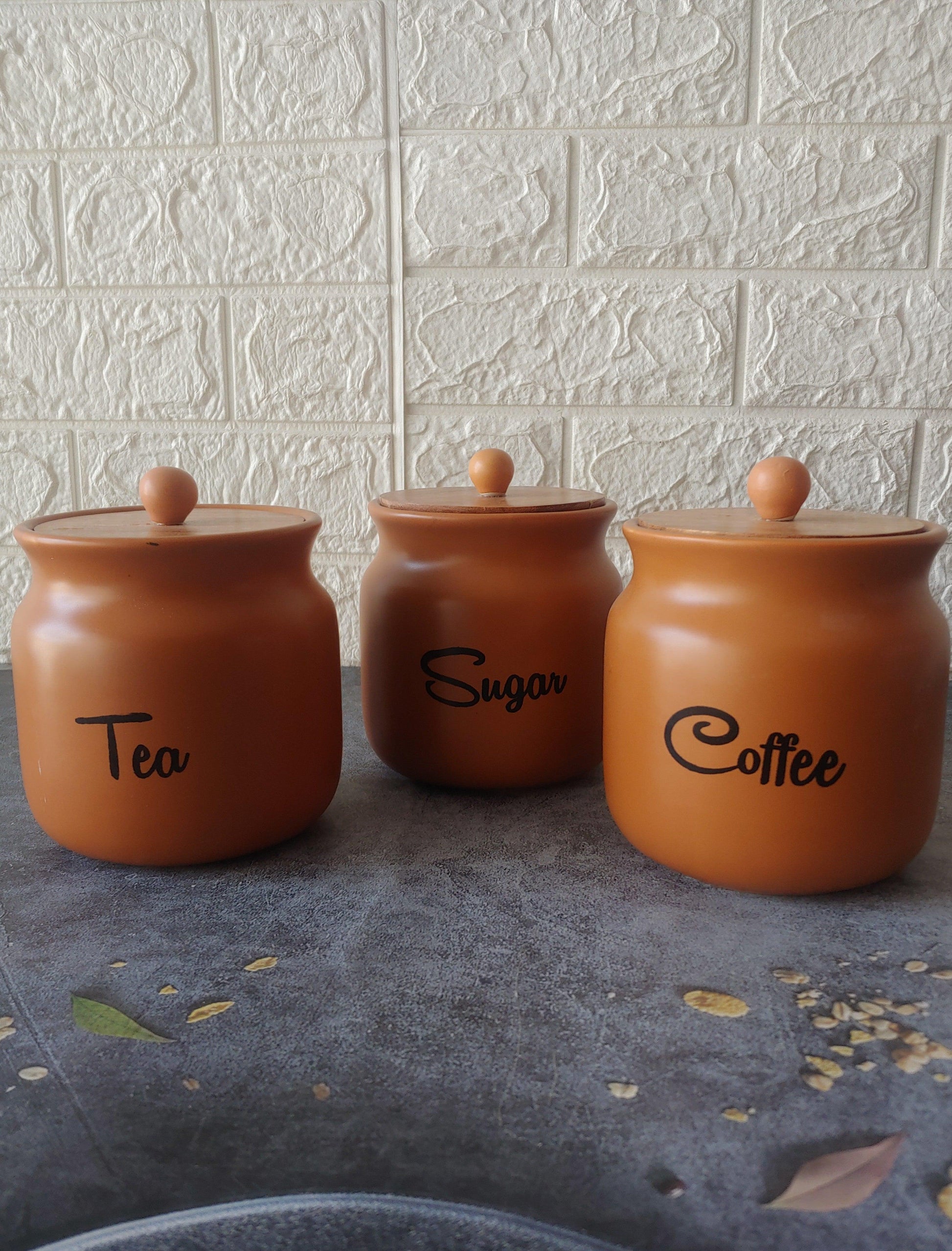 Brown Matka airtight Solid Ceremic Tea Coffee Sugar containers 500ml