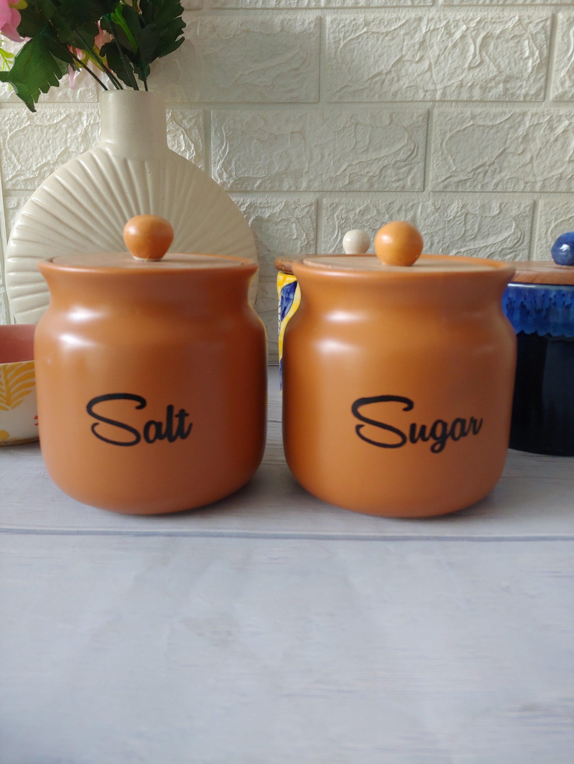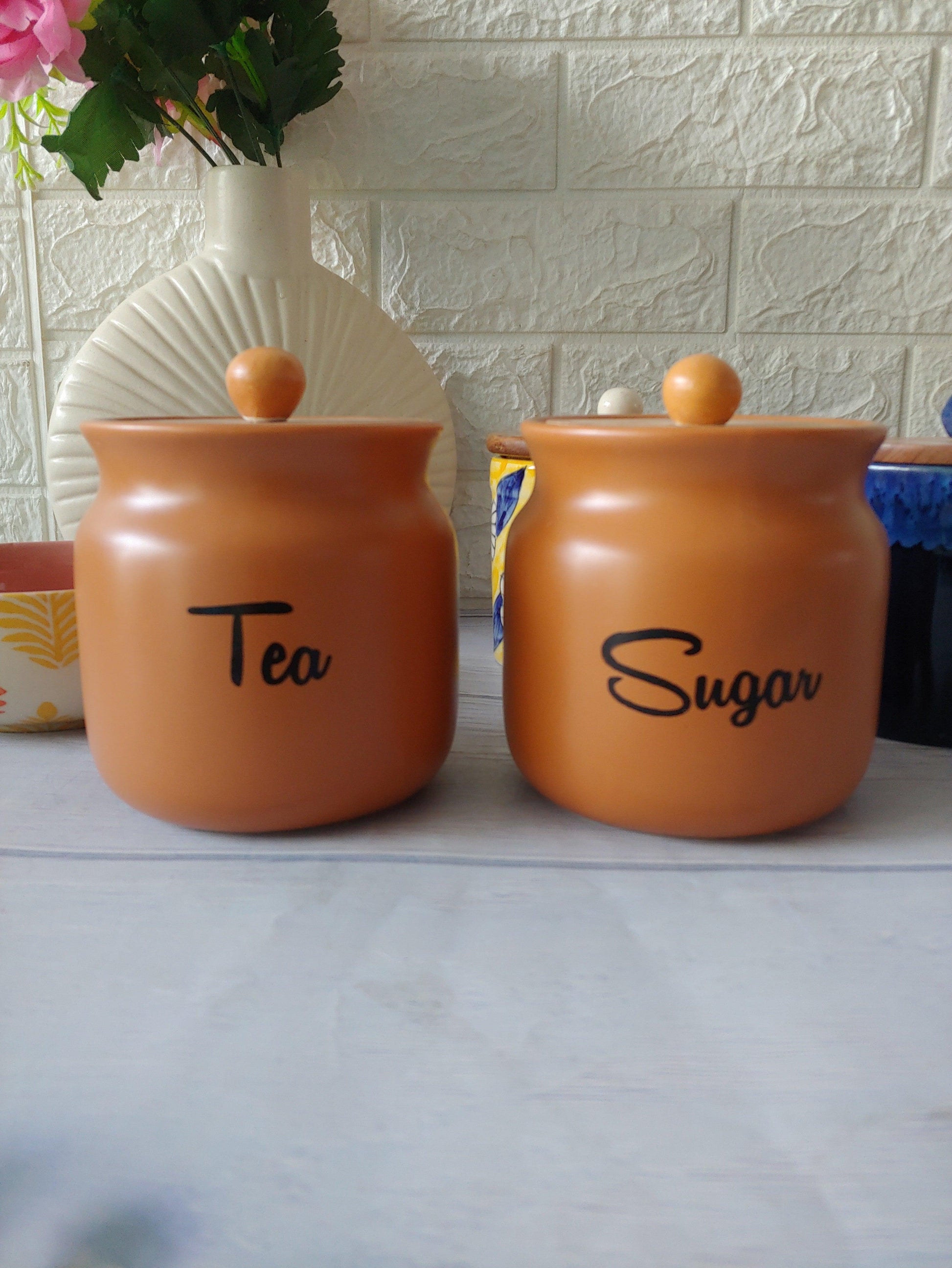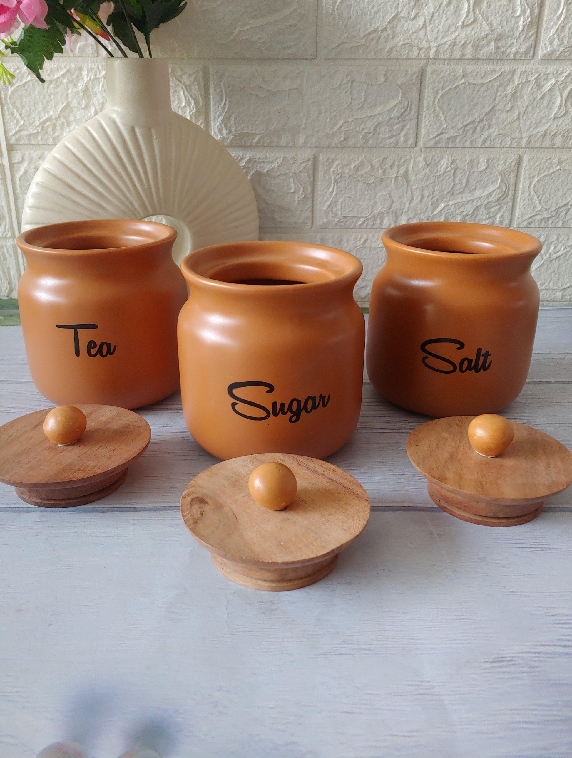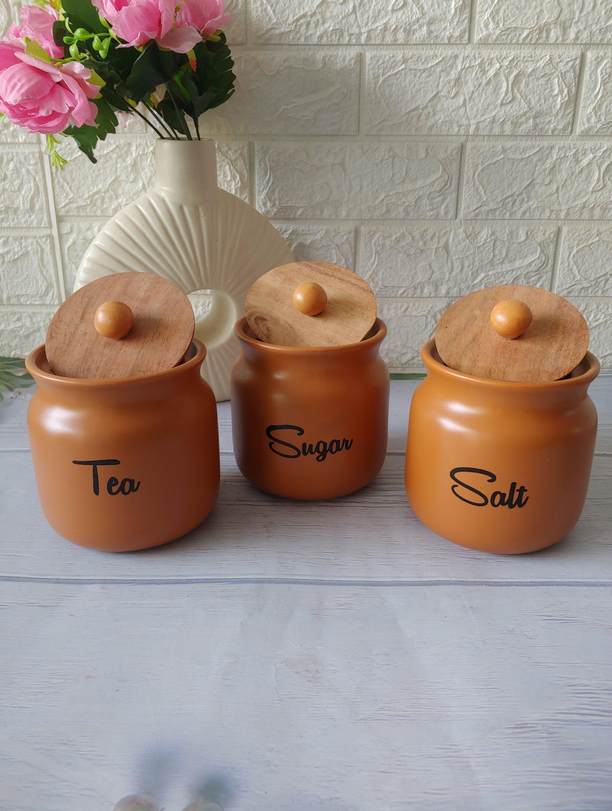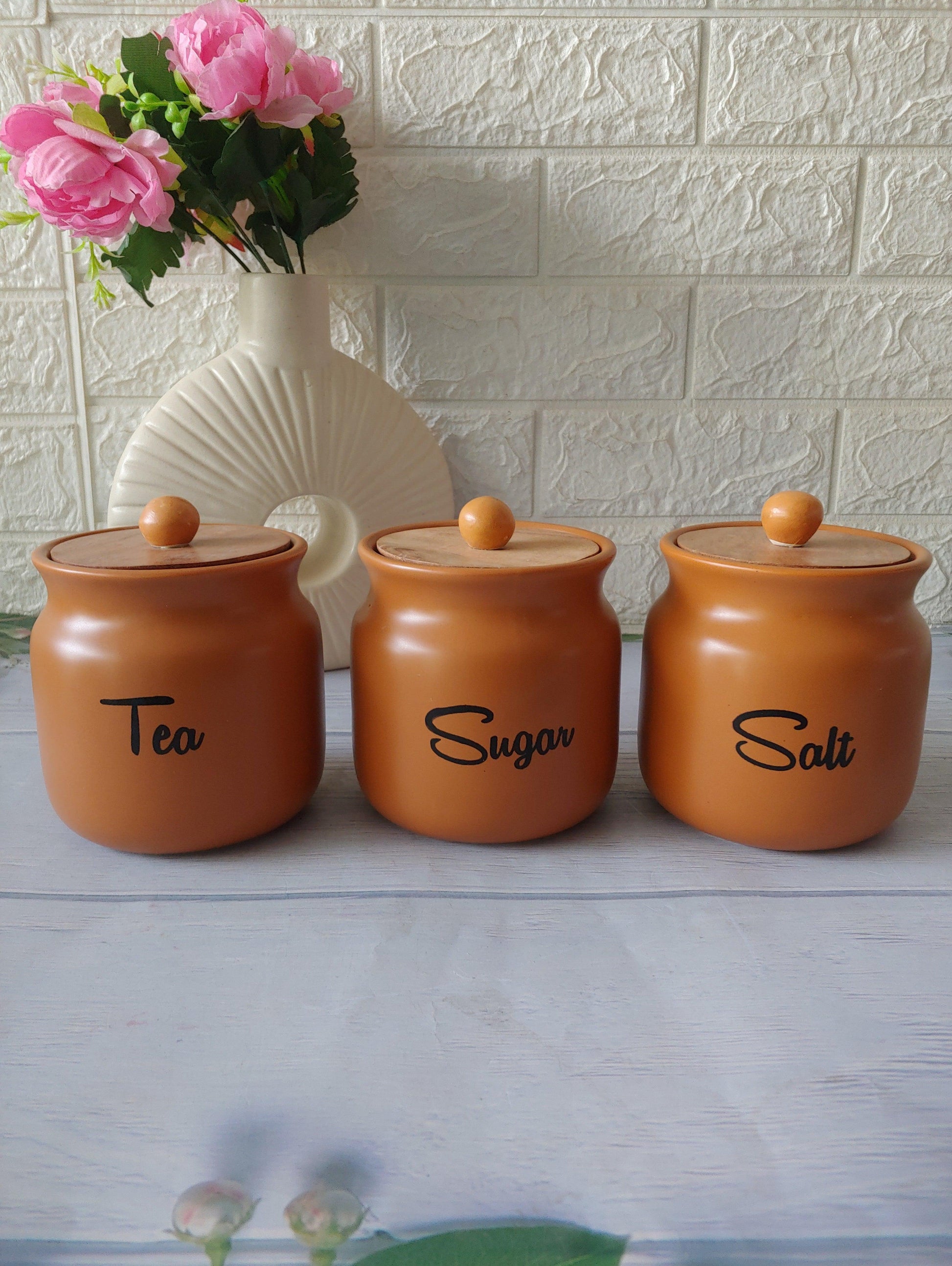 Brown Matka airtight Solid Ceremic Tea Sugar Salt containers 500ml