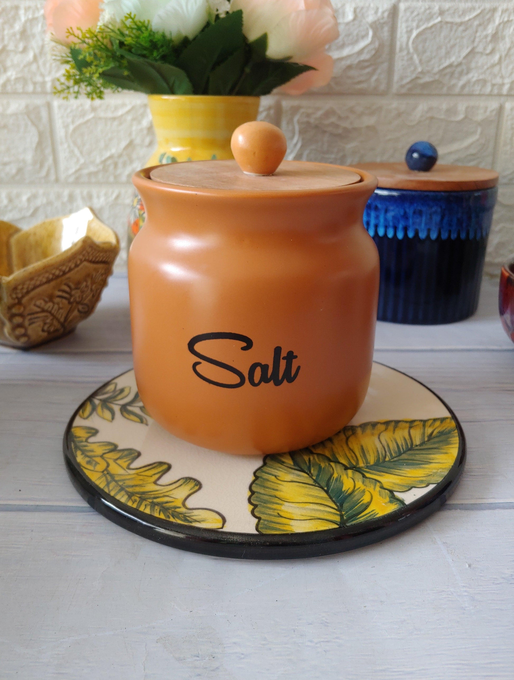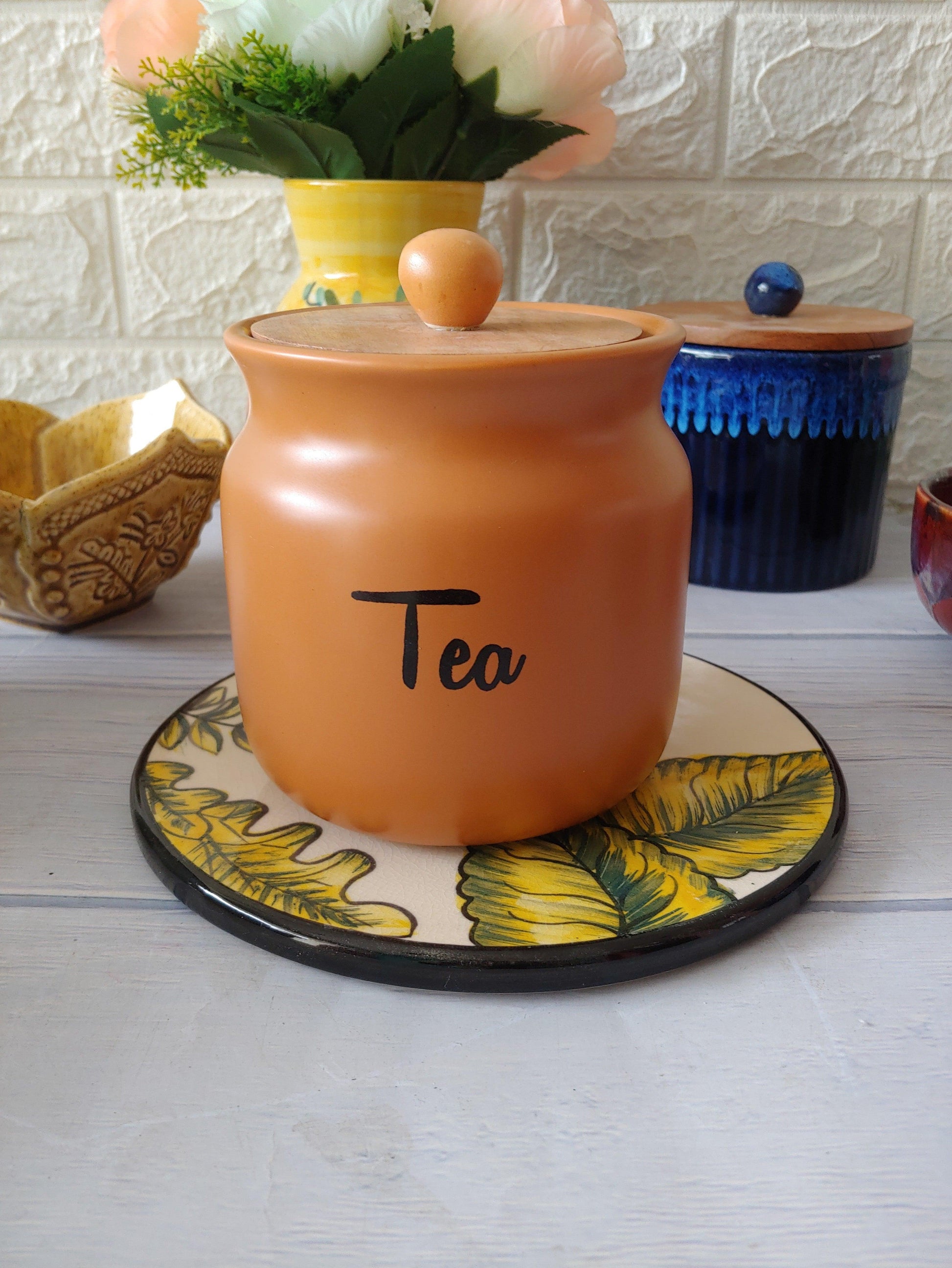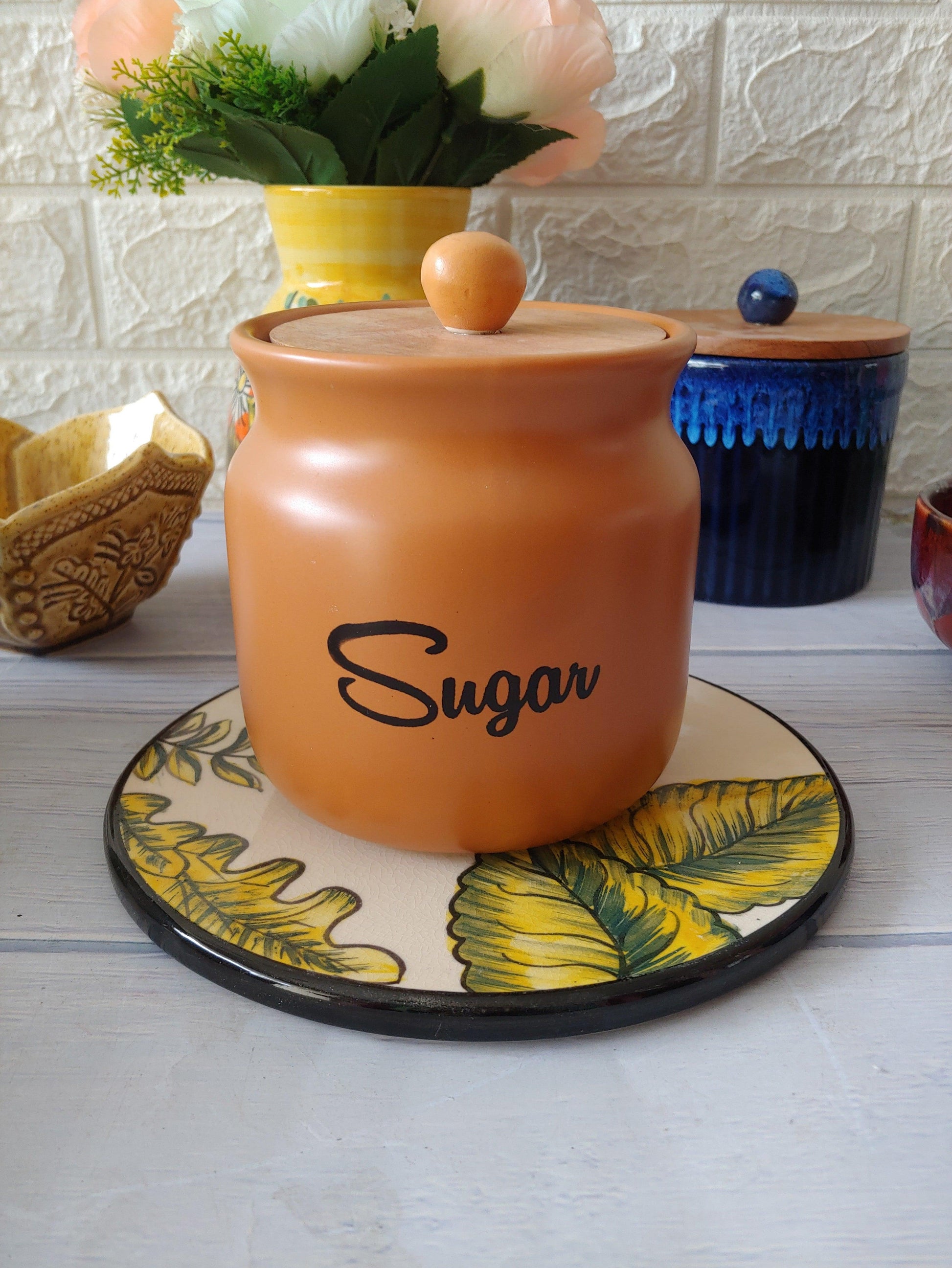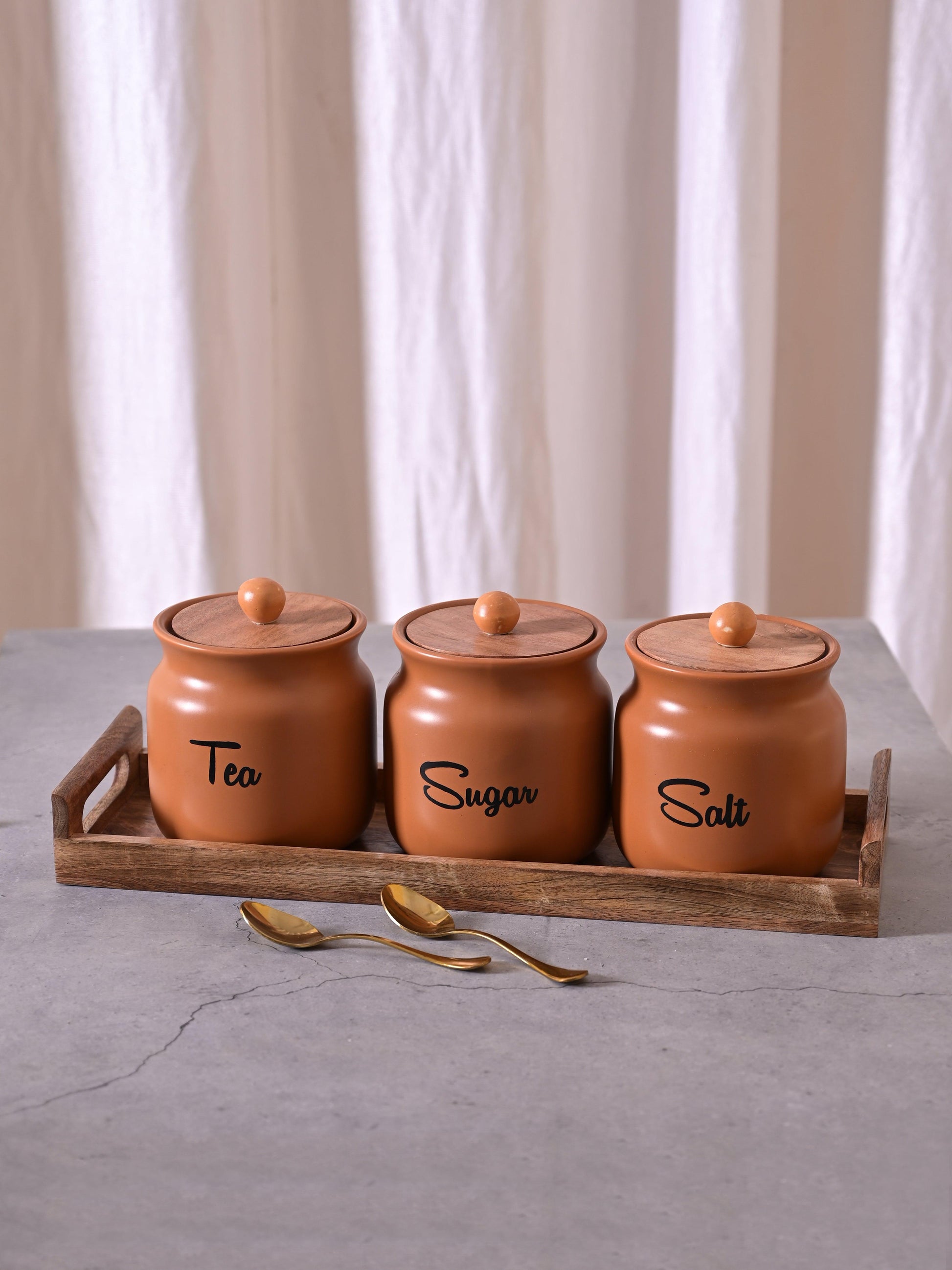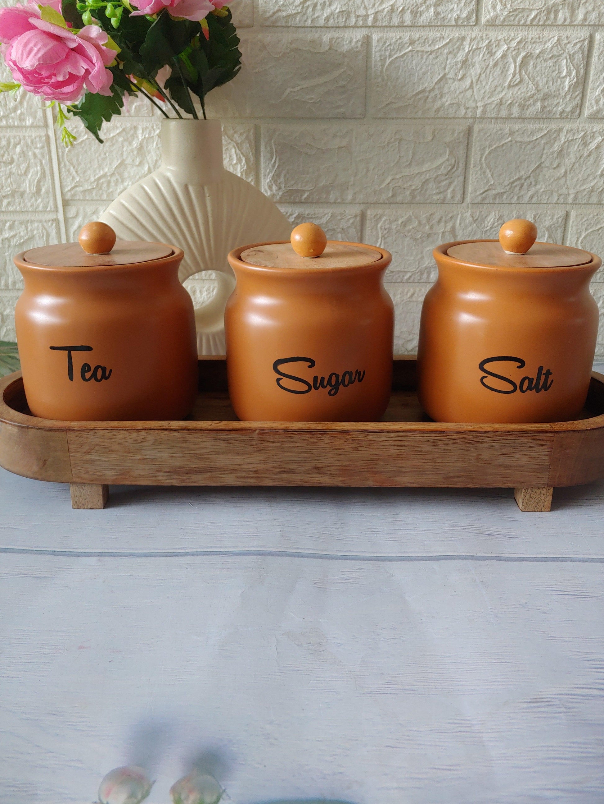 Brown Matka airtight Solid Ceremic Tea Sugar Salt containers 500ml