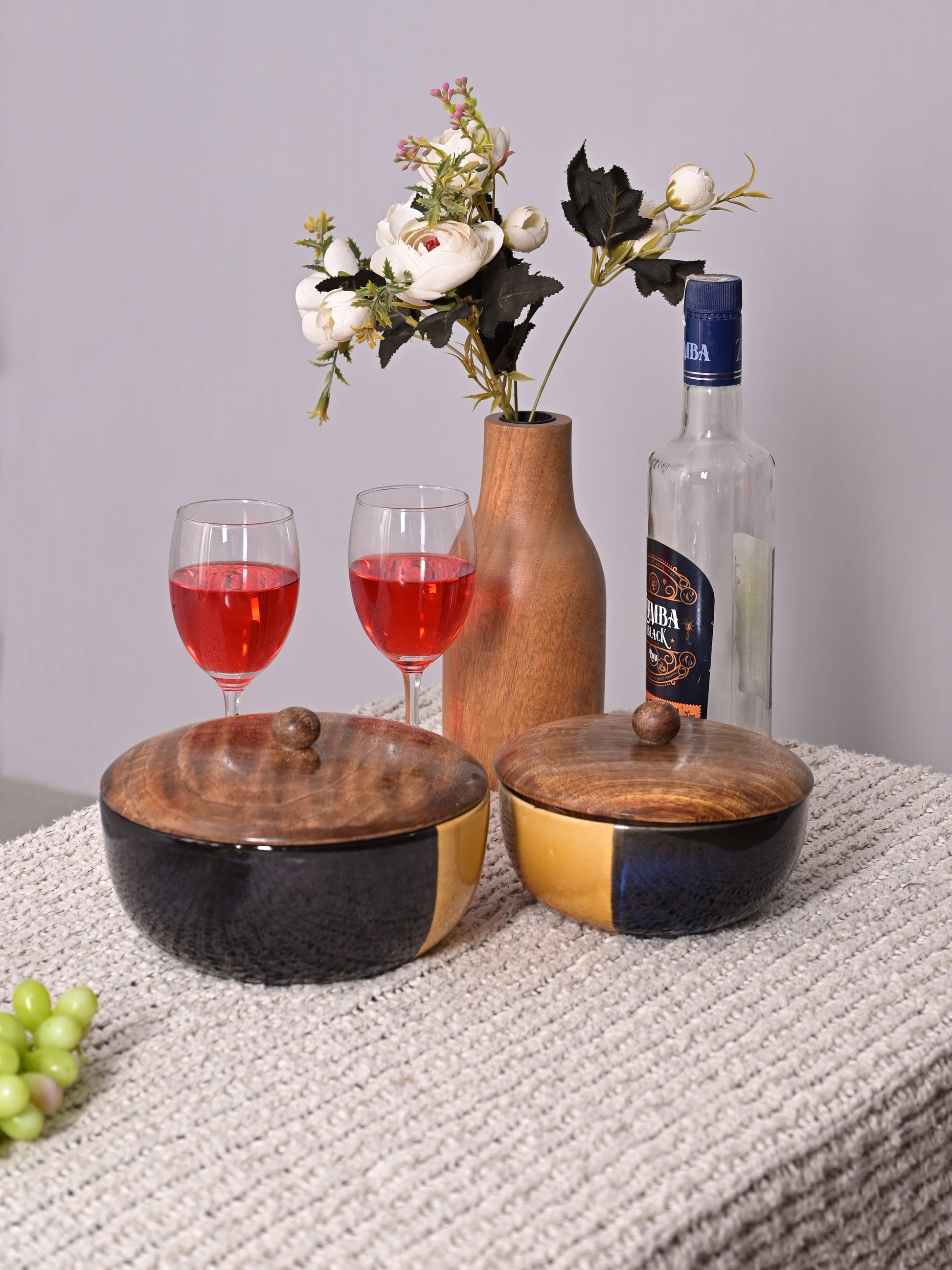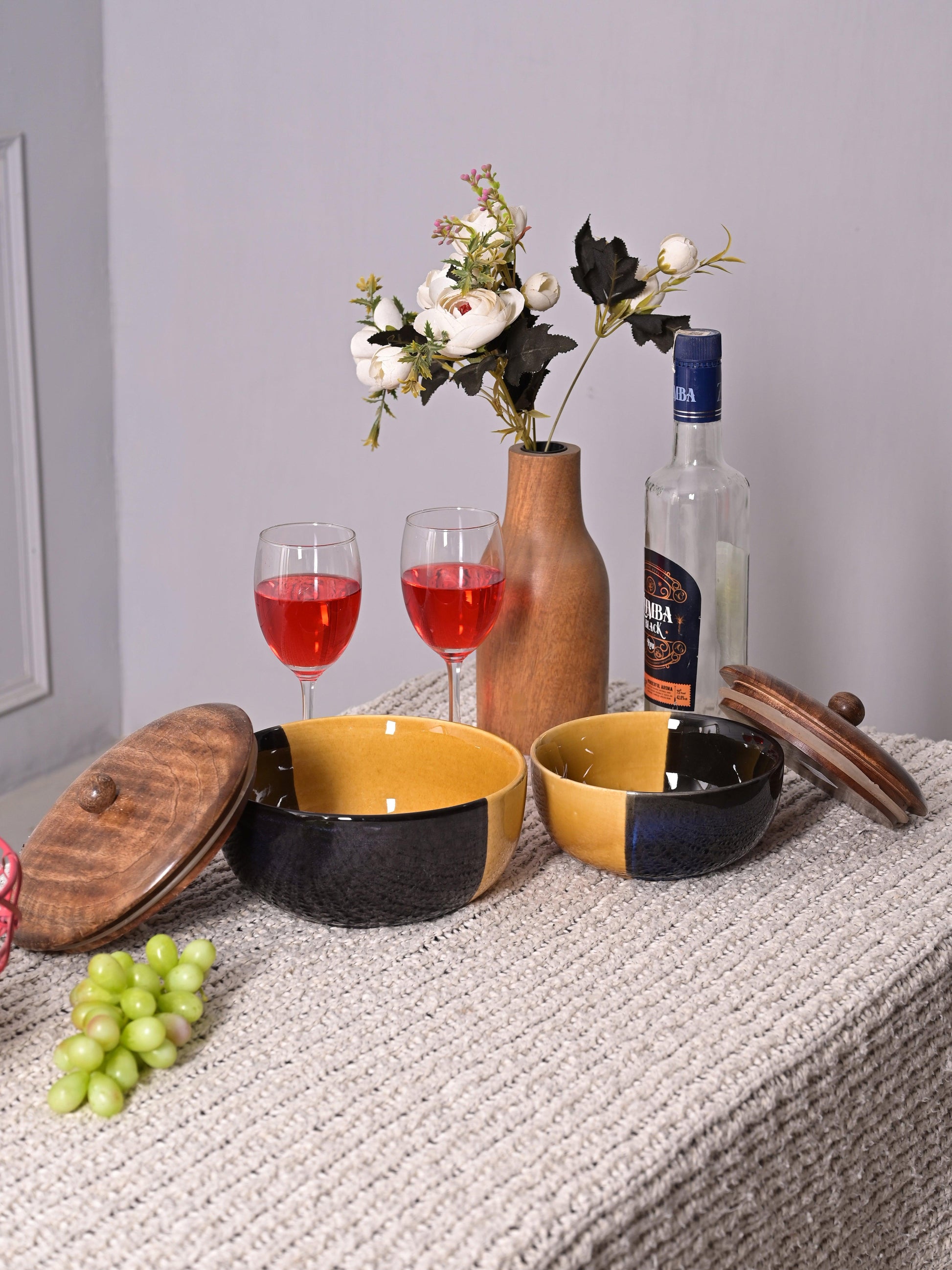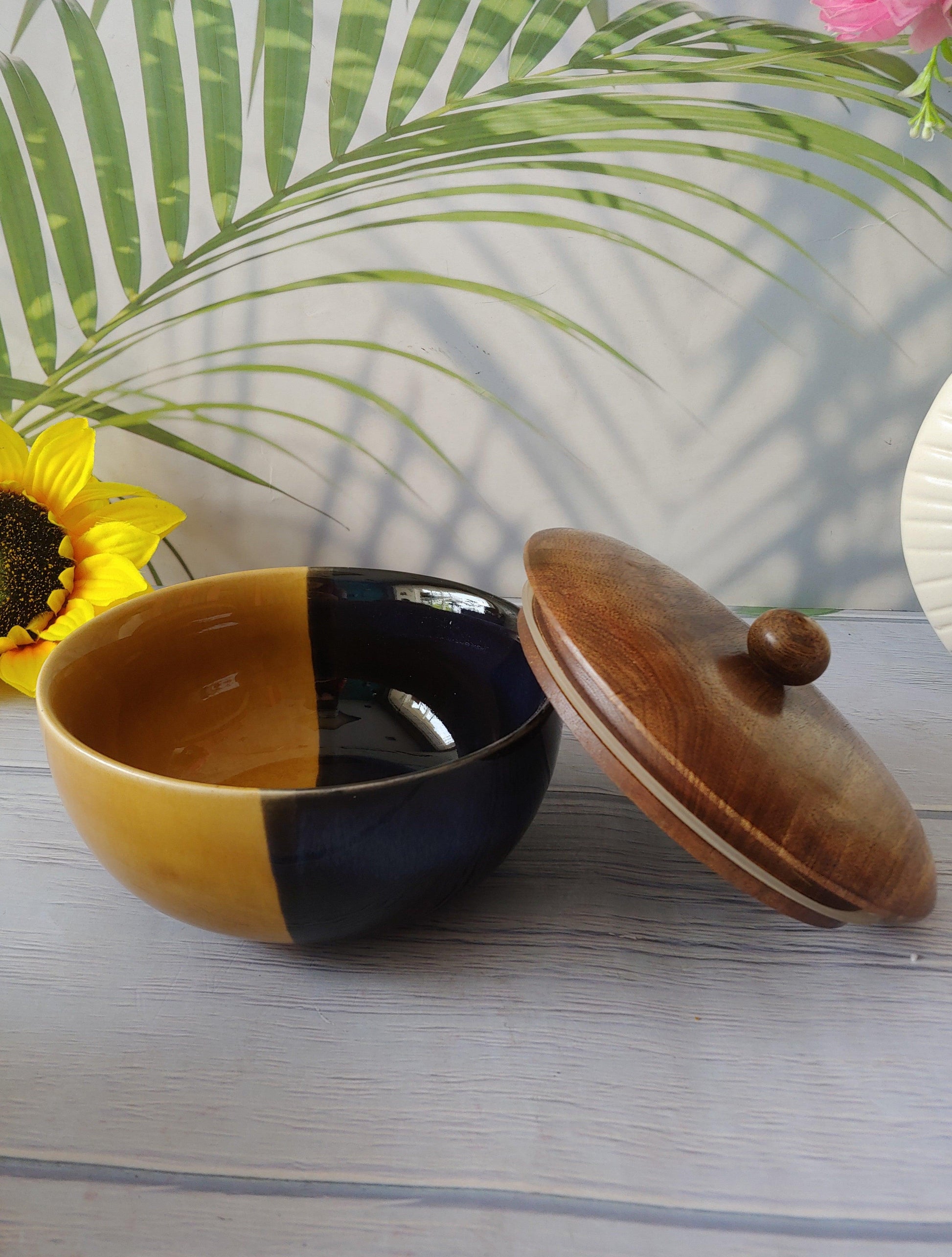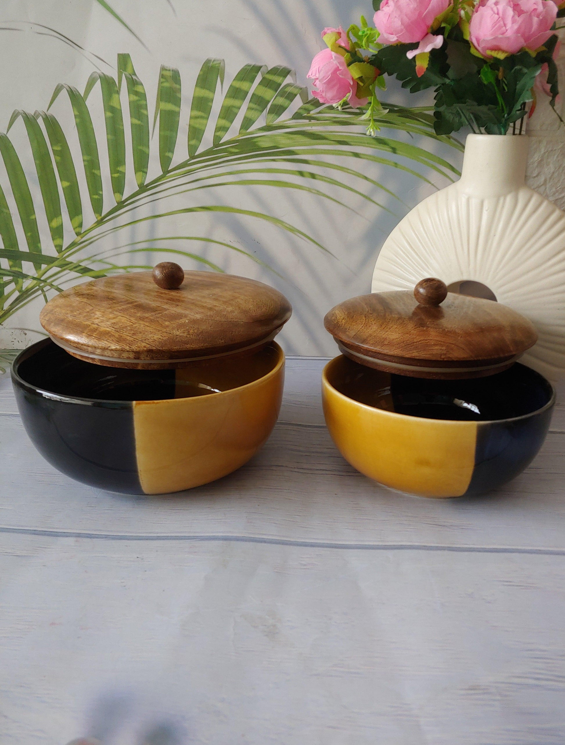 Bumble Buzz Black Designer Ceramic Serving Bowls with lid