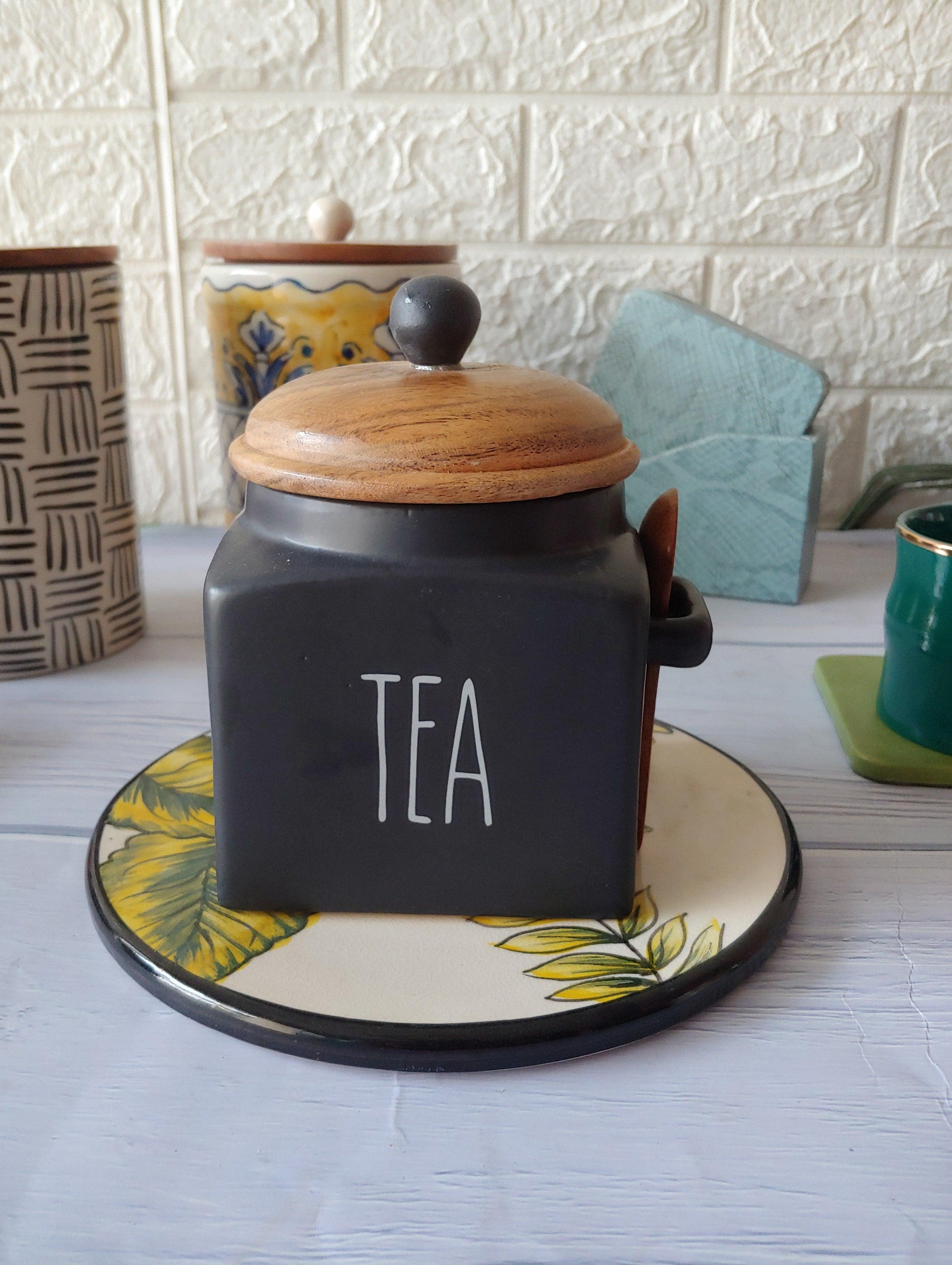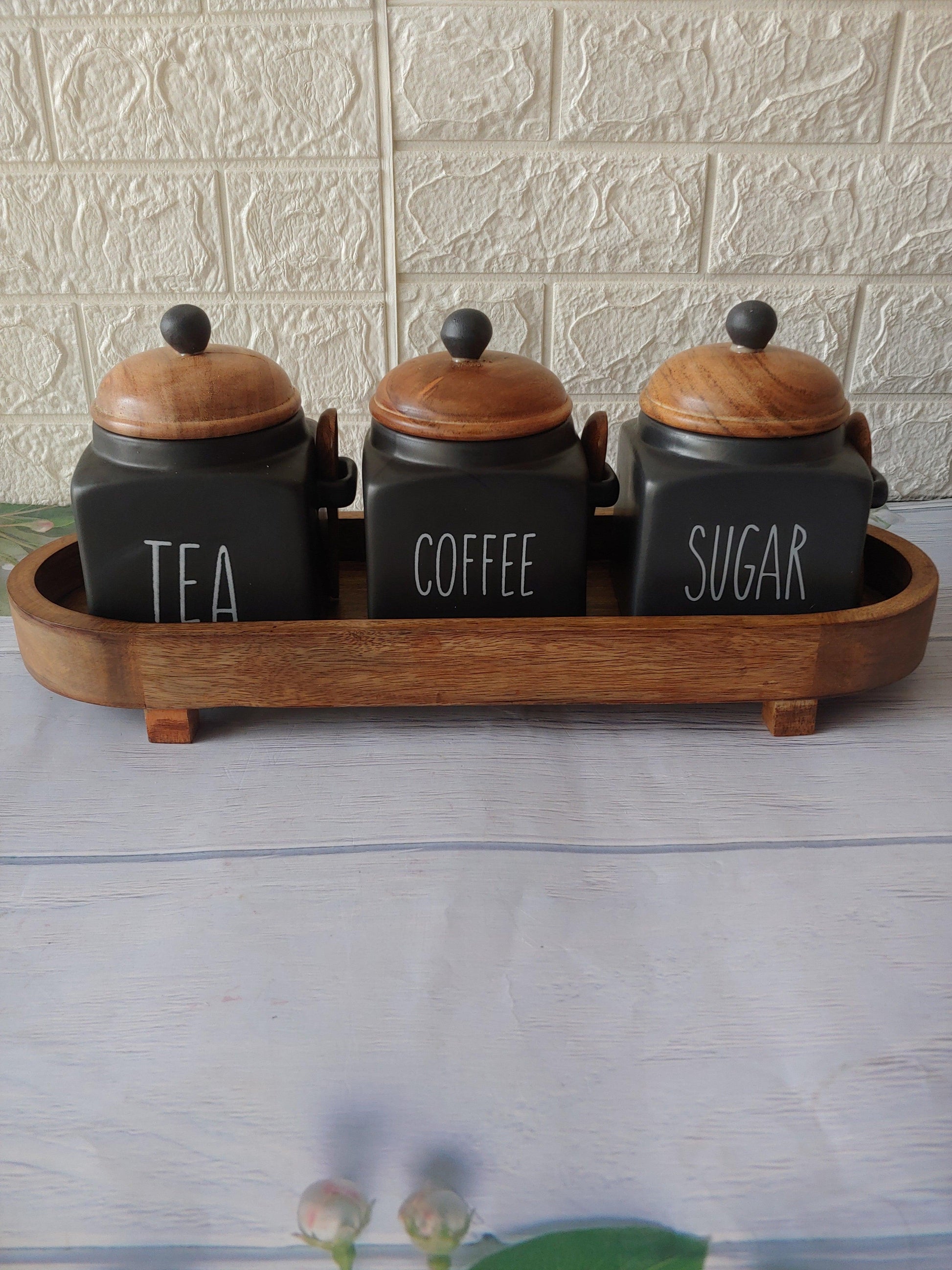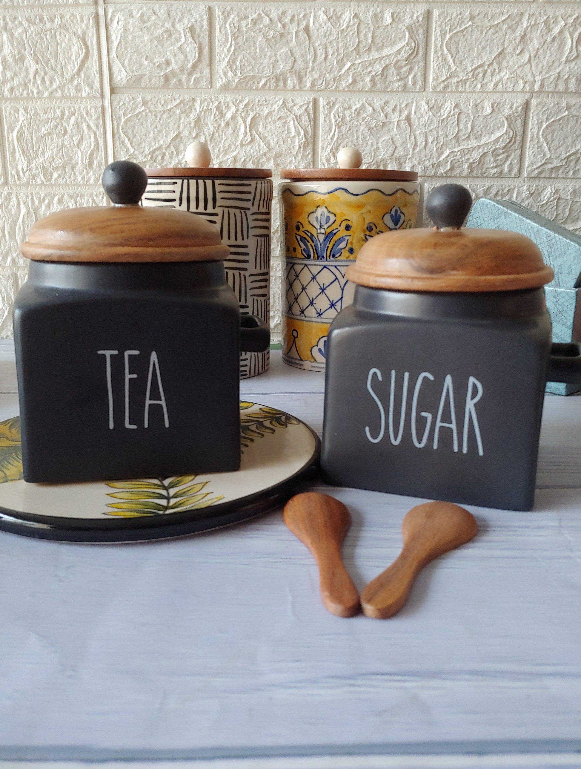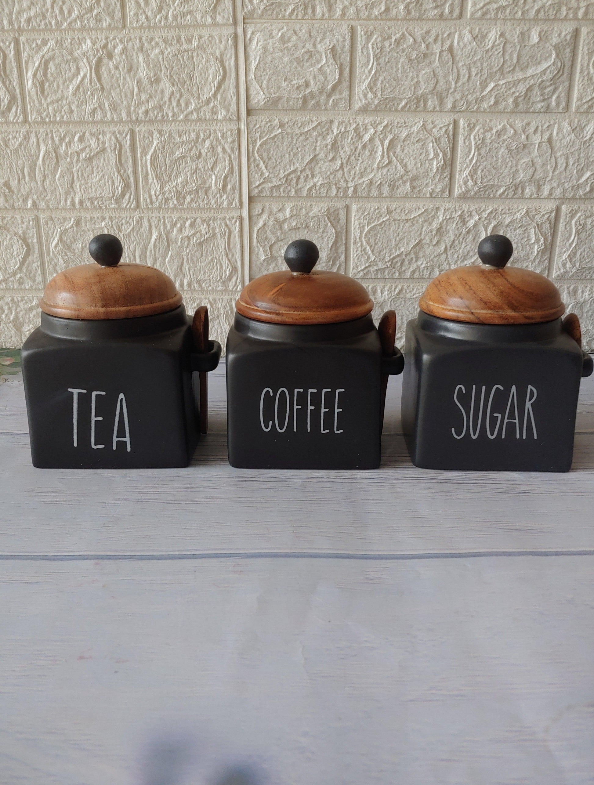 Black Tea Coffee Sugar Ceramic Canisters Grey Pottery 500 ml