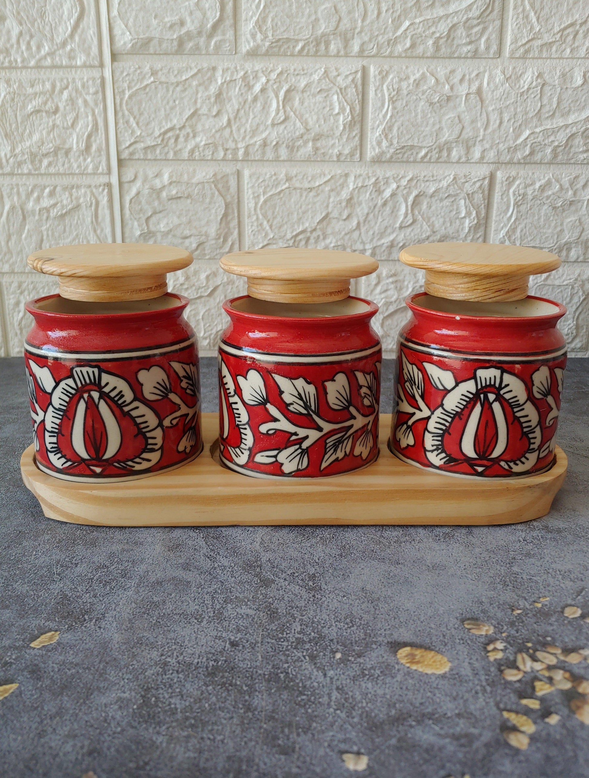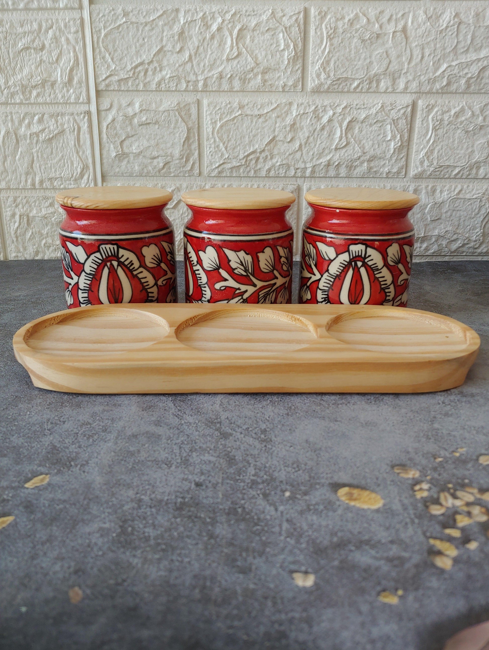 Cherry Bloom Ceramic Kimchi Pickle Jar Set with wooden lid and tray