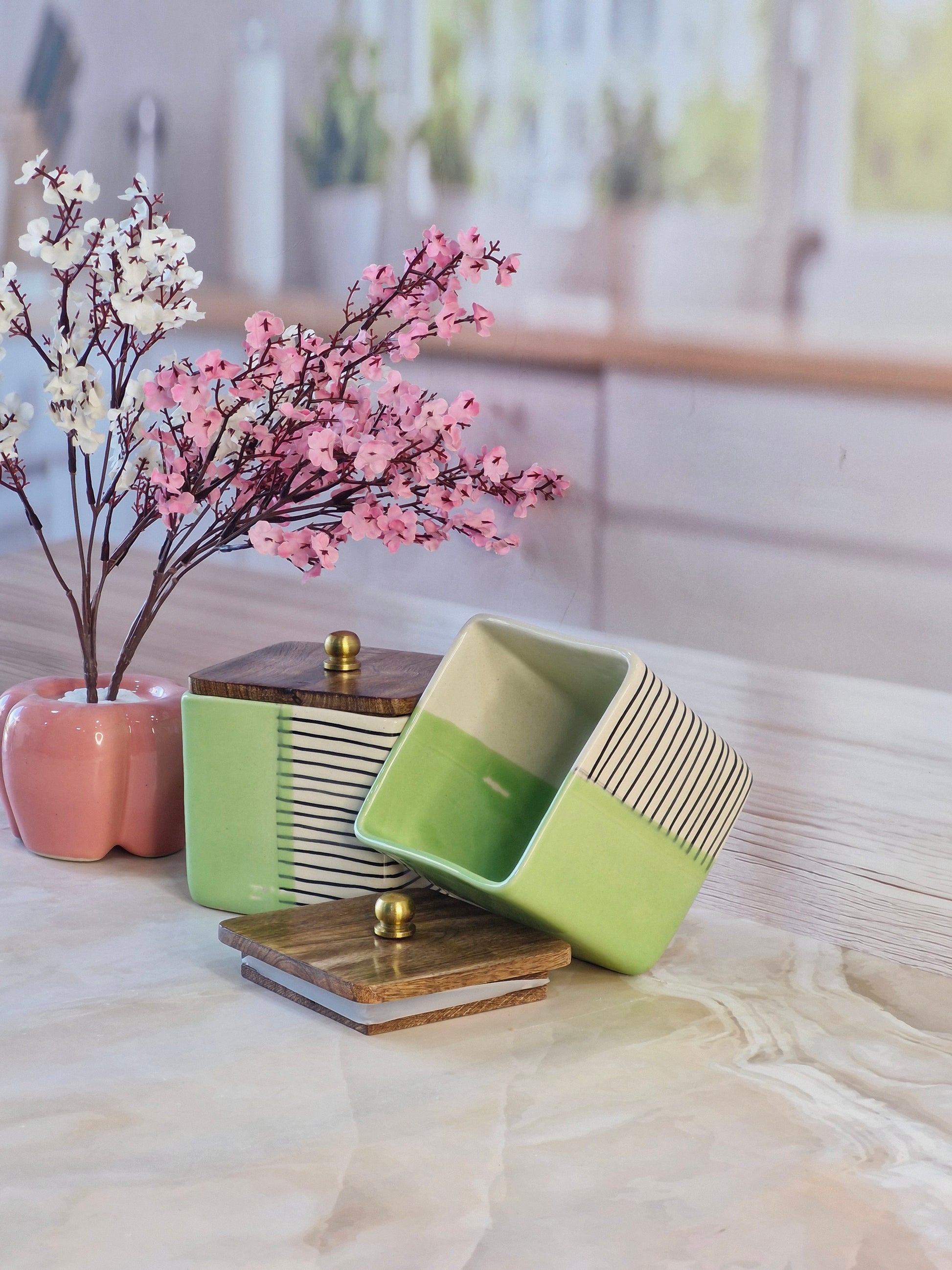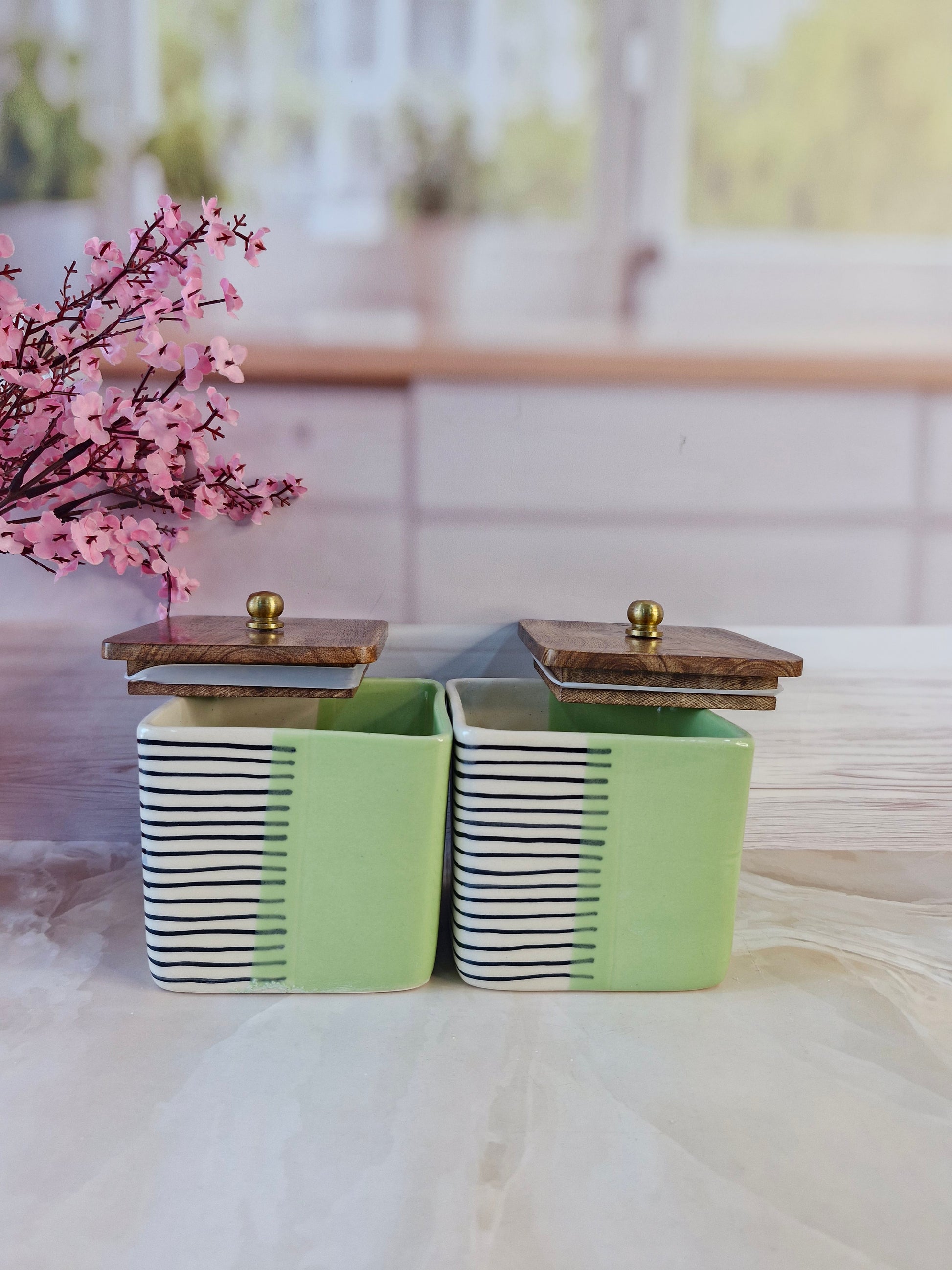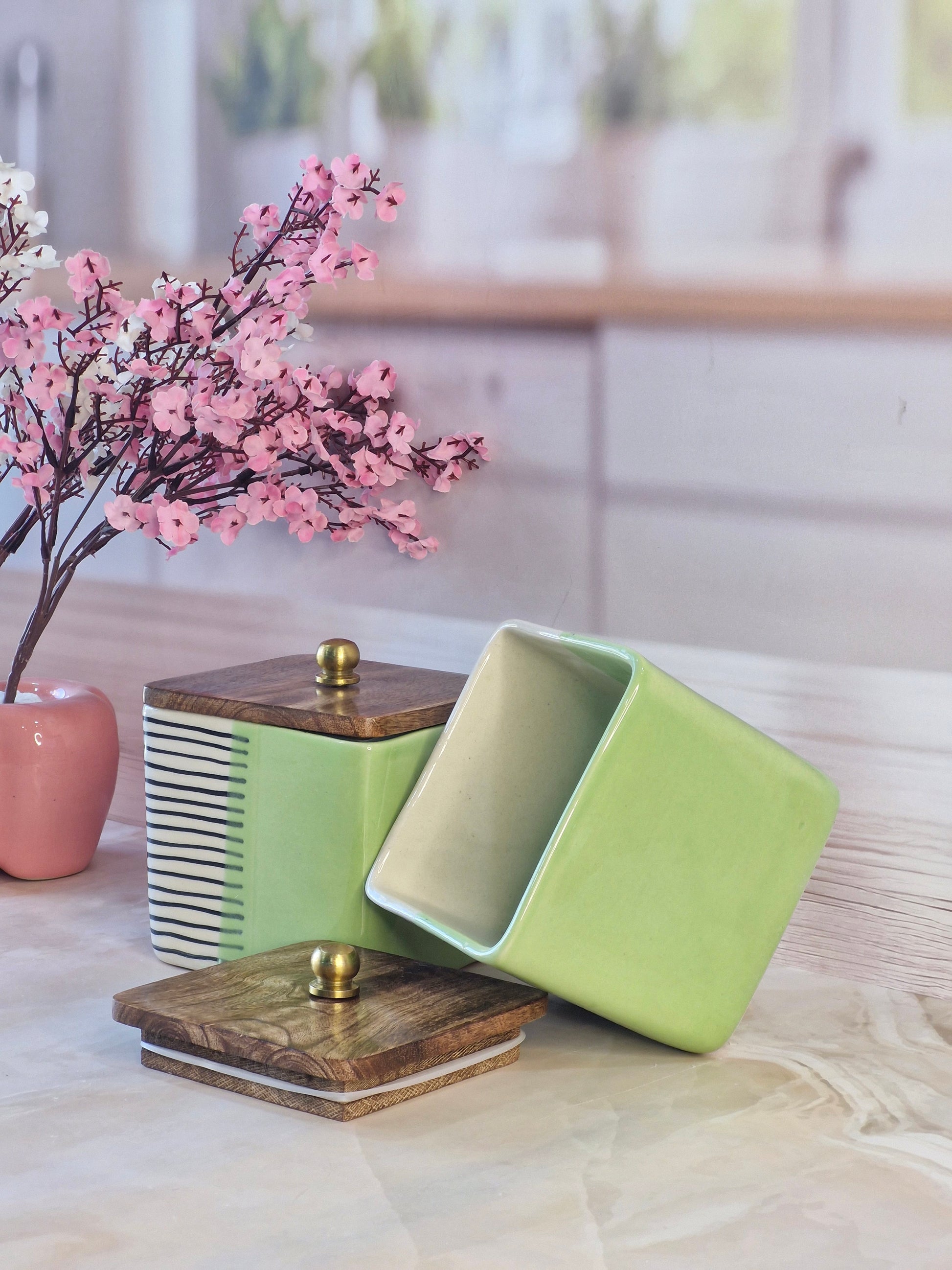 Coastal Dreams Sweetheart Home Ceramic Airtight Containers with Wooden Lid