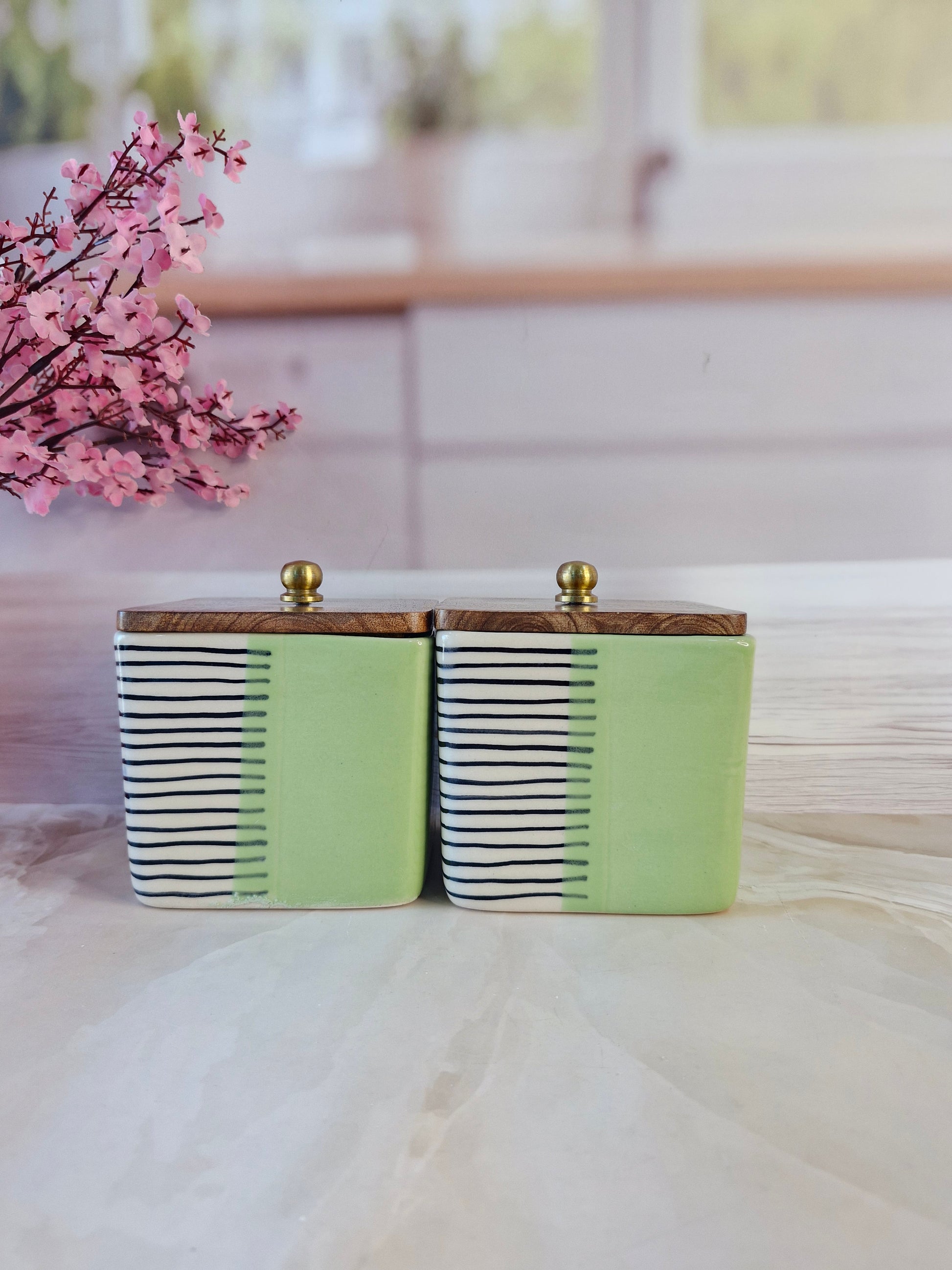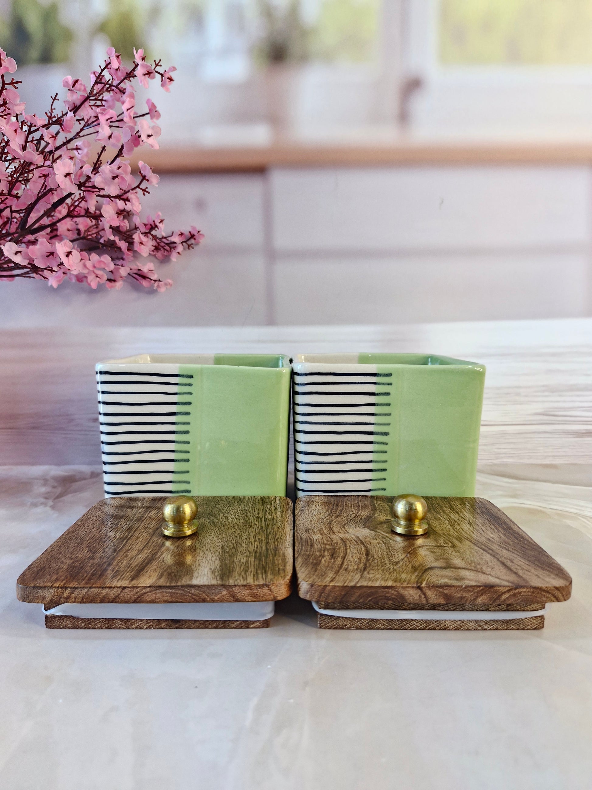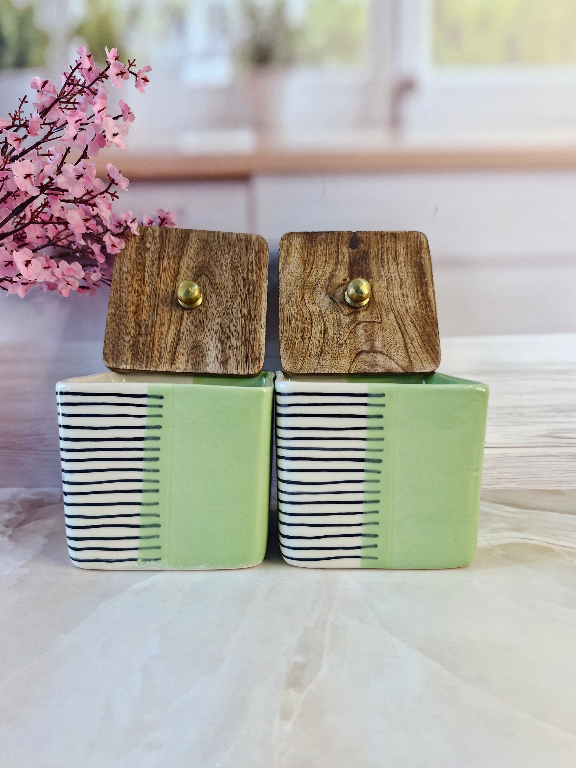Coastal Dreams Sweetheart Home Ceramic Airtight Containers with Wooden Lid