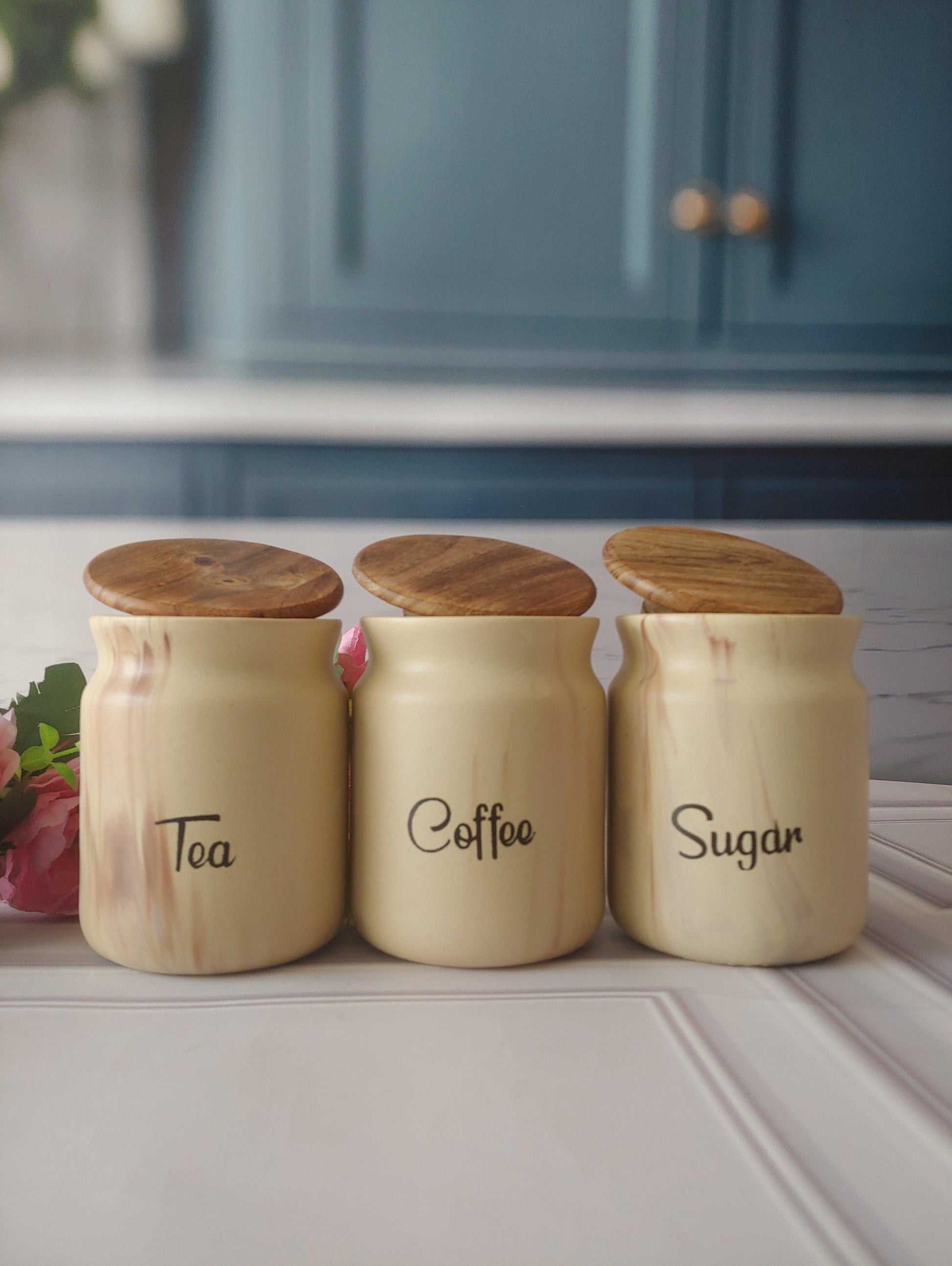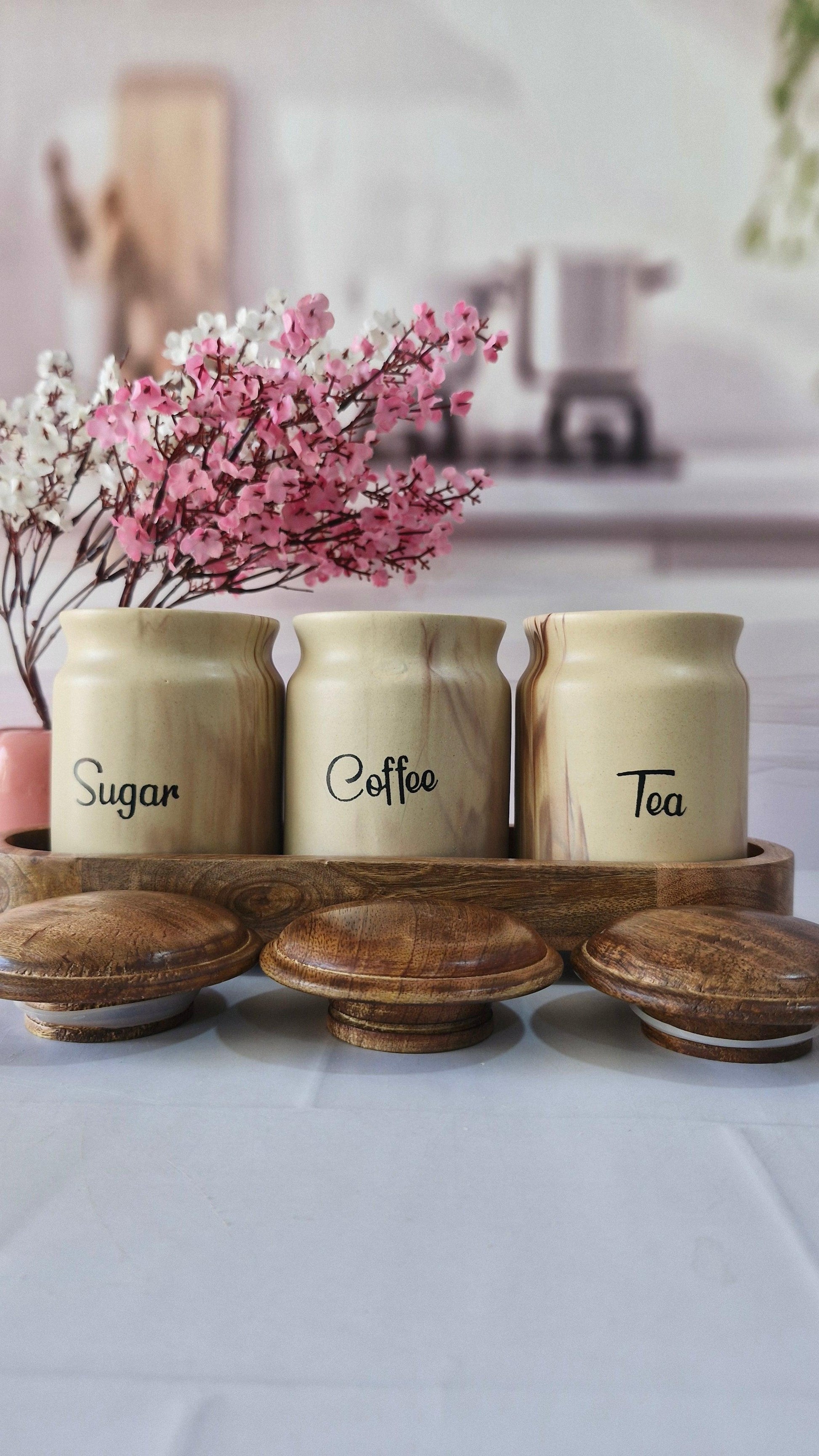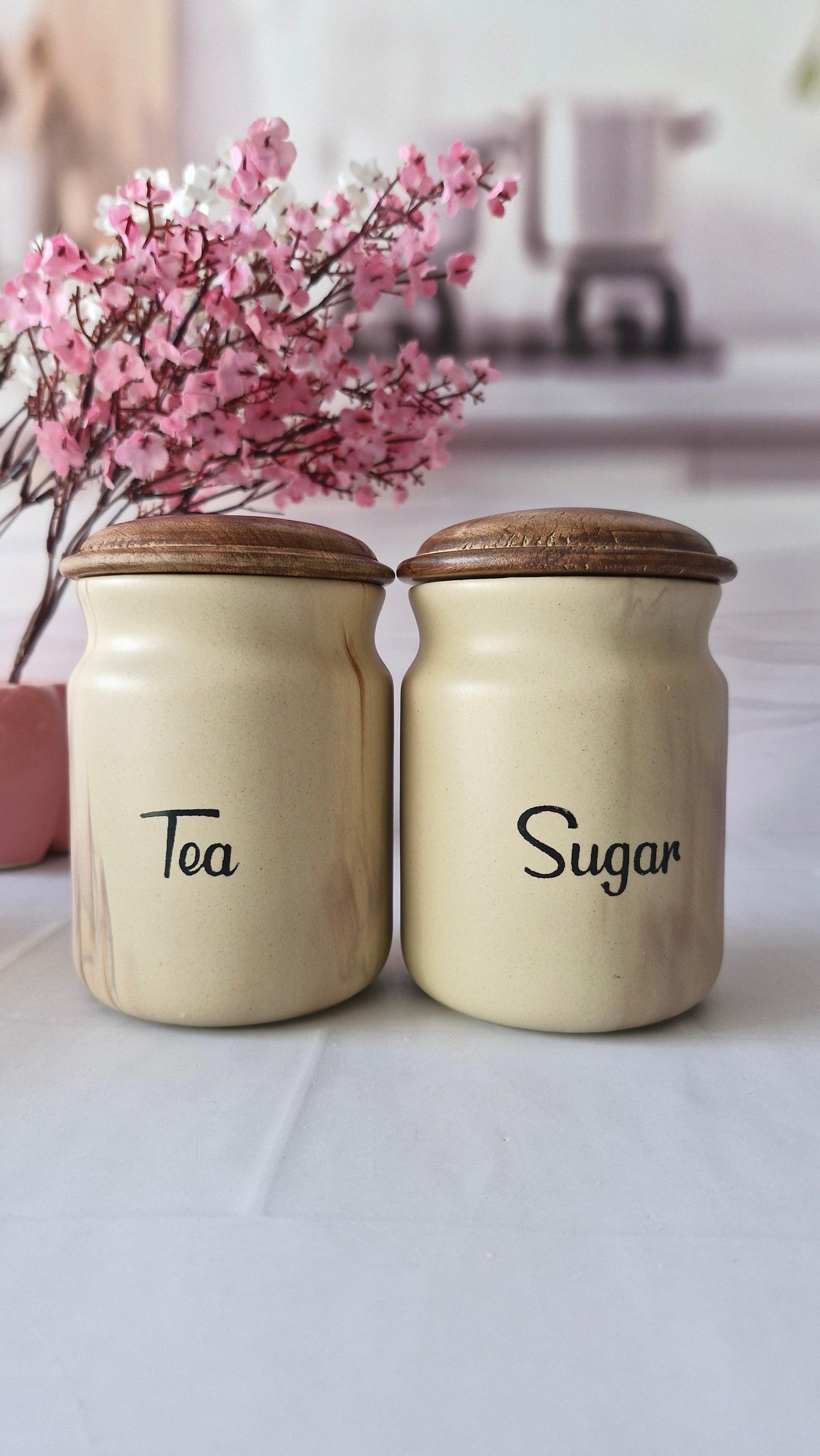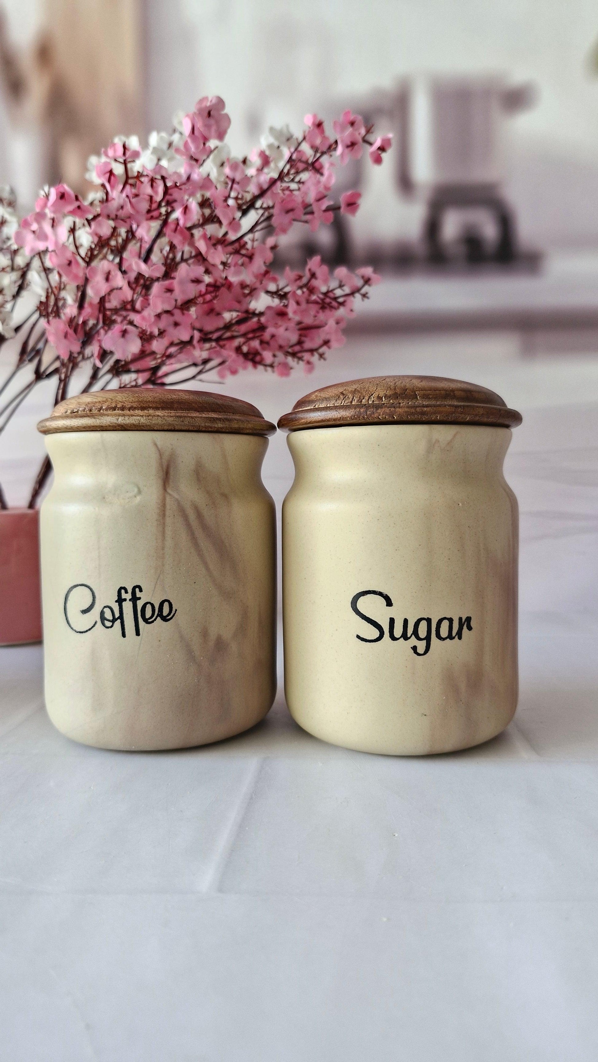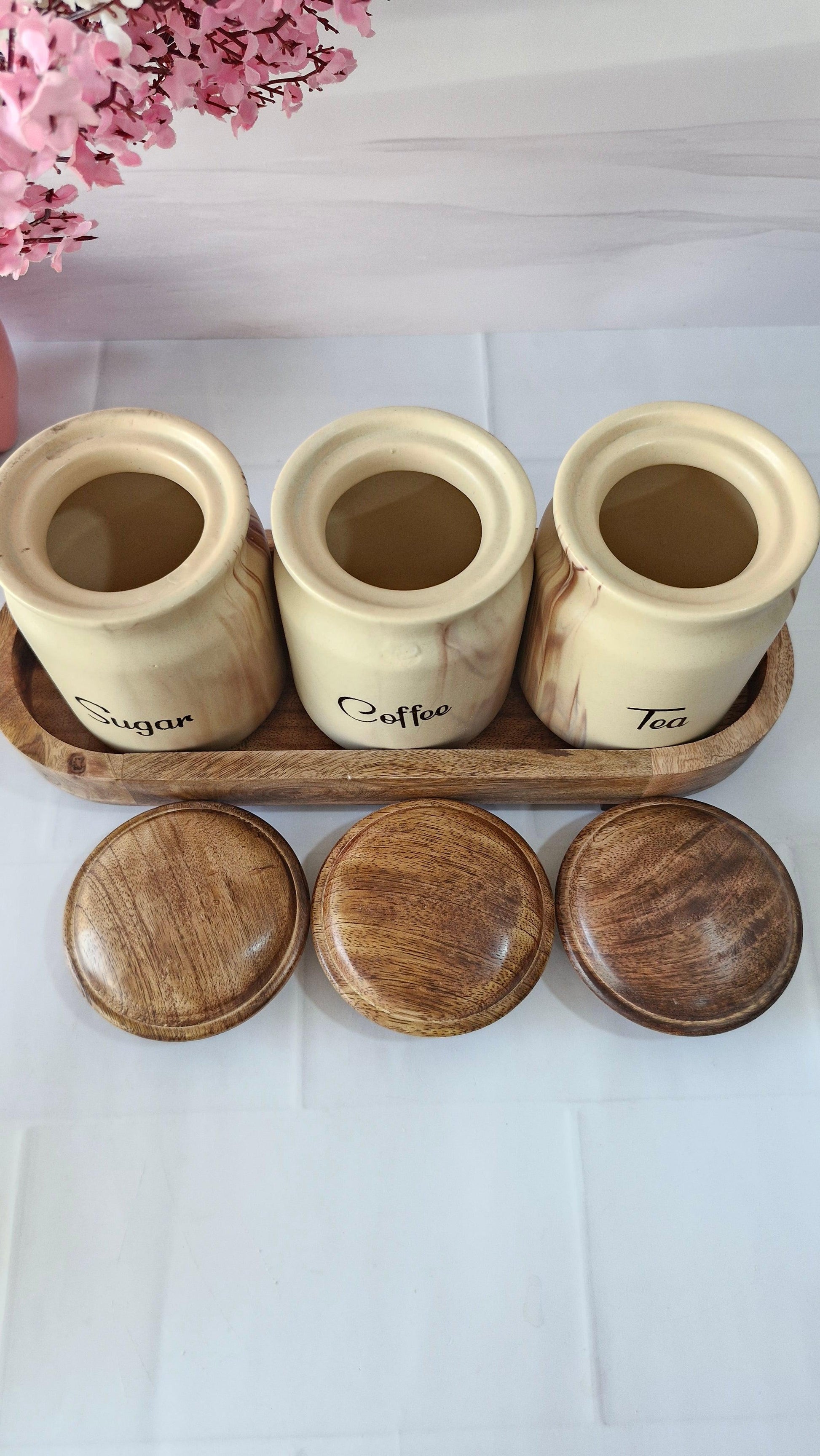 Cobalt Chocolaty Sweetener ceramic airtight Tea, coffee ,sugar jars with wooden lid