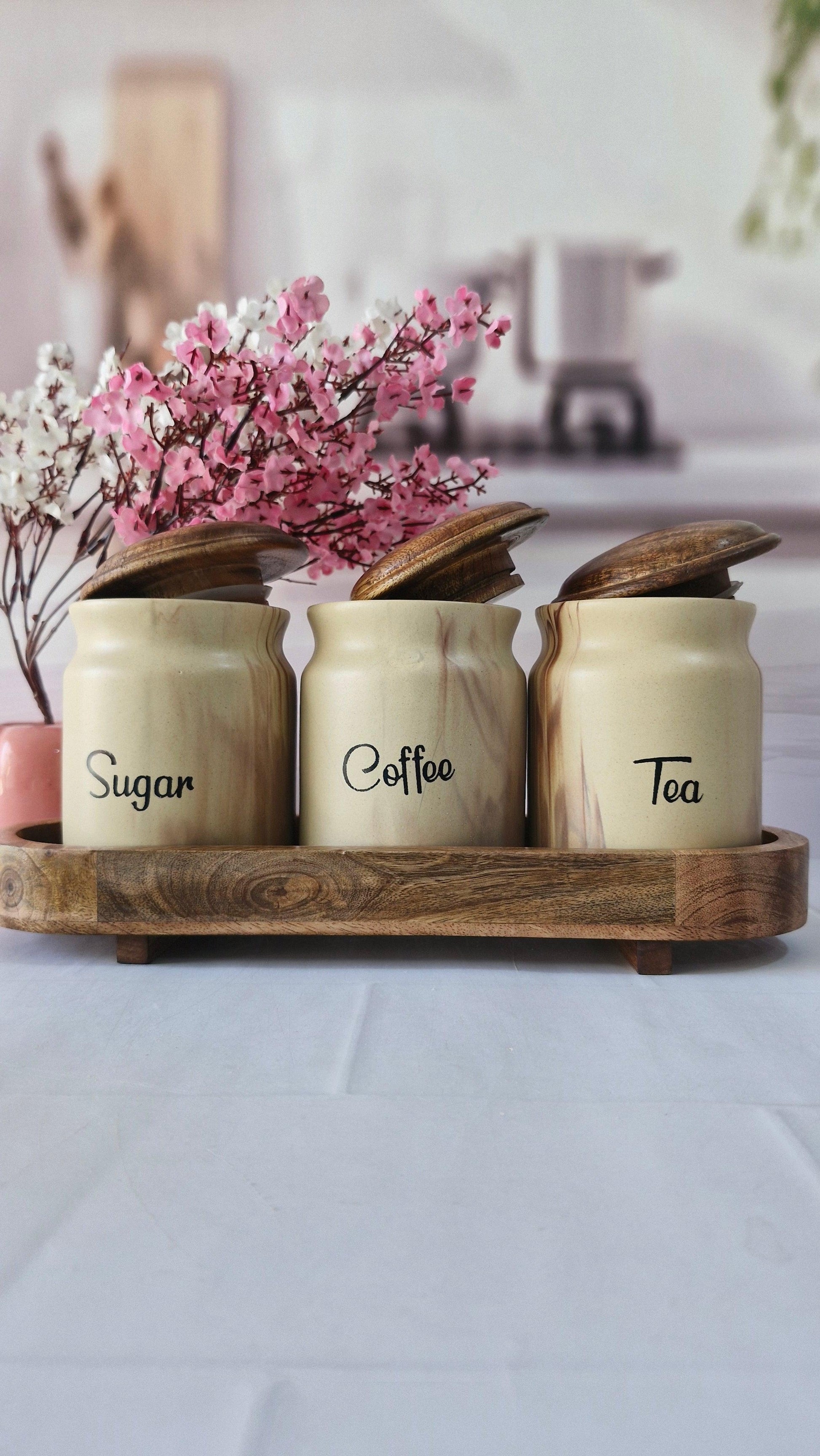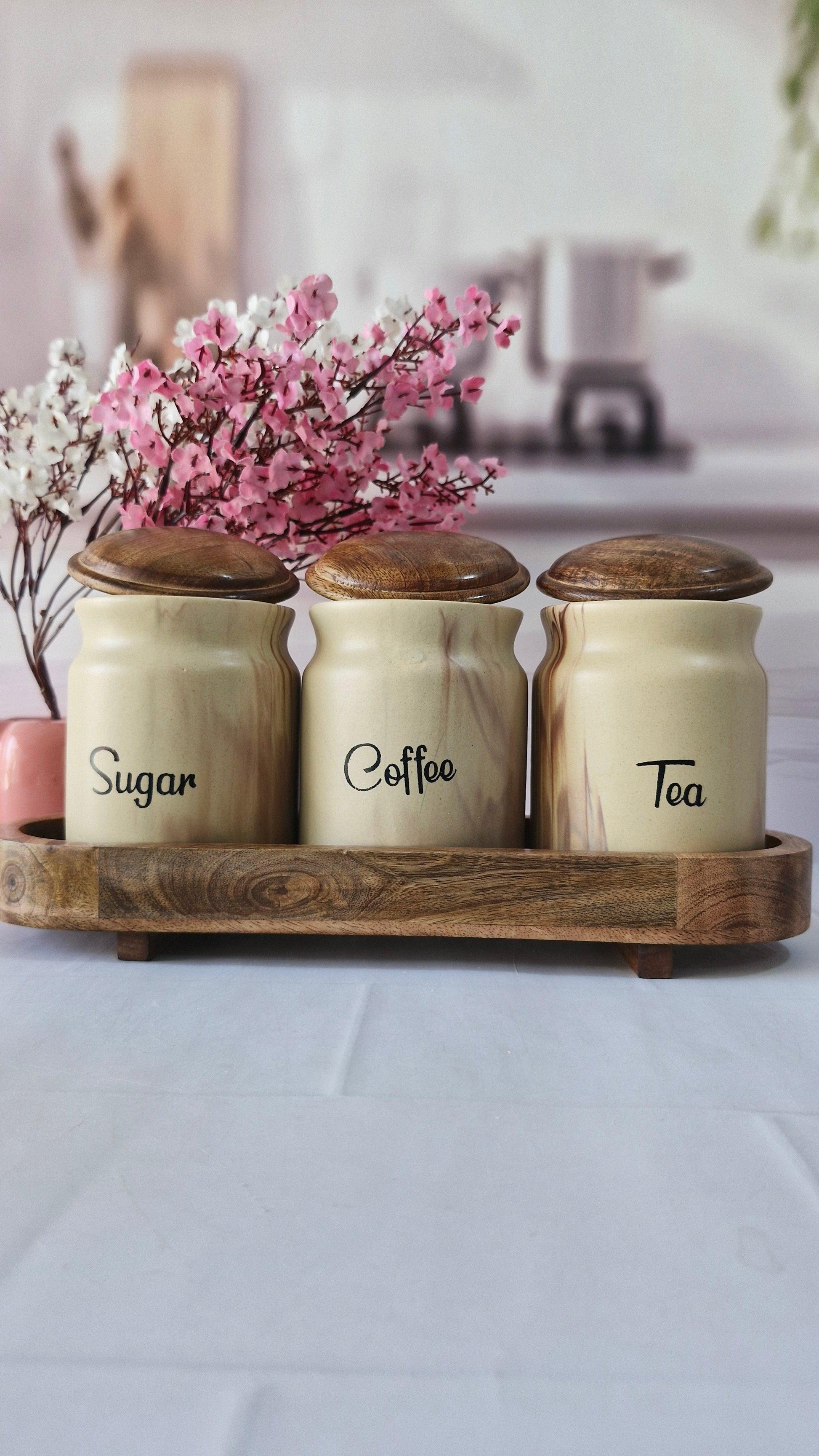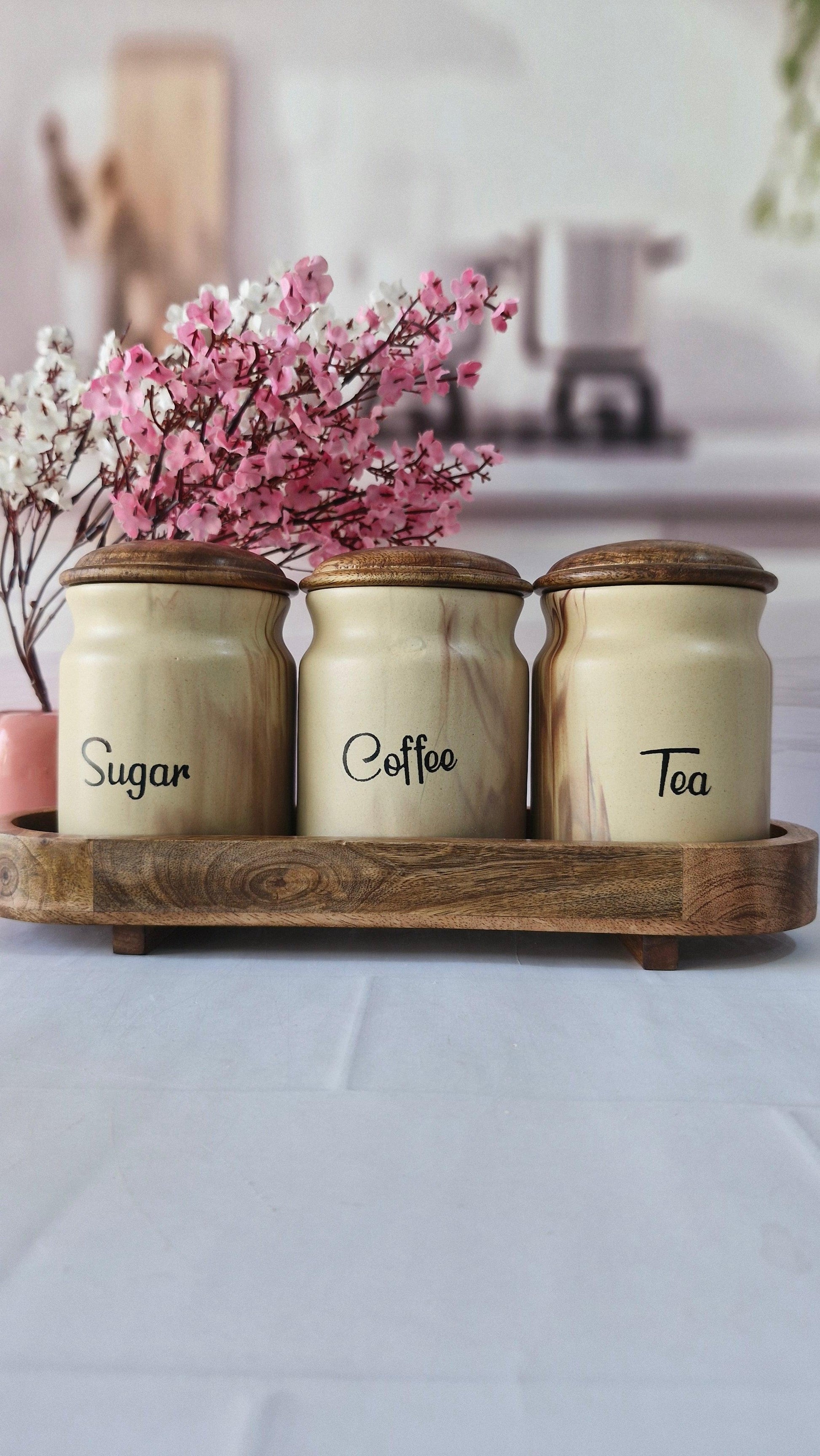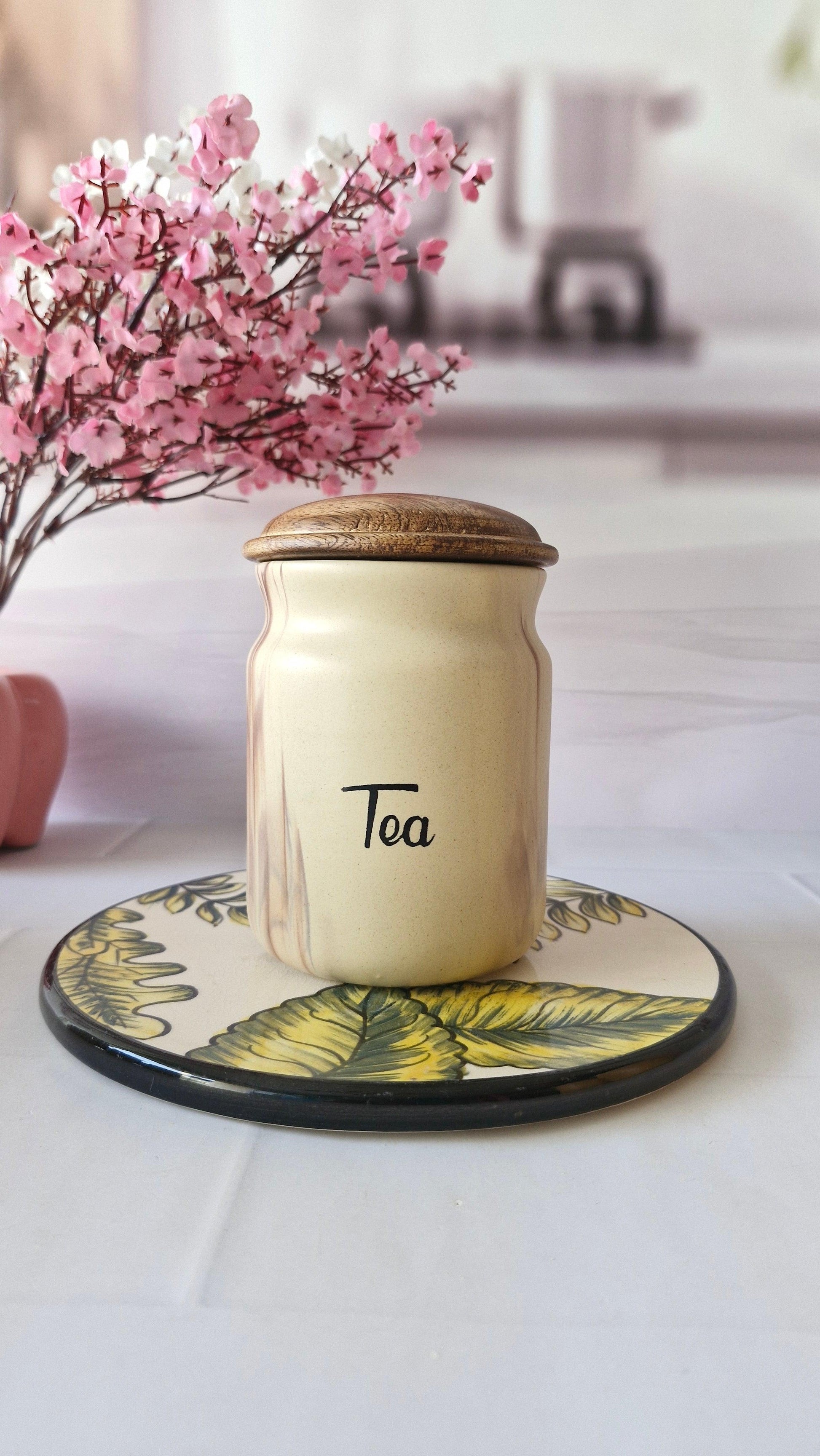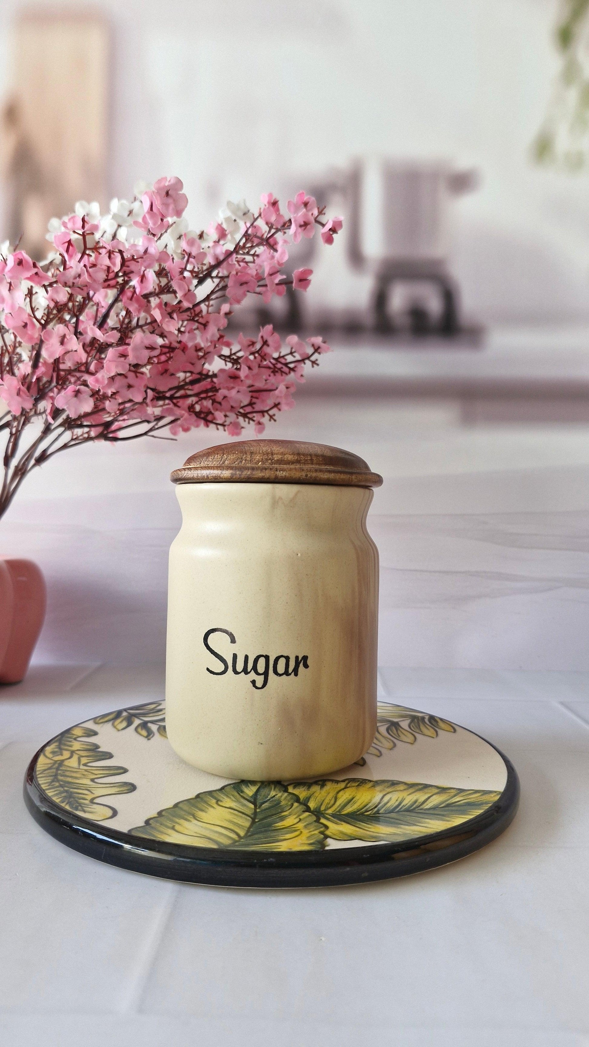 Cobalt Chocolaty Sweetener ceramic airtight Tea, coffee ,sugar jars with wooden lid