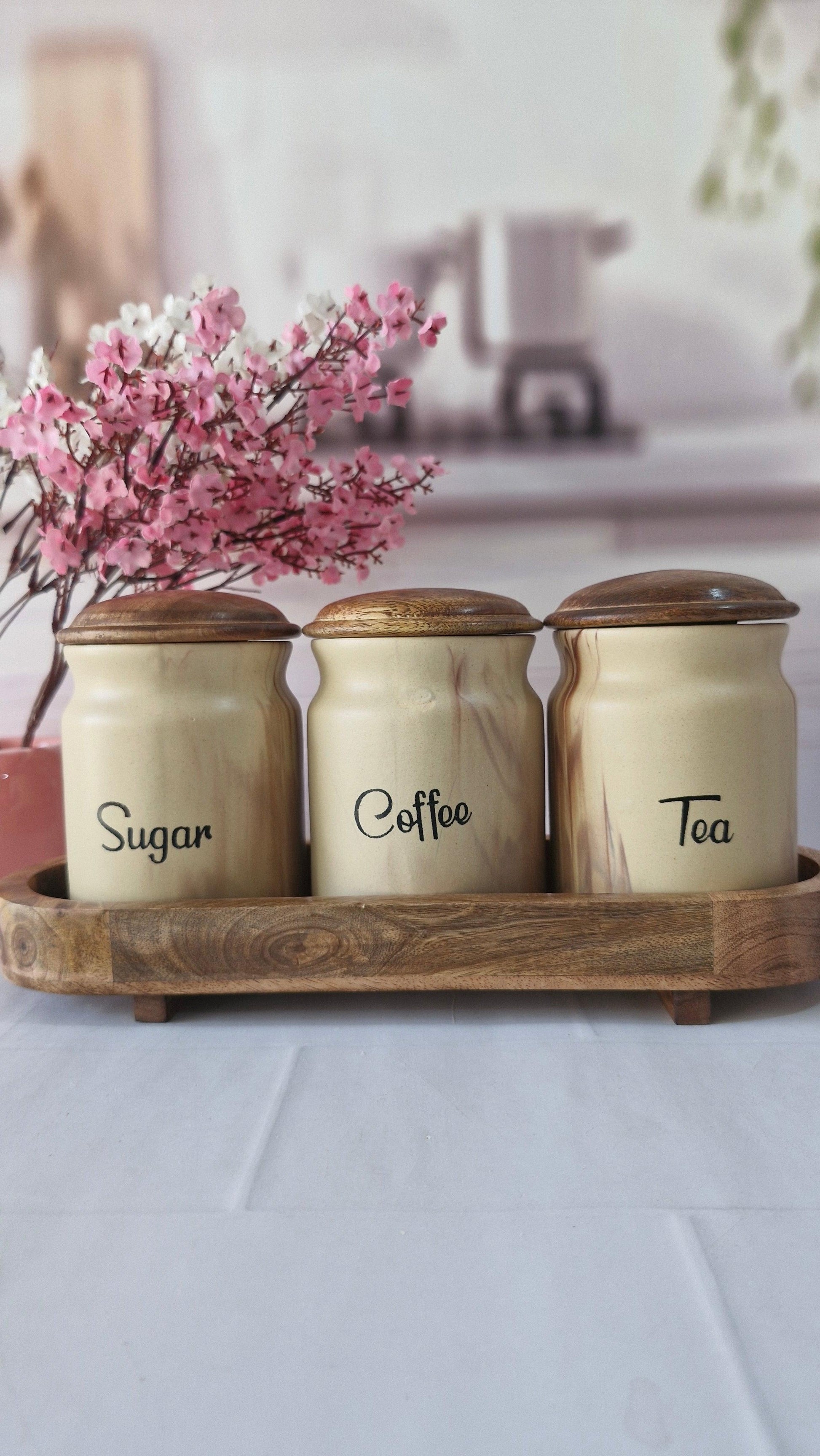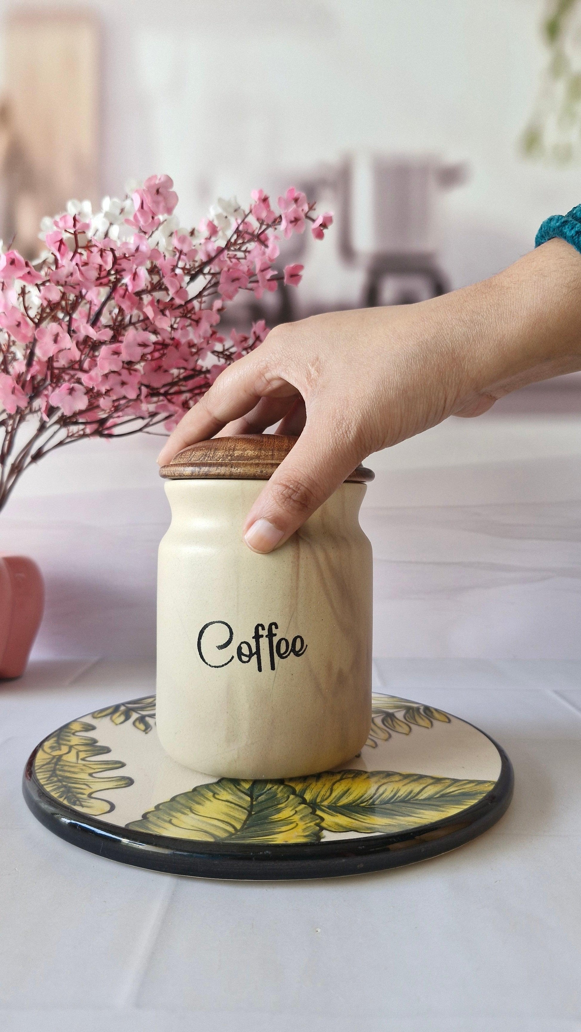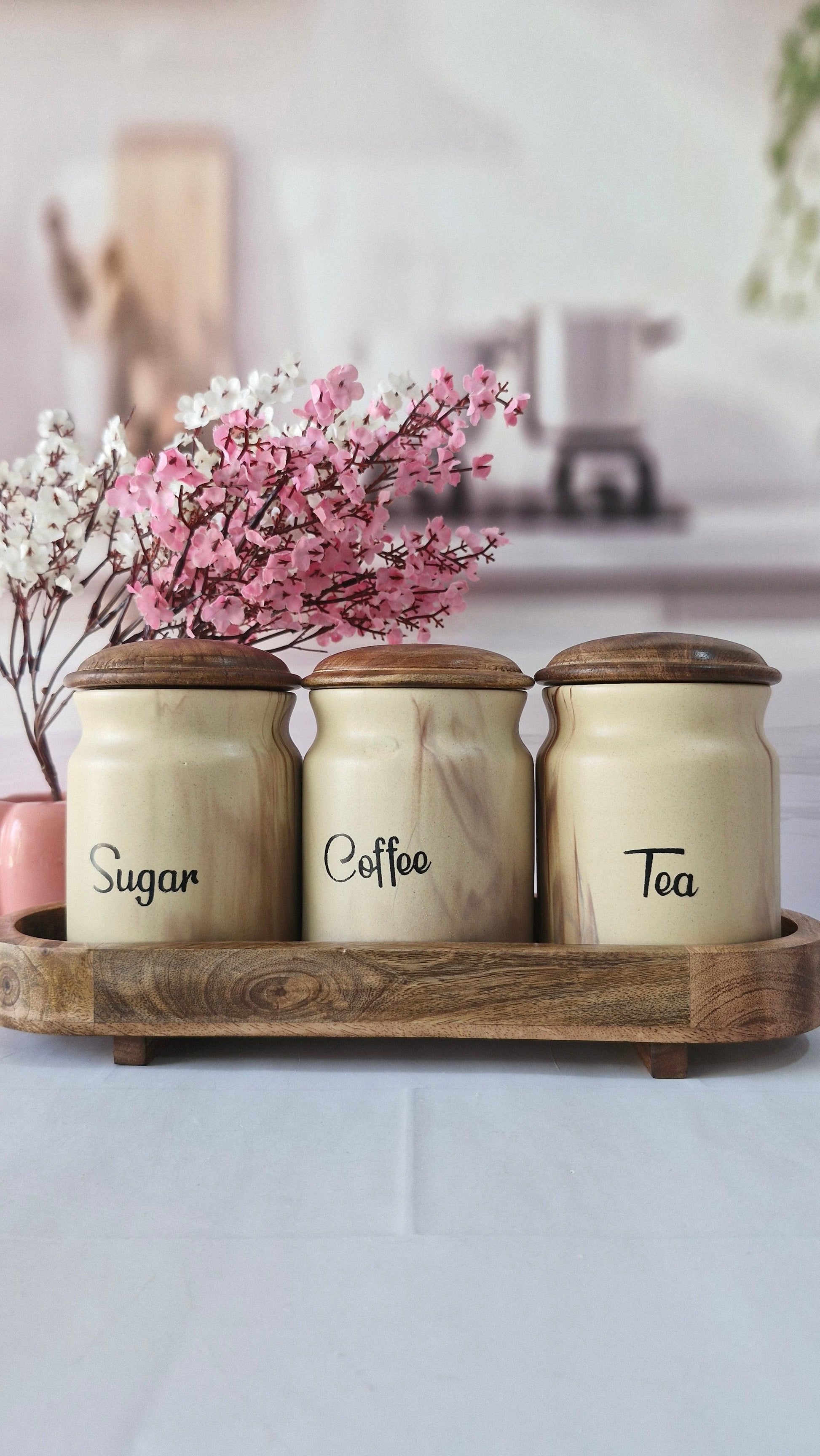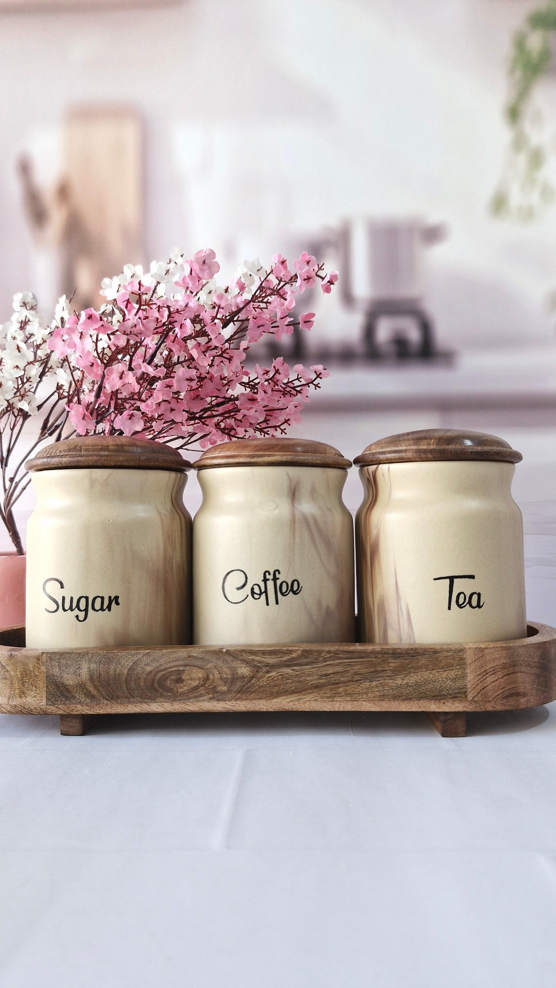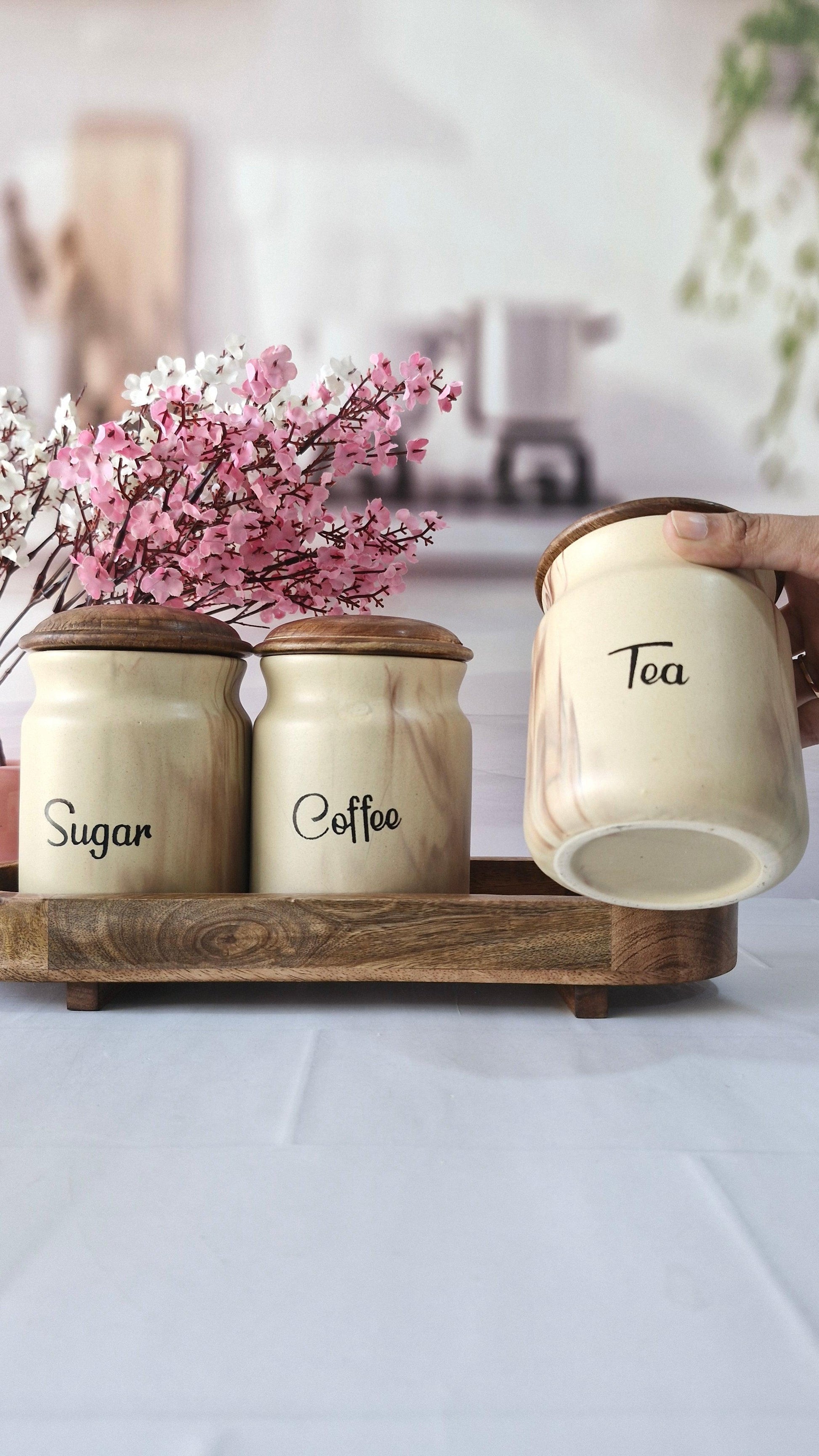 Cobalt Chocolaty Sweetener ceramic airtight Tea, coffee ,sugar jars with wooden lid