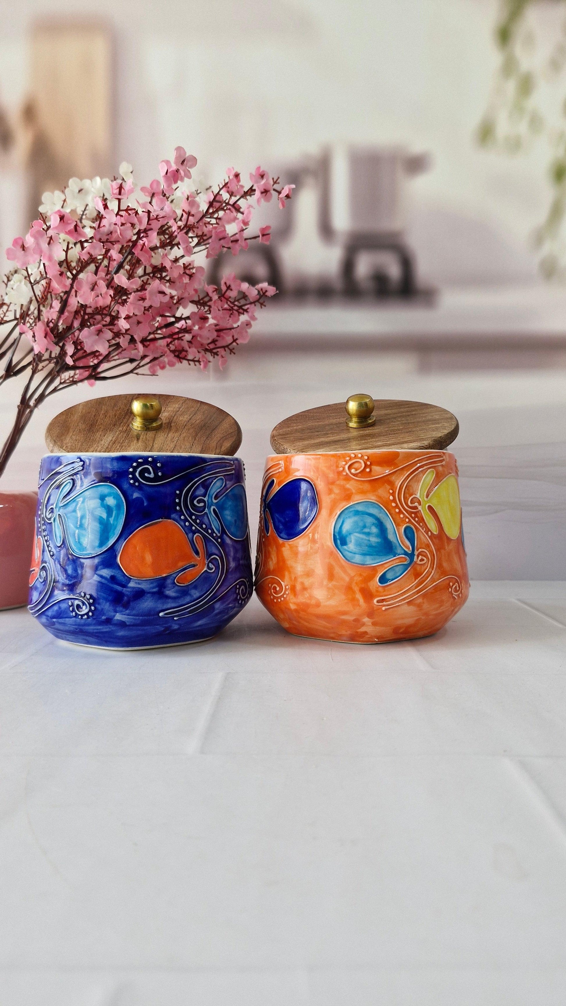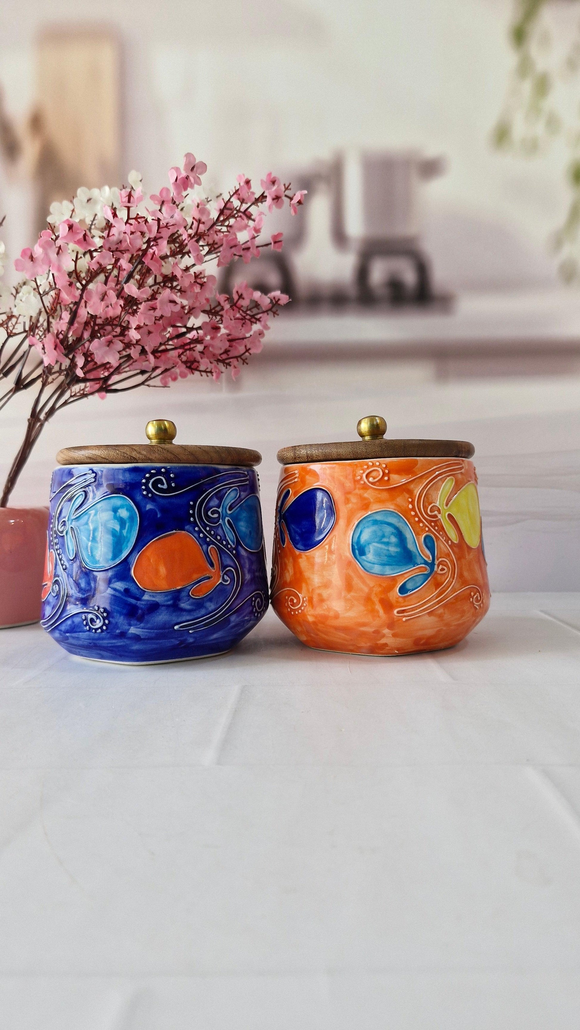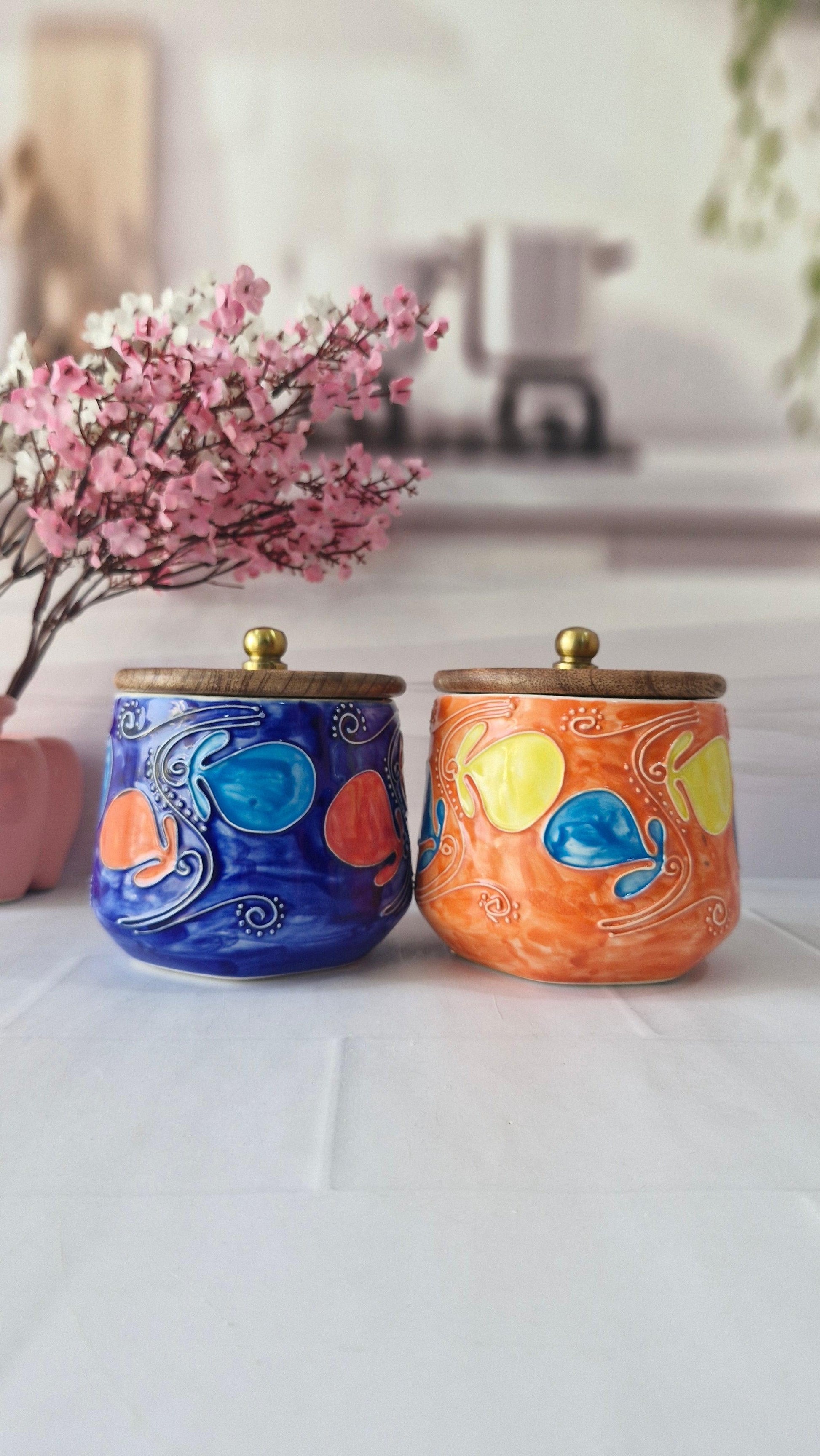 Colorful Couple Handcrafted Designs Jars: Benefits for Fresher Spices & Cookies