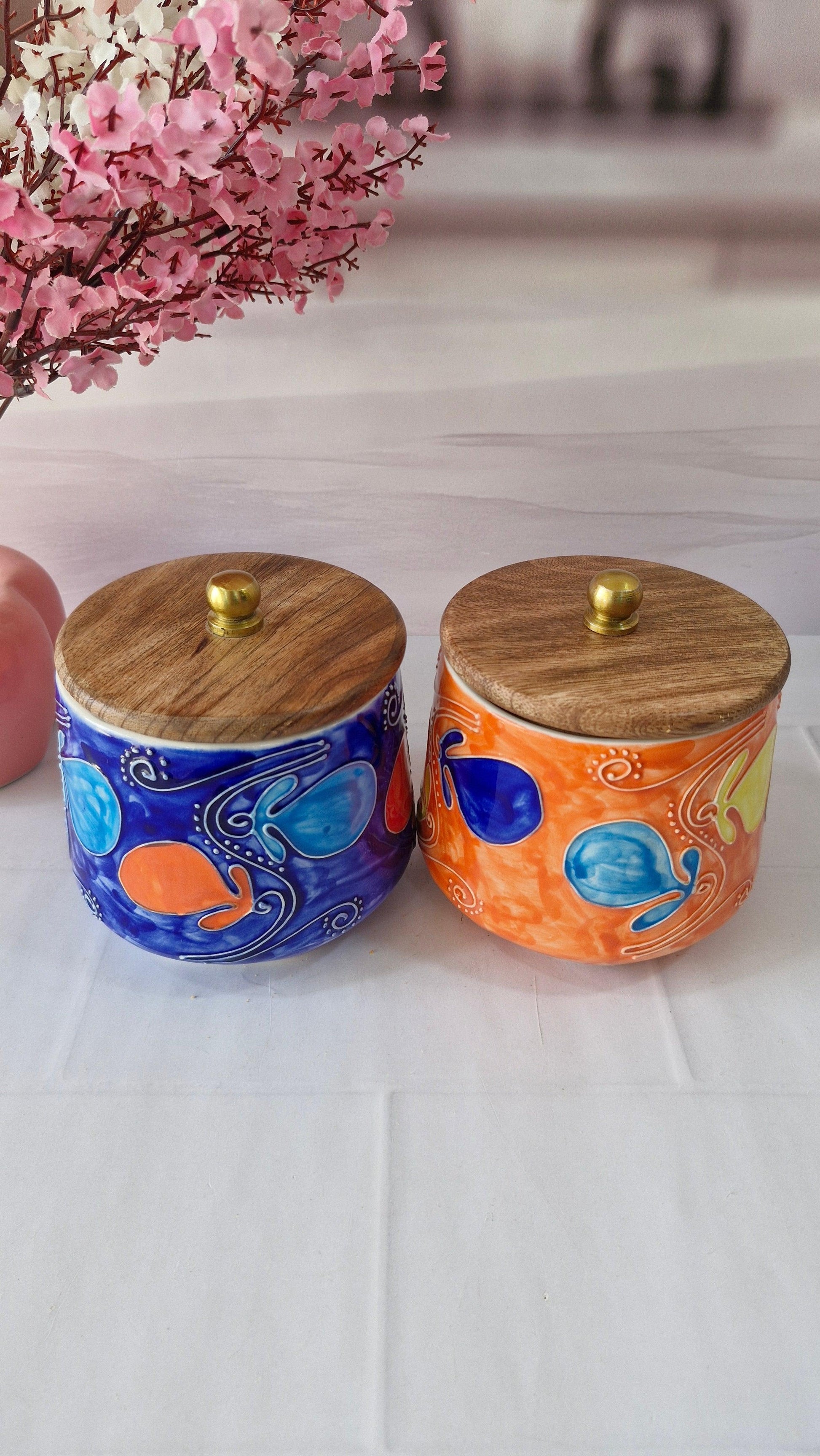 Colorful Pair Handcrafted Designs with Love Retreat (1/2 kg) Airtight Jars for Spices & Cookies