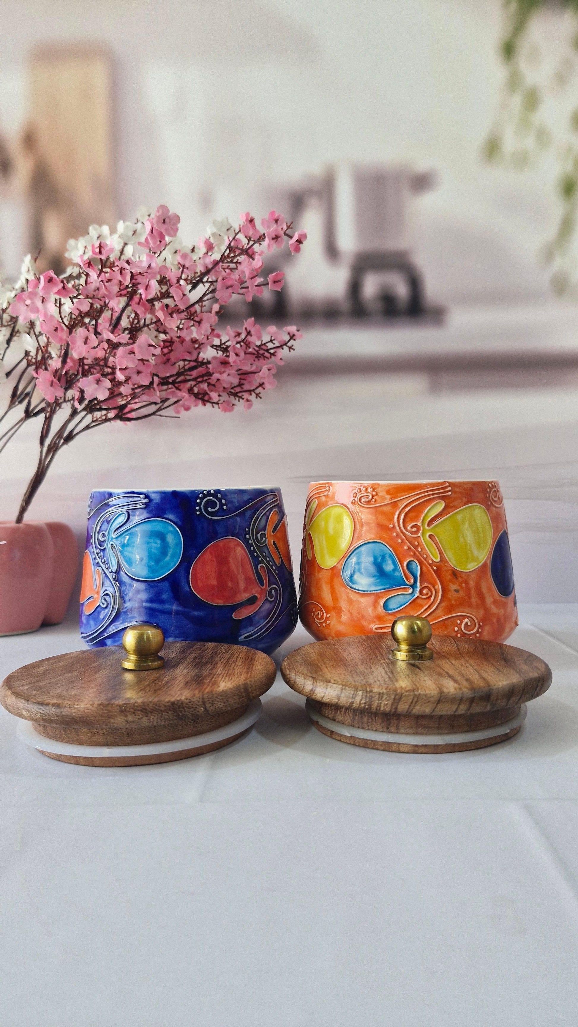 Add a touch of love and color to your kitchen with our Colorful Couple Handcrafted Designs with Love Retreat Airtight Jars. These 1/2 kg jars are perfect for storing and preserving your favorite spices and cookies while adding a charming aesthetic to your kitchen decor. Handcrafted with love, these jars are both practical and beautiful.