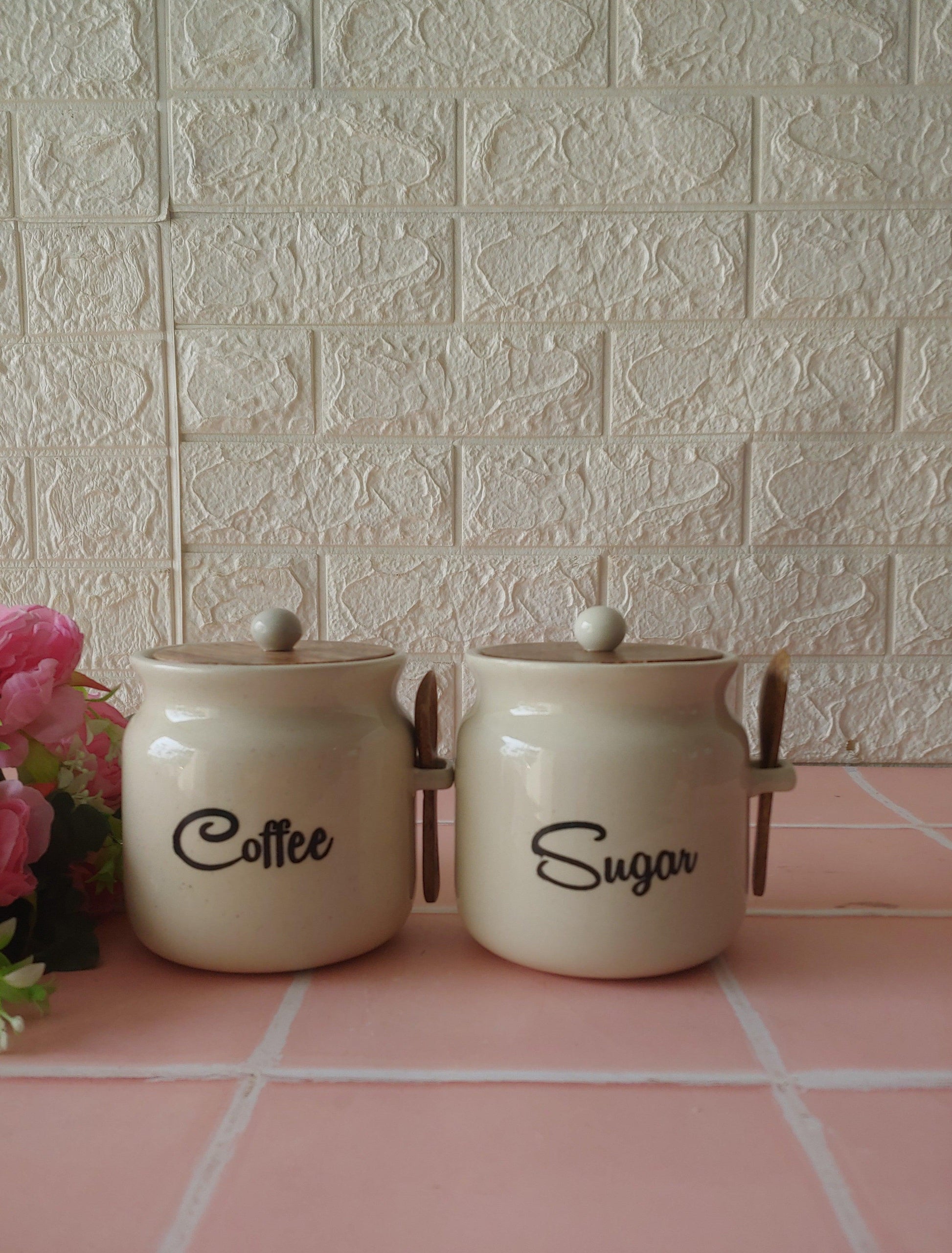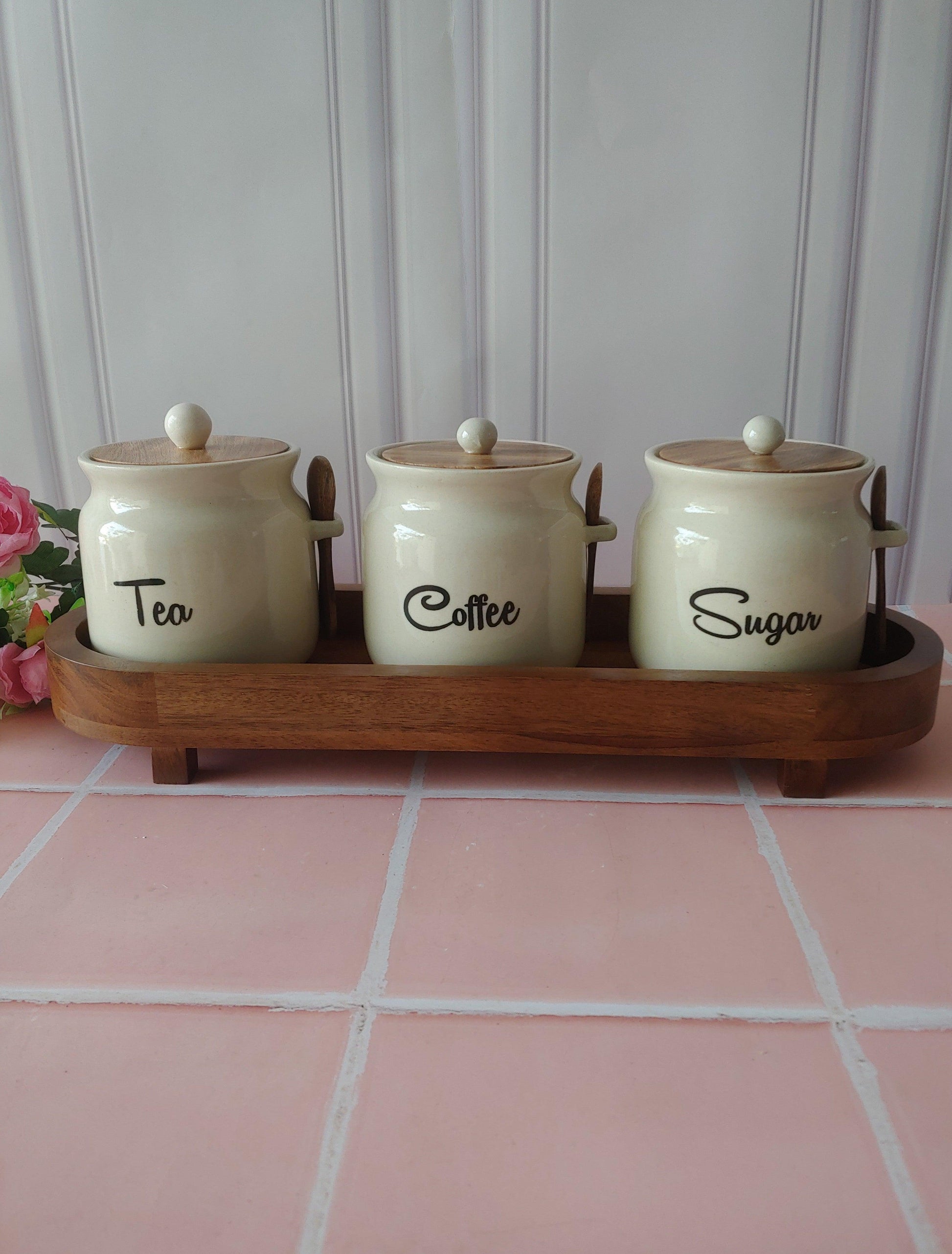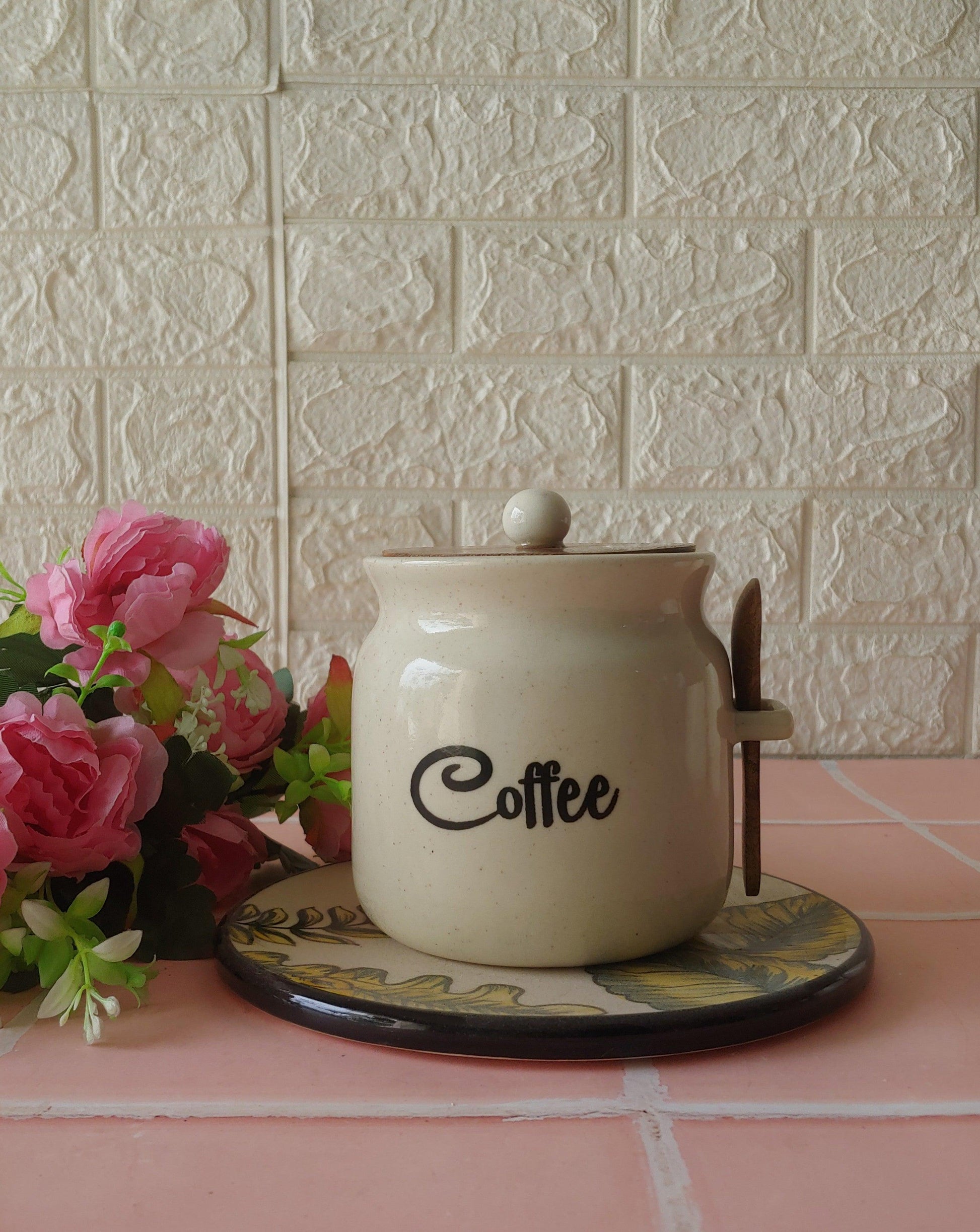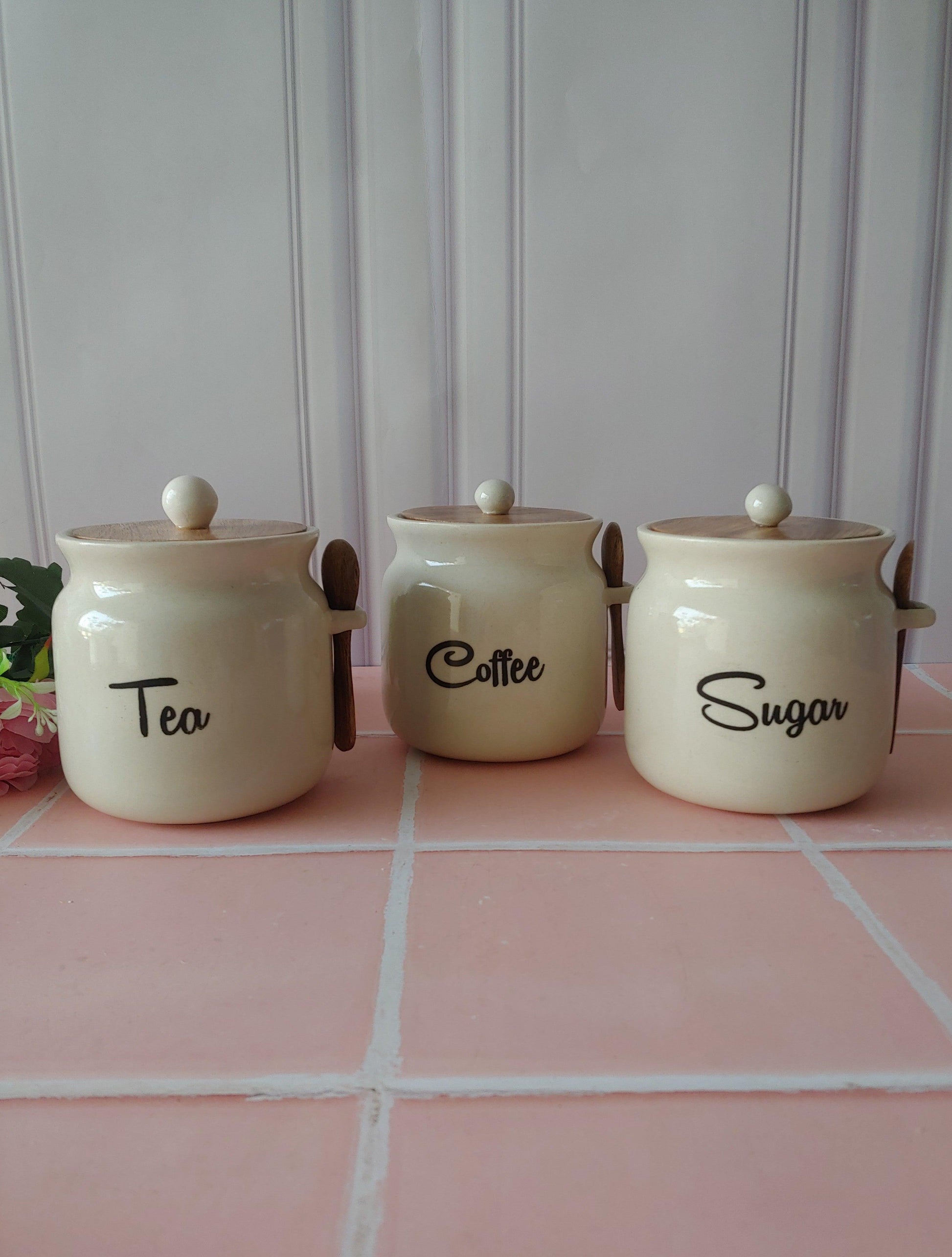 Ivory Matka Solid Ceremic Tea Coffee Sugar Canisters 500ml