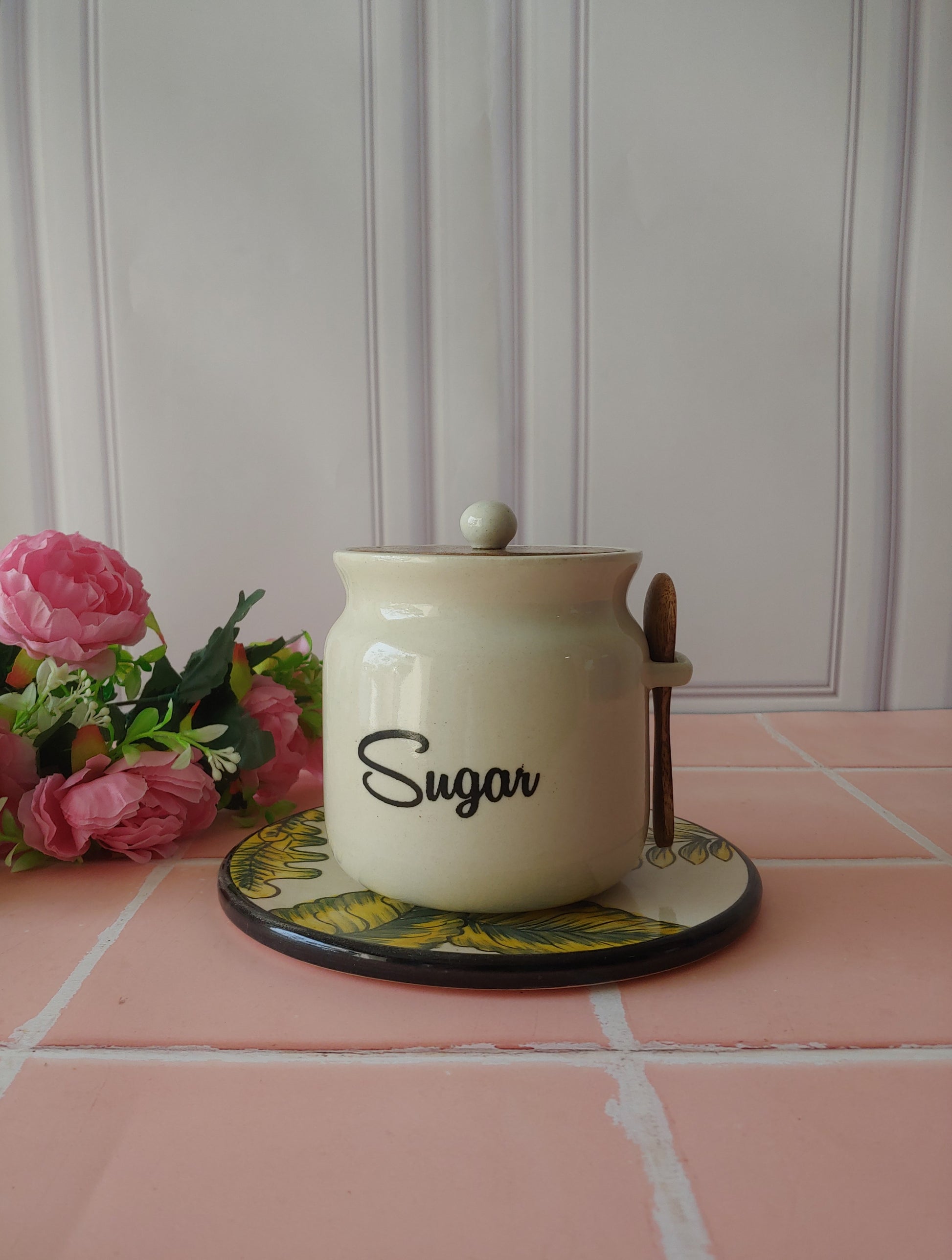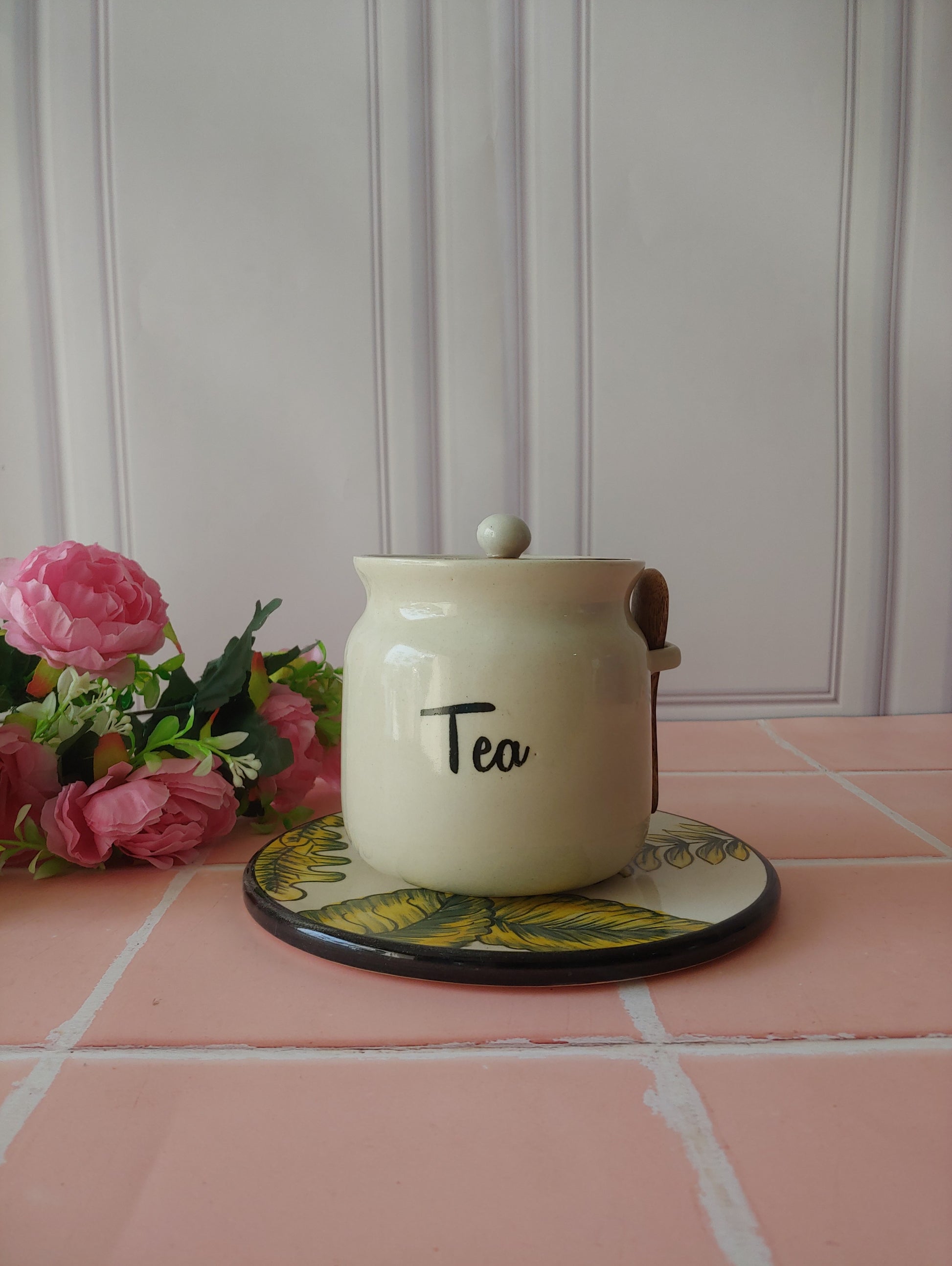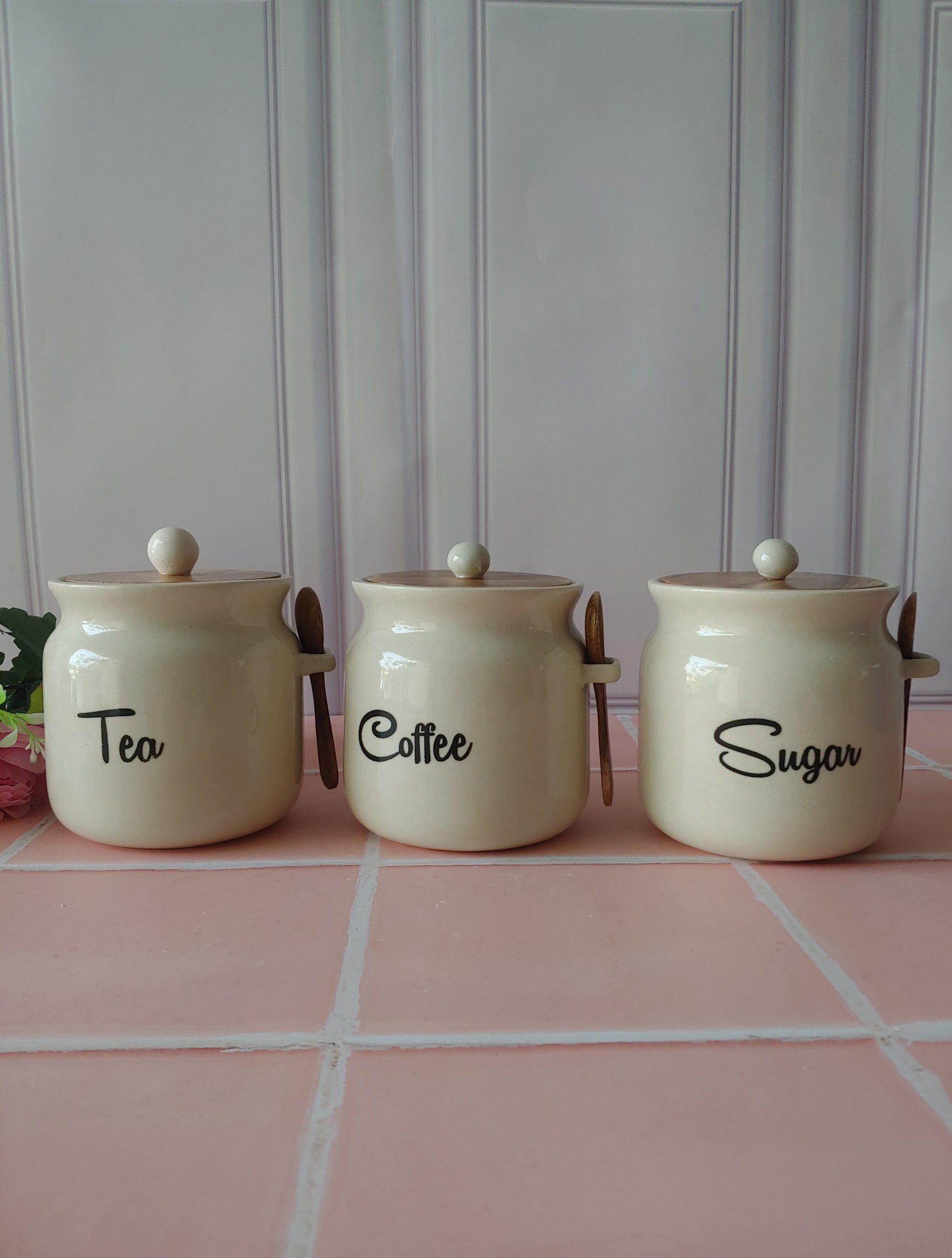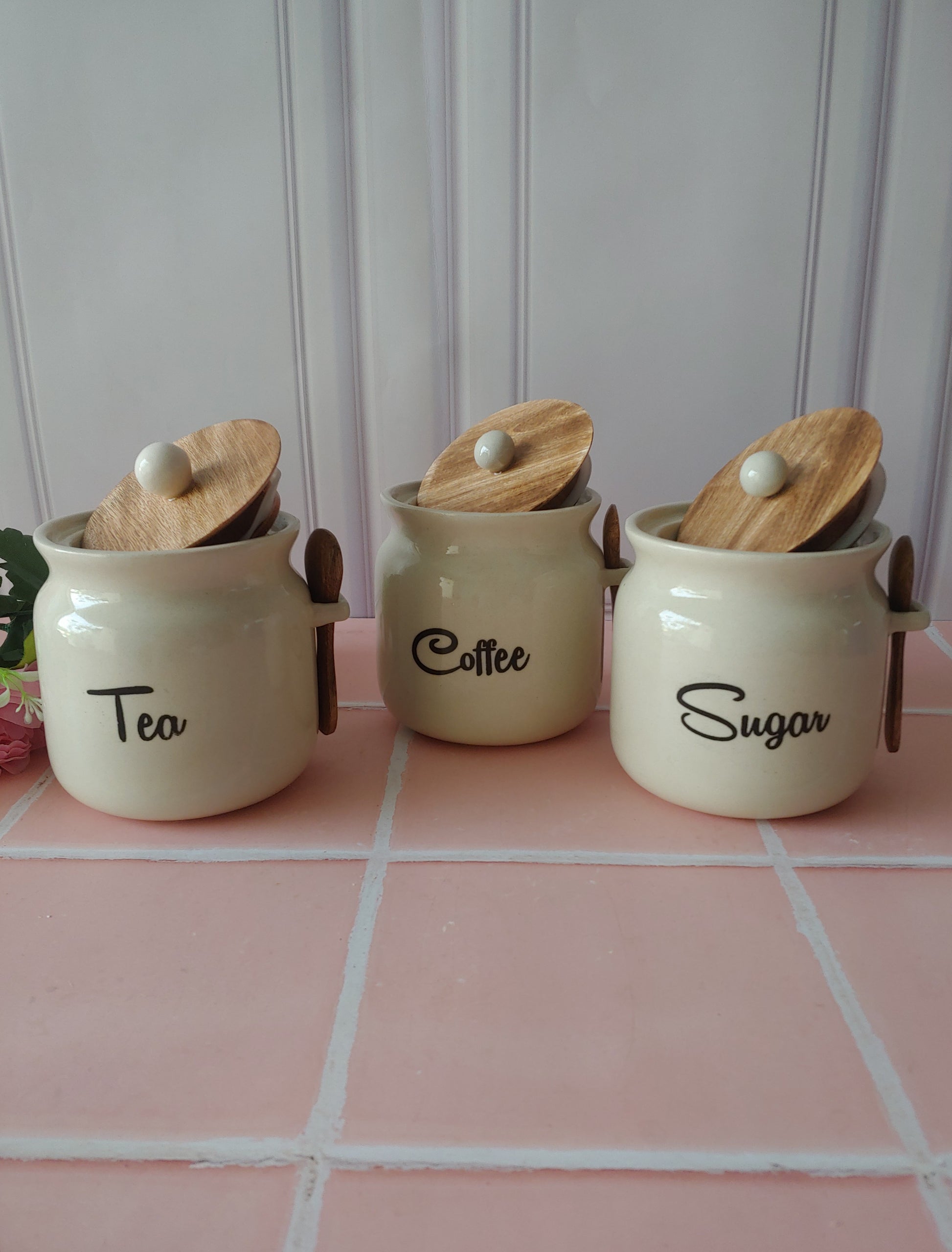 Ivory Matka Solid Ceremic Tea Coffee Sugar Canisters 500ml