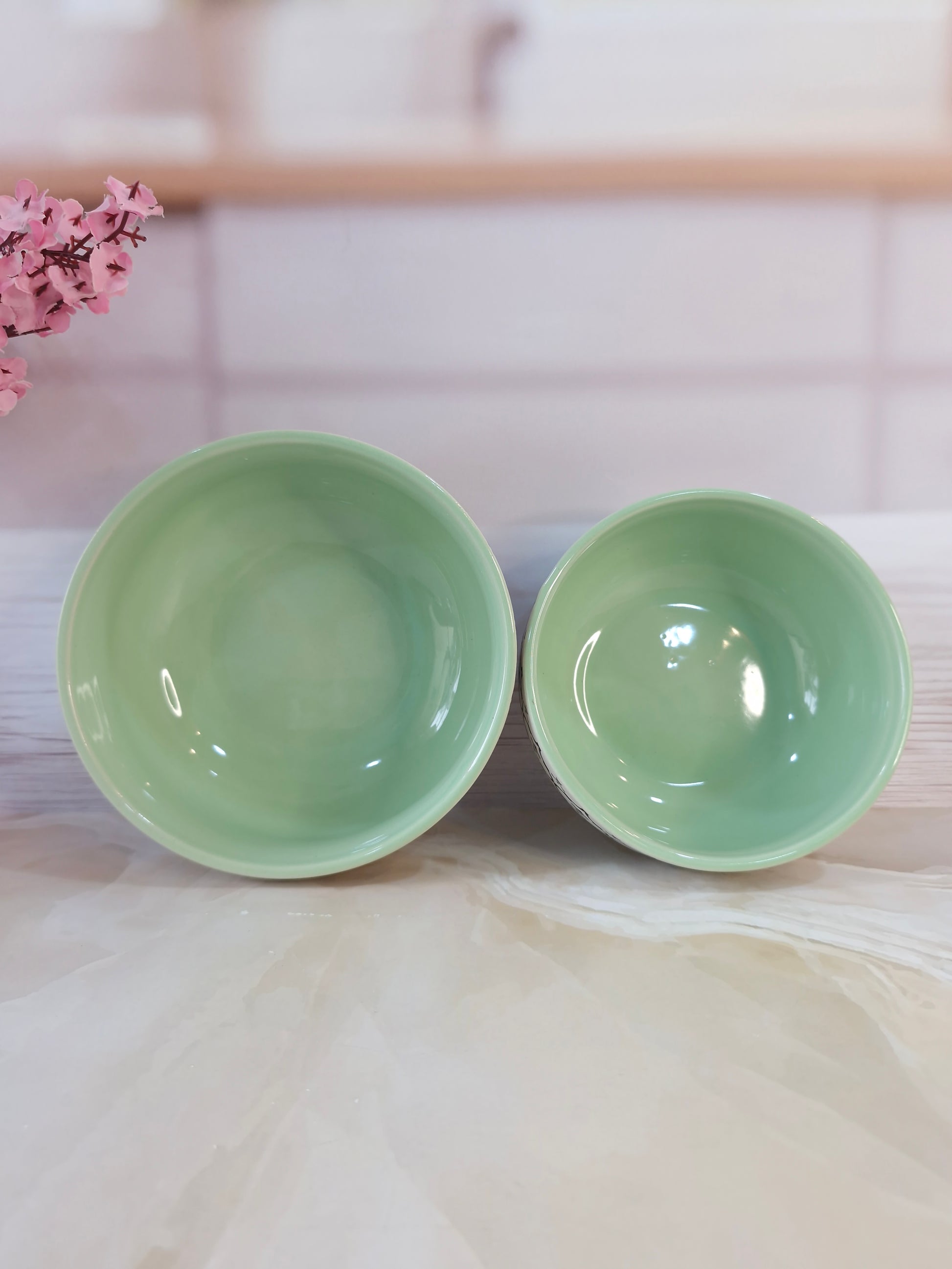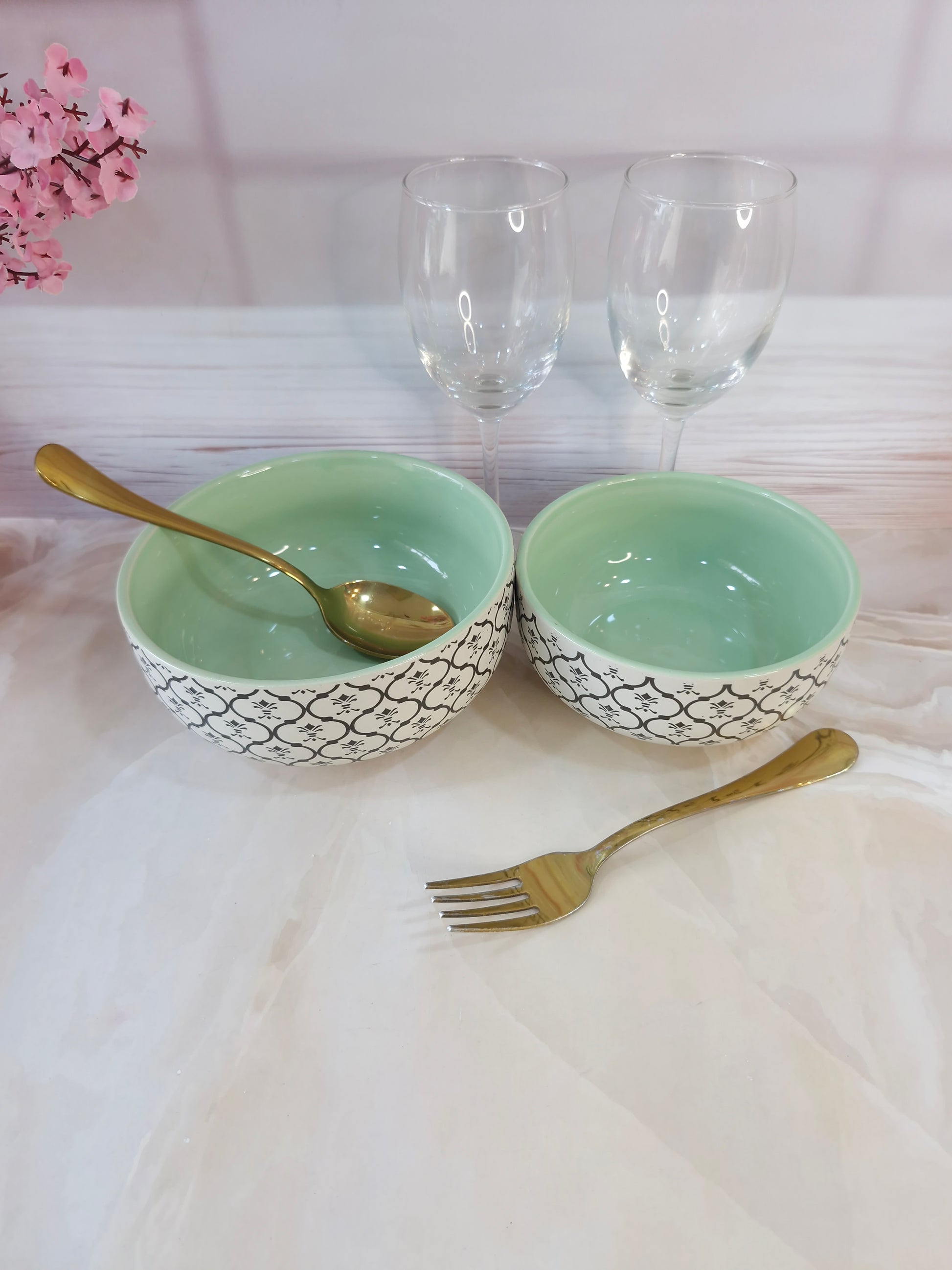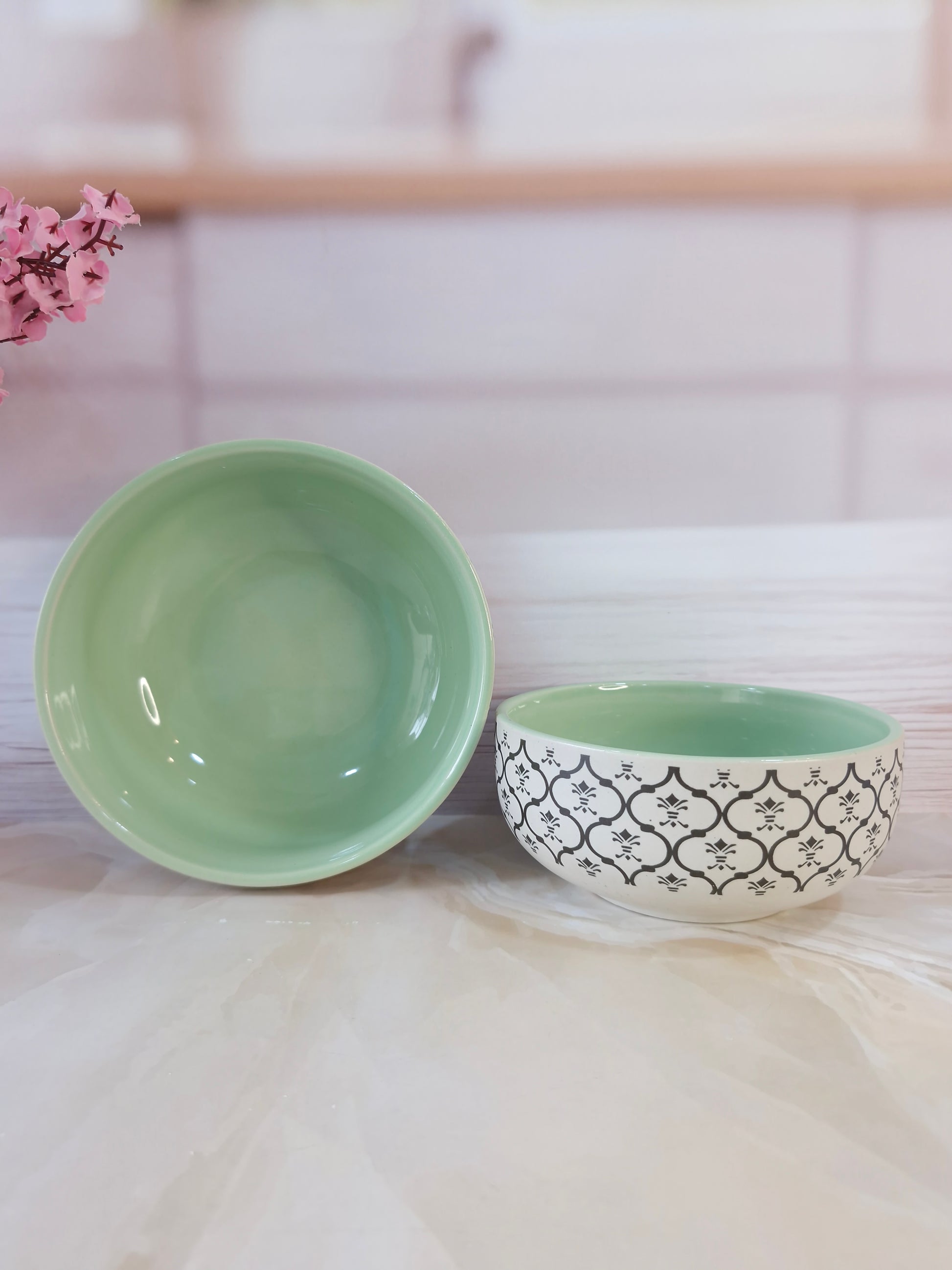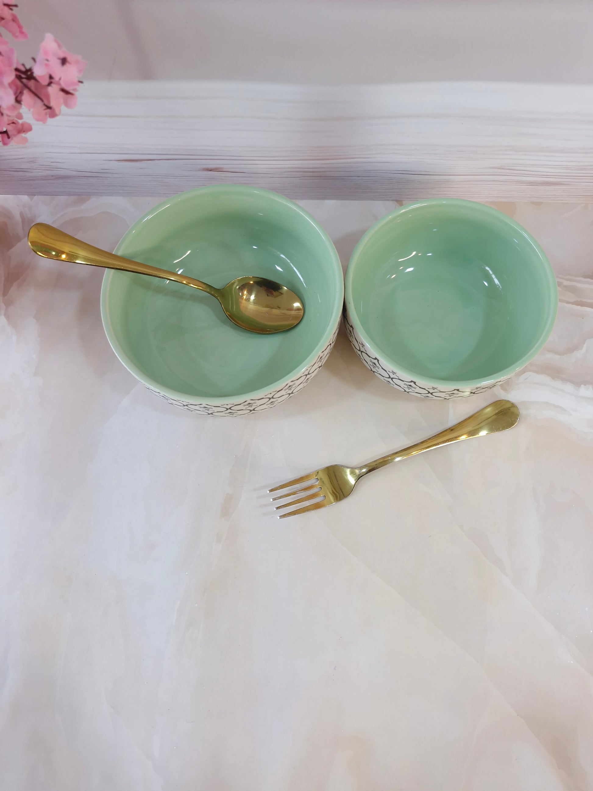 Dreamy Beauty Delight Green Handpainted Ceramic Serving Dining Bowls