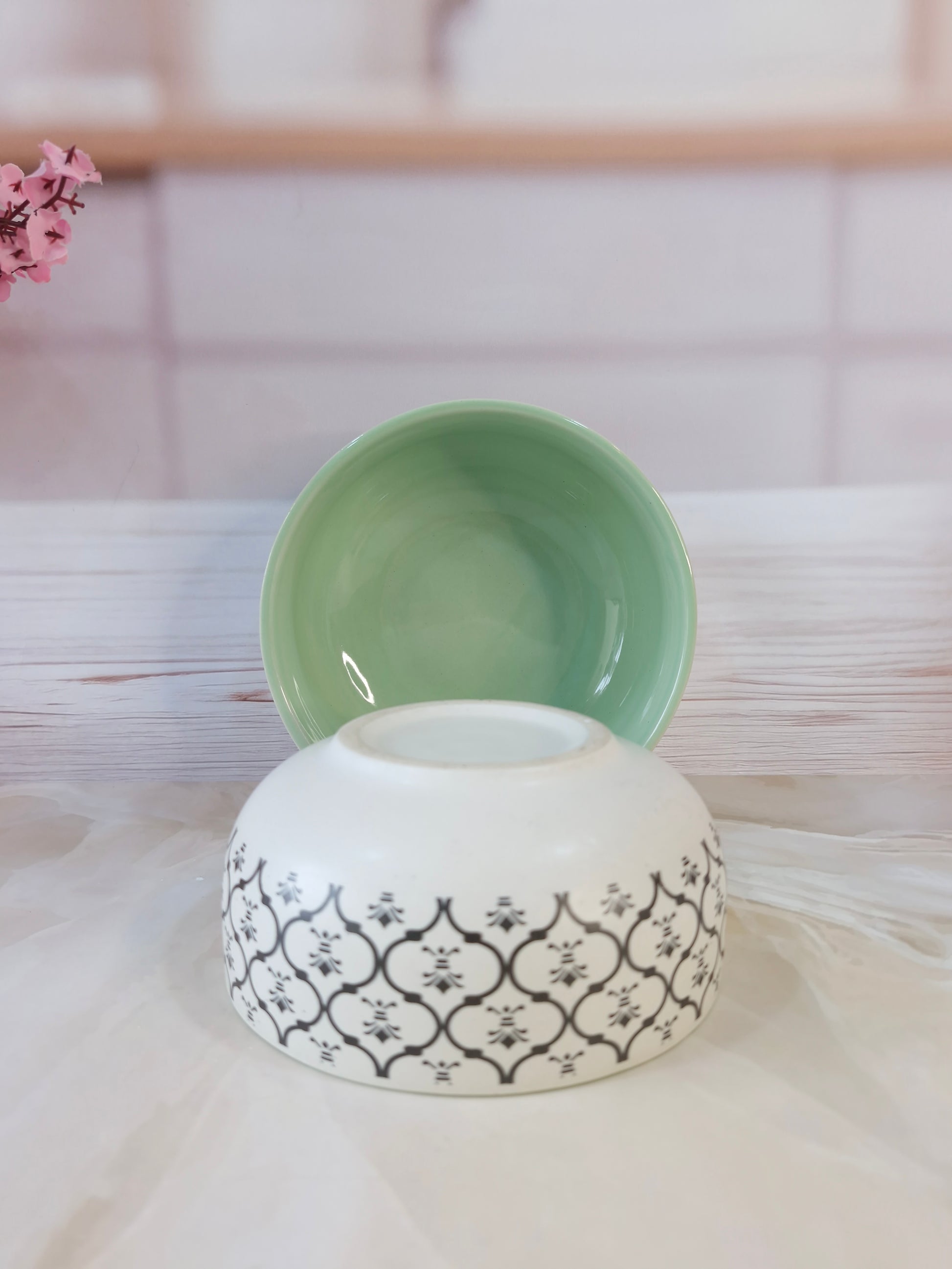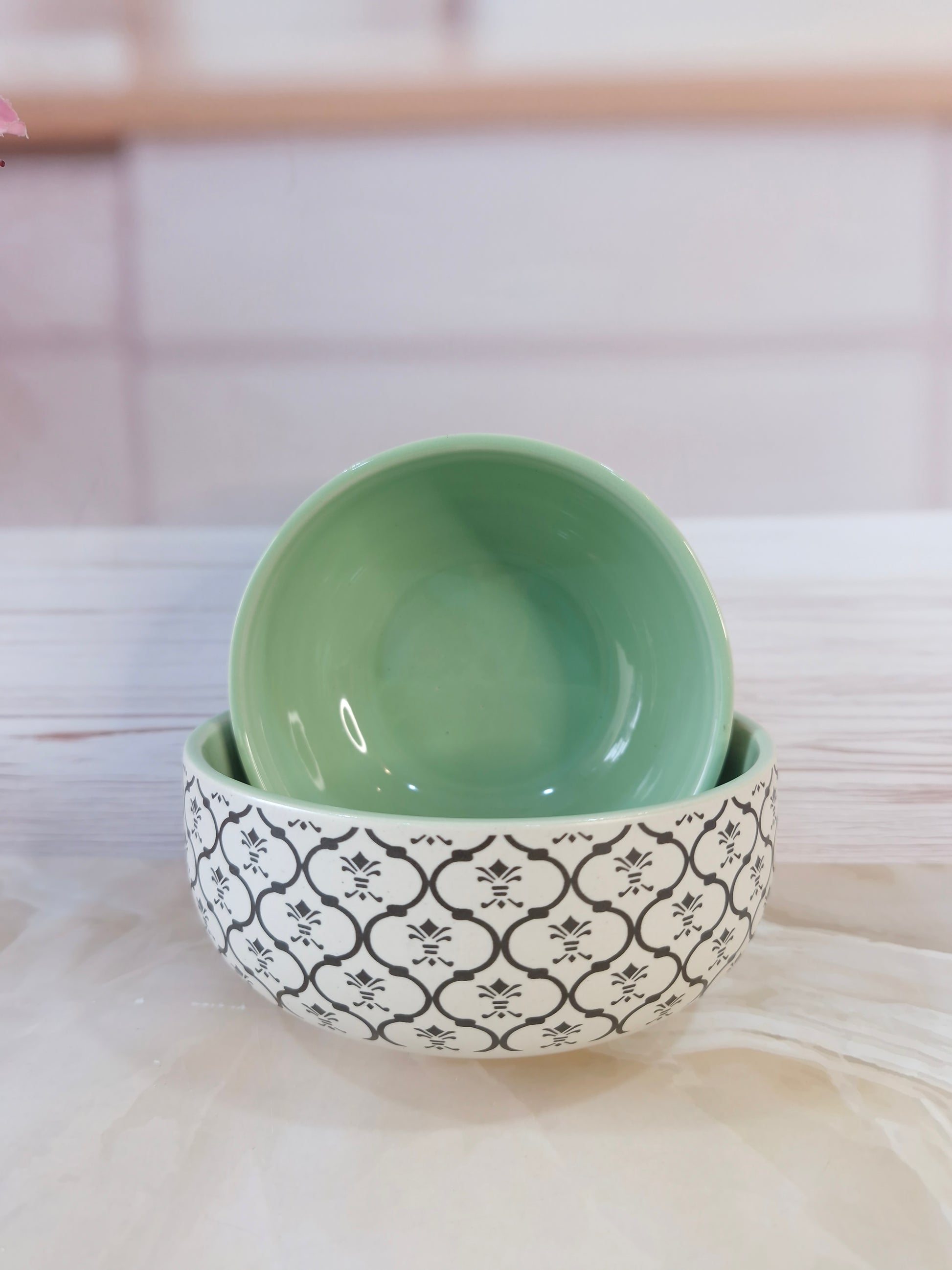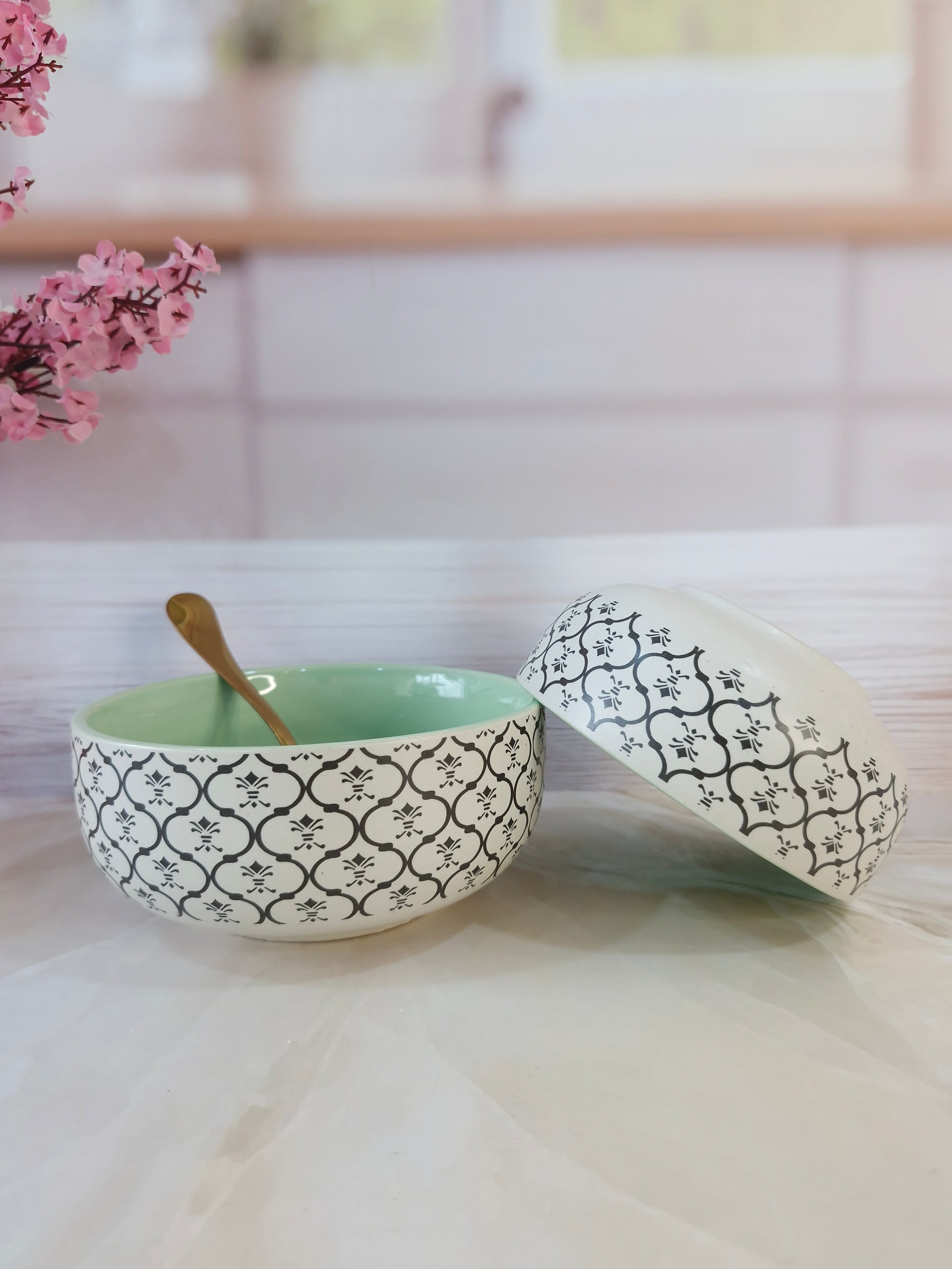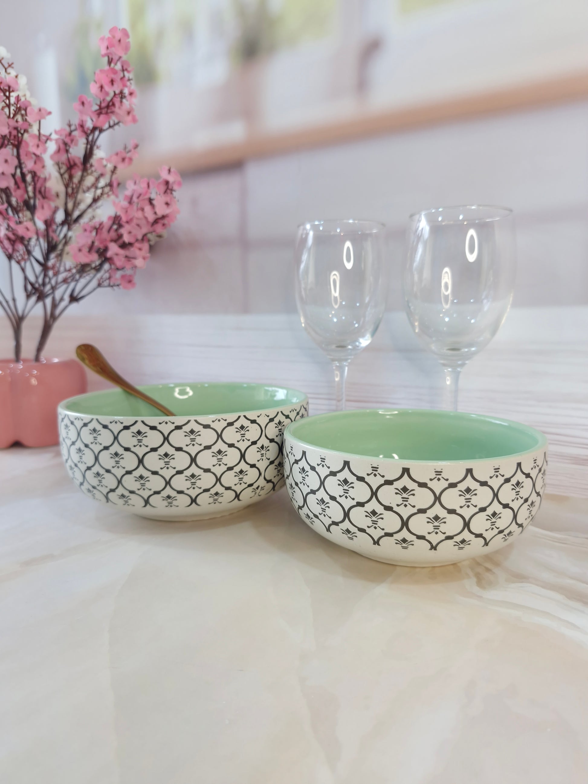 Dreamy Beauty Delight Green Handpainted Ceramic Serving Dining Bowls