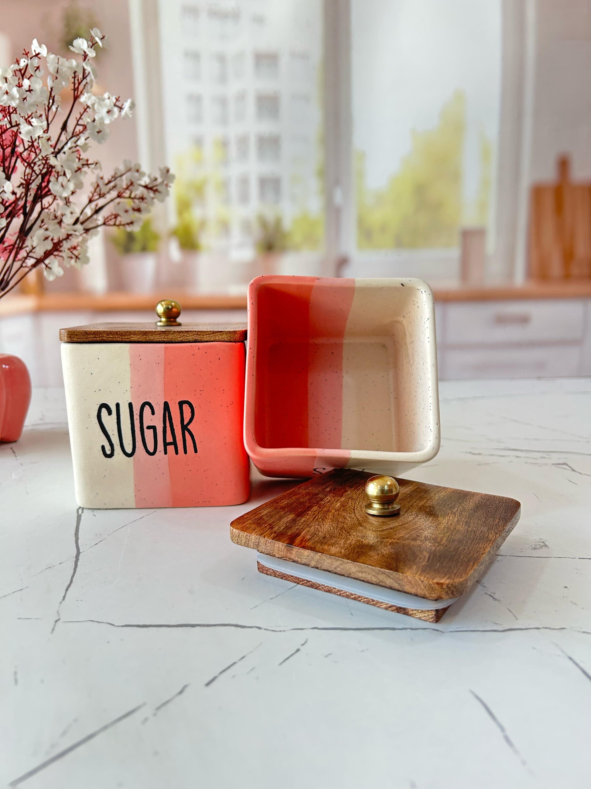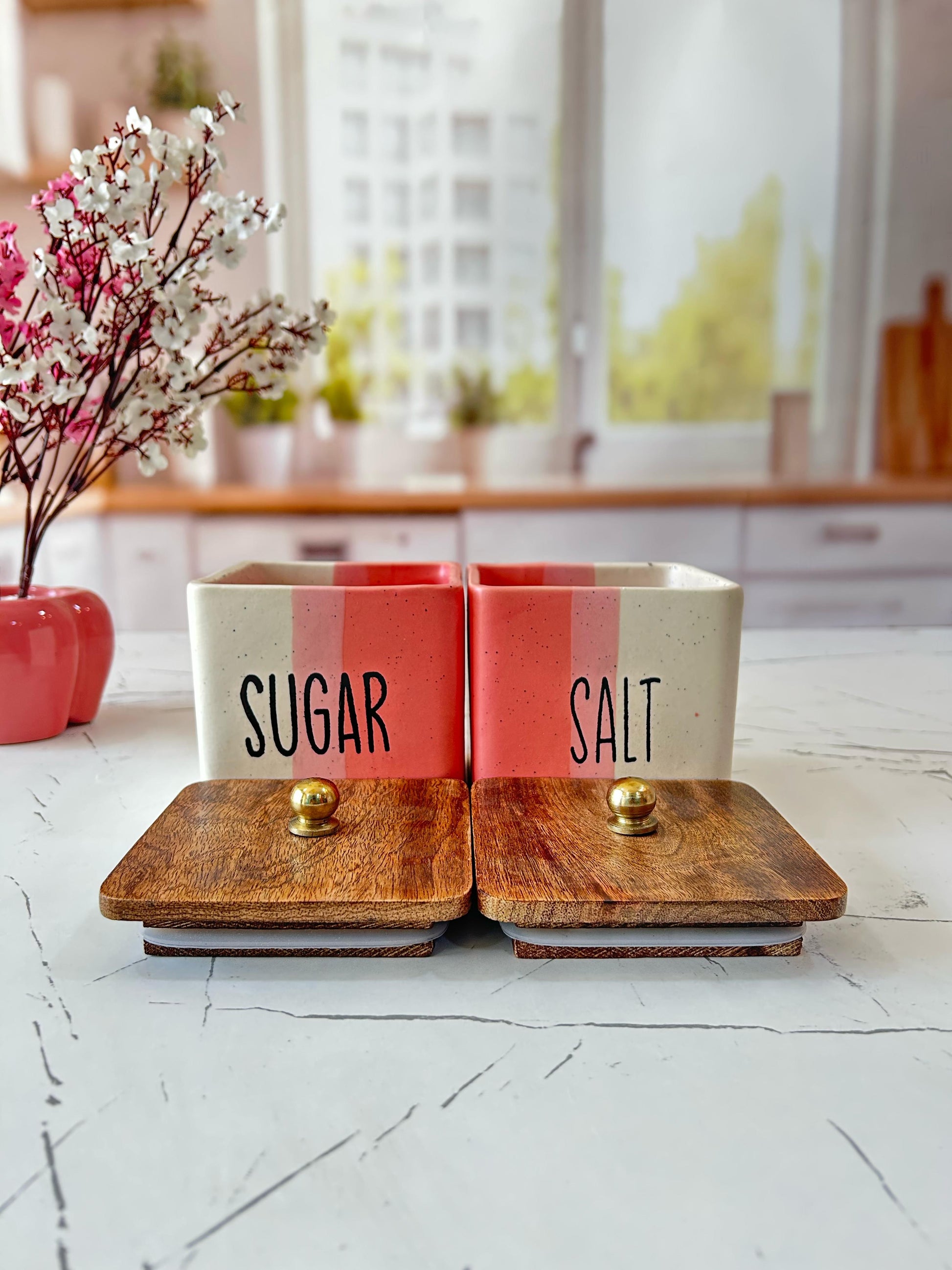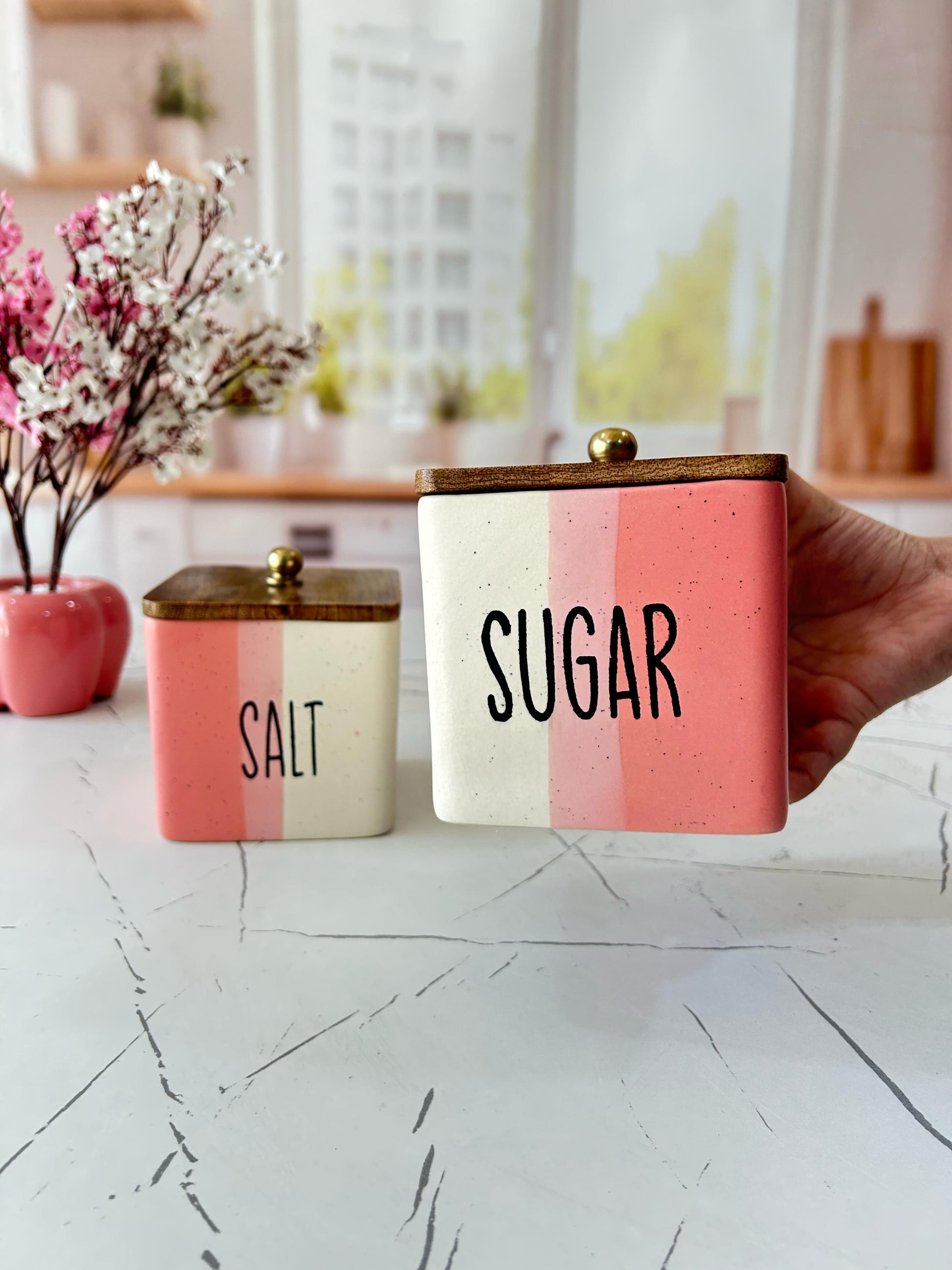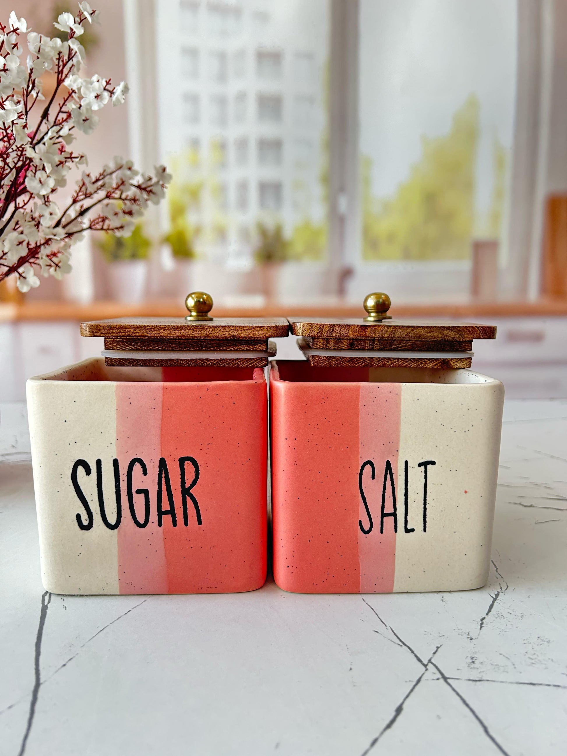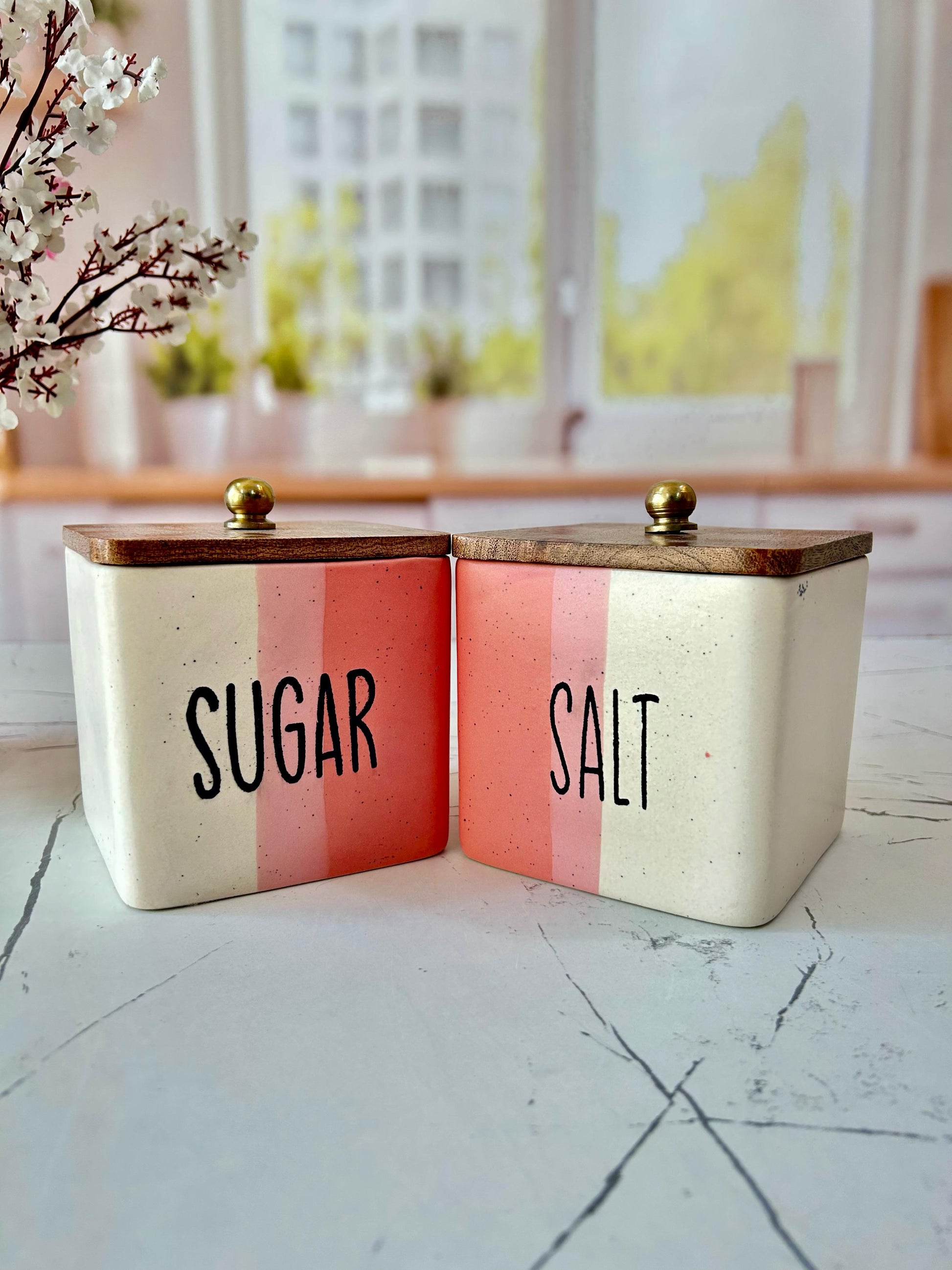 Elegance Pink colored ceramic Salt Sugar Airtight Container Set 500ml