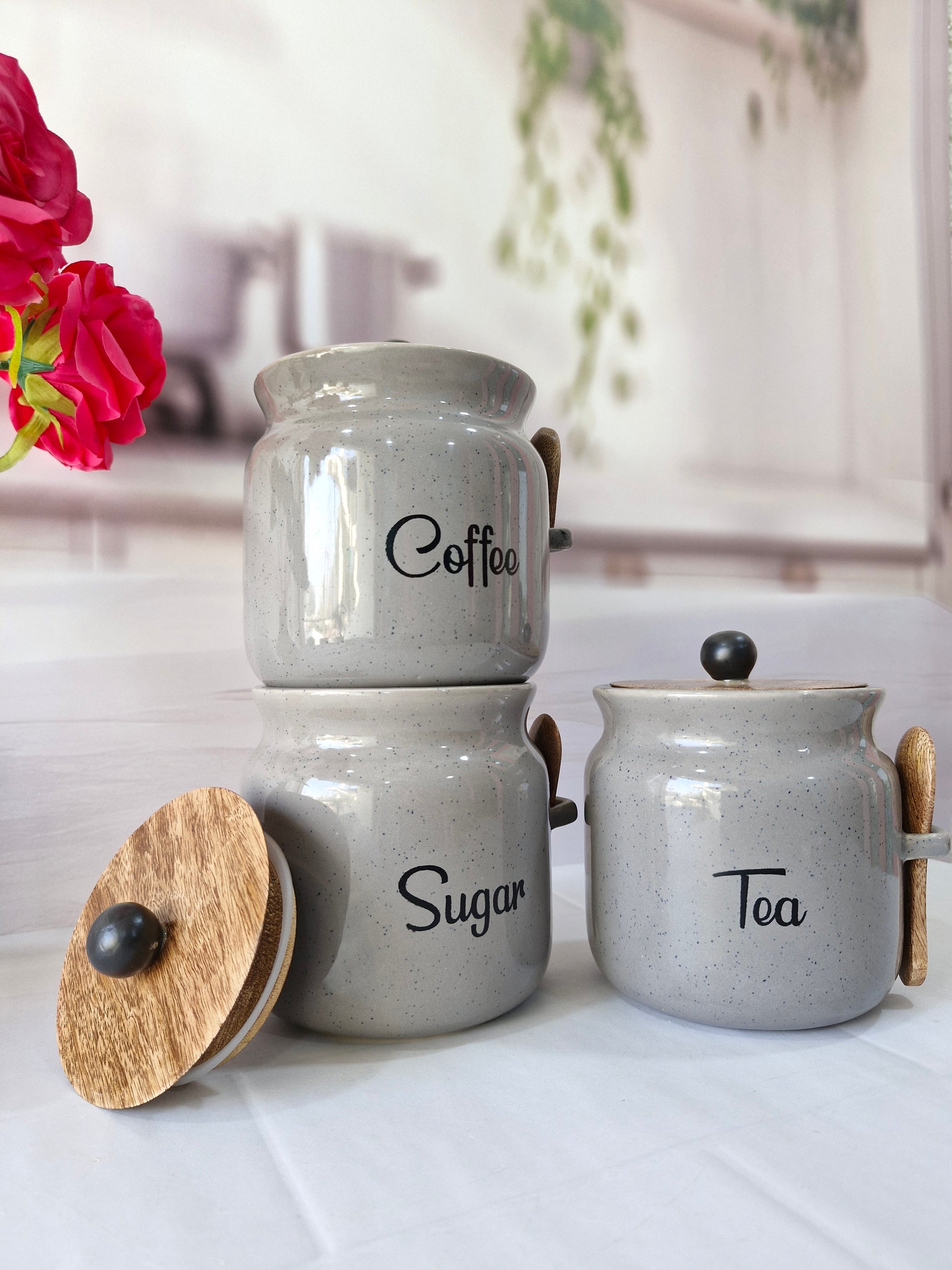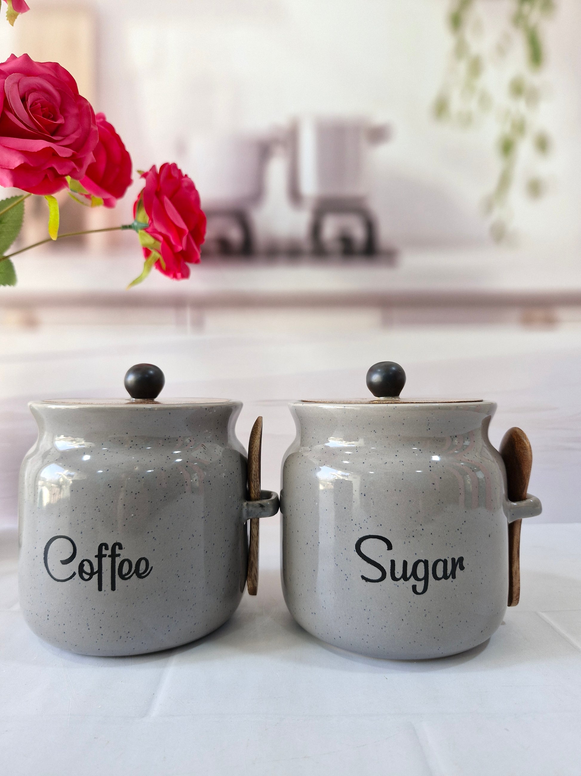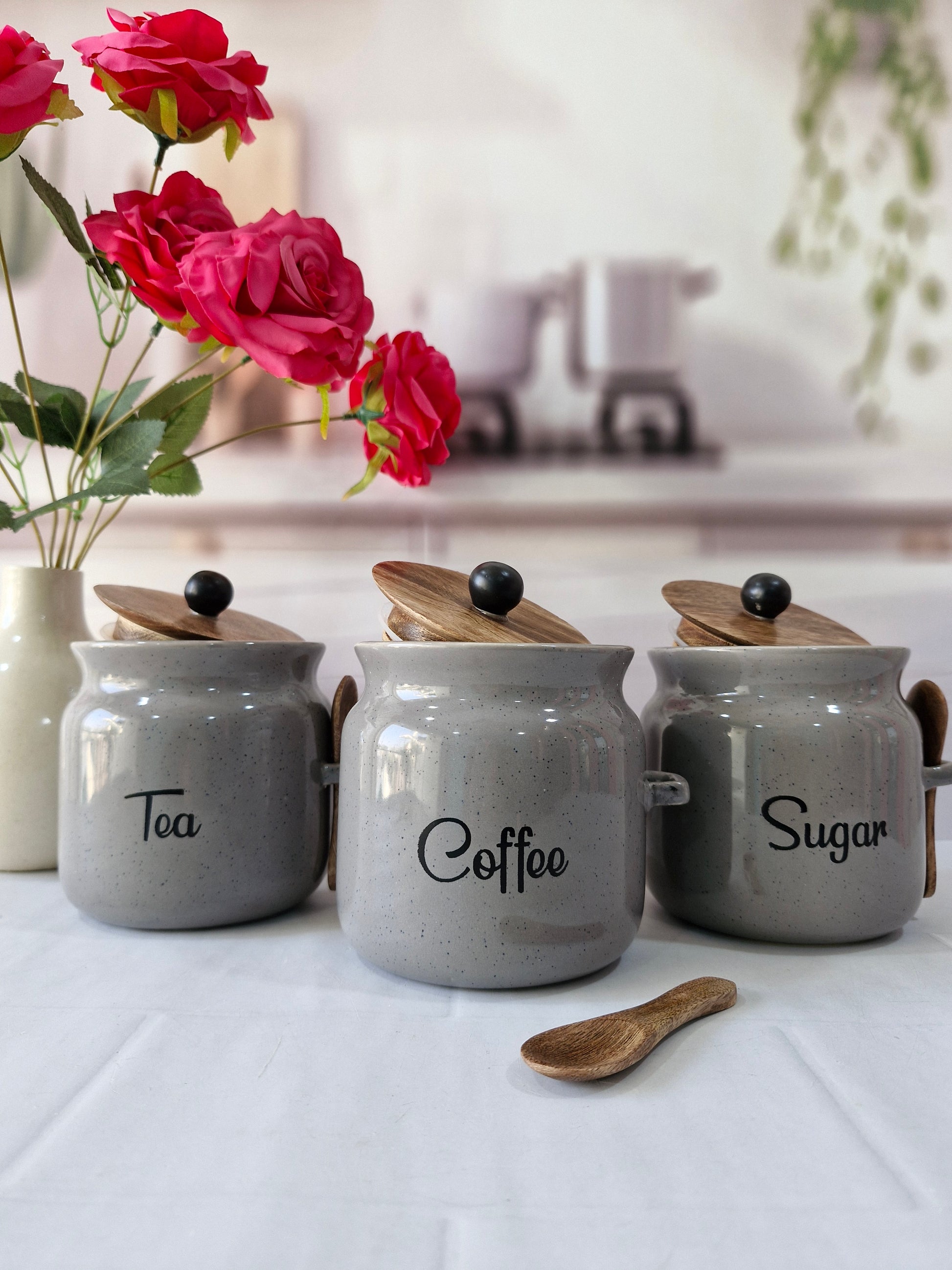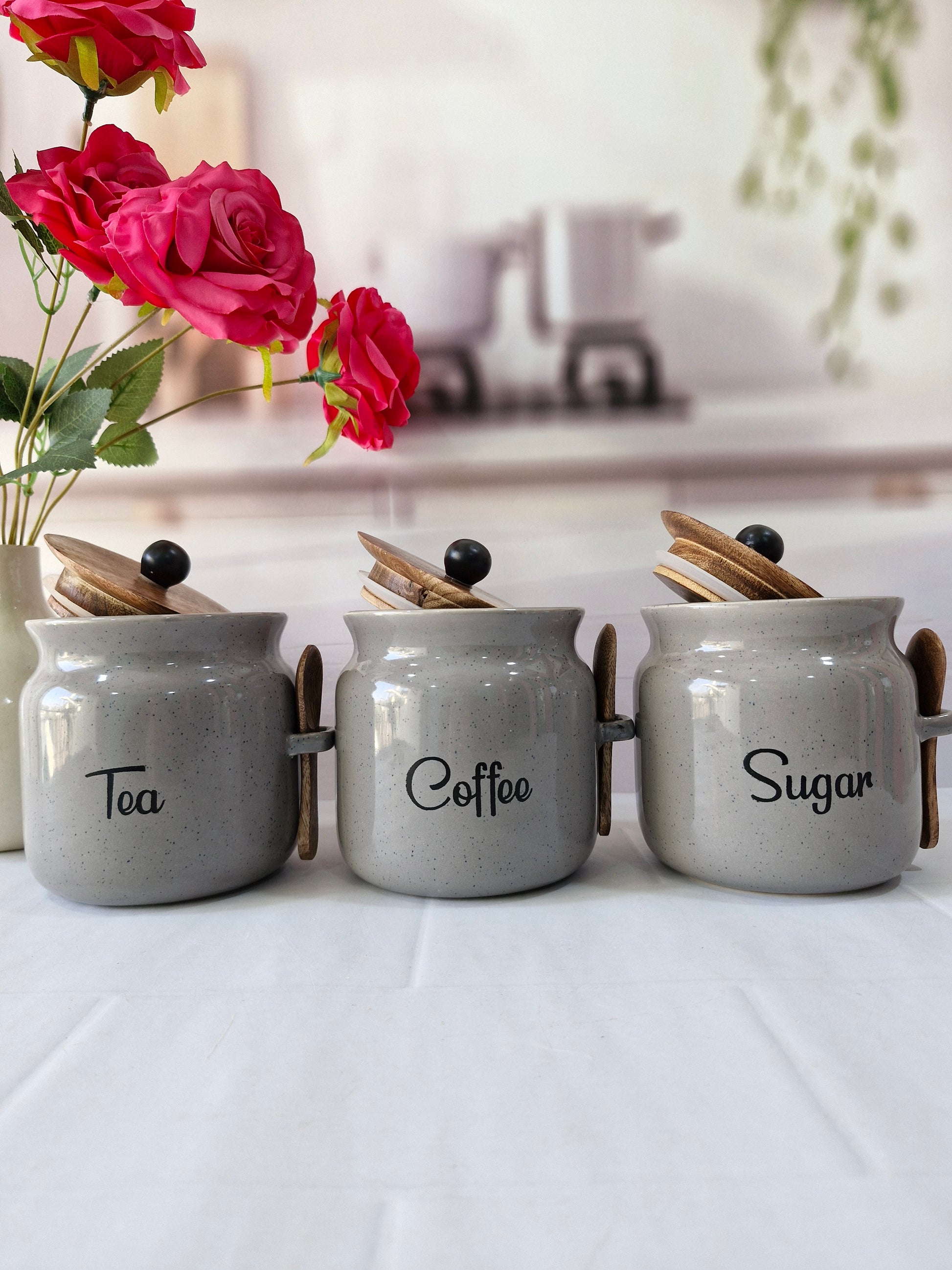 Everyday Morning vibes Airtight Matka Solid Ceremic Tea,coffee, Sugar,Canisters 500ml