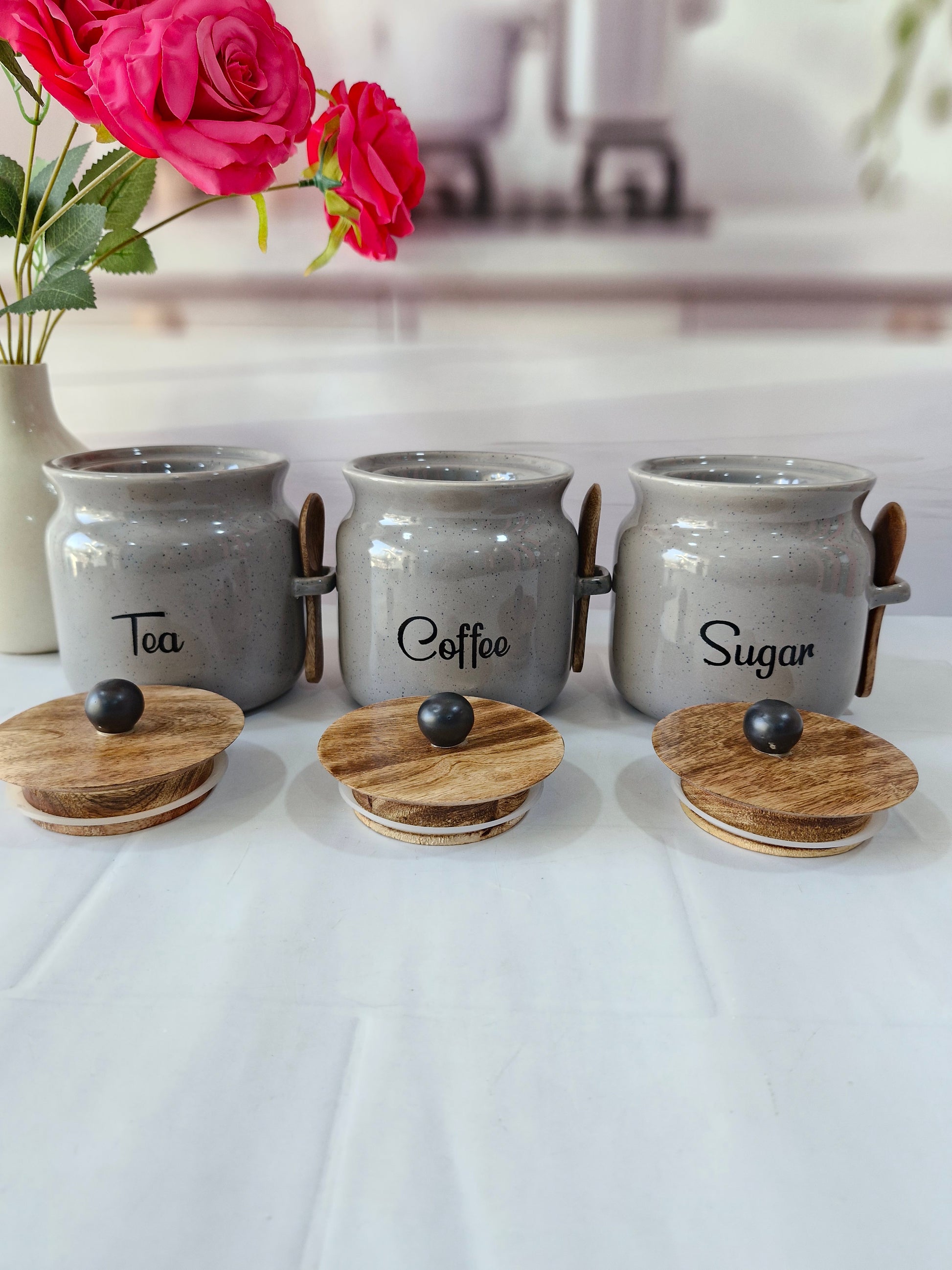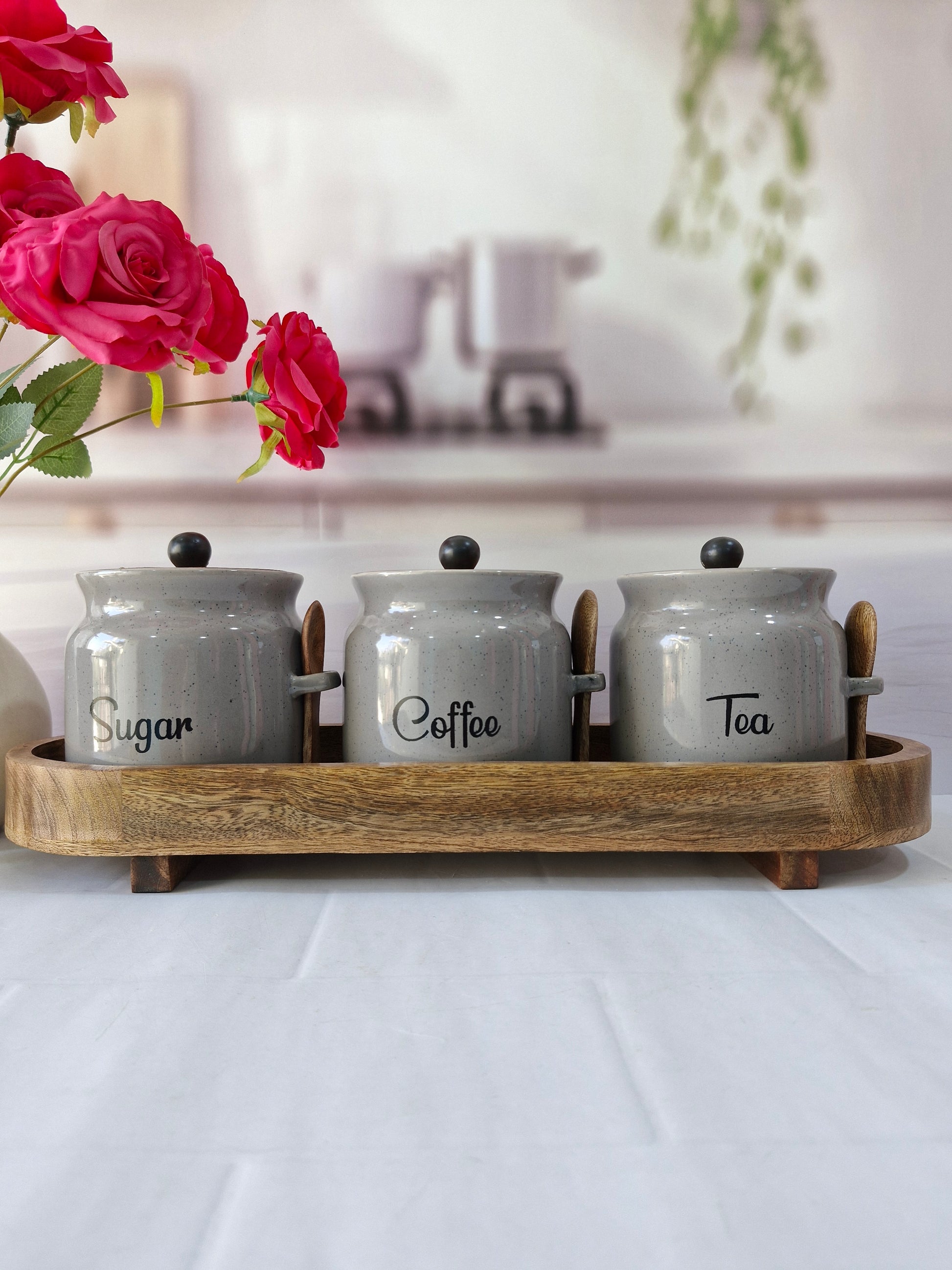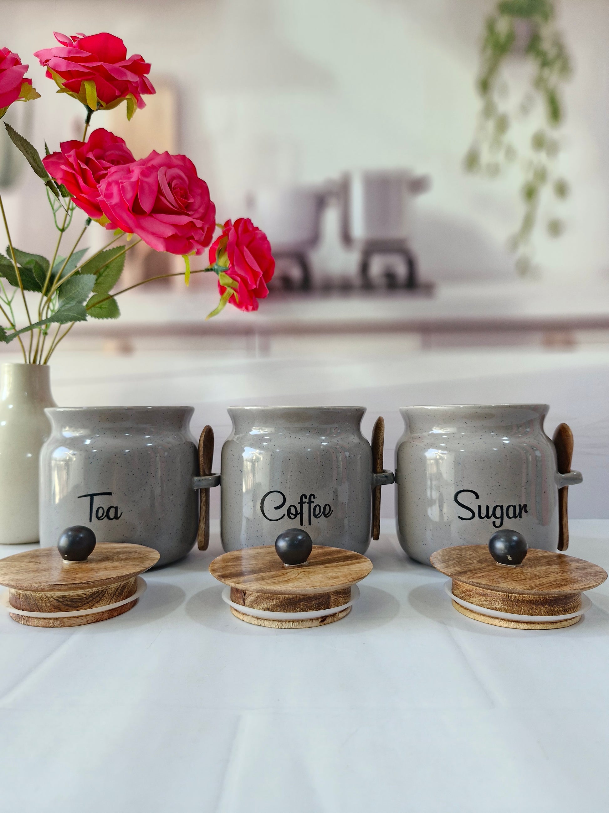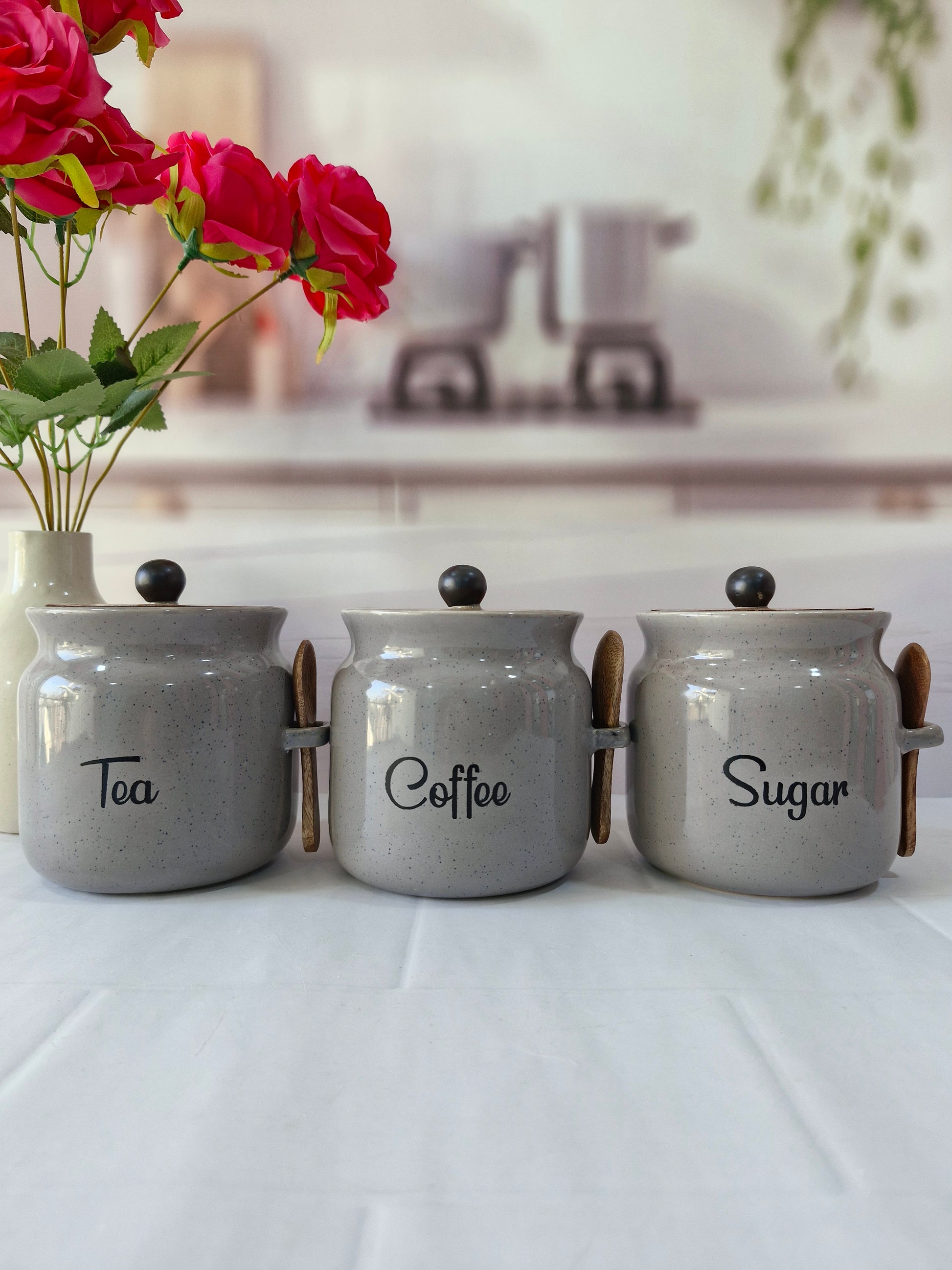 Everyday Morning vibes Airtight Matka Solid Ceremic Tea,coffee, Sugar,Canisters 500ml