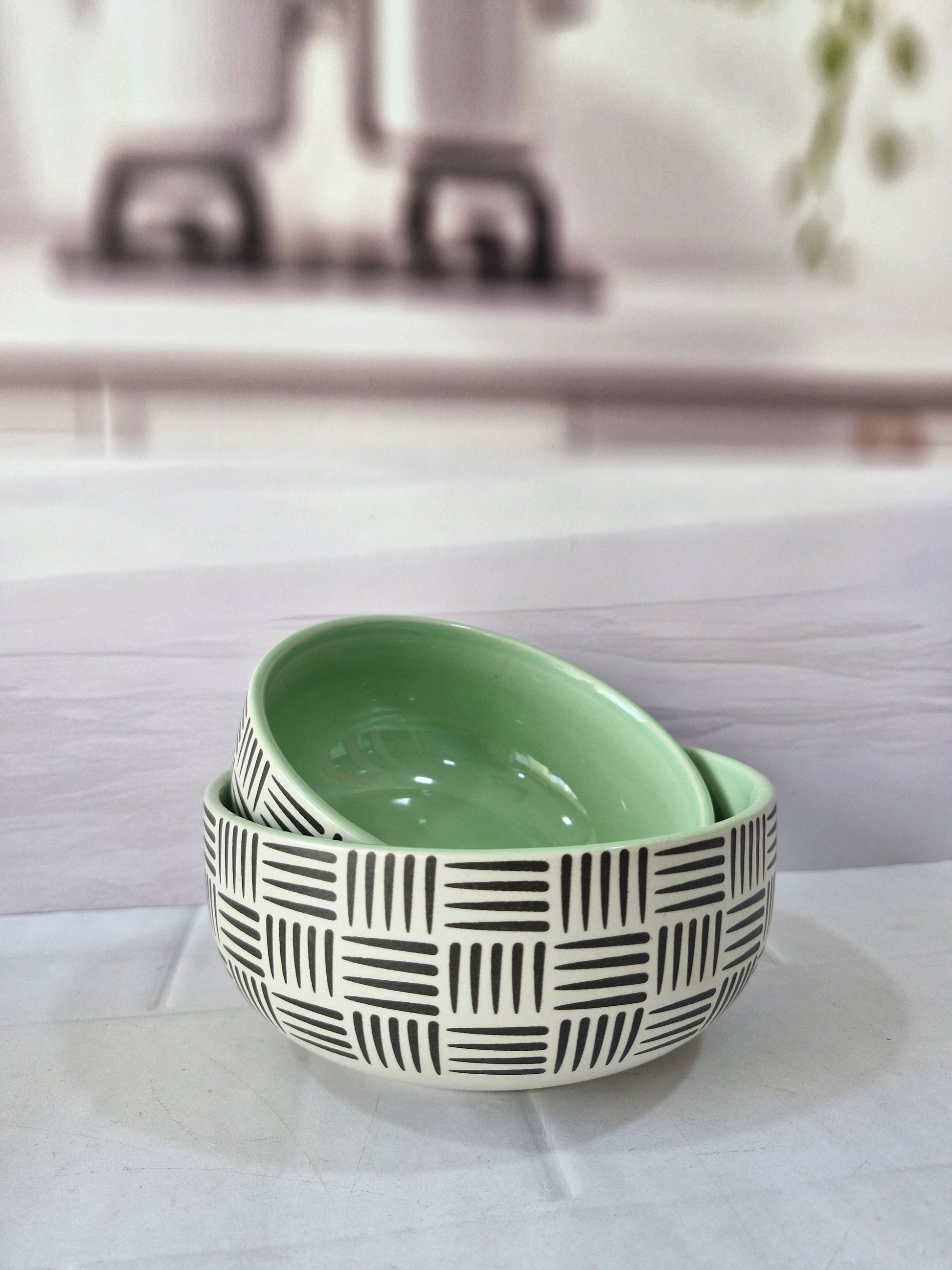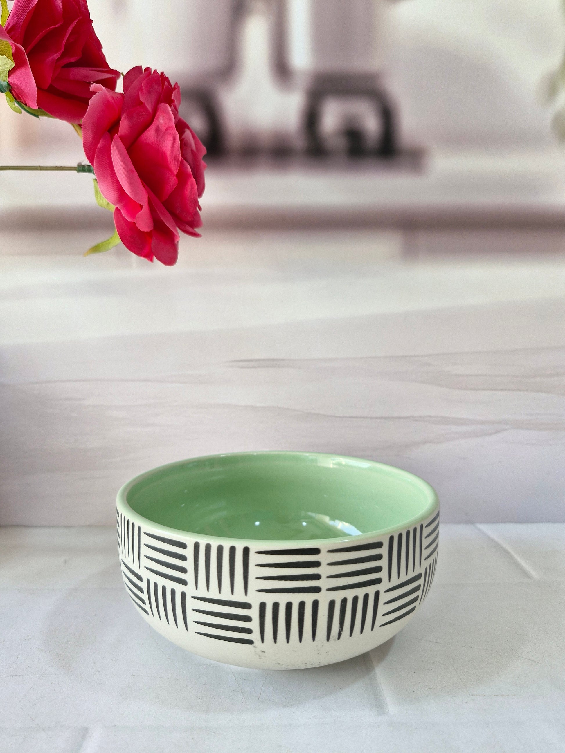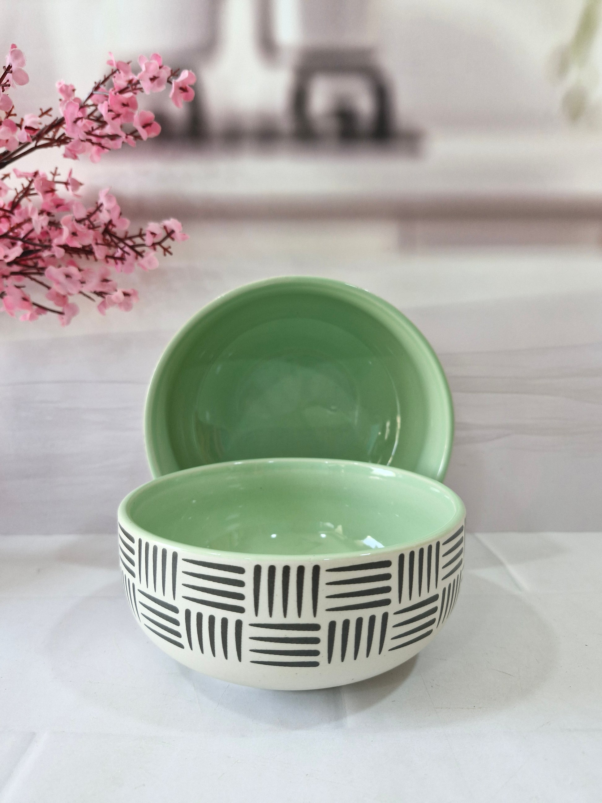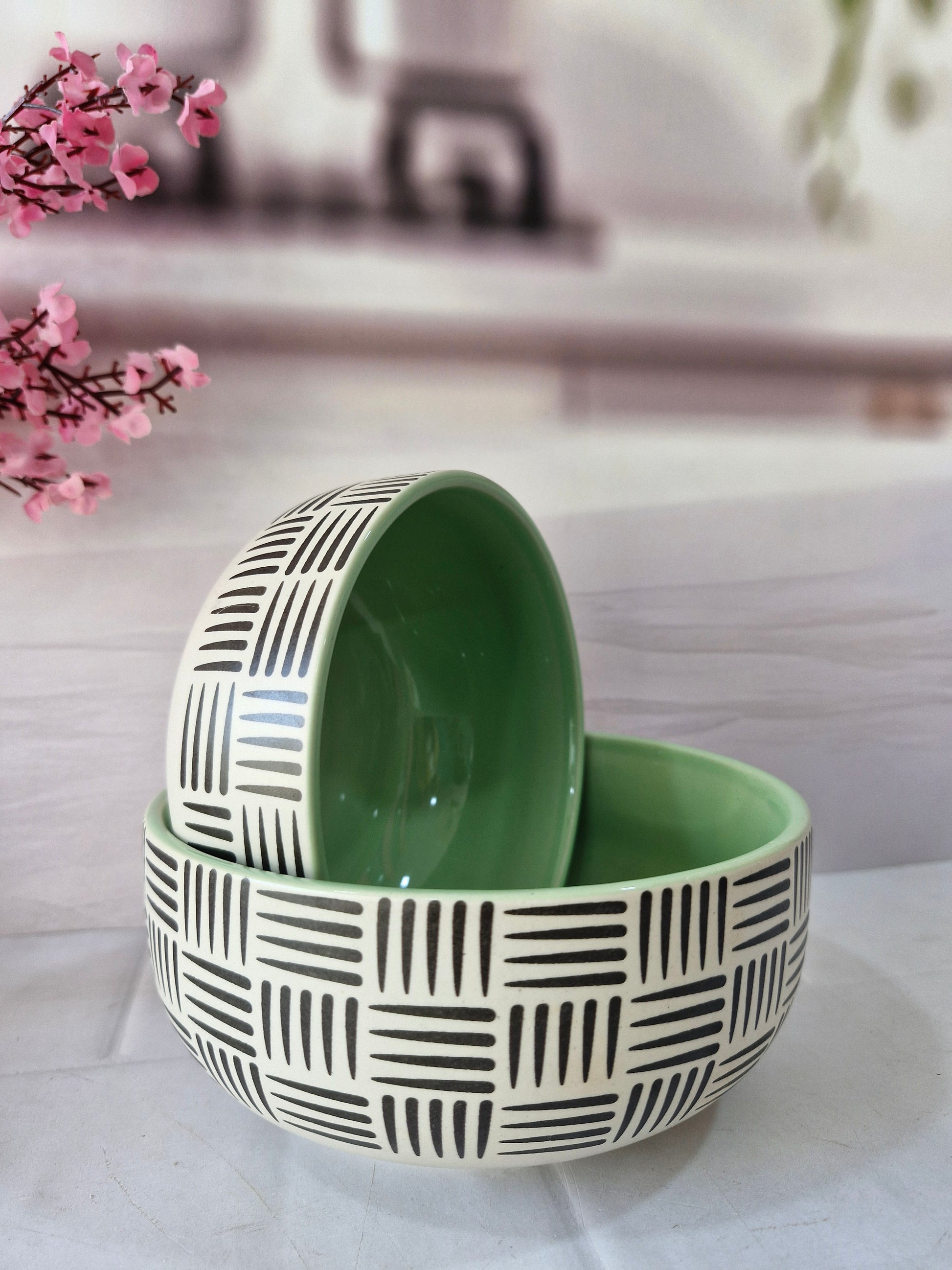 Geometric Pattern Beauty Green Handpainted Ceramic Serving Dining Bowls