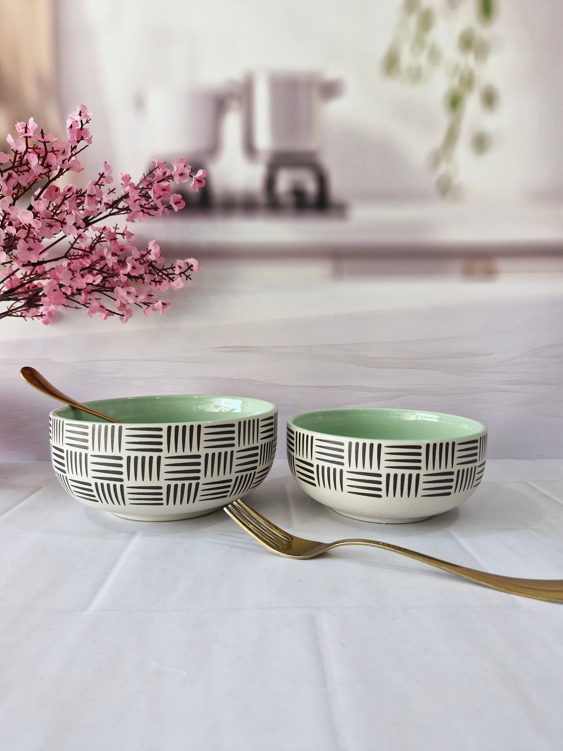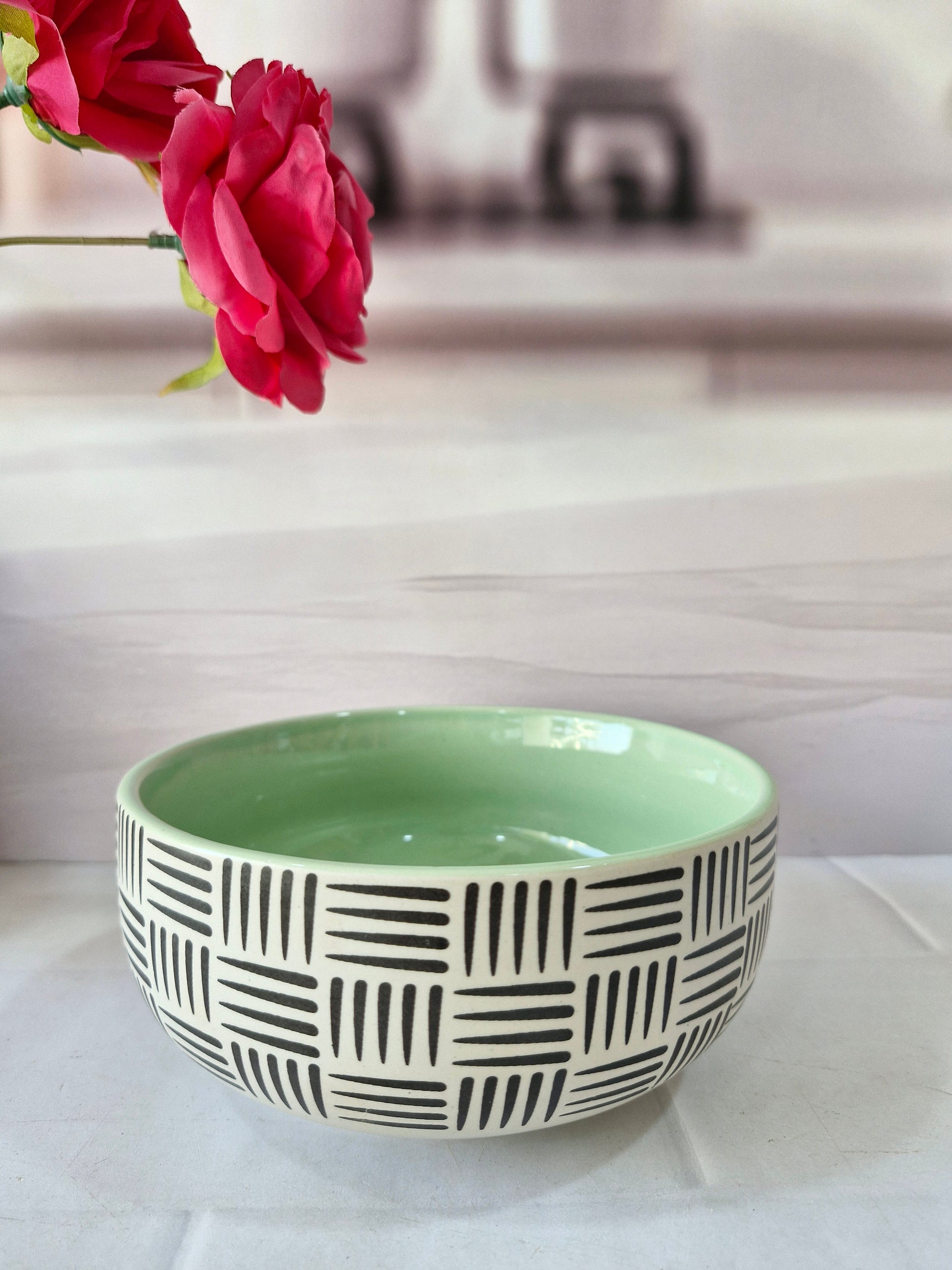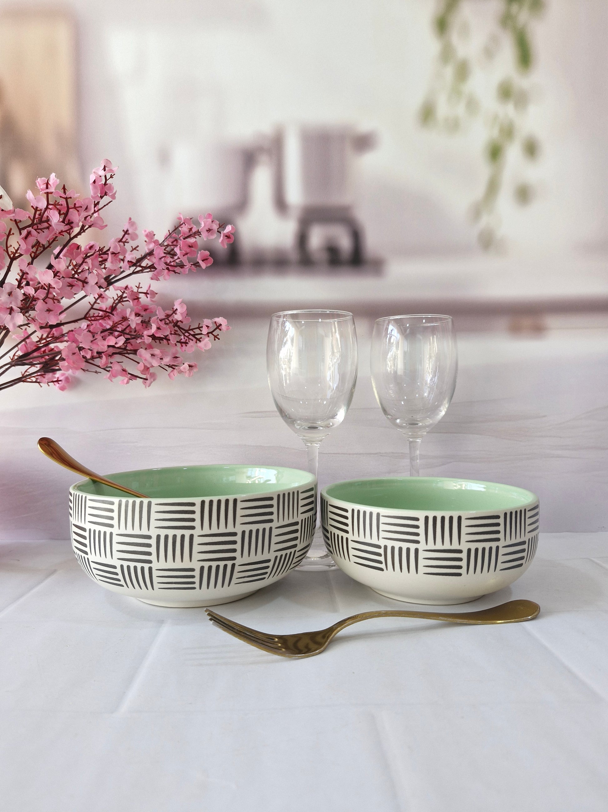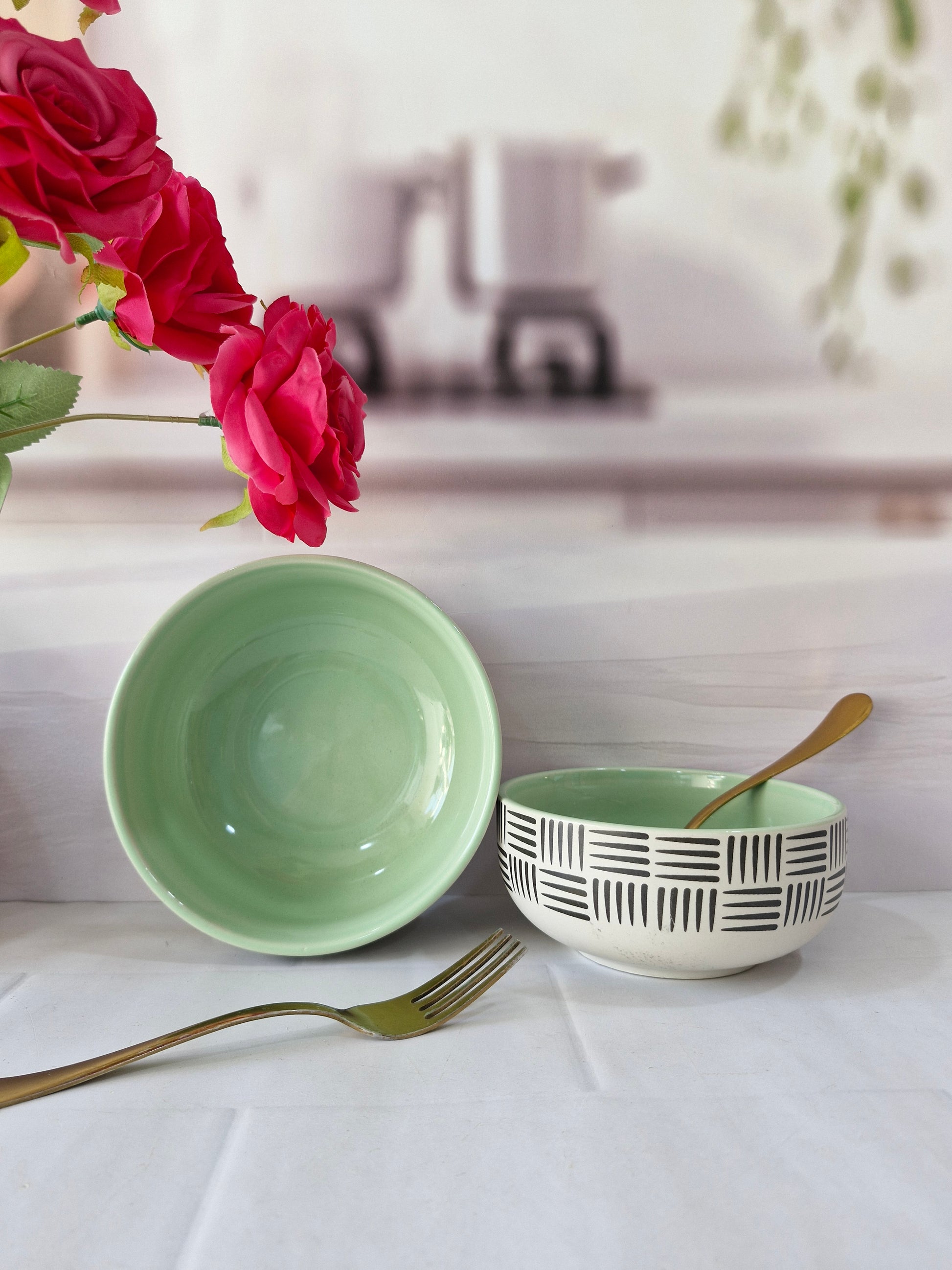 Geometric Pattern Beauty Green Handpainted Ceramic Serving Dining Bowls