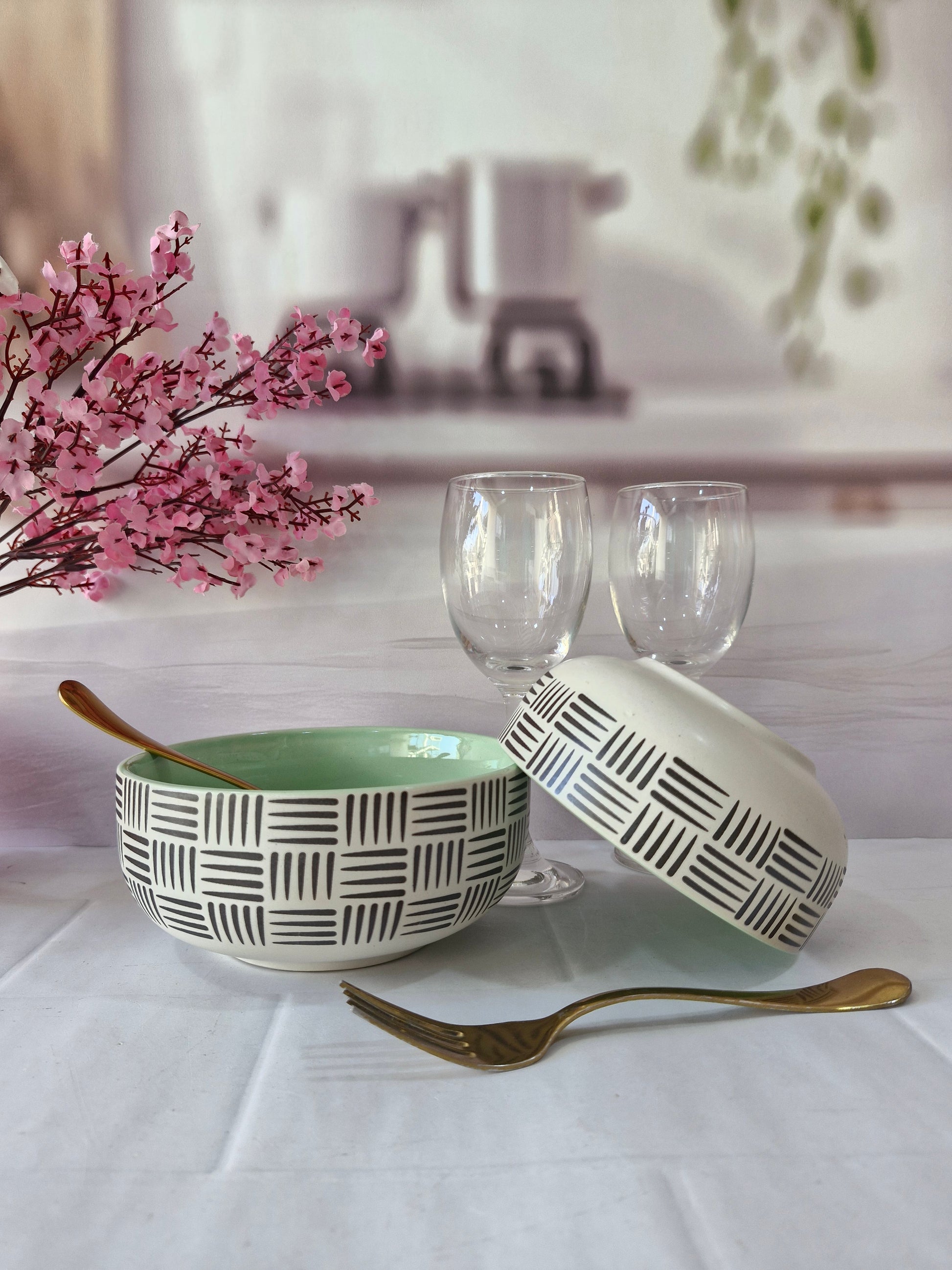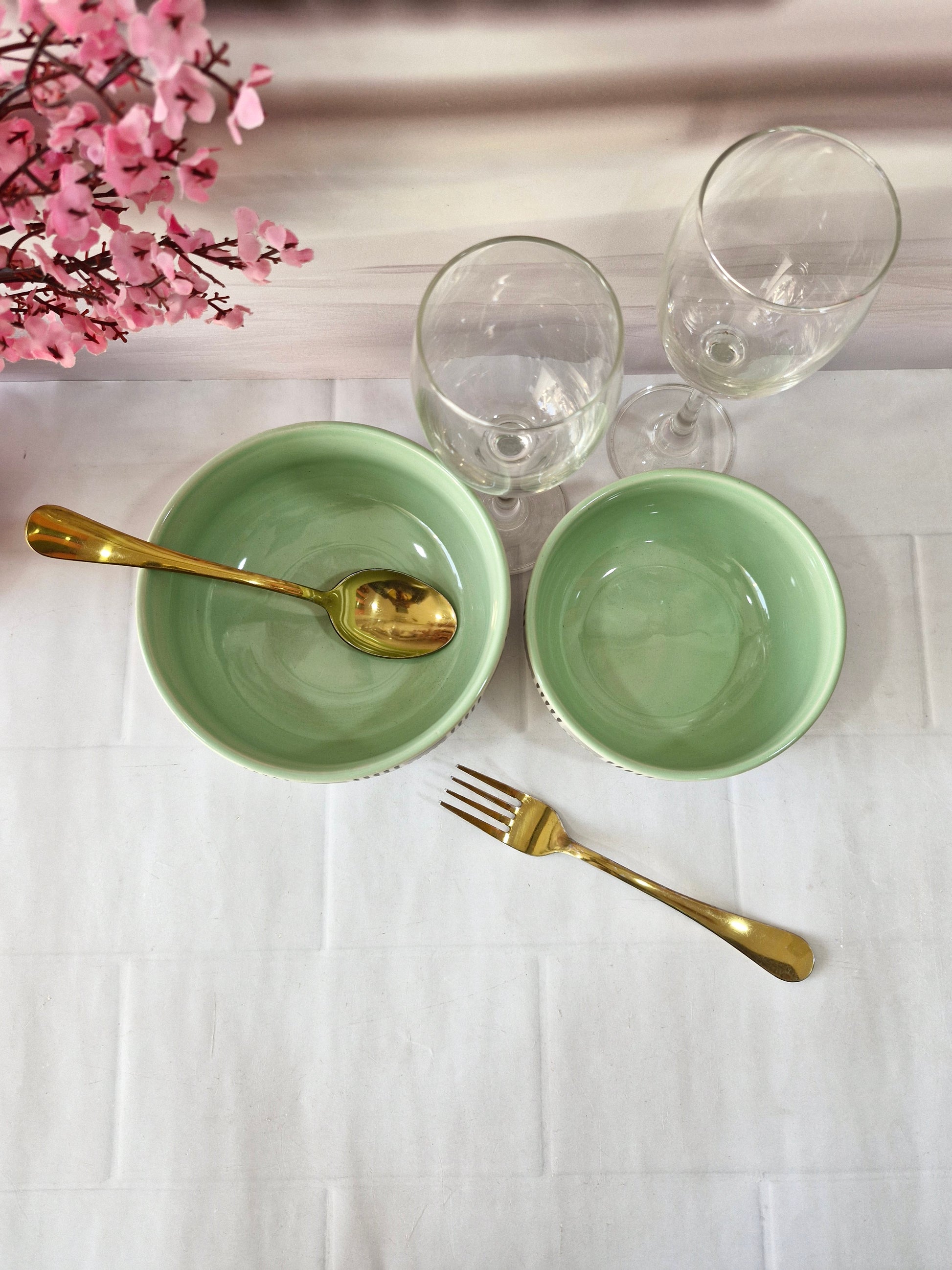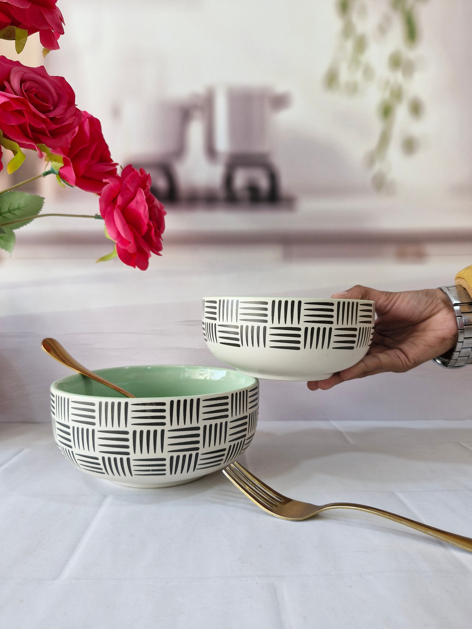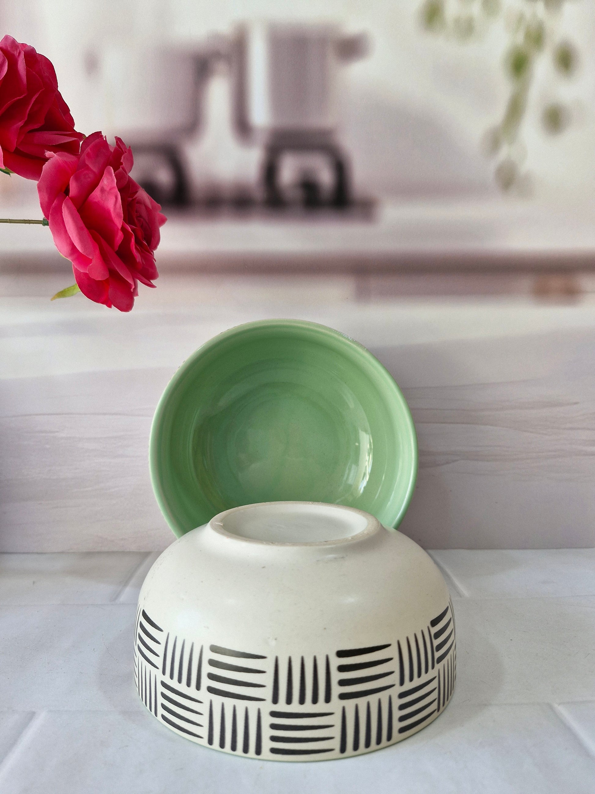 Geometric Pattern Beauty Green Handpainted Ceramic Serving Dining Bowls
