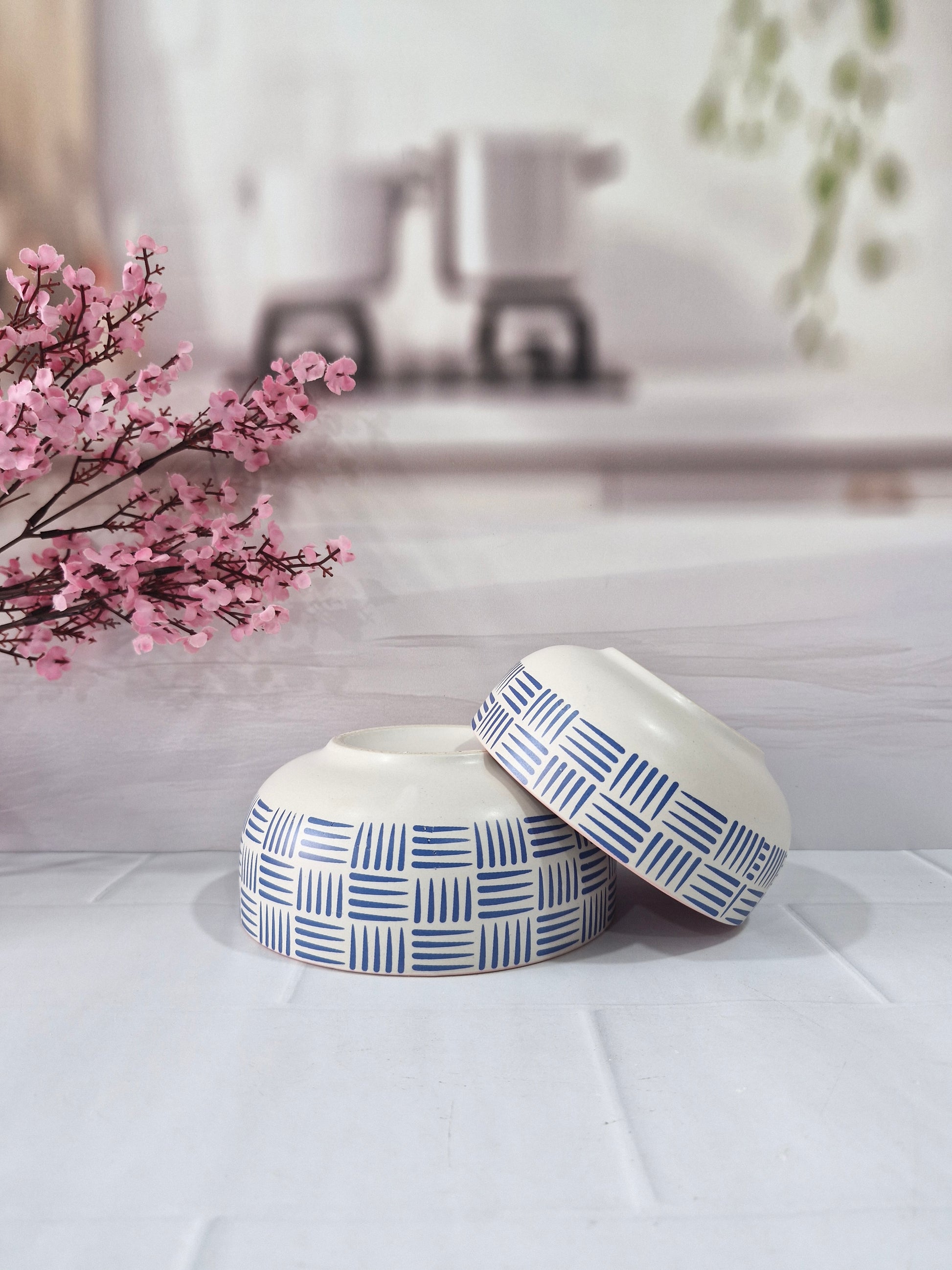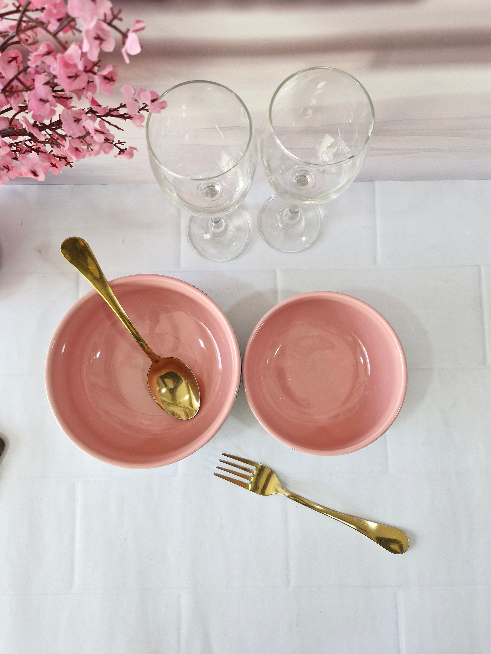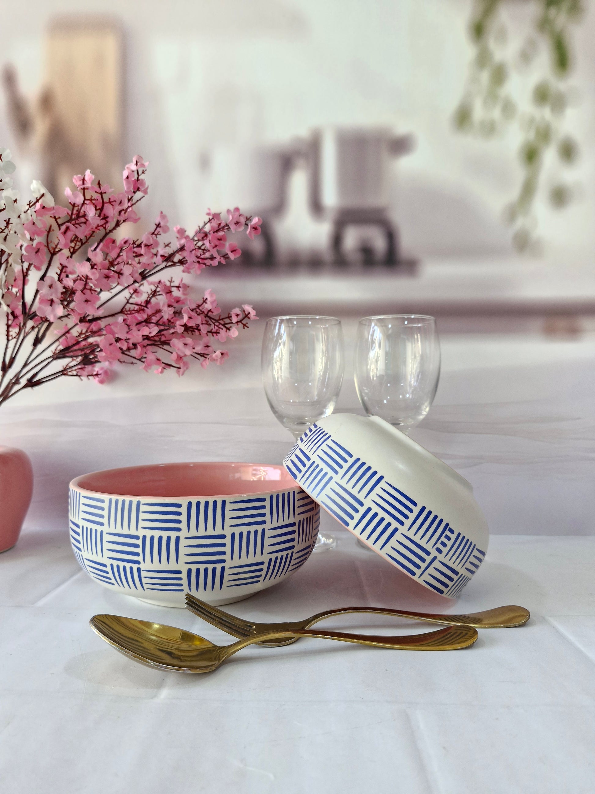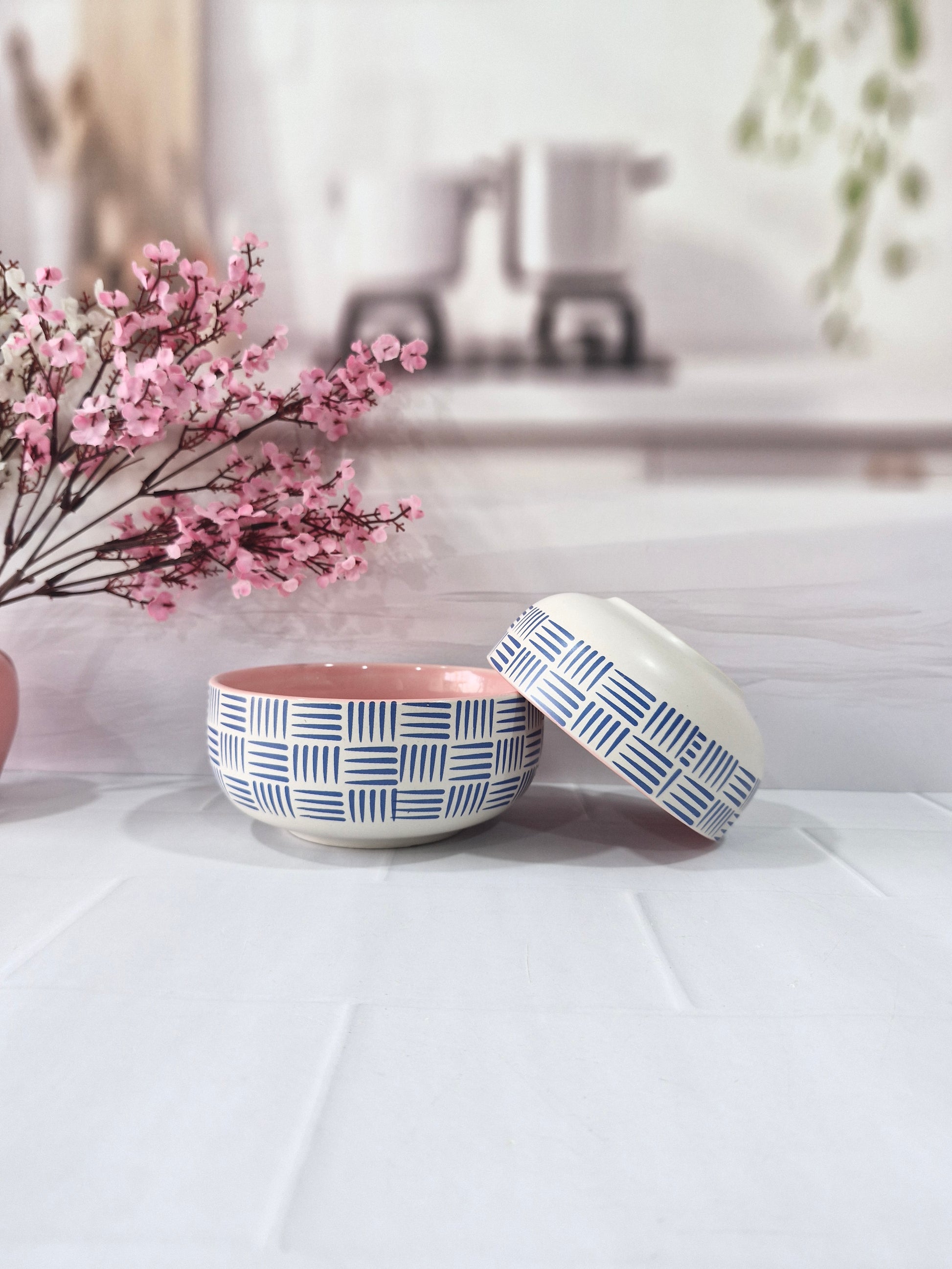 Geometric Pattern Beauty Pink Handpainted Ceramic Serving Dining Bowls