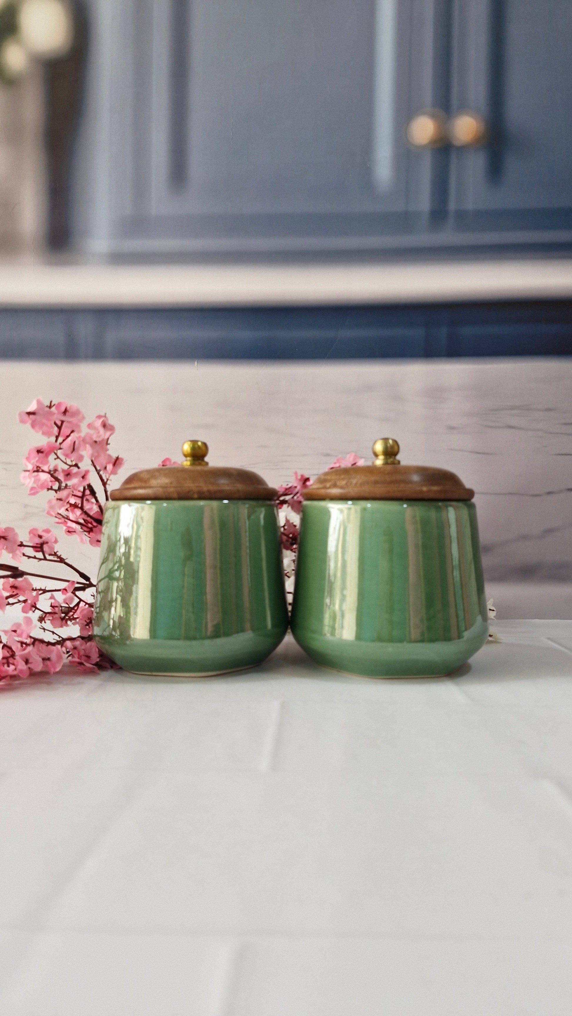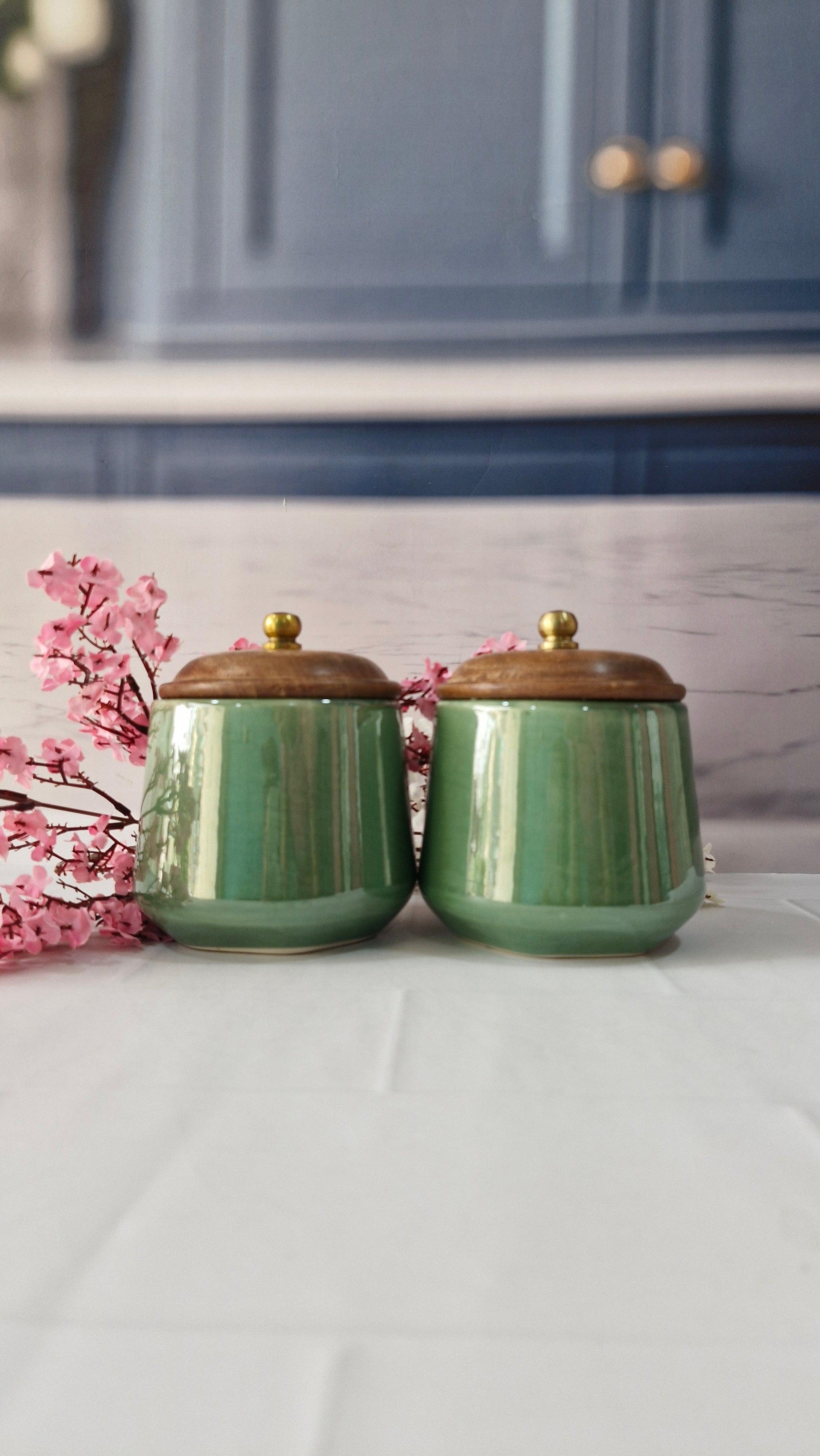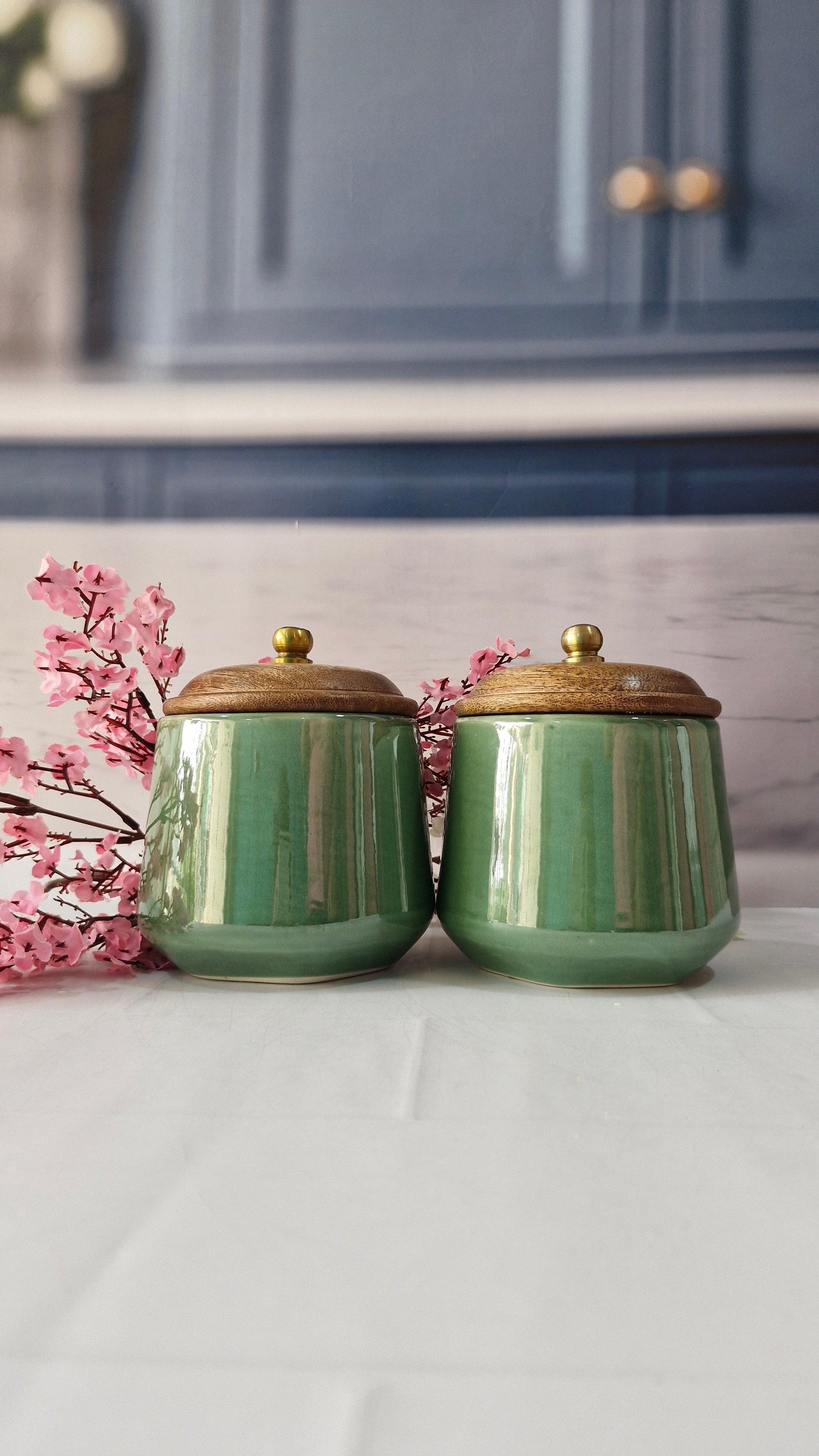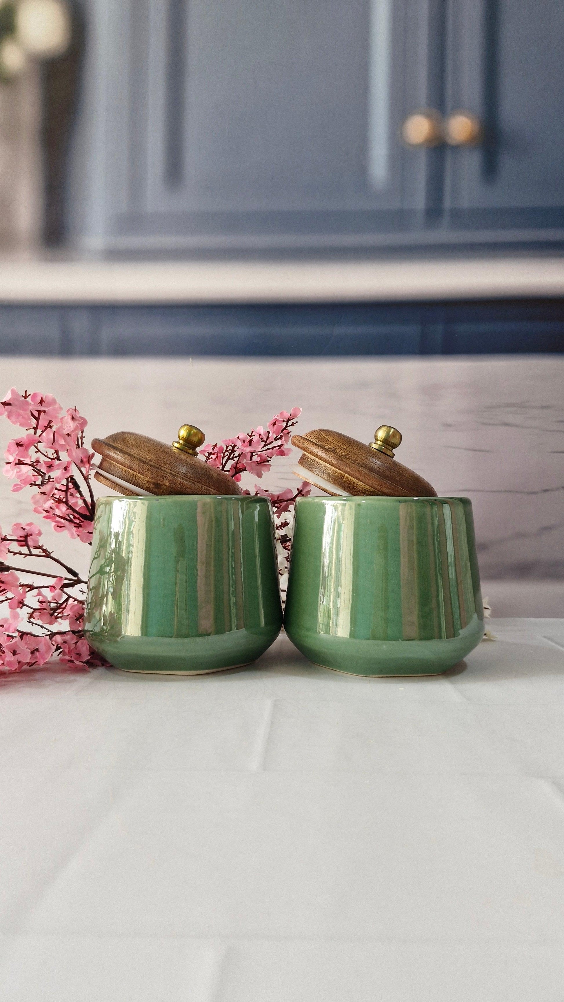 Greens & Golds Retreat (1/2 kg) Set of 2 - Airtight Jars for Spices & Cookies