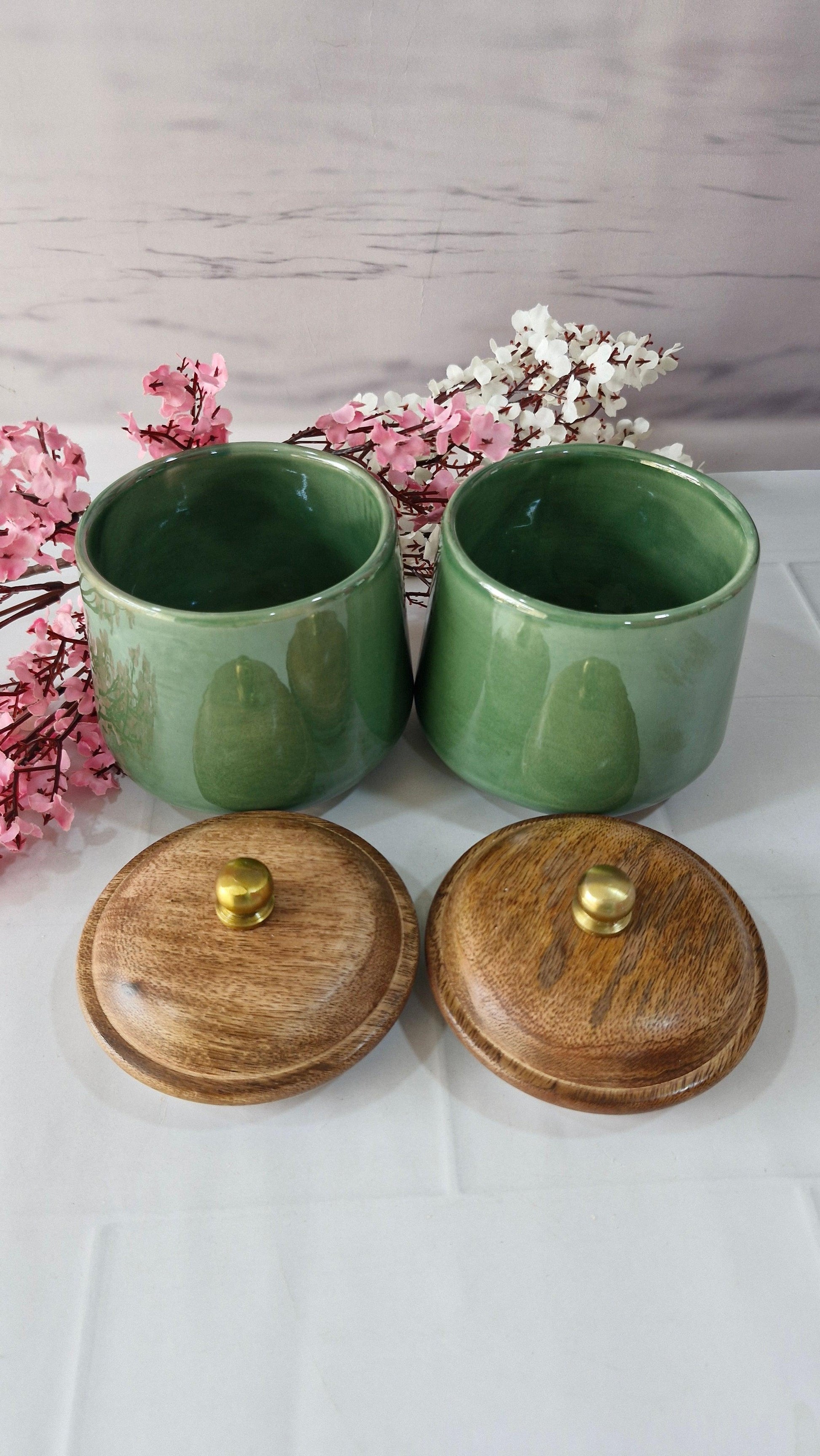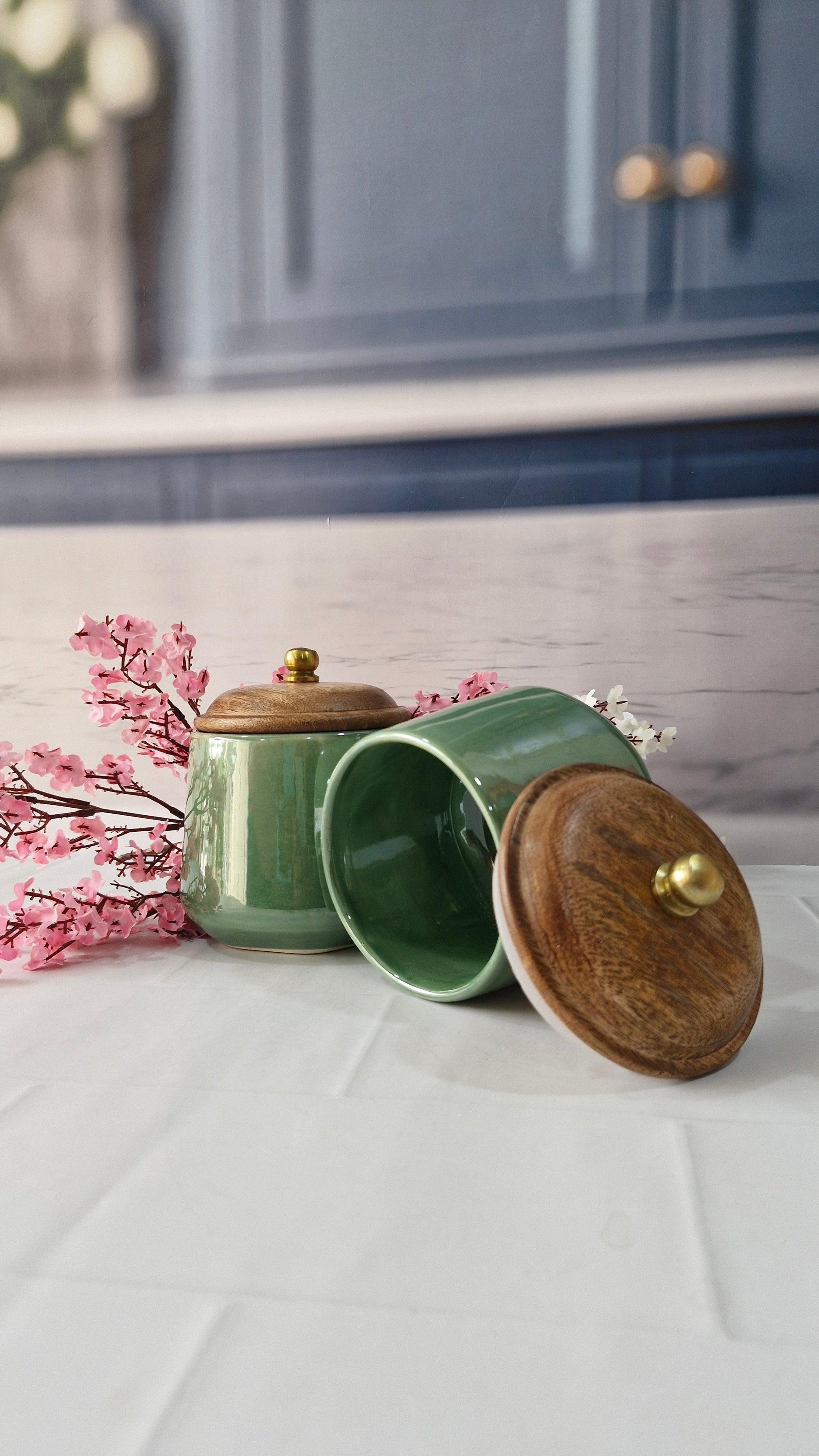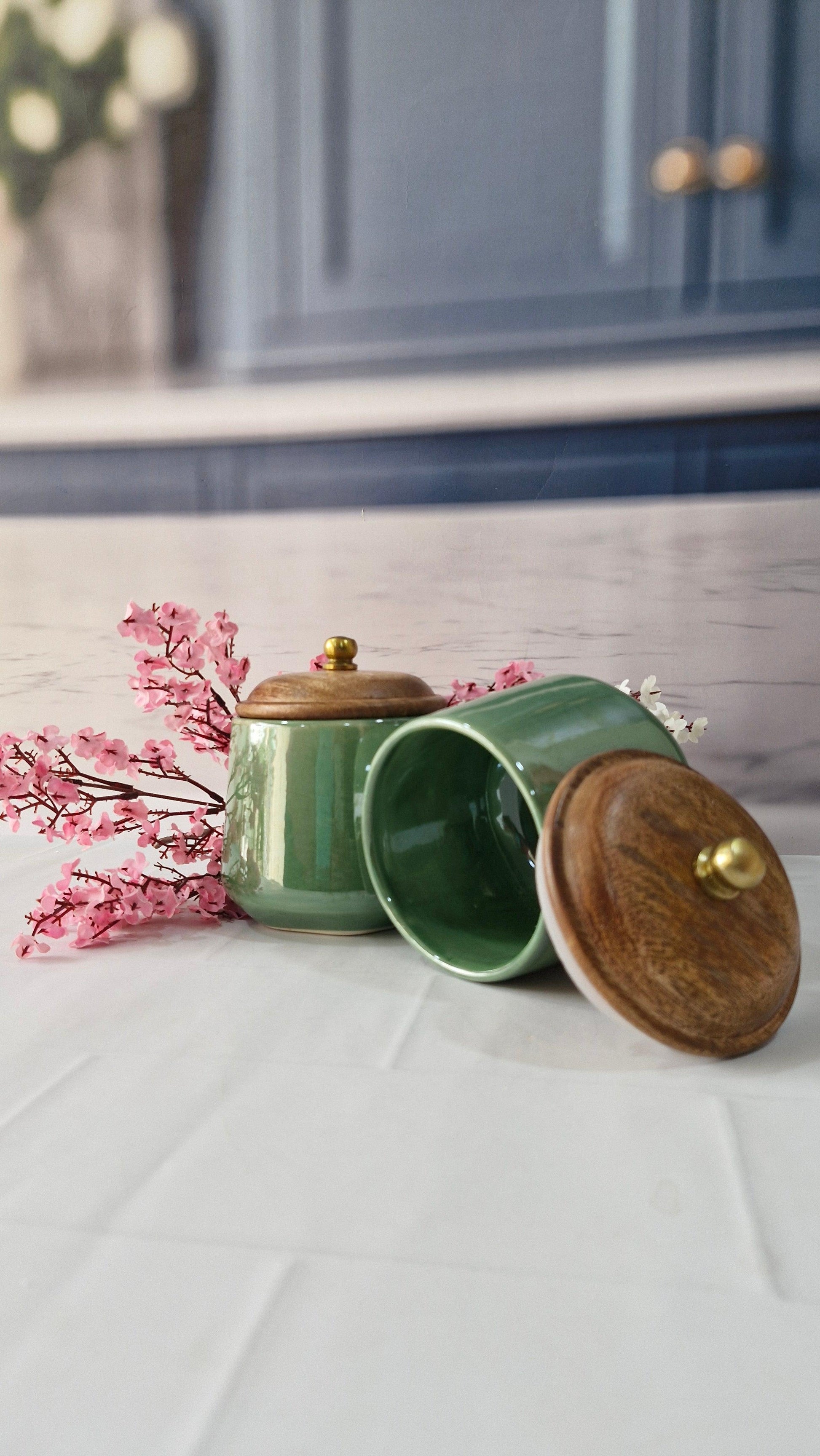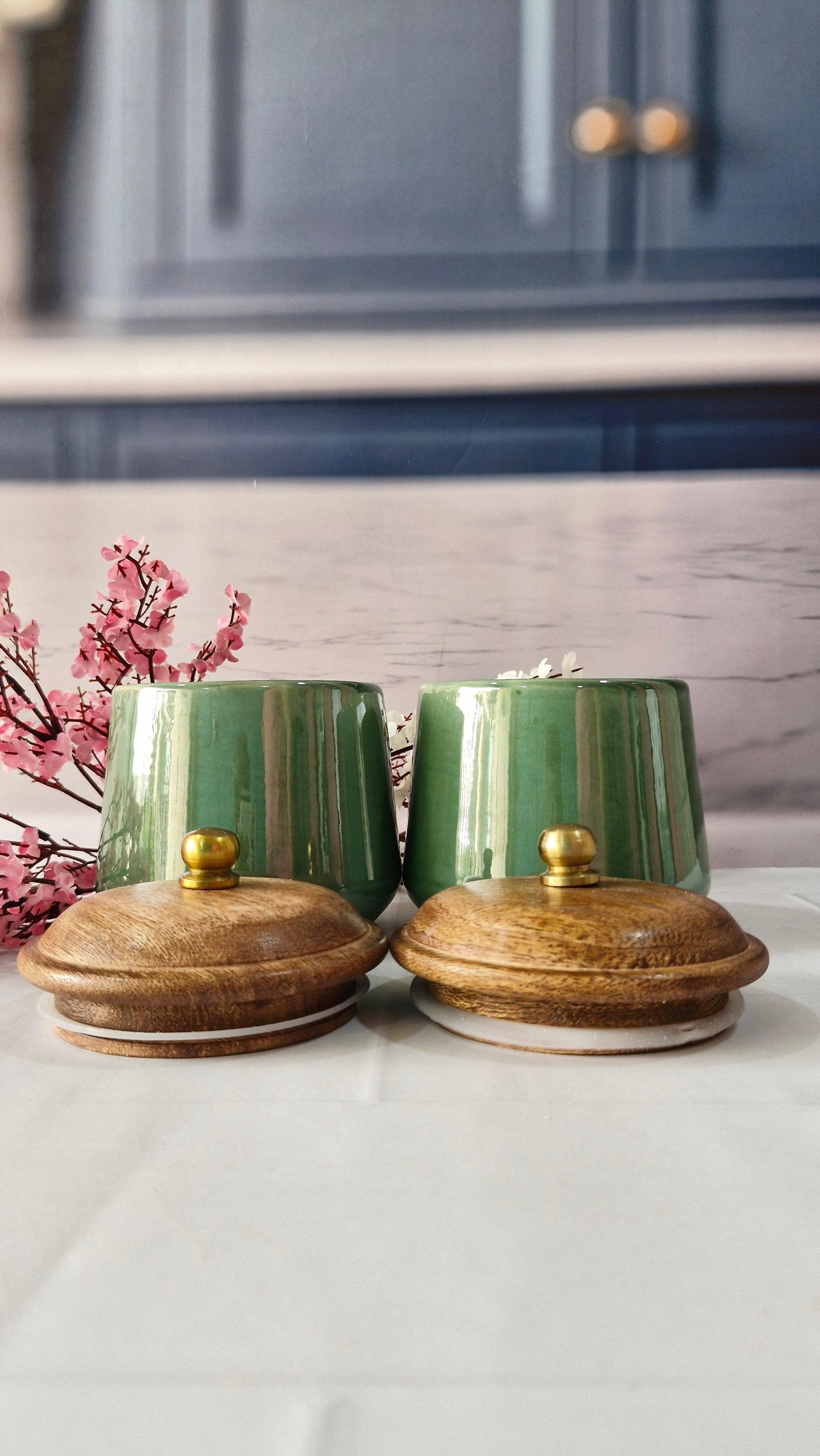 Greens & Golds Retreat (1/2 kg) Set of 2 - Airtight Jars for Spices & Cookies