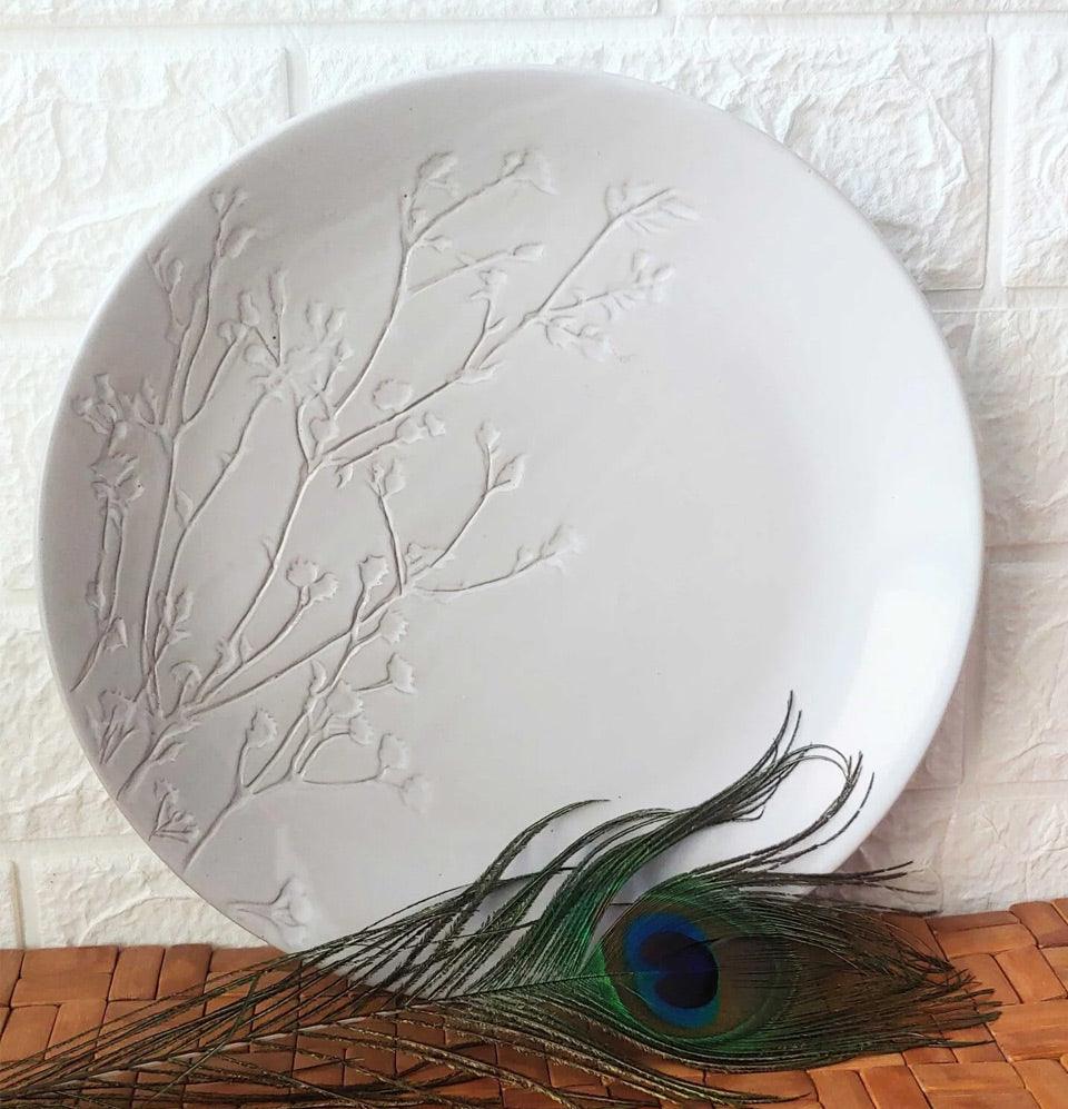 Grey Pottery white Round Floral Ceremic Dinner Ceramic Platters
