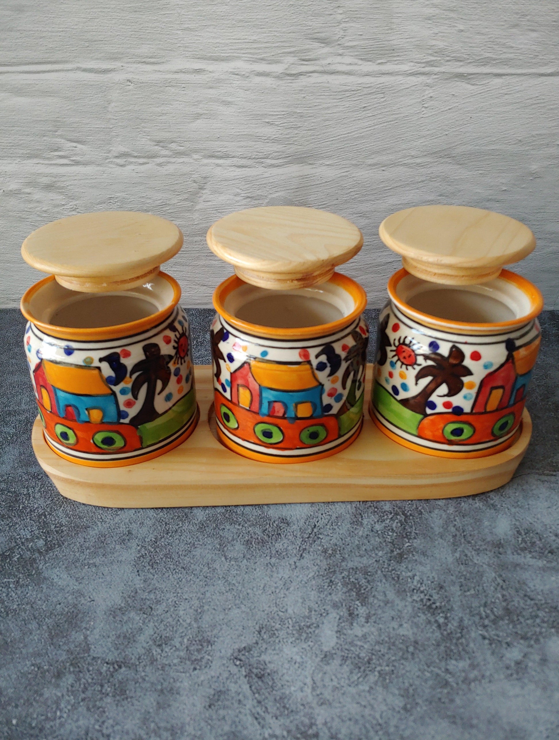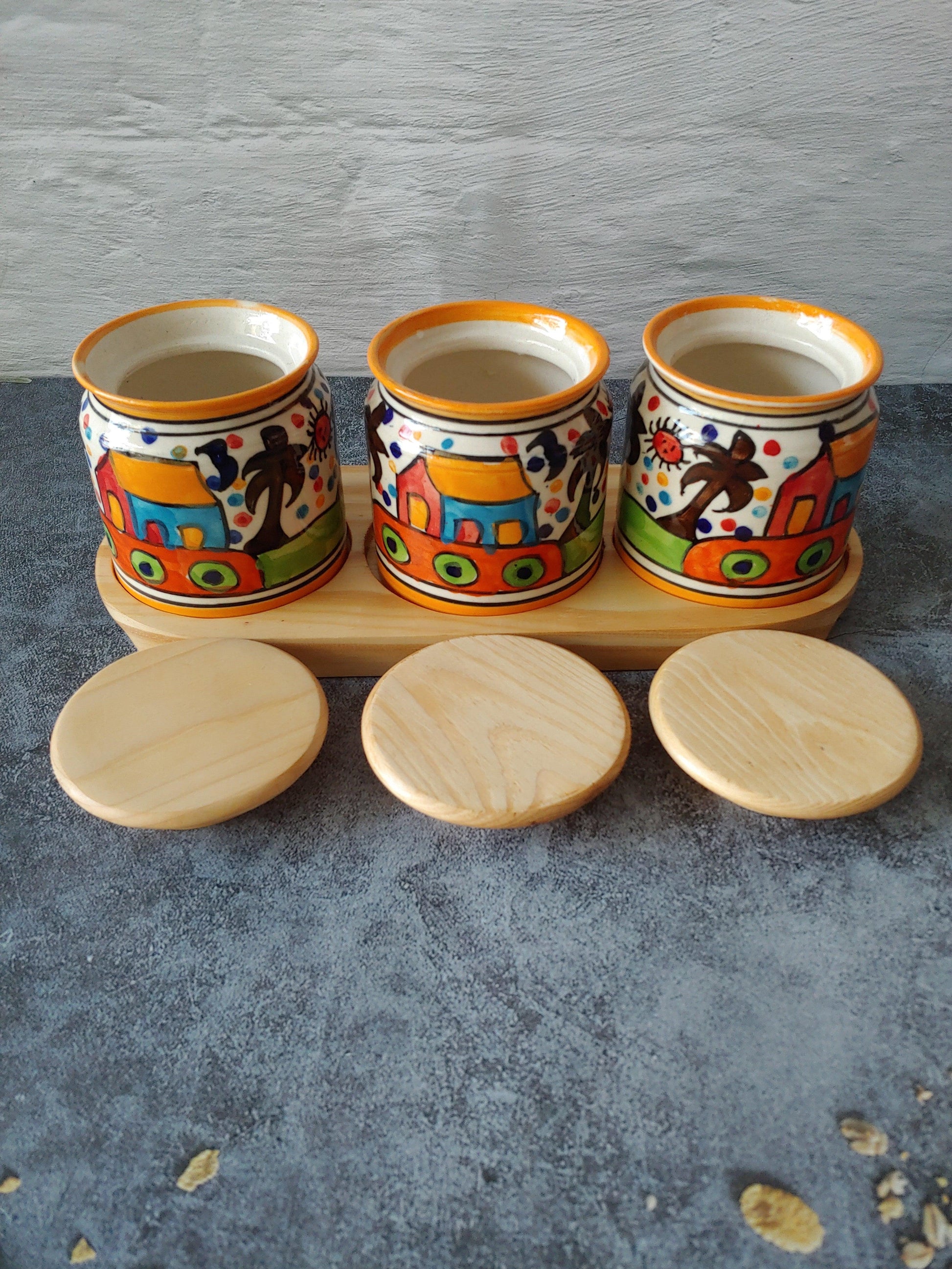 Handpainted Pickly Perfection Pickle Jar Set with wooden lid and tray