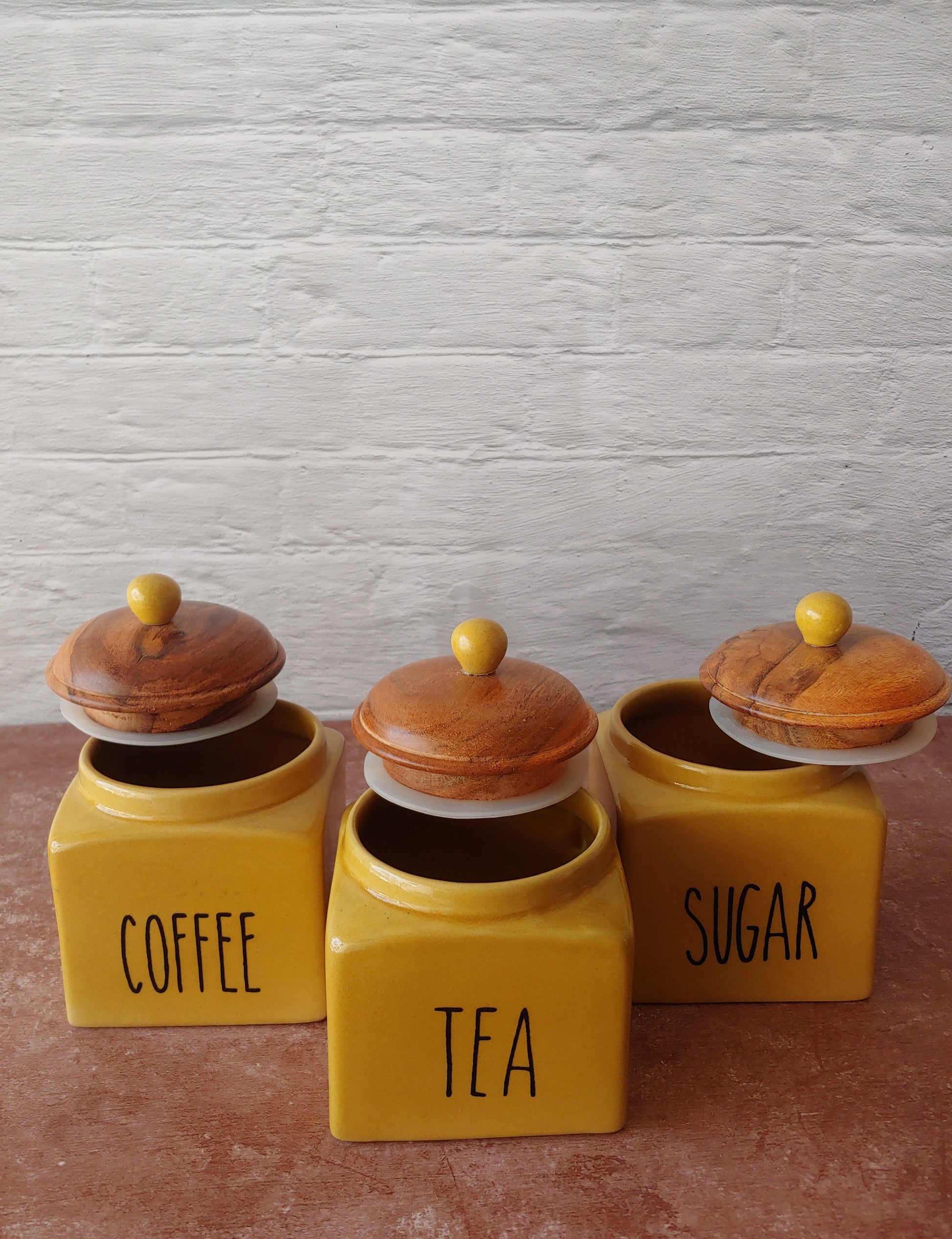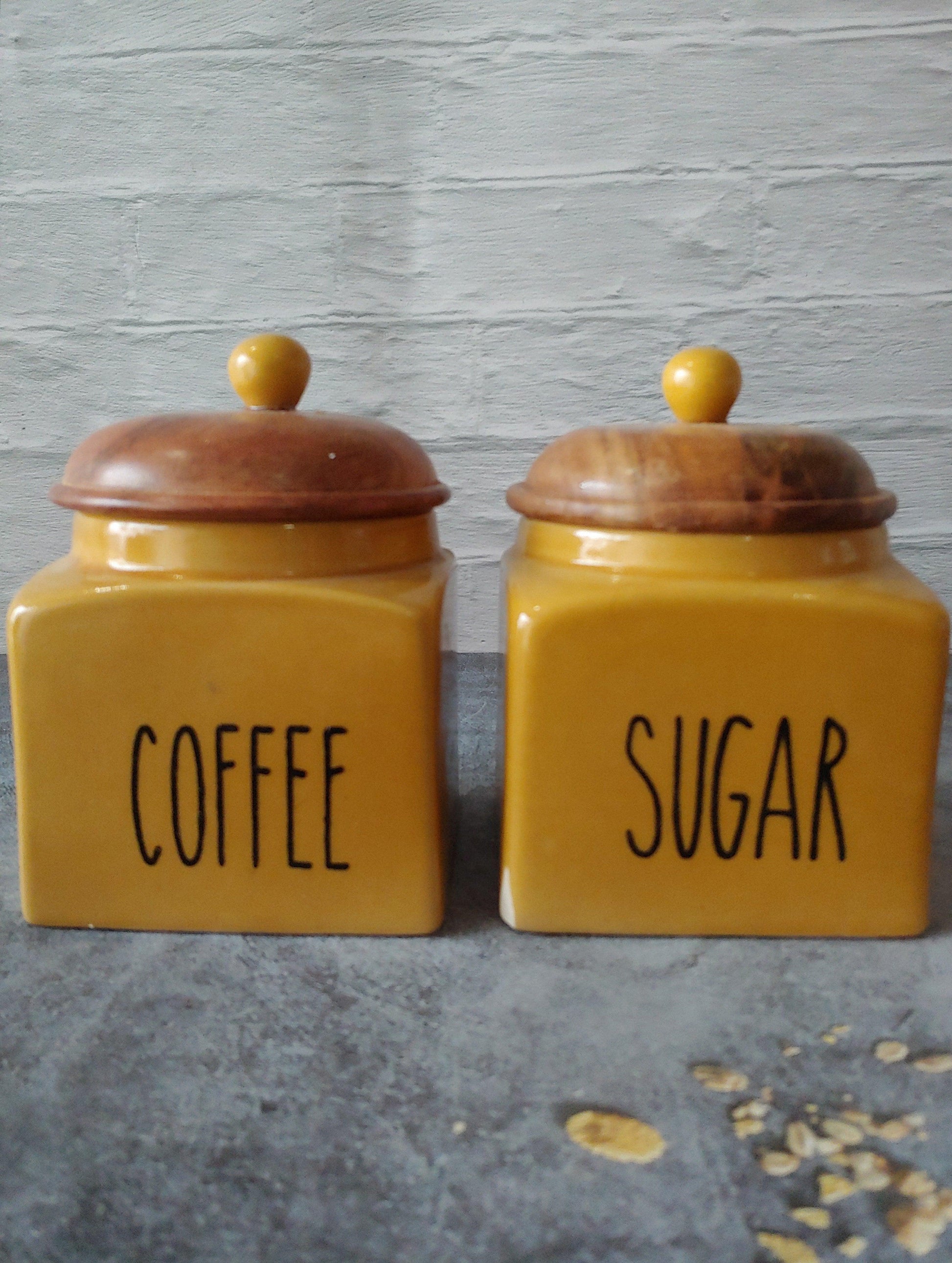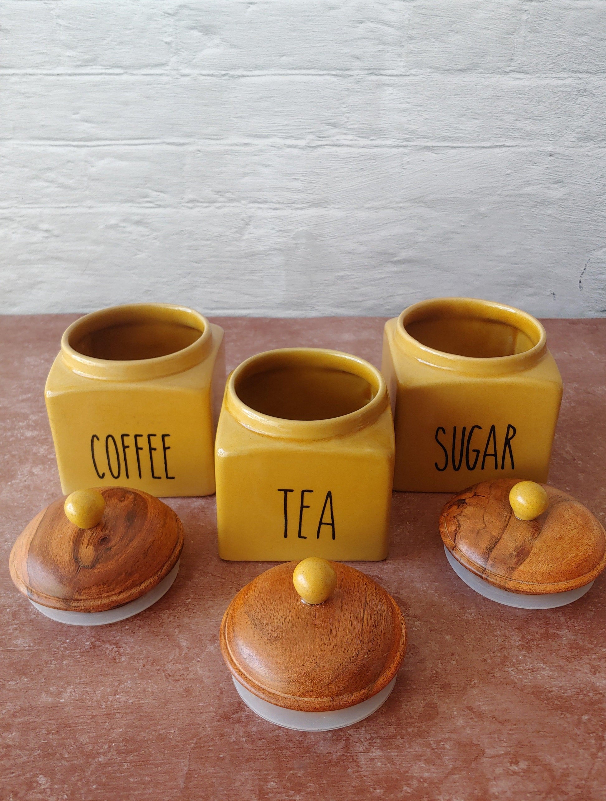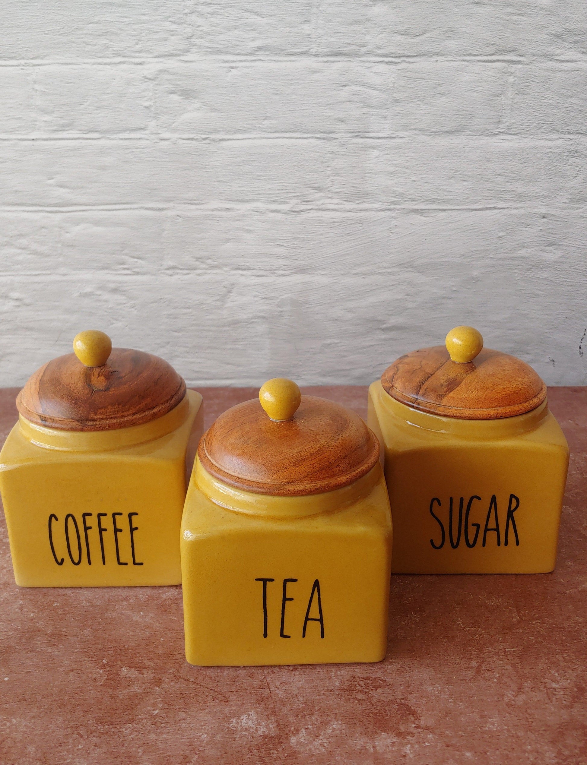 Honey Square Solid Ceremic Tea Coffee Sugar Canisters 500ml