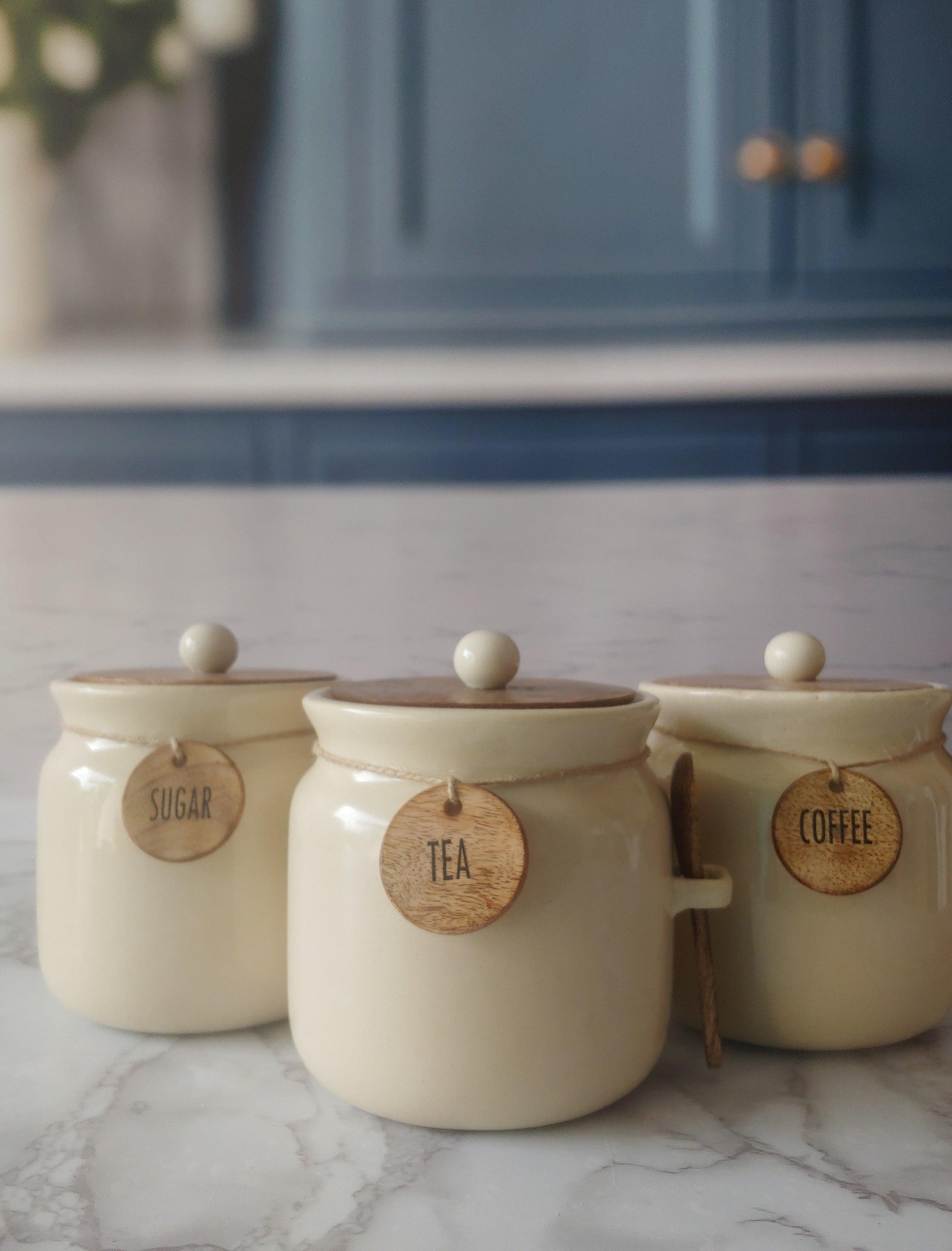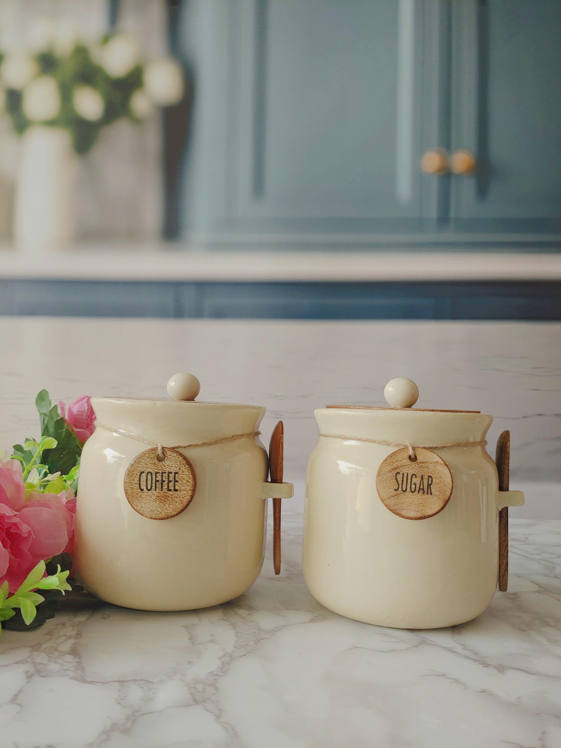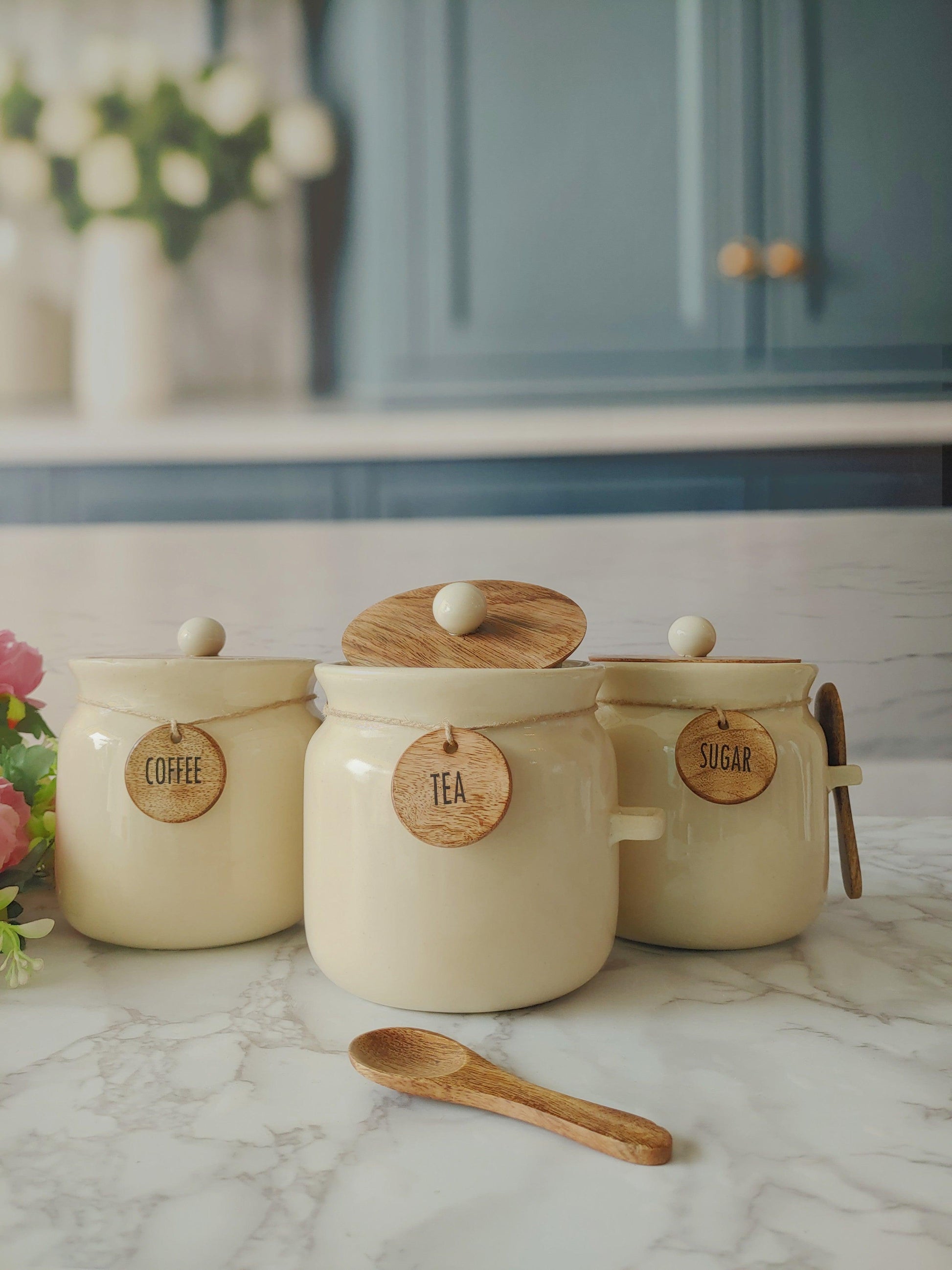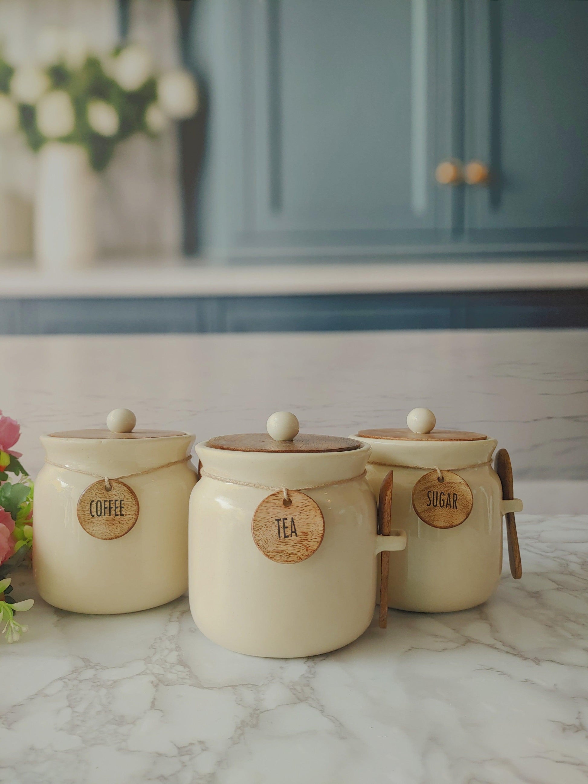 Ivory Matka Daily Dos Solid Ceremic Tea ,Coffee ,Sugar Canisters 500ml