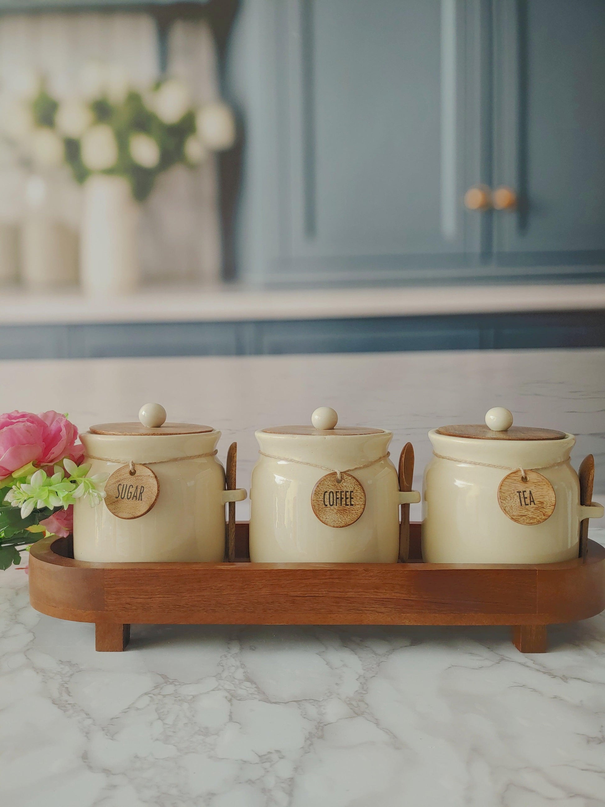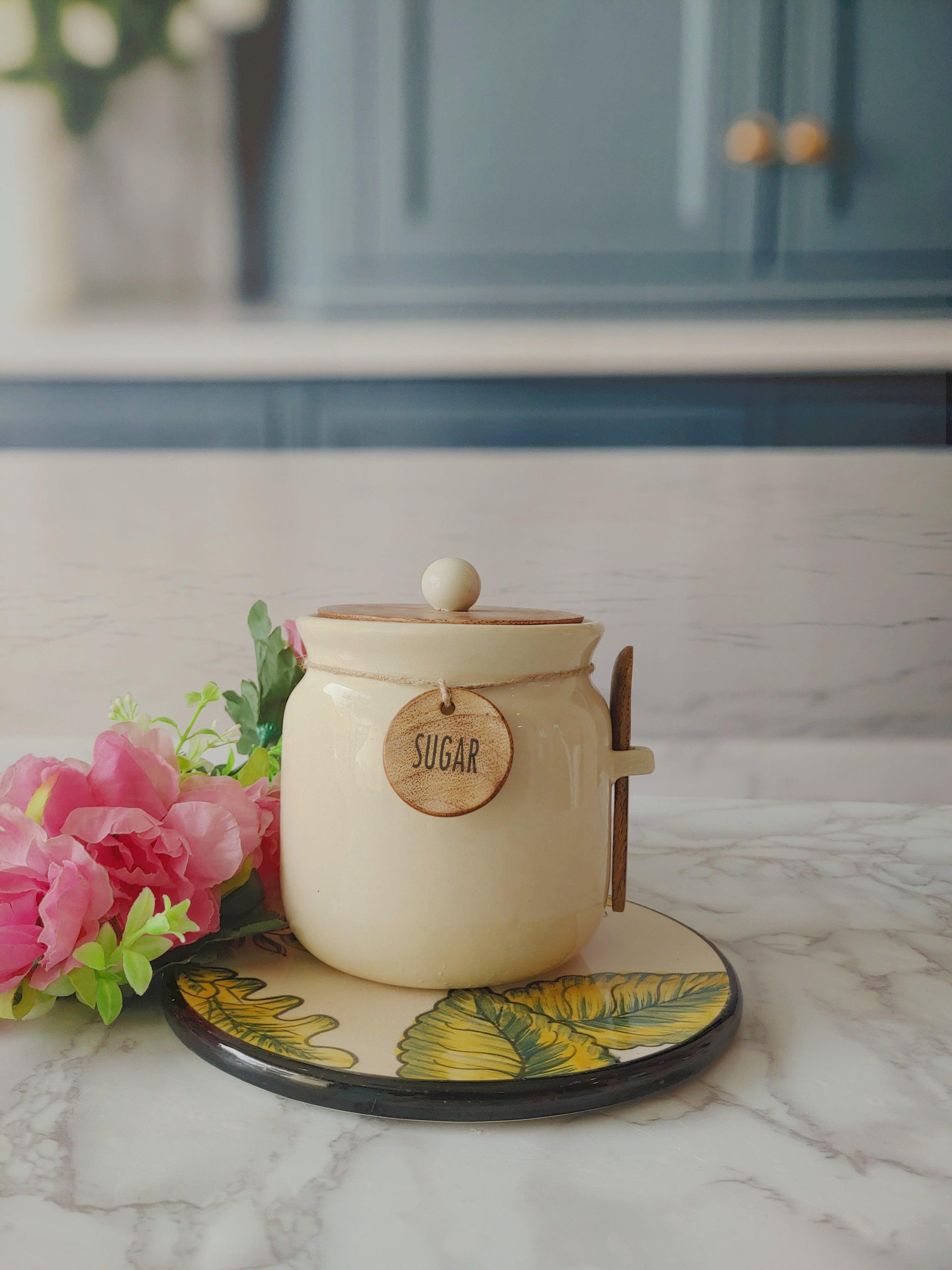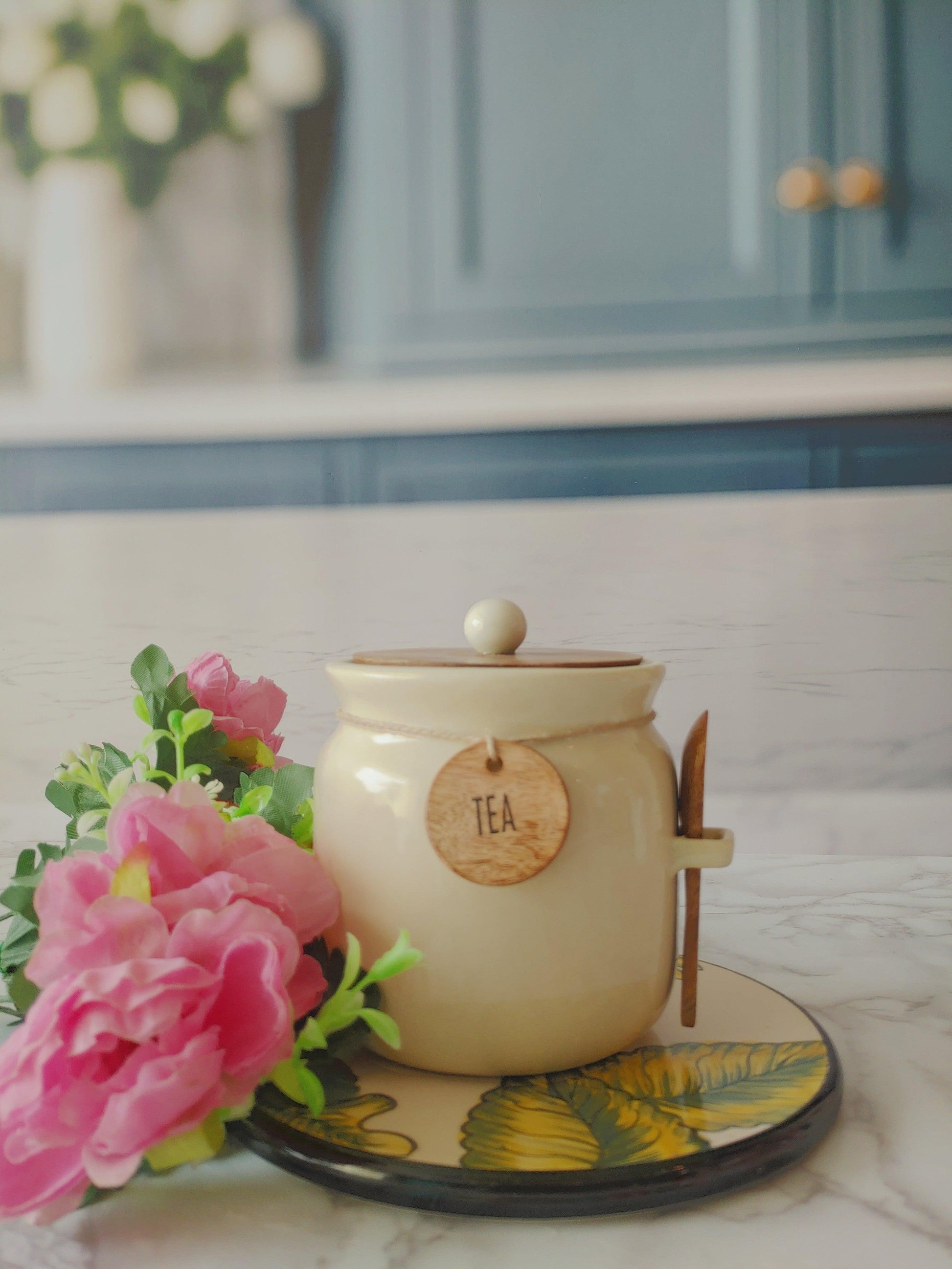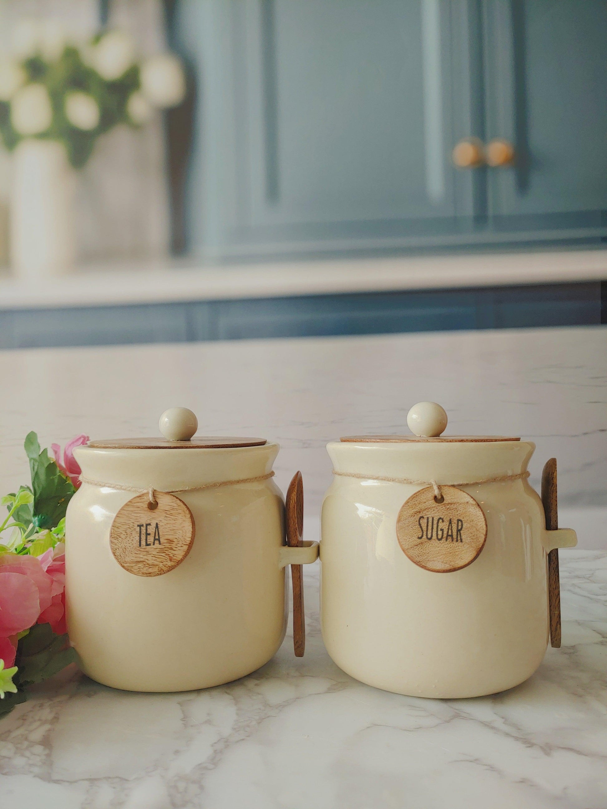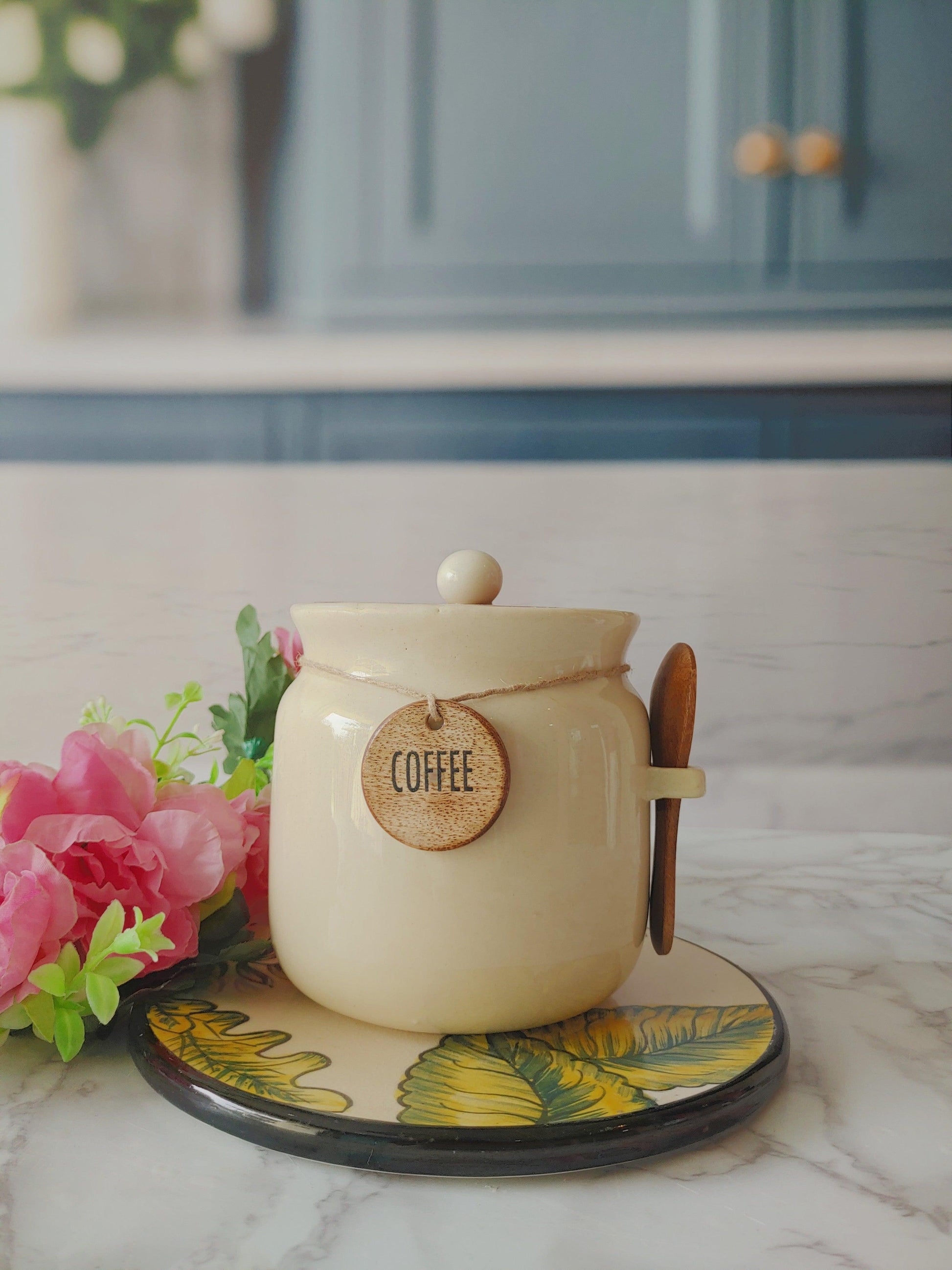 Ivory Matka Daily Dos Solid Ceremic Tea ,Coffee ,Sugar Canisters 500ml