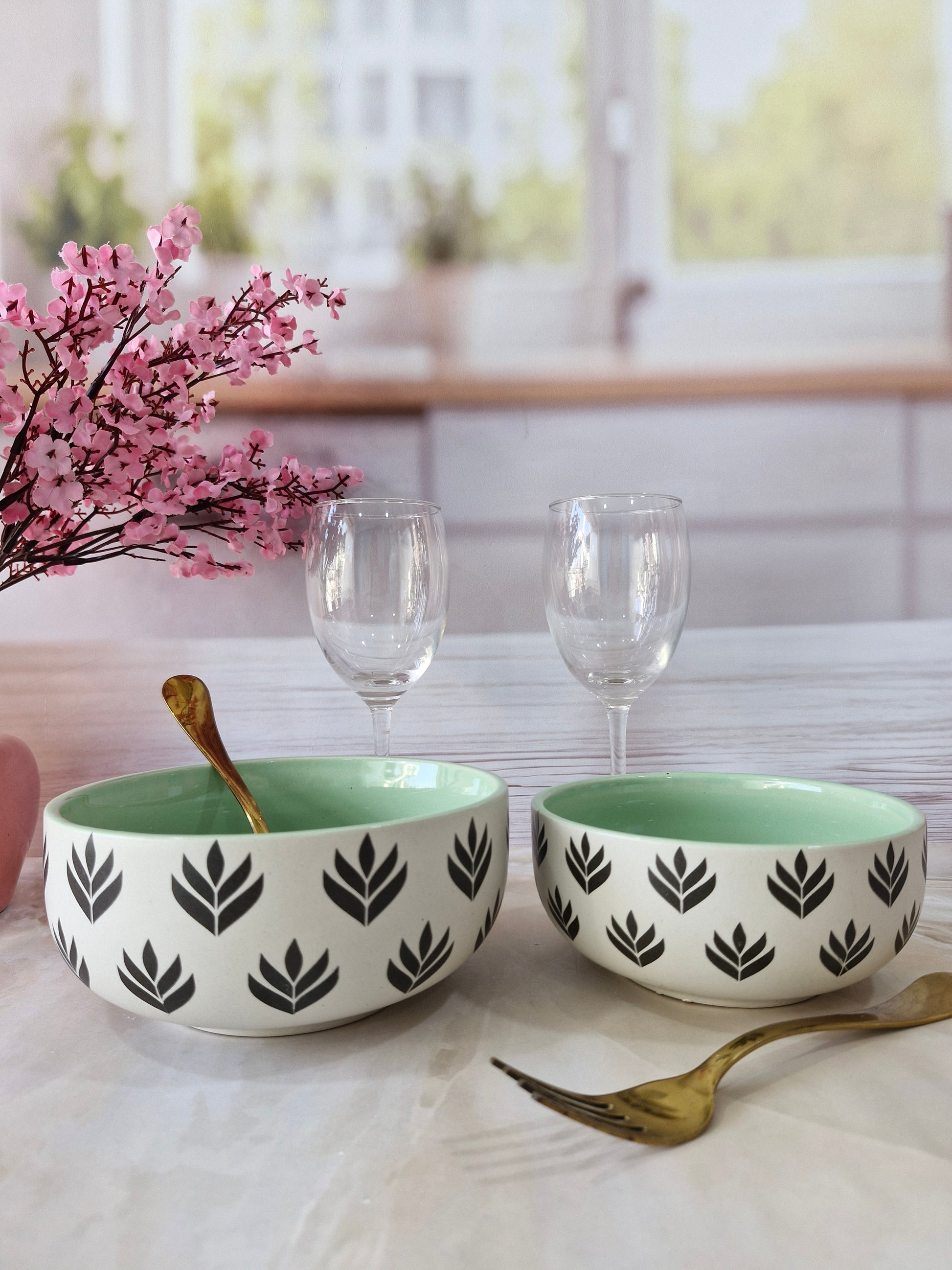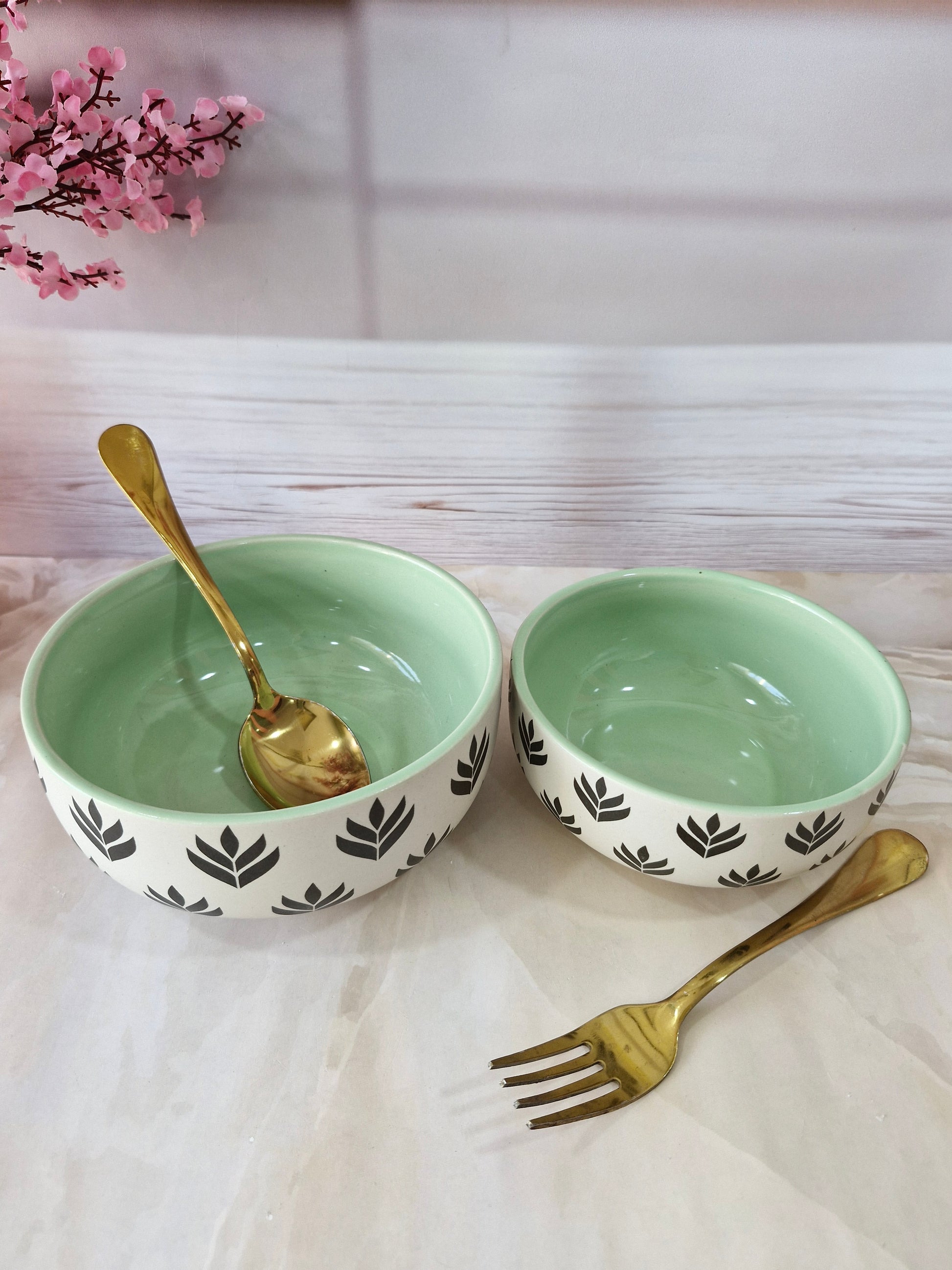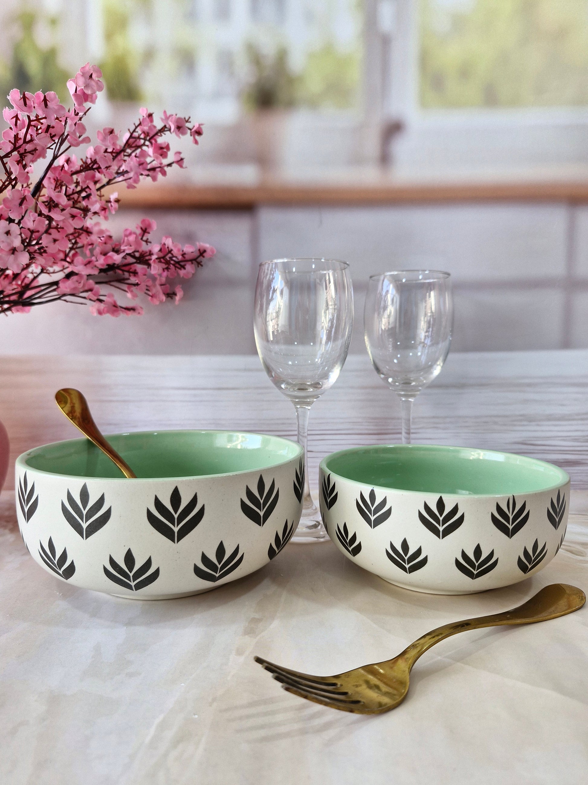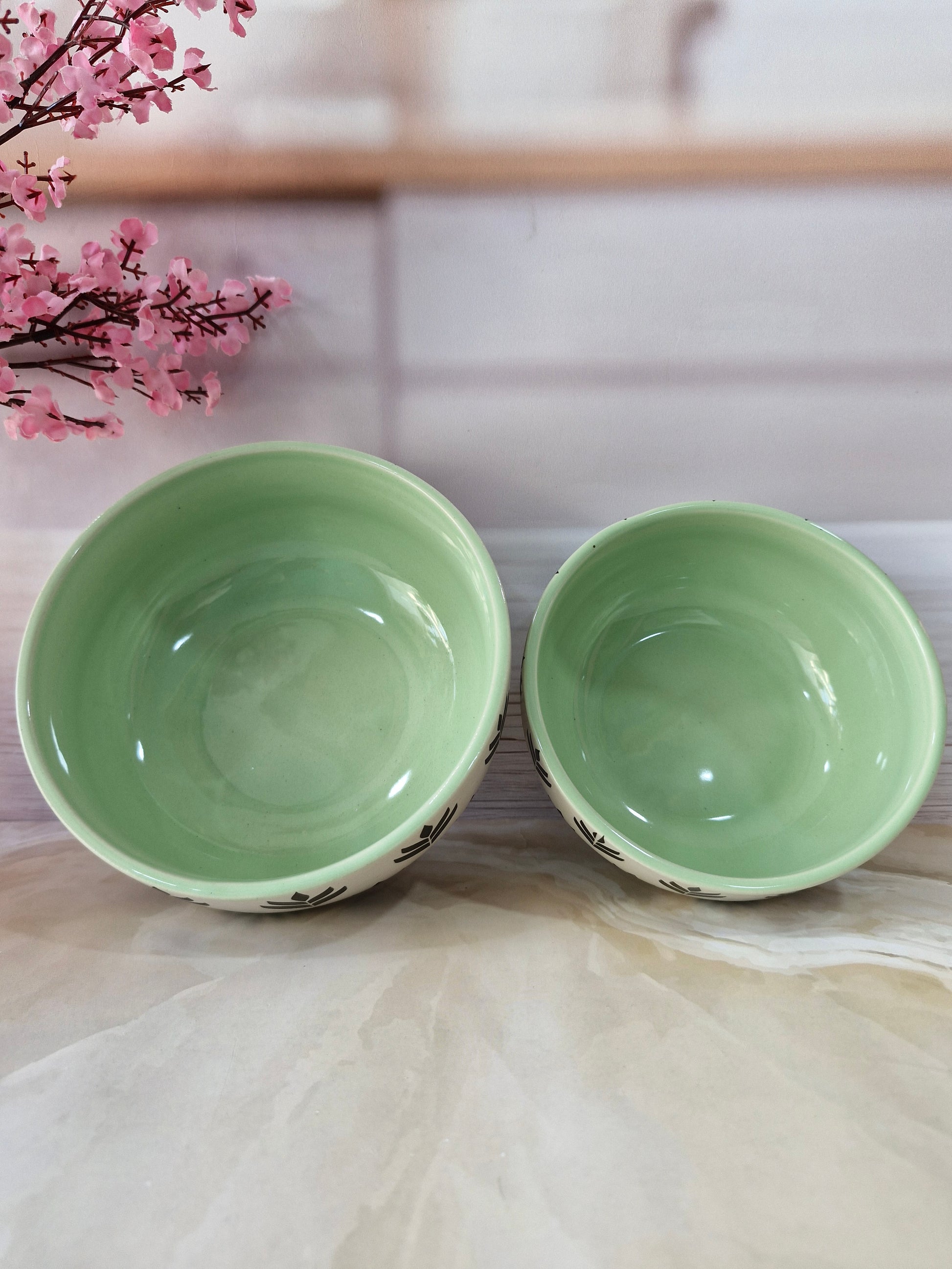 Lotus Green Beauty Handpainted Ceramic Round Dining Bowls