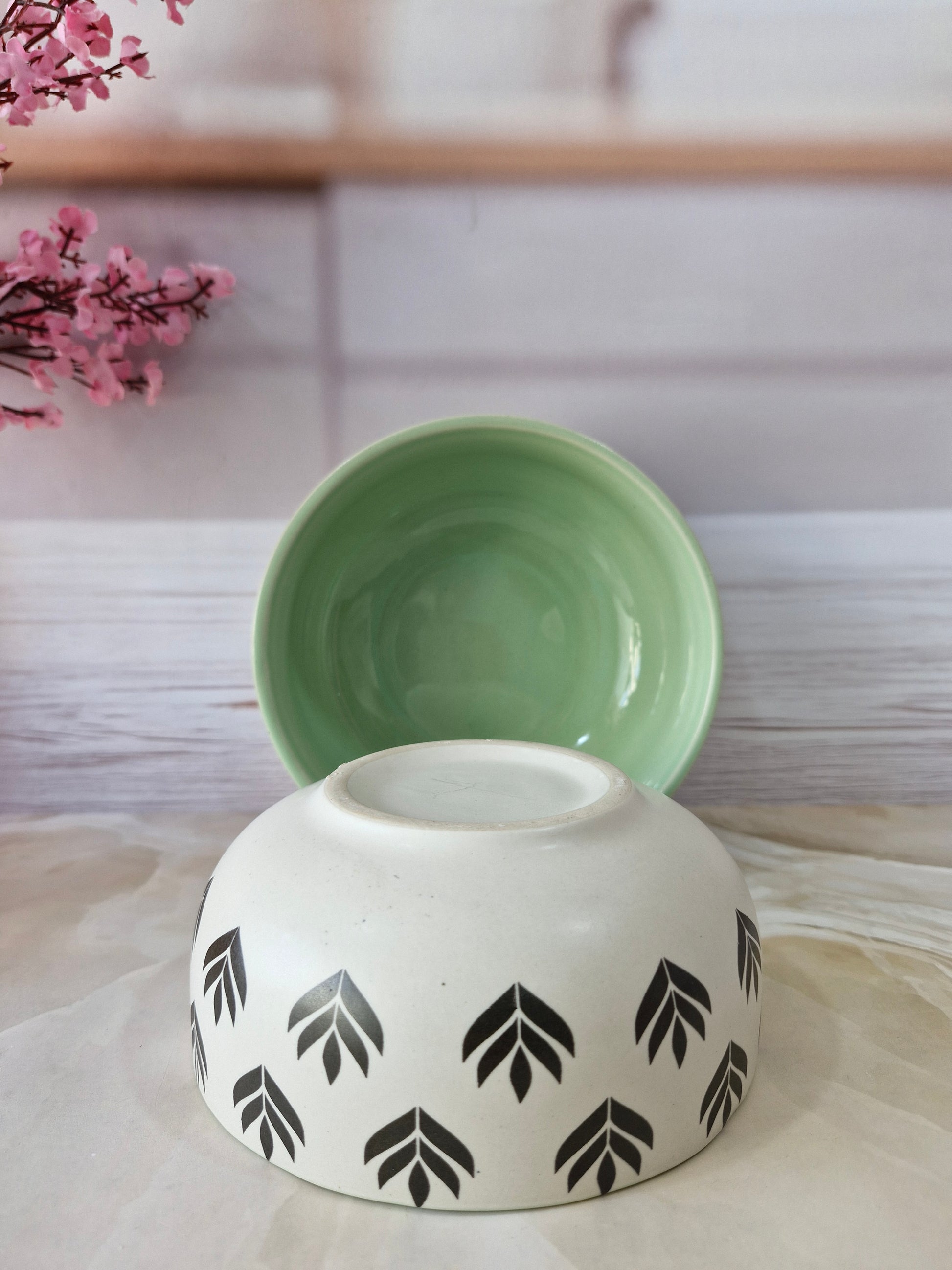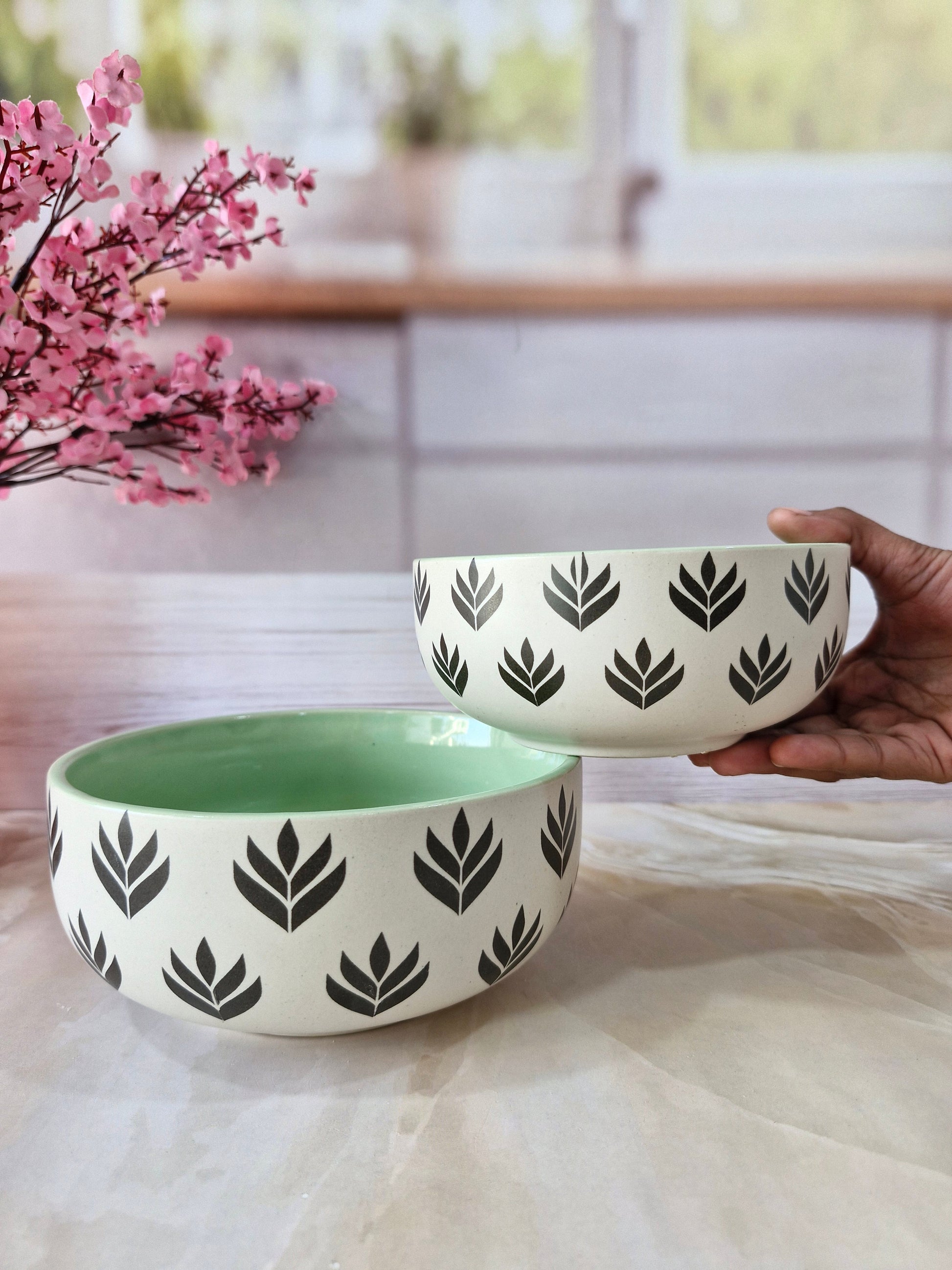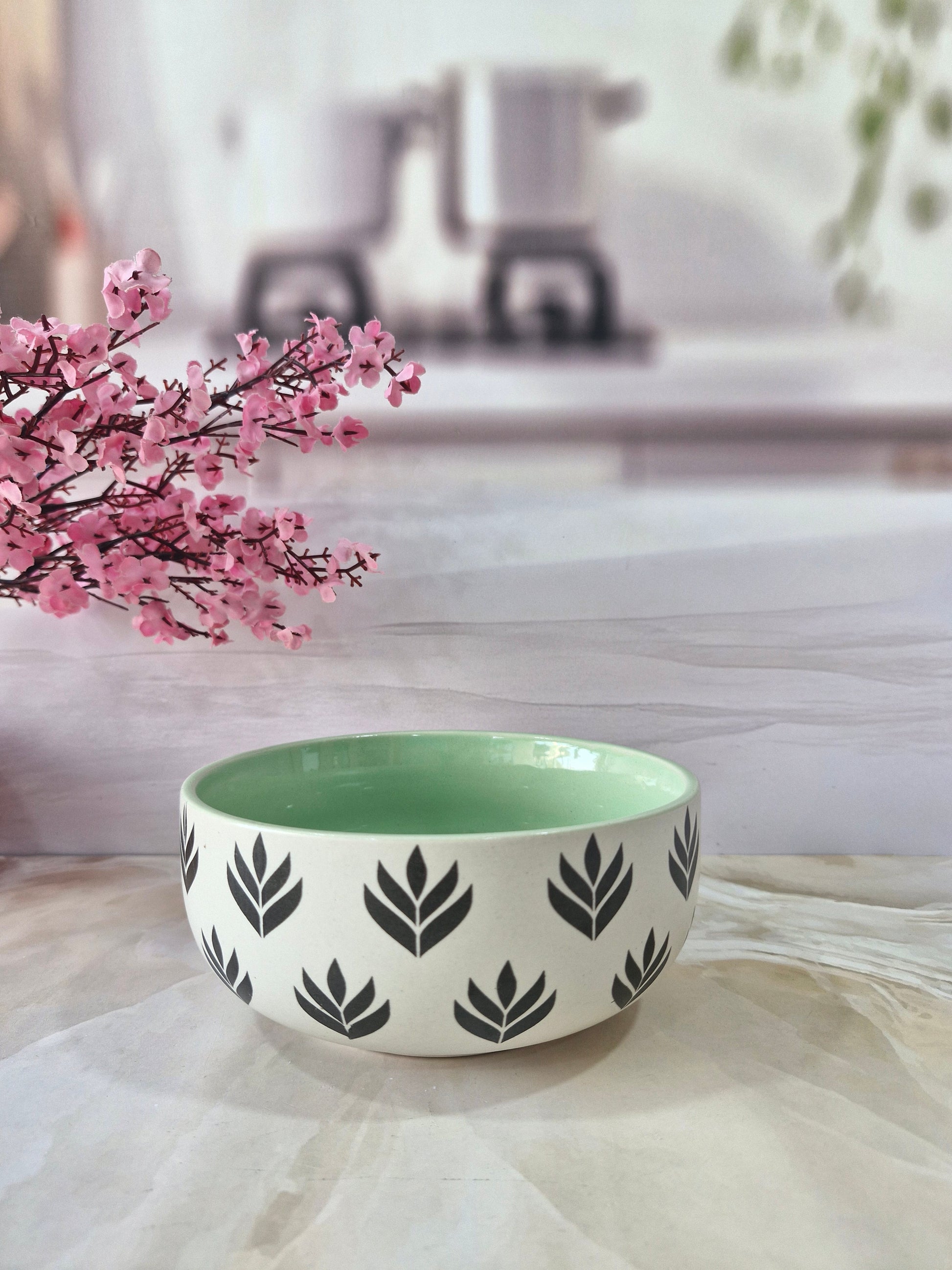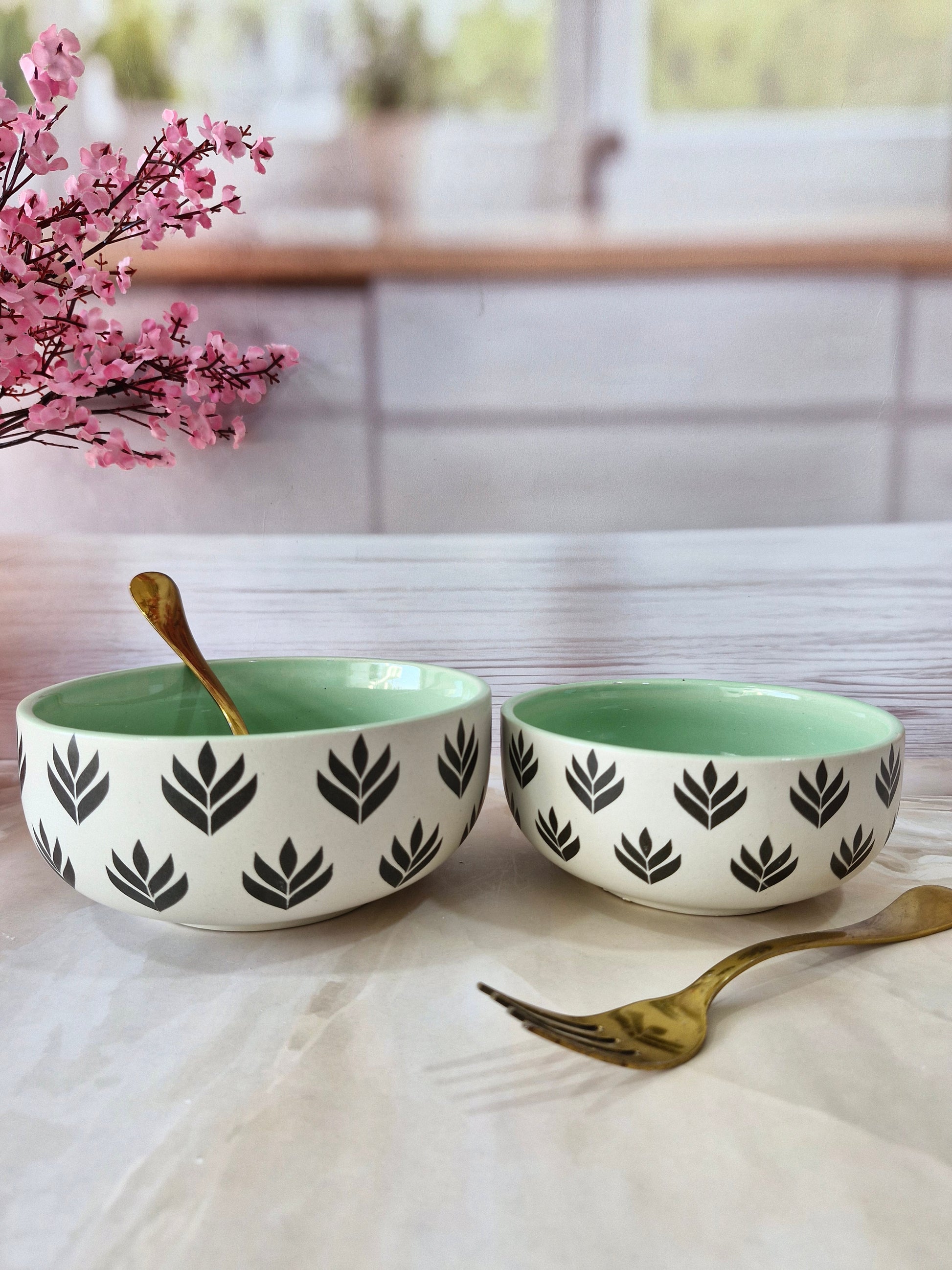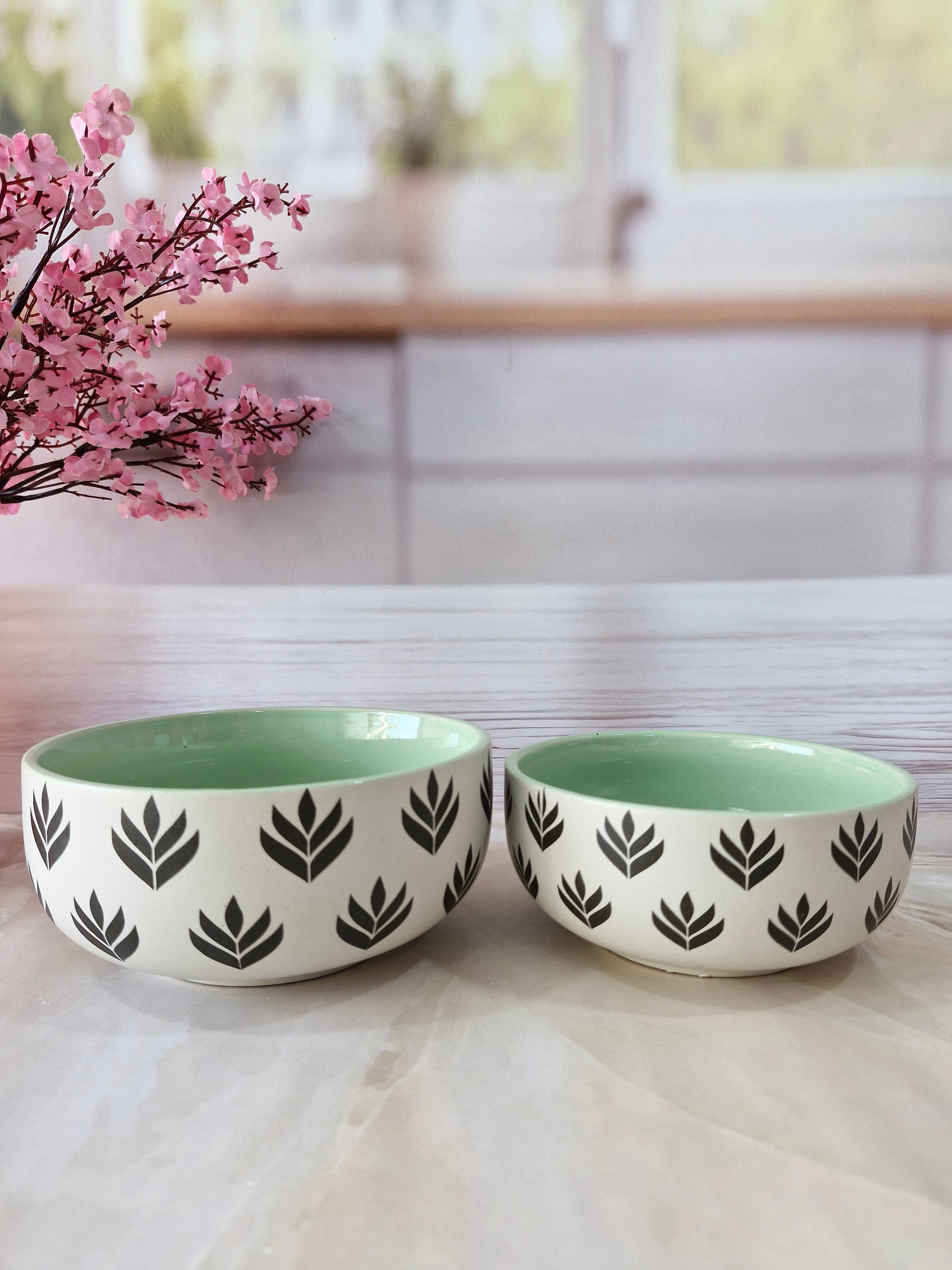 Lotus Green Beauty Handpainted Ceramic Round Dining Bowls