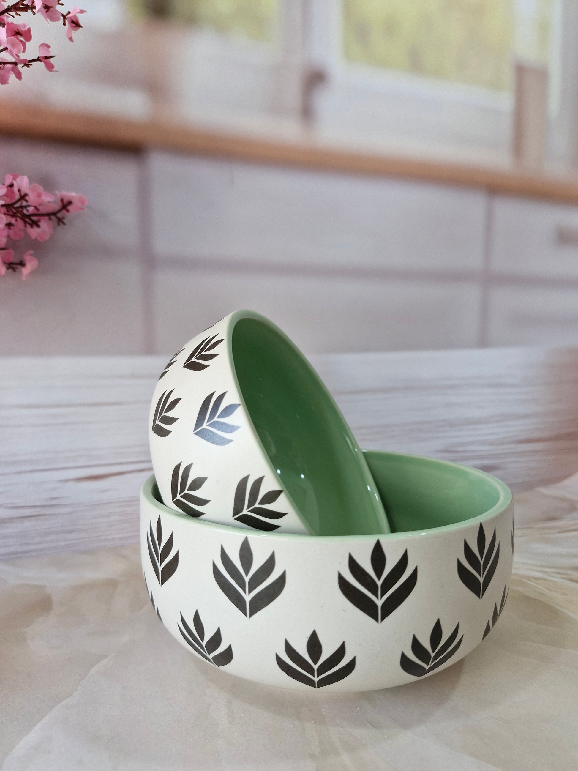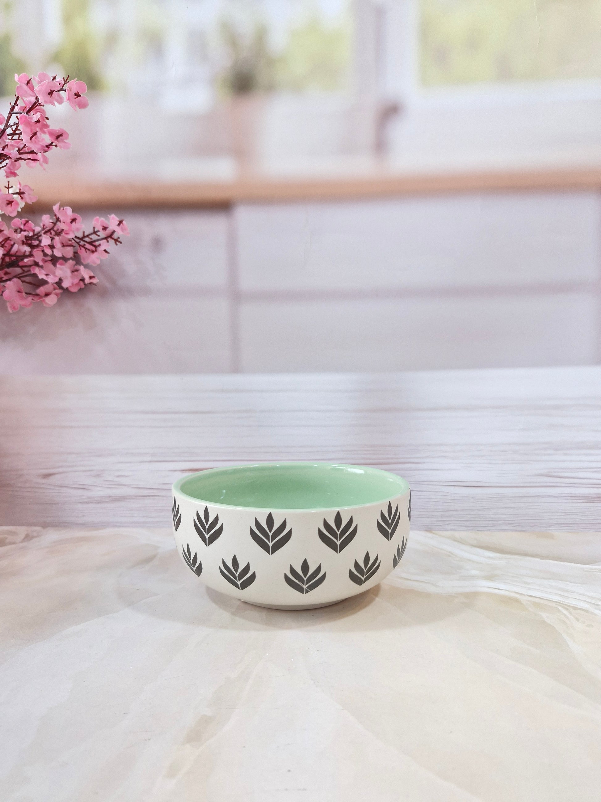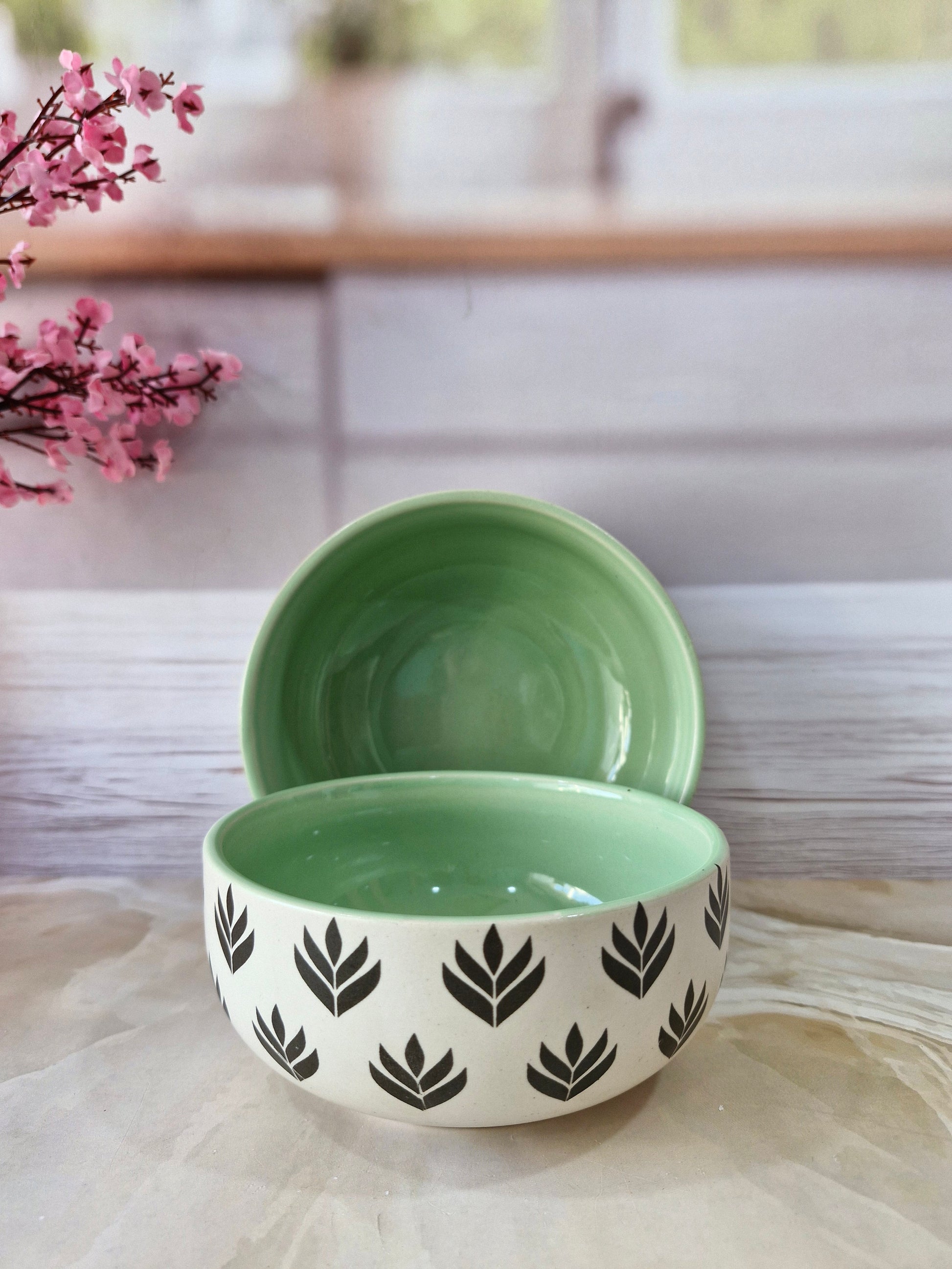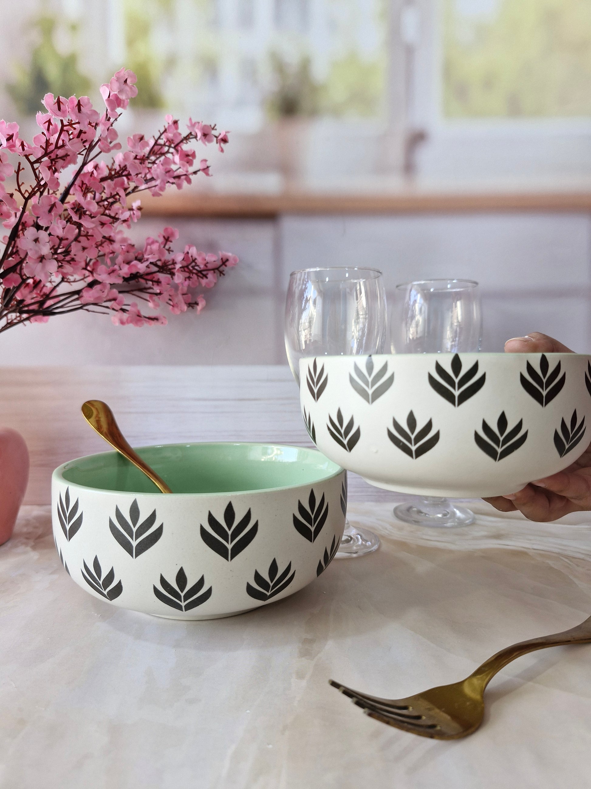 Lotus Green Beauty Handpainted Ceramic Round Dining Bowls
