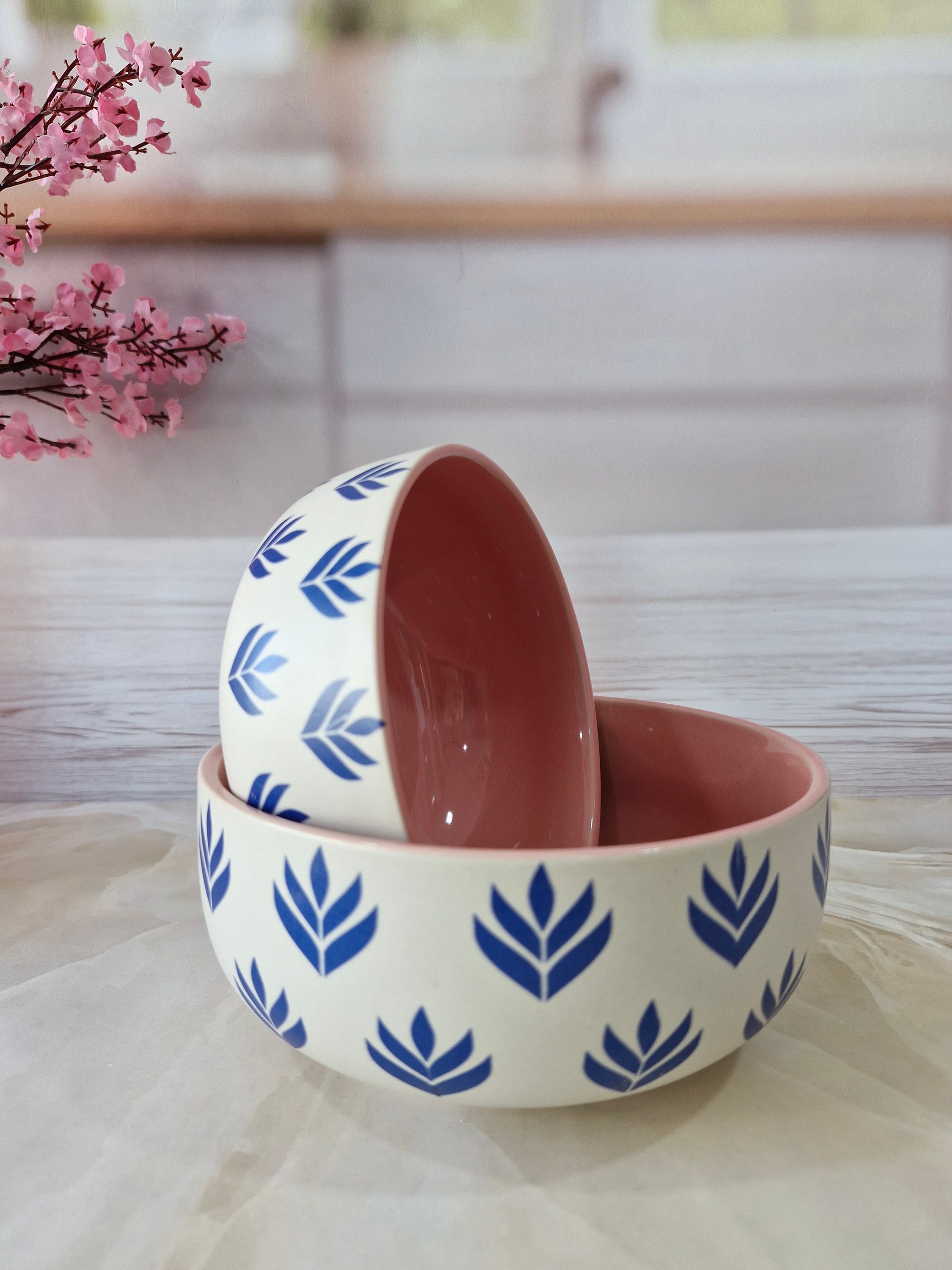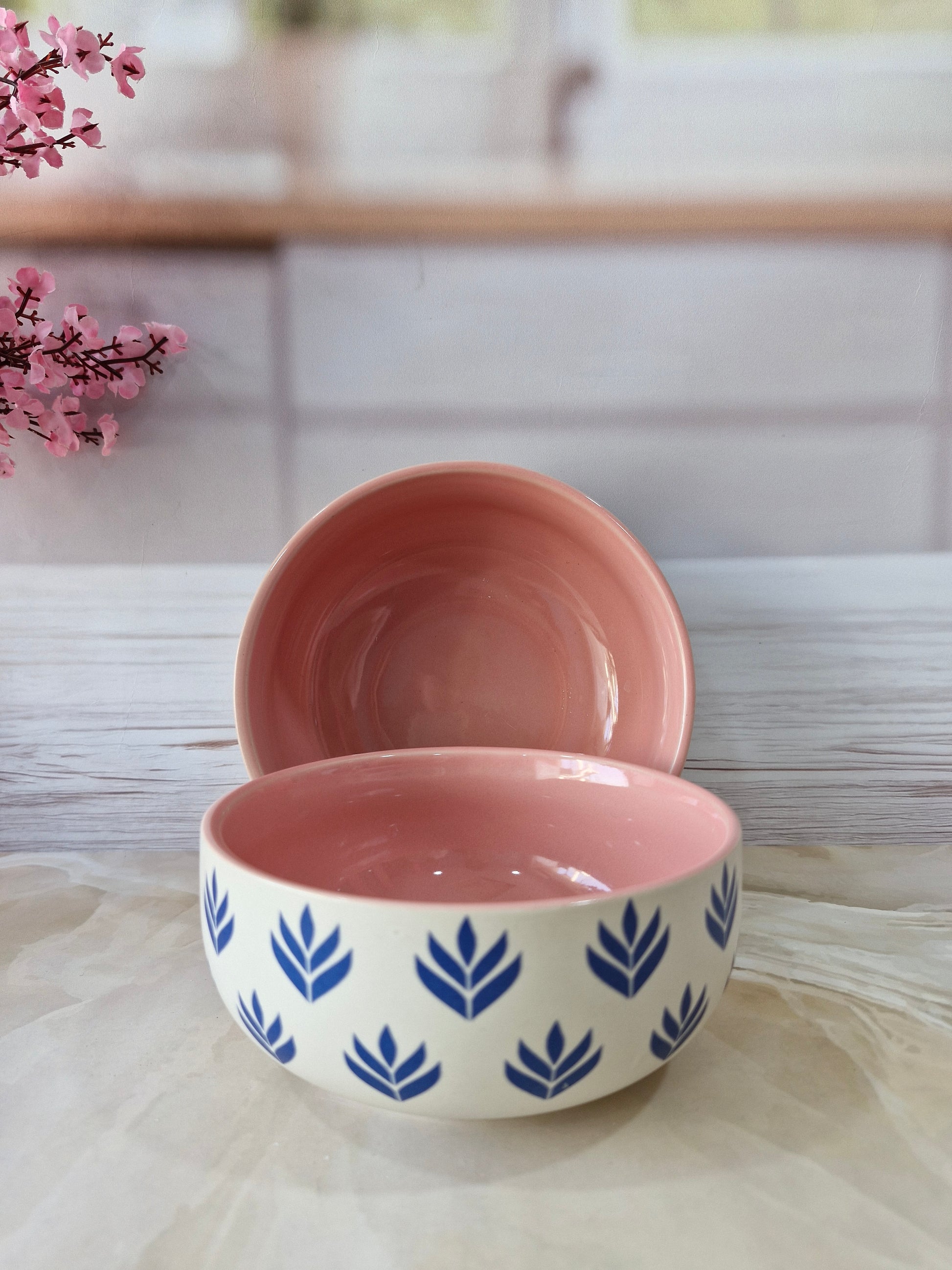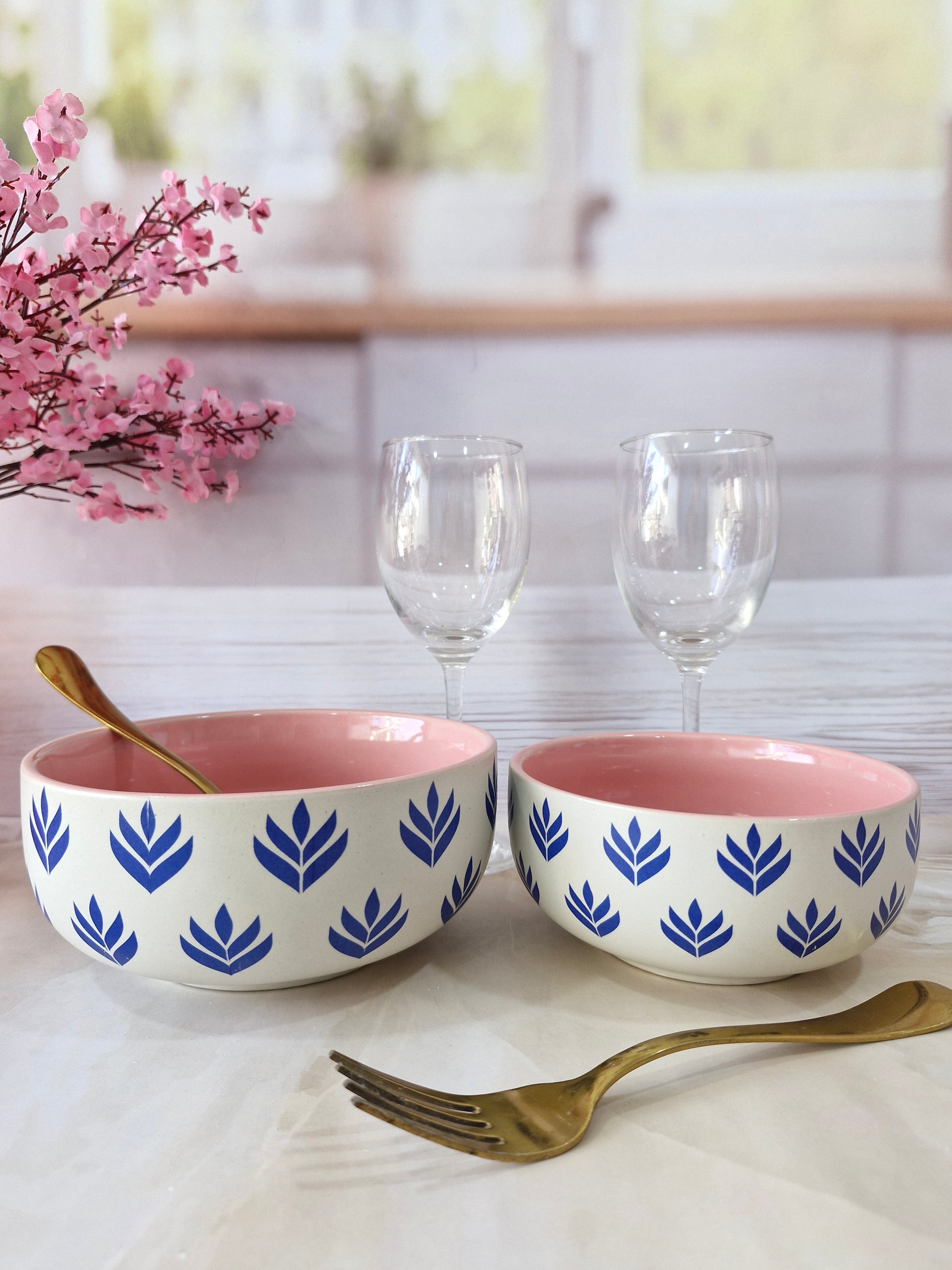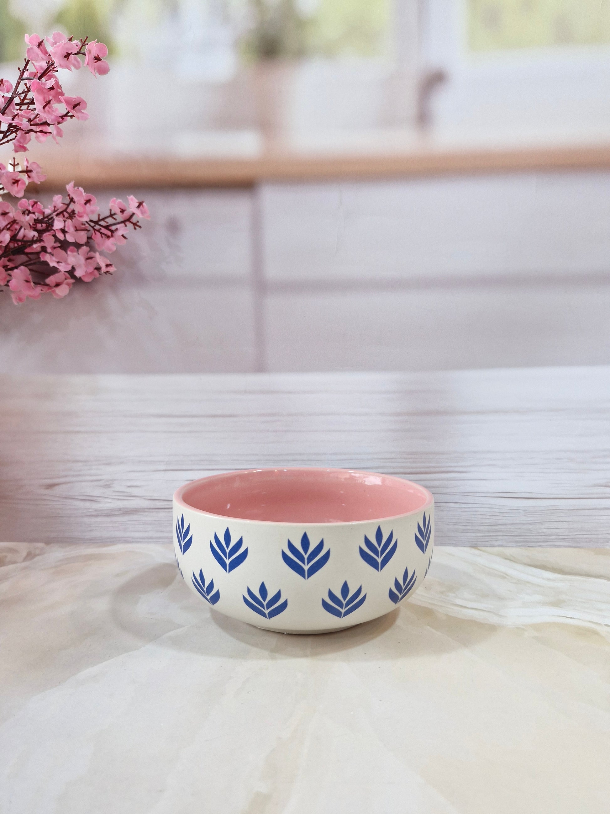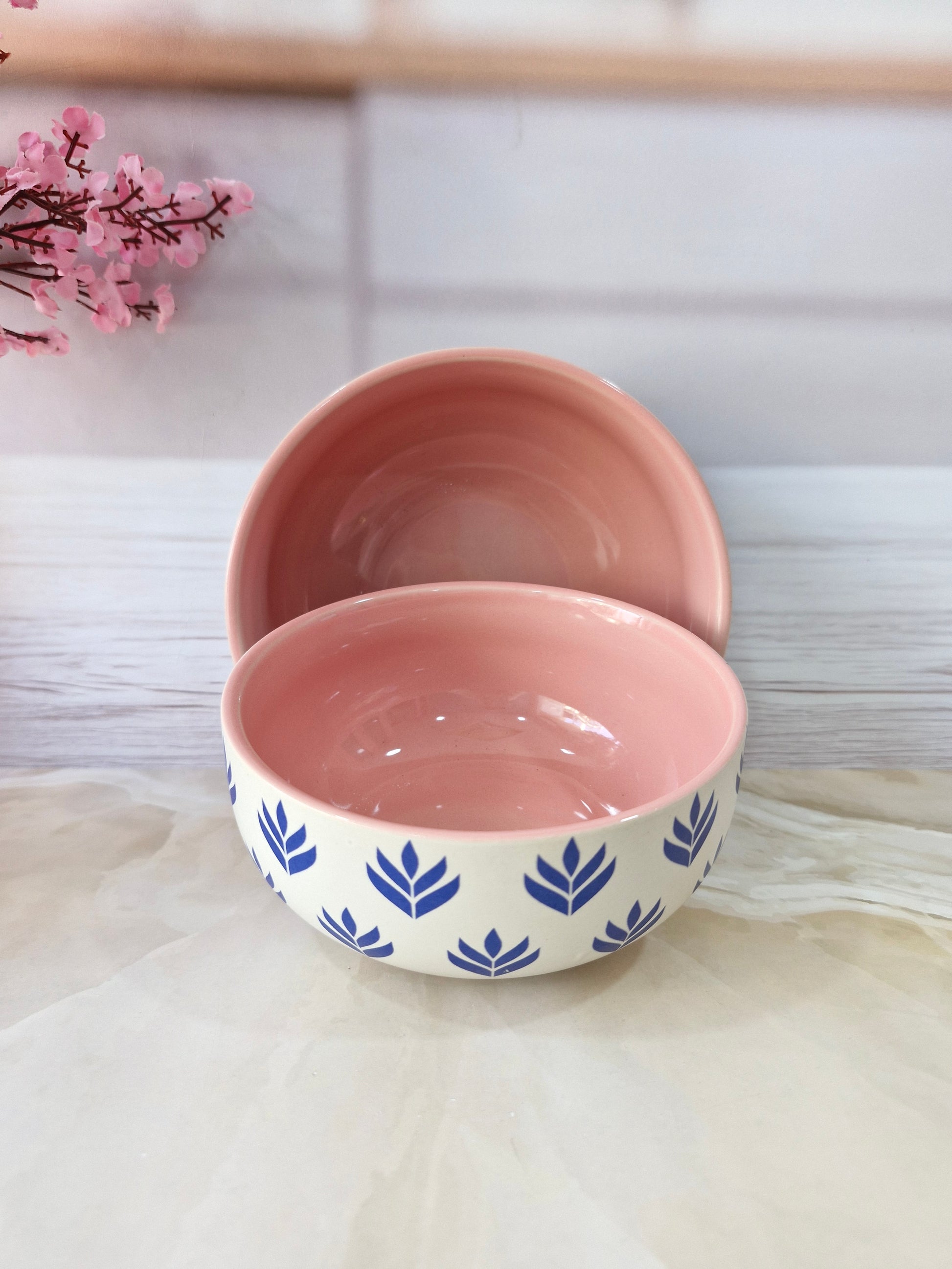 Lotus Beauty Pink Handpainted Ceramic Round Dining Bowls