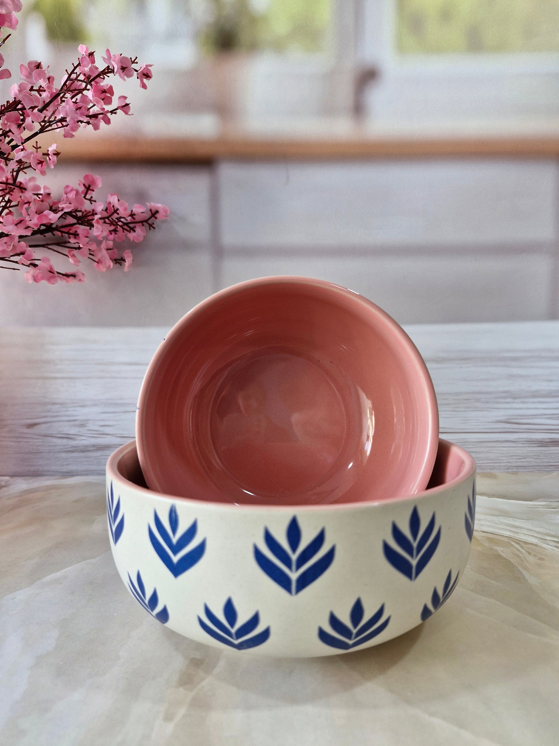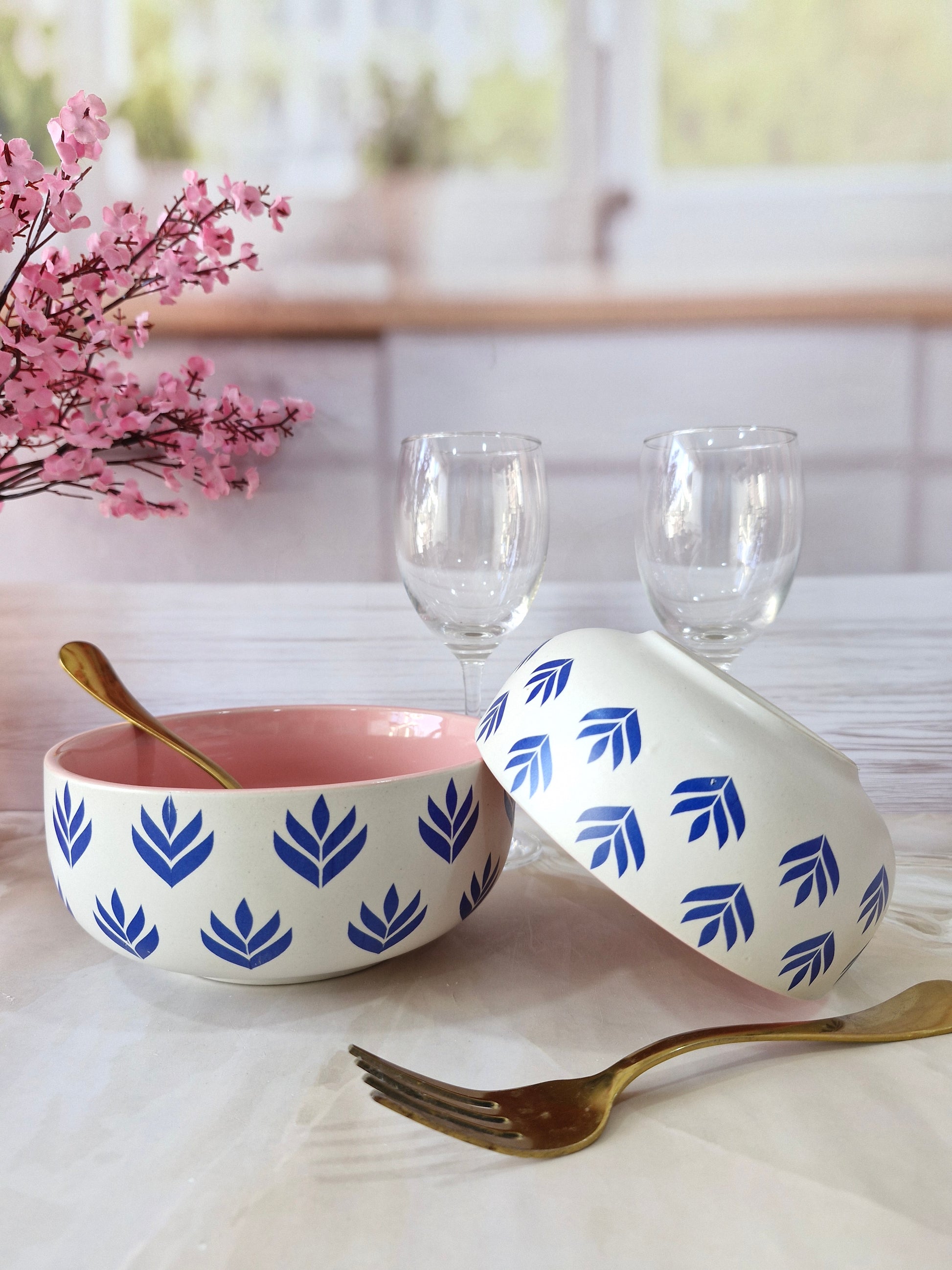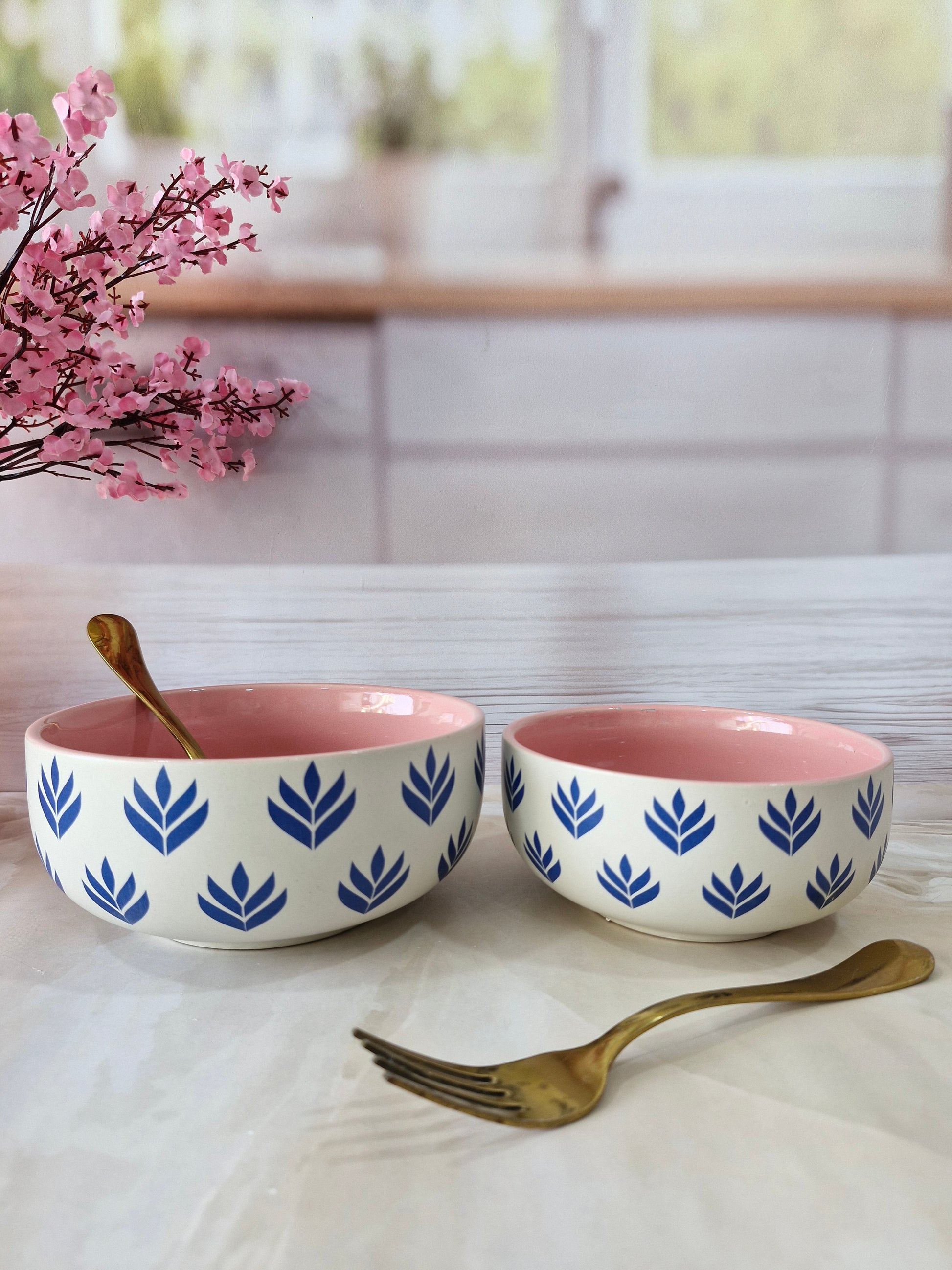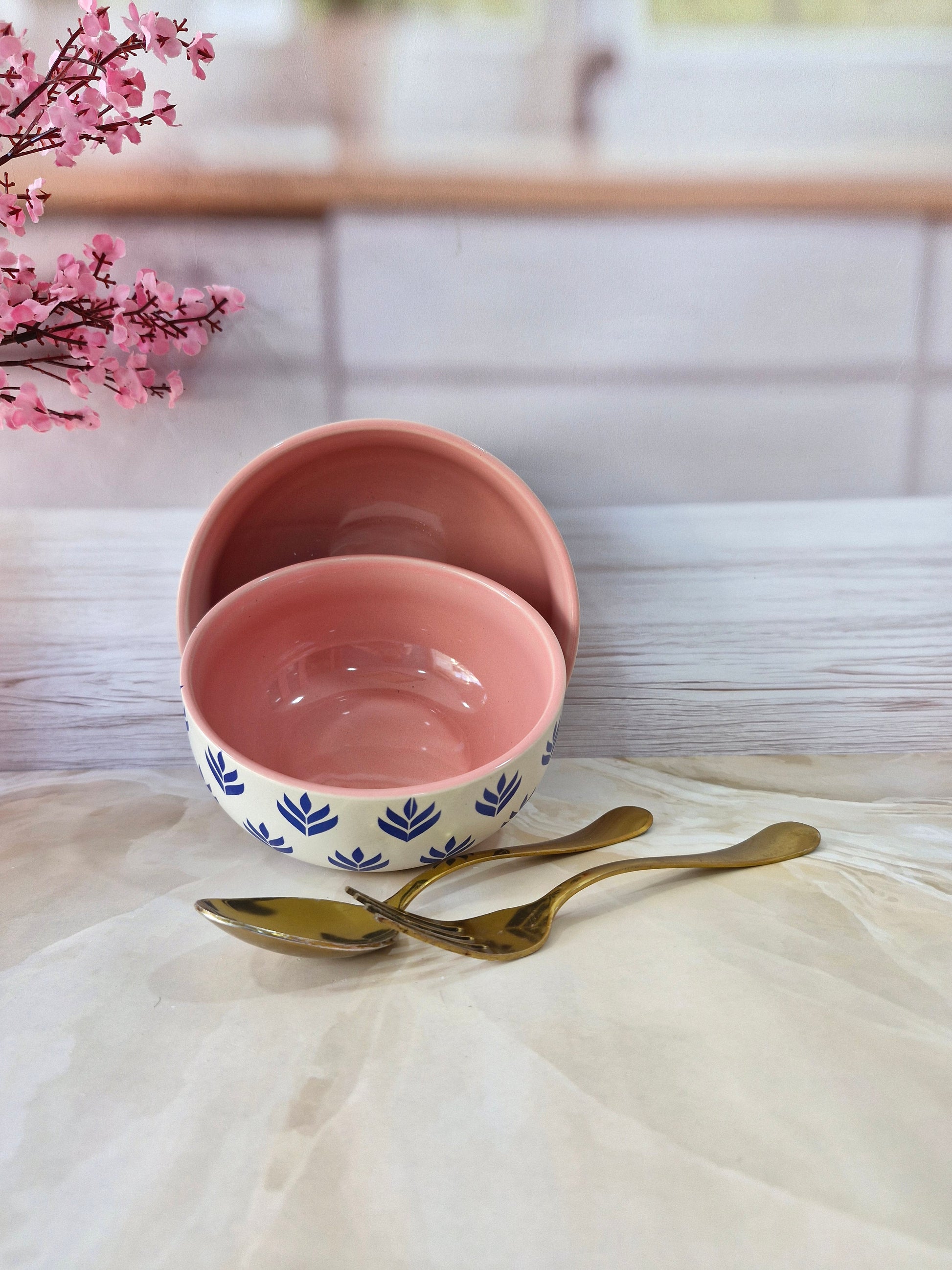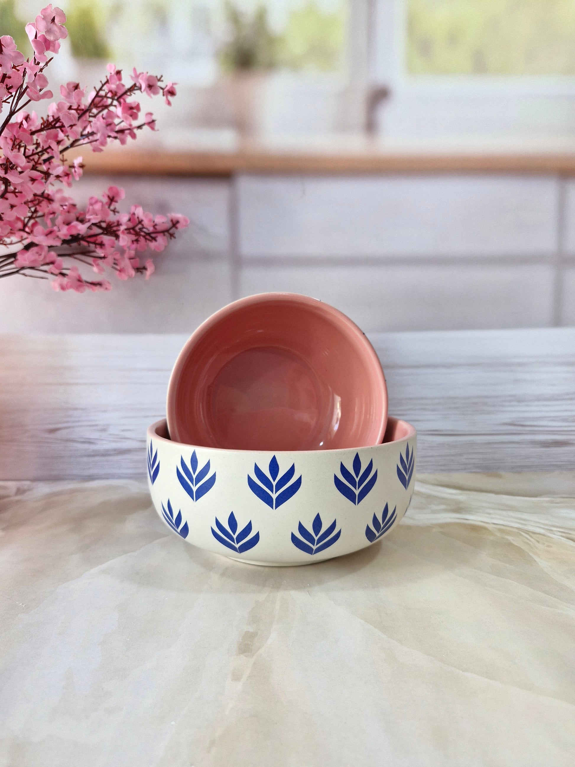 Lotus Beauty Pink Handpainted Ceramic Round Dining Bowls