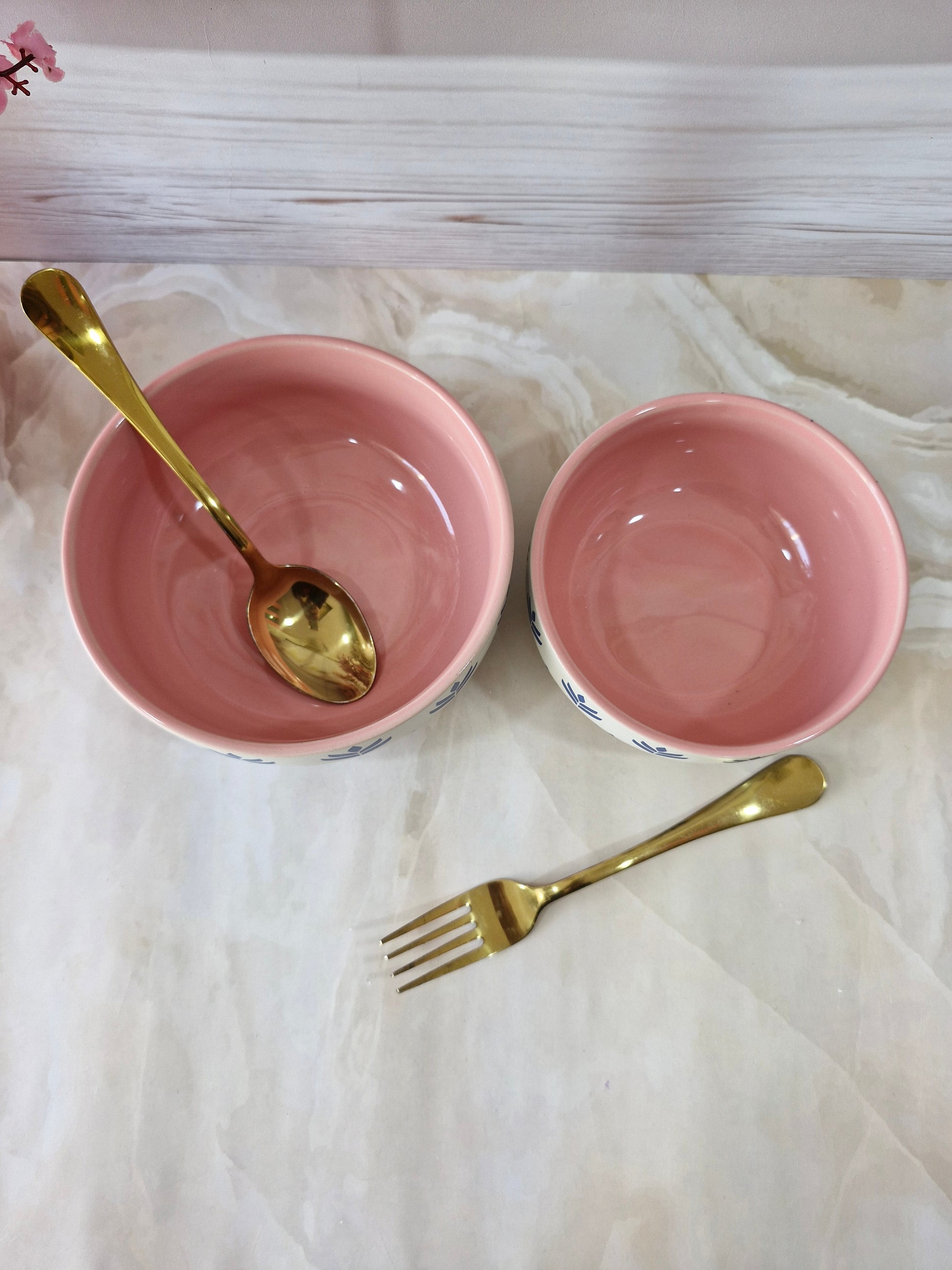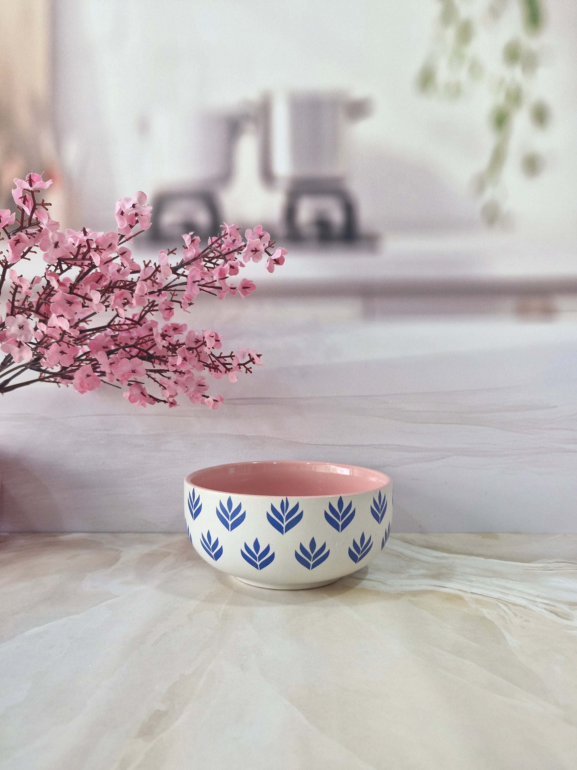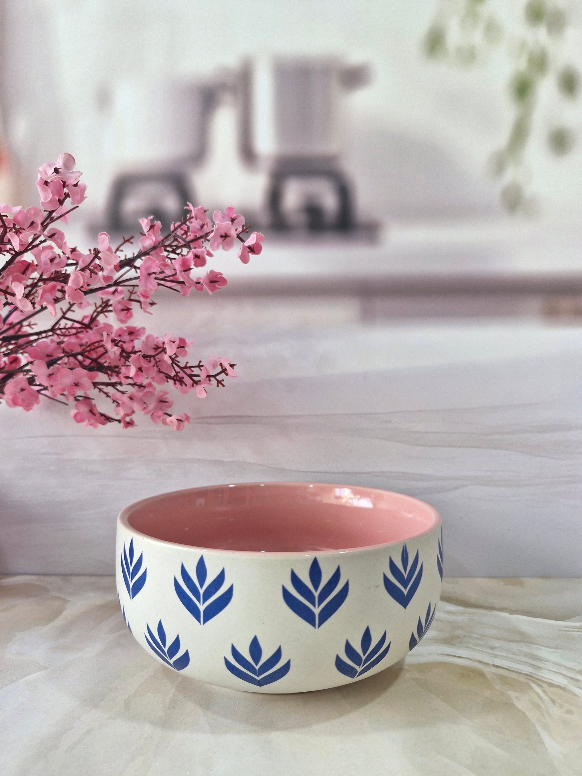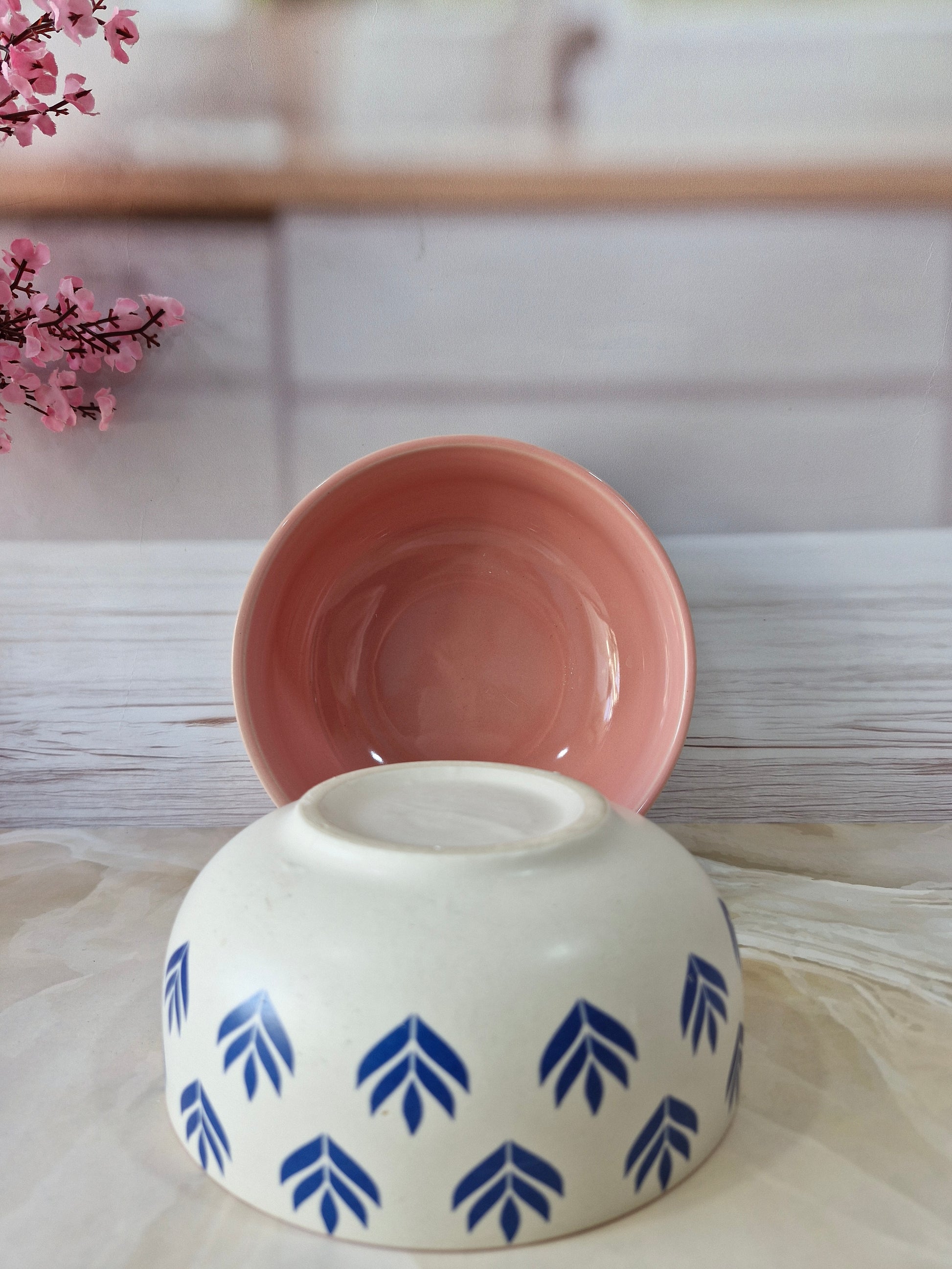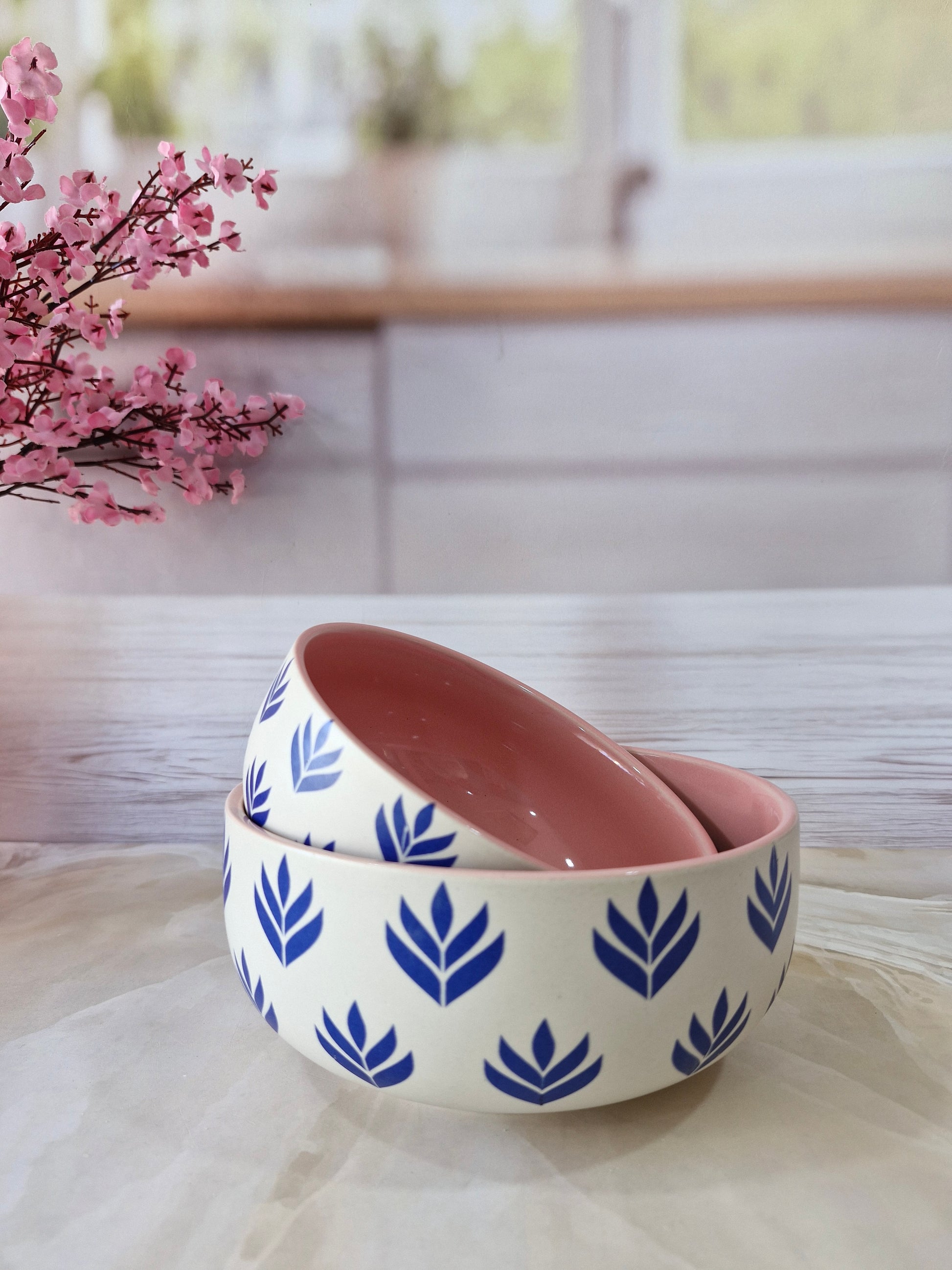 Lotus Beauty Pink Handpainted Ceramic Round Dining Bowls