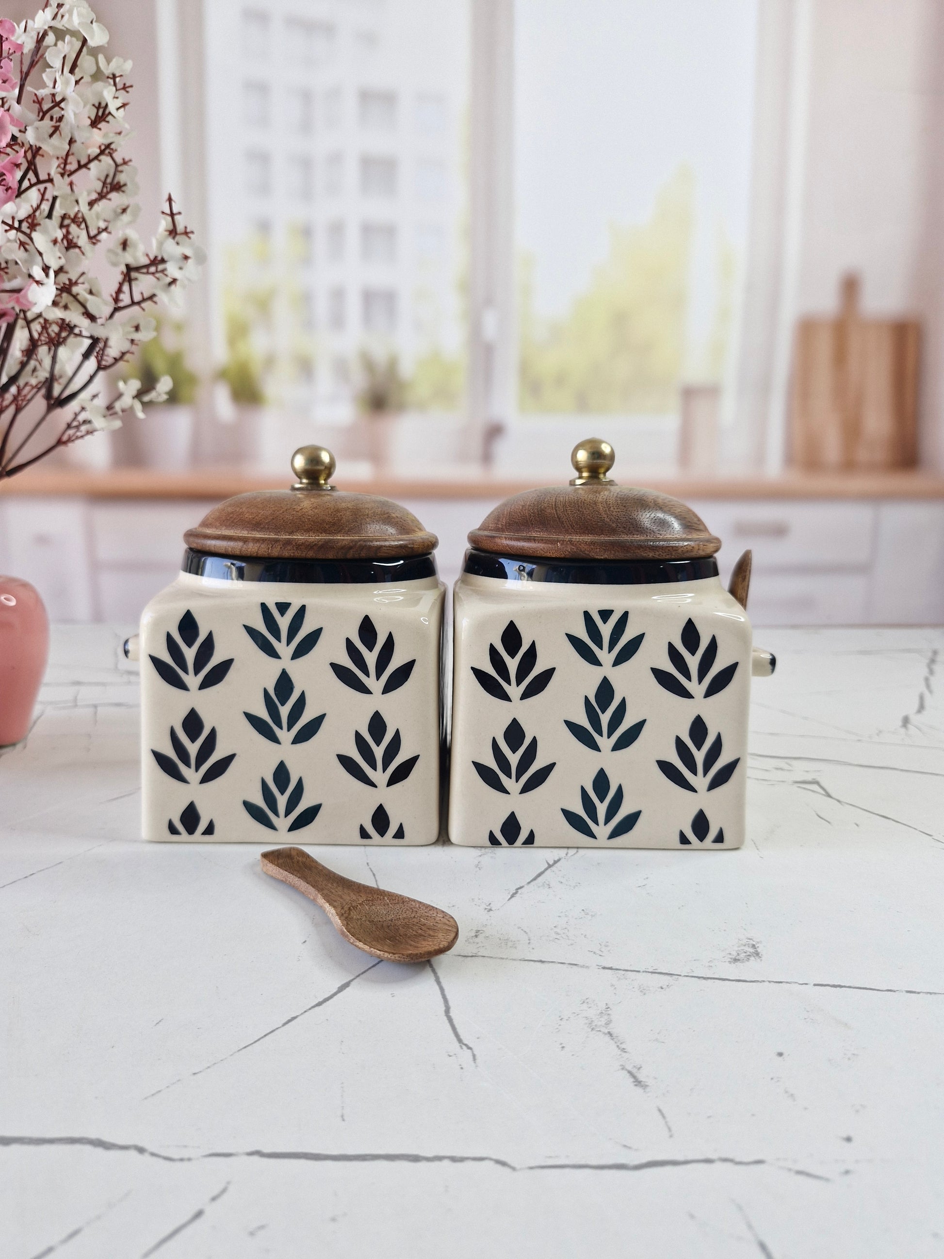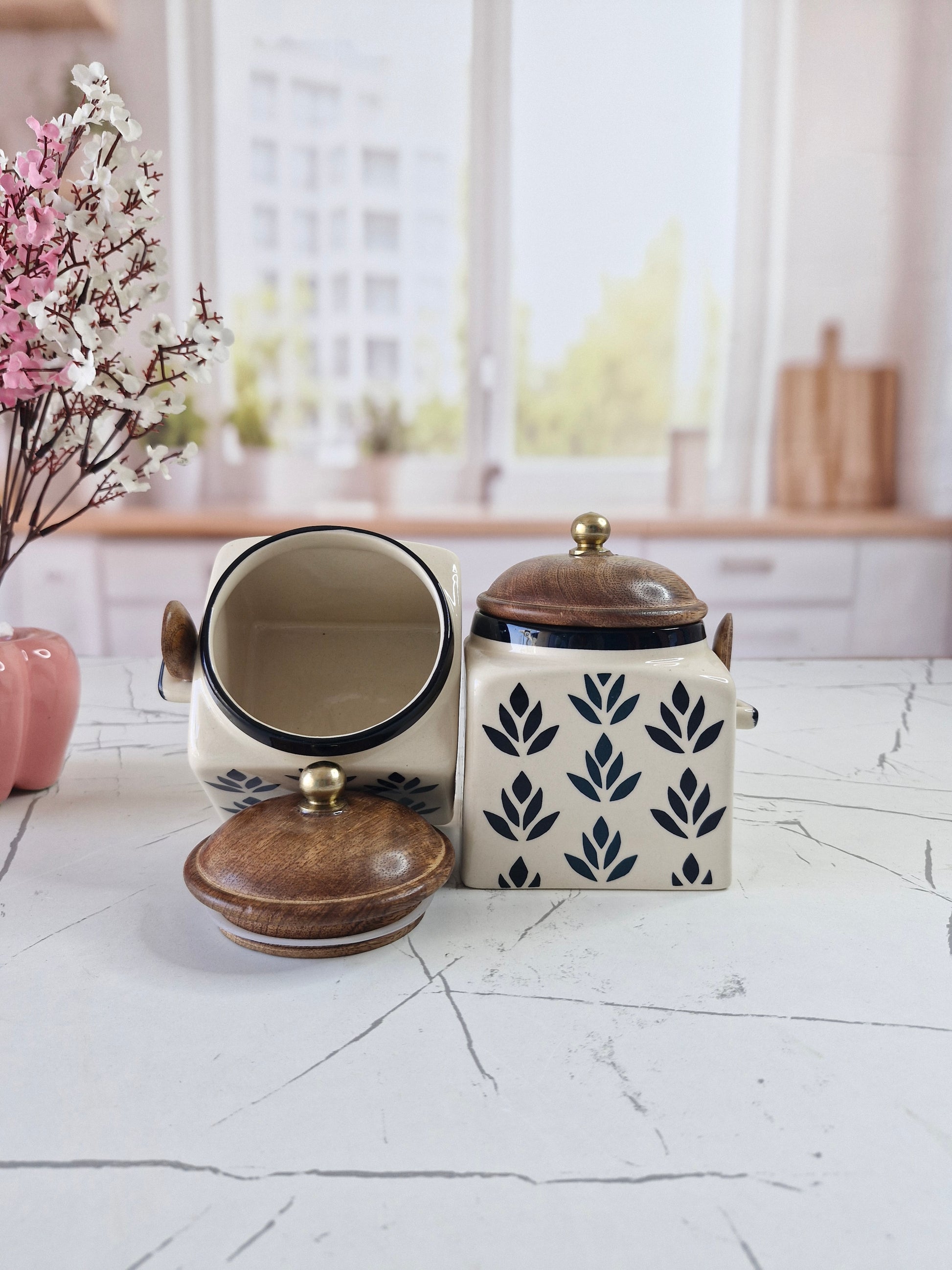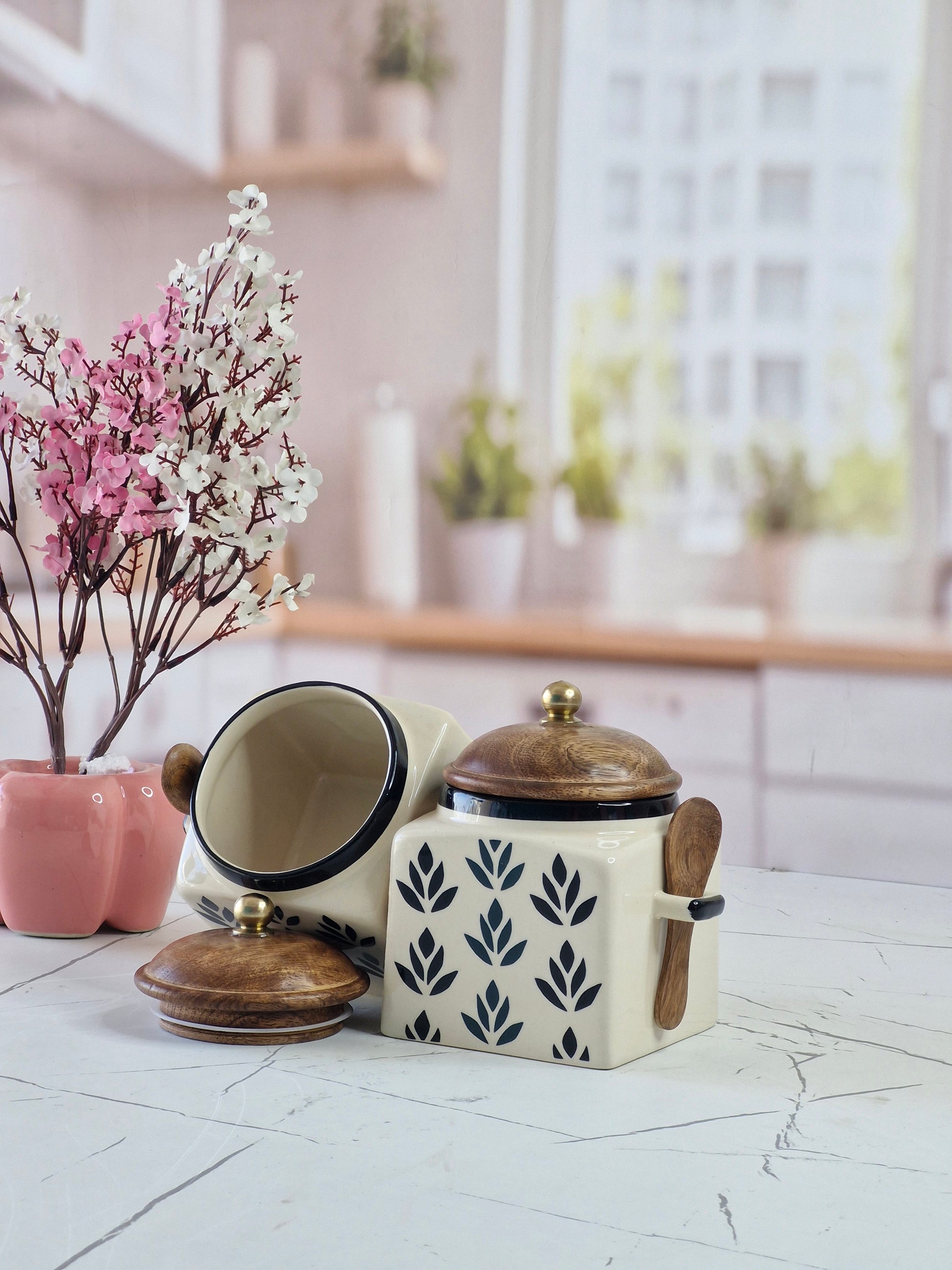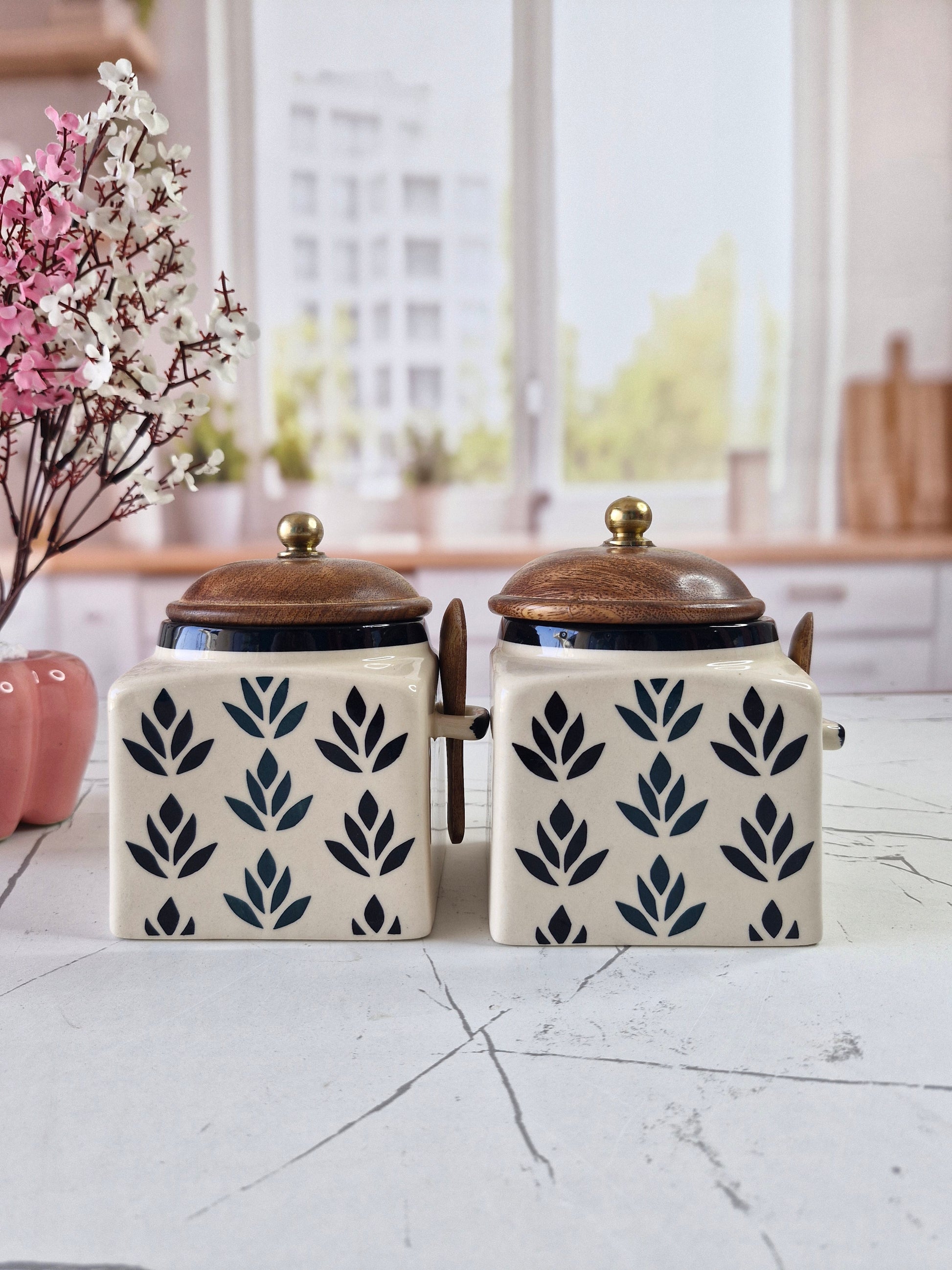 Lotus Hand Painted Designs Airtight Square Jars (1/2 kg) with spoon for Spices & Cookies